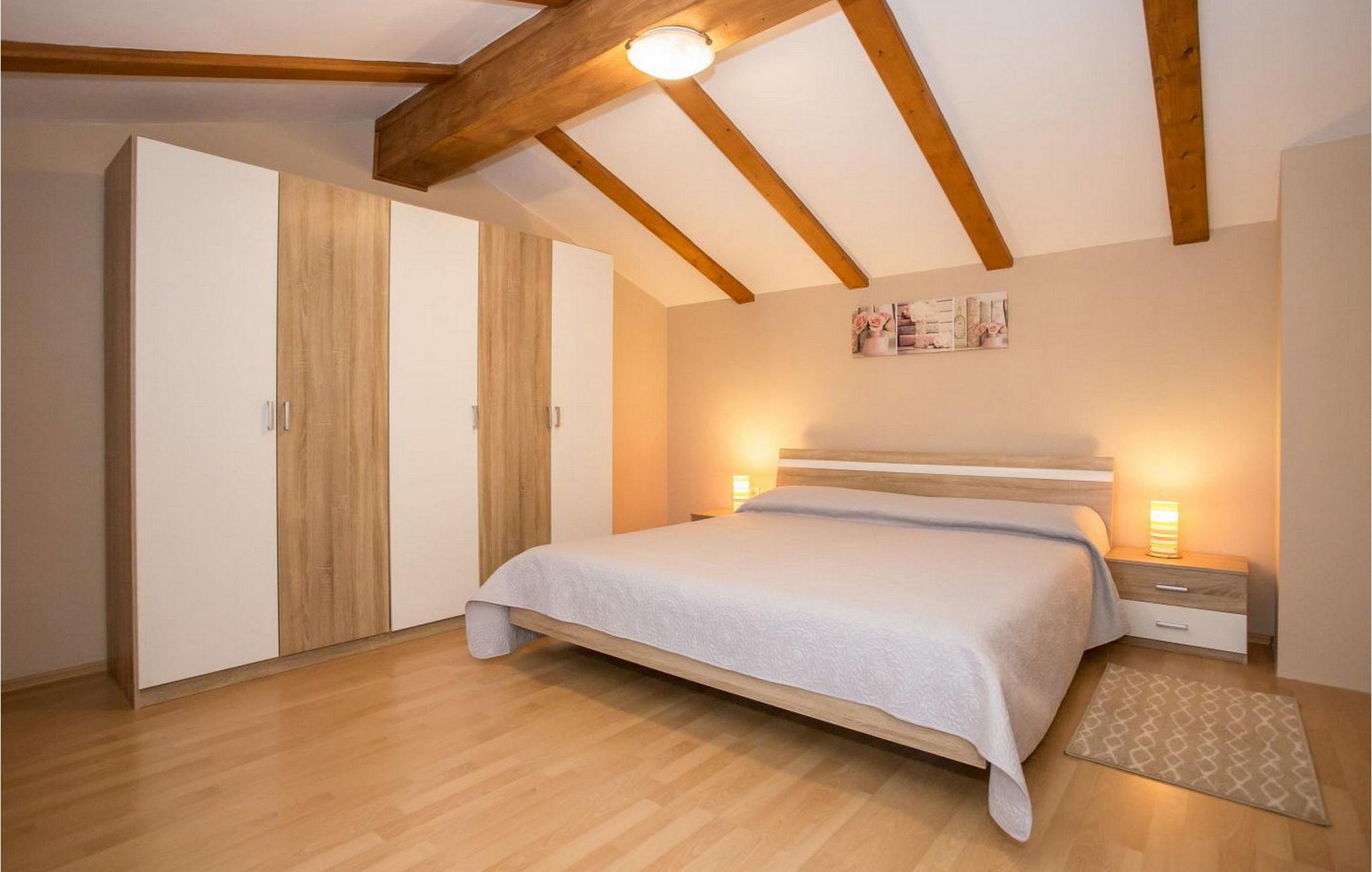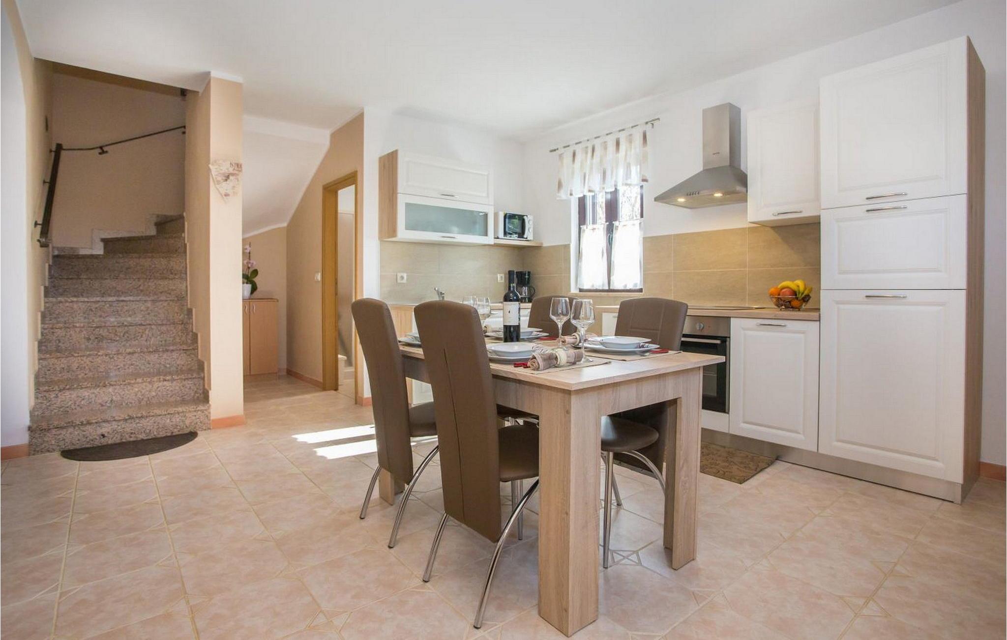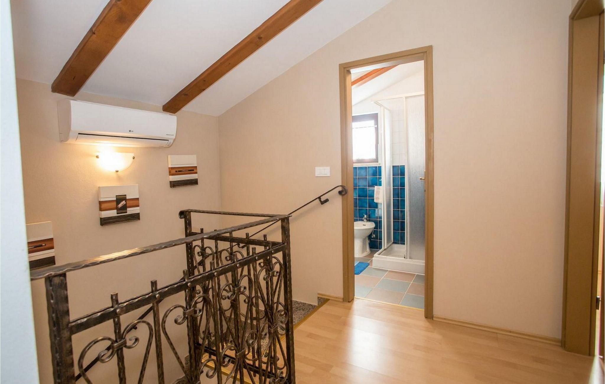 Casa Blechi er et charmerende istrisk hus over 100 år gammelt, bygget med traditionelle stenvægge og træbjælker. Dette stille oase ligger i den rolige landsby Stancija Blechi, 2,5 km fra landsbyen Tar og 10 km fra Porec. Det byder på en dejlig terrasse med bord, stole og grill. Det renoverede stenhus strækker sig over to etager. Stueetagen har køkken med spisebord, opholdsstue med pejs og sofa samt bad/toilet. Første sal indeholder to soveværelser med dobbeltsenge, hver med en dobbeltseng, en ekstra seng og panoramaudsigt over havet og endnu et bad/toilet. Gæsterne har gratis adgang til feriestedet Lanterna, som omfatter et poolkompleks, direkte adgang til stenstranden og legeområder. Vabriga-området byder på en række aktiviteter, fra Lanterna Aquapark for børn til vinture, olivenolieture og trøffeljagt for voksne. Bemærk venligst, at denne ejendom ikke accepterer ungdomsgrupper eller polterabender. En ungdomsgruppe på denne ejendom består af personer på 26 år eller derunder.