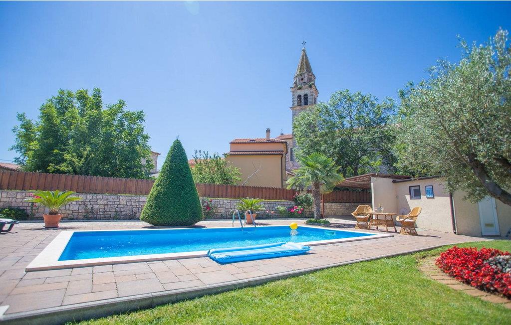 Villa Maria er et gammelt istrisk hus beliggende i centrum af stedet Tar, cirka 10 km fra Porec og 4 km fra turiststedet Lanterna. Huset er bygget i 1915 og totalrenoveret i 2013. På egen lukket grund på 530 kvm med smuk udsigt til klokketårnet til den nærliggende kirke, har gæsterne følgende udendørs faciliteter til rådighed: åben pool på 24 kvm, overdækket terrasse med siddemøbler, grill og parkeringsplads til 2 køretøjer, hvor den ene del er overdækket. Sommerhus til 4 gæster med samlet boligareal på 91 kvm består af to etager. I stueetagen er der opholdsstue med spisebord, veludstyret køkken, separat toilet. På første sal er der et soveværelse med dobbeltseng med to separate senge, et soveværelse med dobbeltseng og udgang til stor altan, bad/toilet. Adgang til første sal er også mulig udefra. BEMÆRK: Gæster har gratis adgang til feriestedet Lanterna under deres ophold. Bemærk venligst, at denne ejendom ikke accepterer ungdomsgrupper eller polterabends. En ungdomsgruppe på denne ejendom er en gruppe bestående af personer på 26 år eller derunder. Book ikke denne ejendom, hvis du er en ungdomsgruppe eller et polterabend, da din reservation vil blive afvist efter booking, hvilket kan omfatte ved ankomst til ejendommen eller under dit ophold, og du vil ikke blive refunderet.