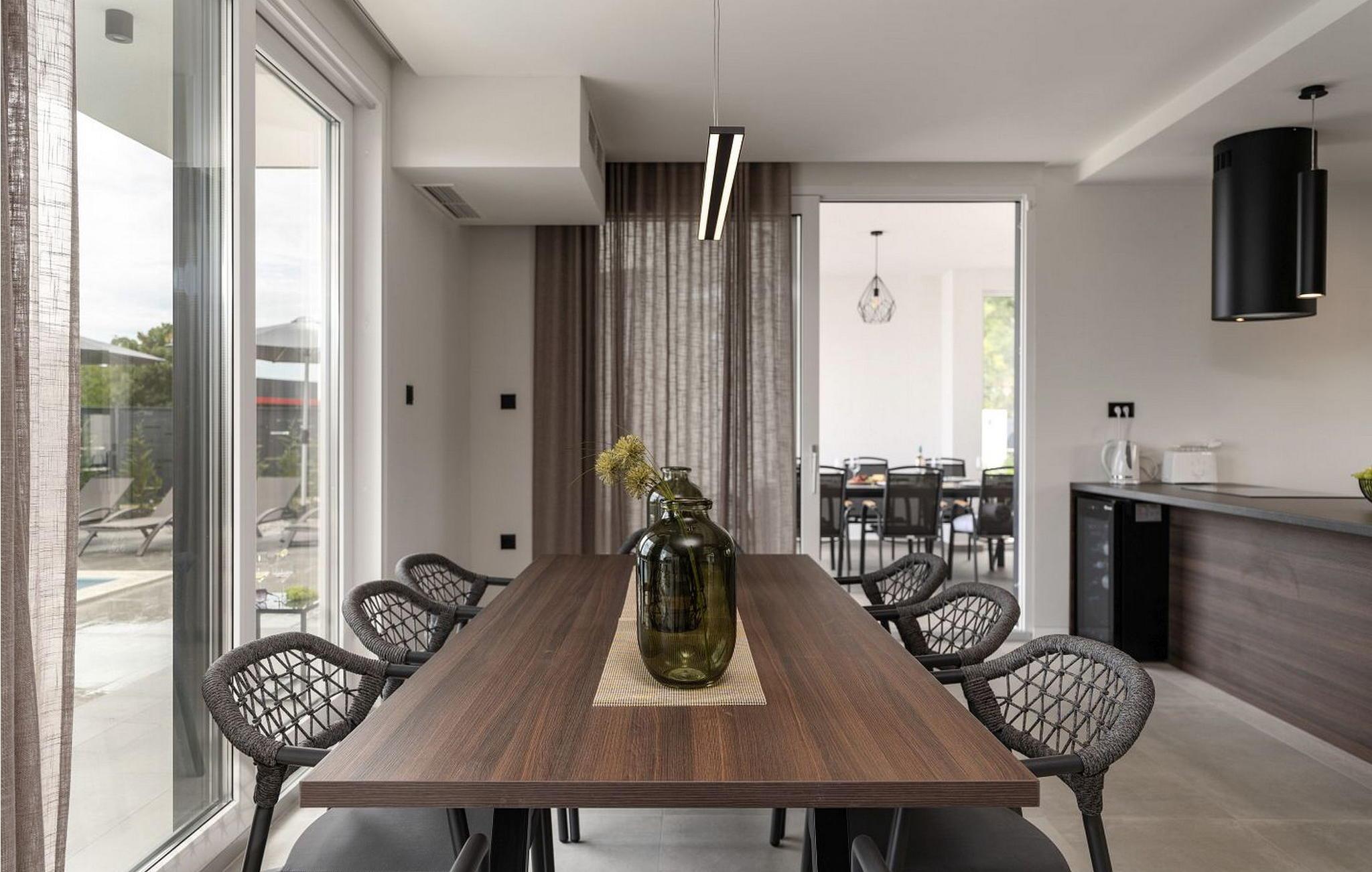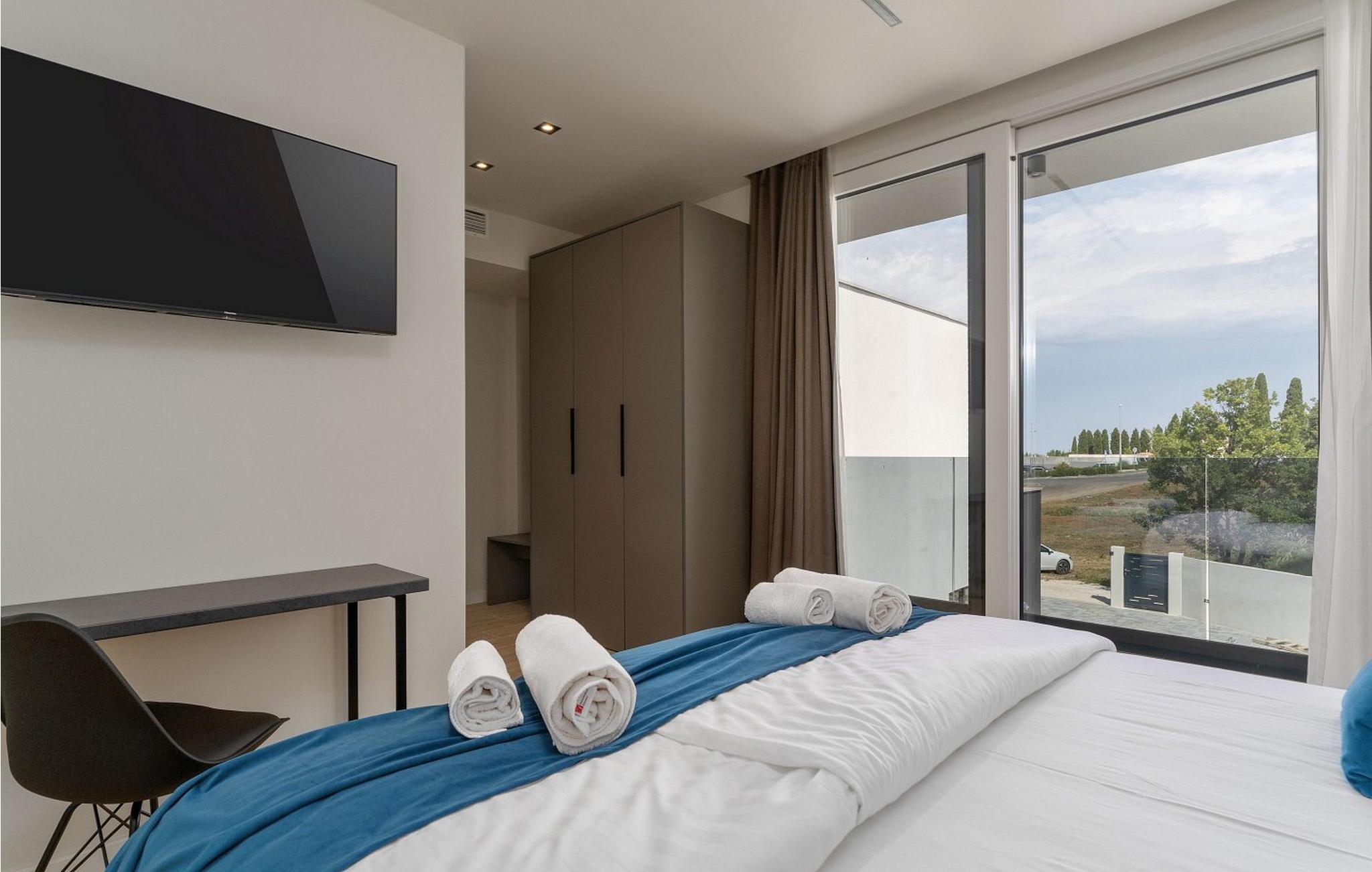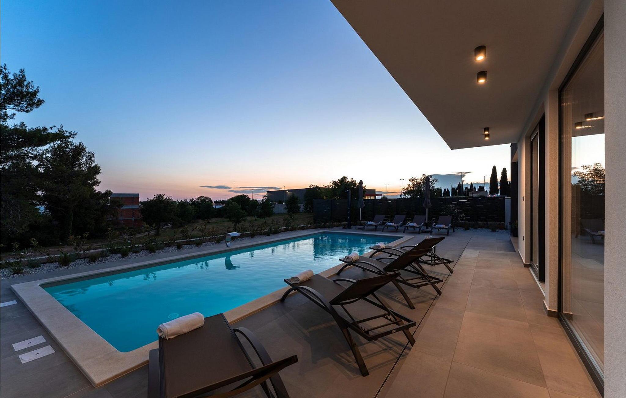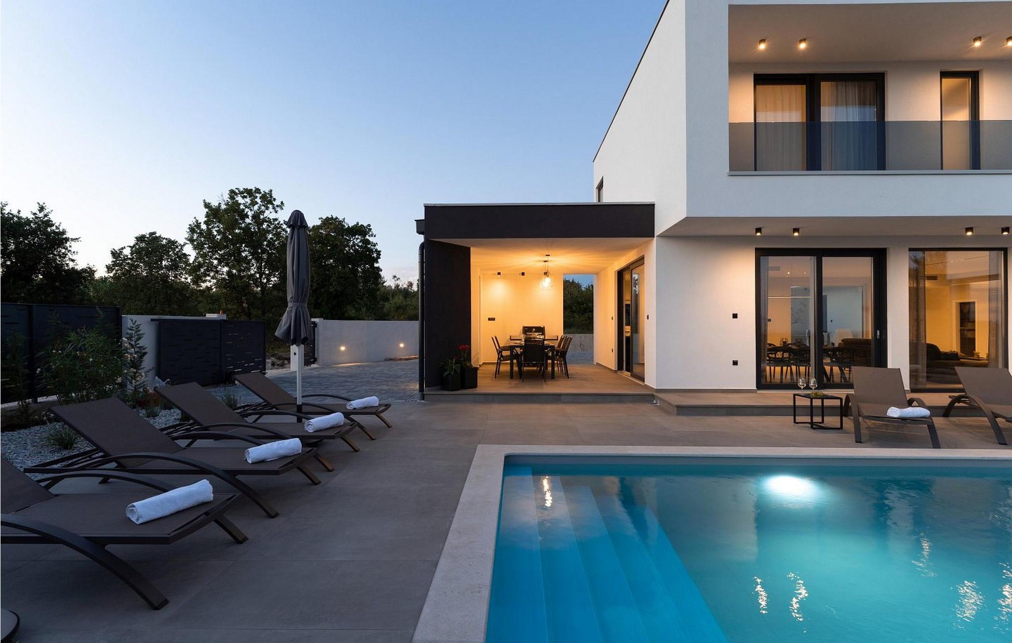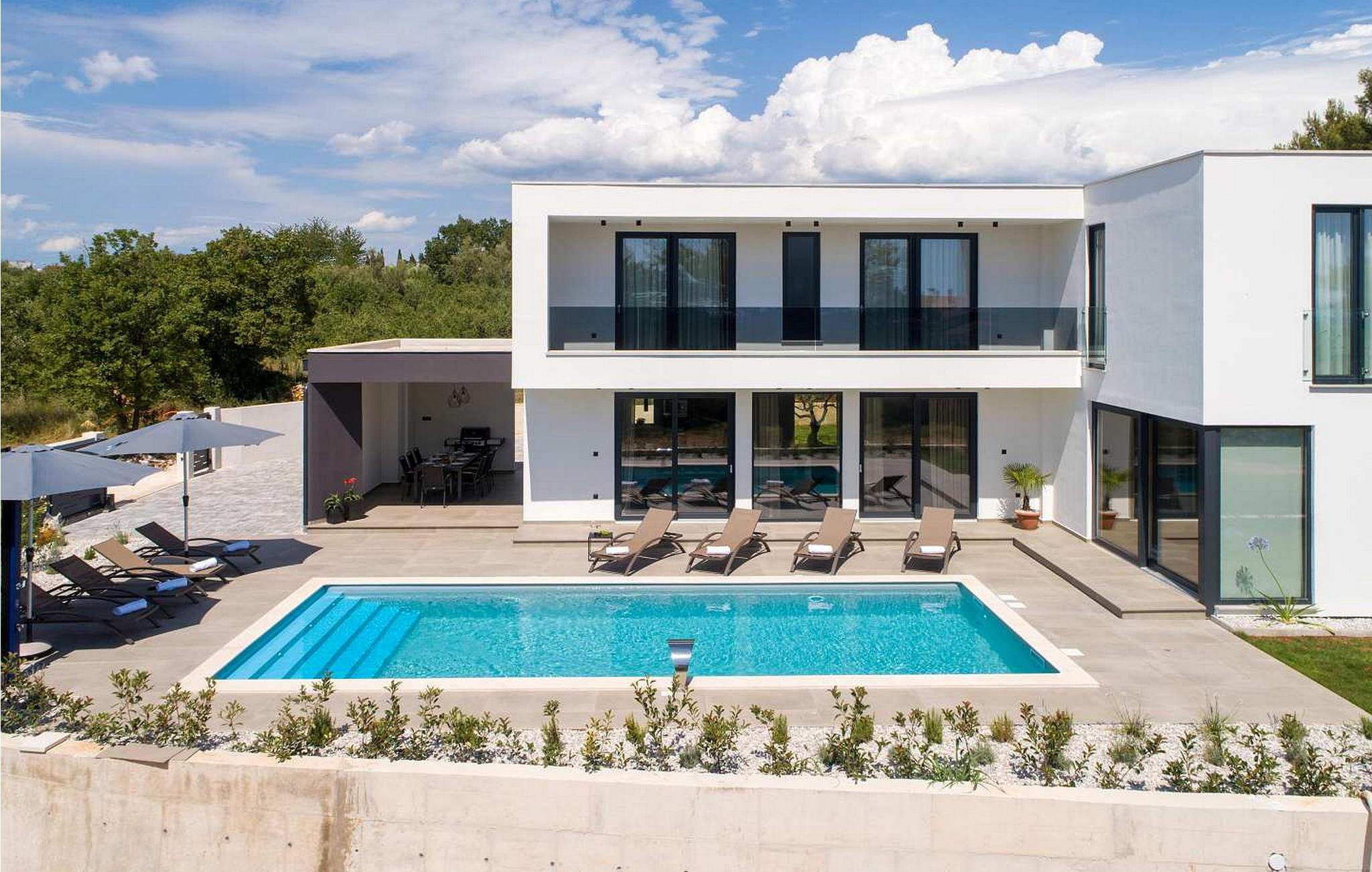 Villa Tonka er et moderne feriehus kun 3 km fra det glitrende Adriaterhav. Villaens udendørs område er designet til afslapning og har en forfriskende saltvandspool, liggestole og en overdækket terrasse med spisebord og grill, perfekt til at nyde al fresco måltider. Indvendigt udstråler villaen komfort og stil på to etager med aircondition. Stueetagen byder dig velkommen med en rummelig stue, fuldt udstyret køkken og spiseplads, alle udstyret med moderne bekvemmeligheder for at sikre et glat ophold. Ovenpå tilbyder soveværelserne privatliv og komfort, hver udstyret med eget badeværelse og tv, hvilket skaber et roligt tilflugtssted for afslappende nætter. Praktisk placeret, en butik, tankstation, restaurant og hæveautomat er kun få meter væk. Villaen er beliggende på den vestlige side af halvøen Istrien, mellem de charmerende turistcentre Porec og Novigrad, og er ideelt placeret for at udforske regionen. Dette område er kendt for at producere noget af den bedste olivenolie i Europa og inviterer dig til at opdage dens rige kulturarv. Porec byder på et væld af historiske skatte og mulighed for en-dags bådture, selv til Venedig. Novigrad er berømt for sit uberørte, rene hav - et af de bedste i Middelhavet. Villa Tonka kombinerer moderne komfort med en bekvem beliggenhed, hvilket gør den til det perfekte valg til din næste ferie. Bemærk venligst, at denne ejendom ikke accepterer ungdomsgrupper eller polterabender. En ungdomsgruppe på denne ejendom består af personer på 26 år eller derunder.