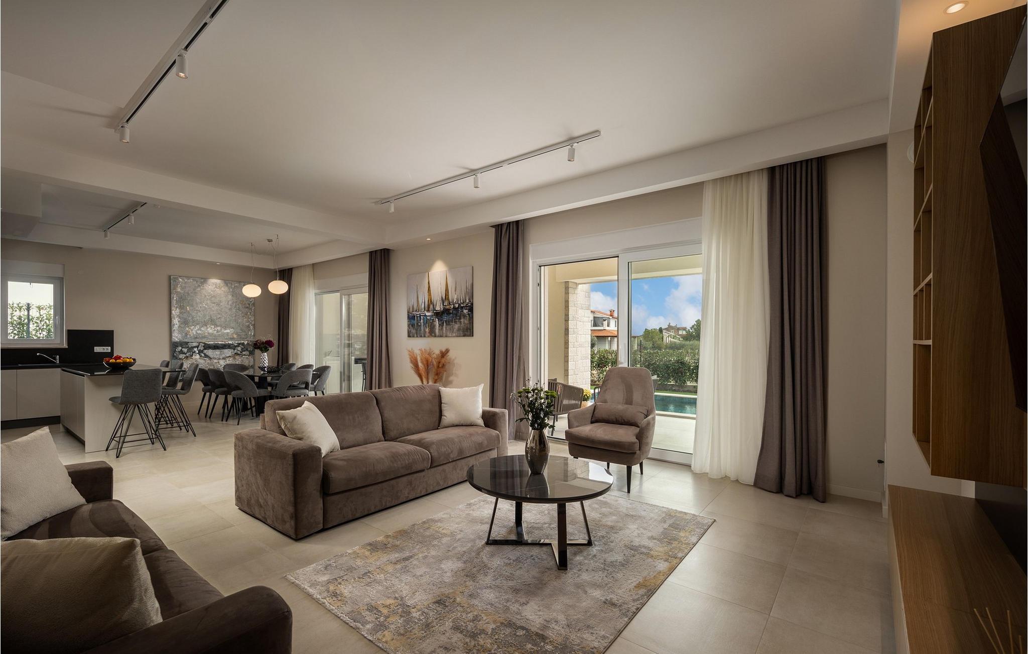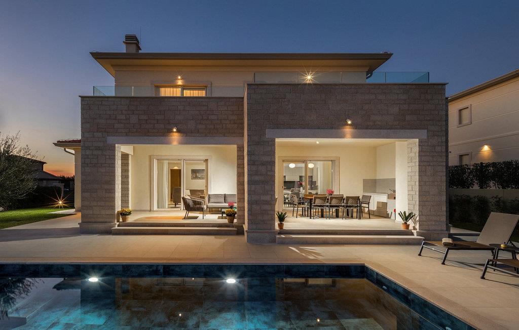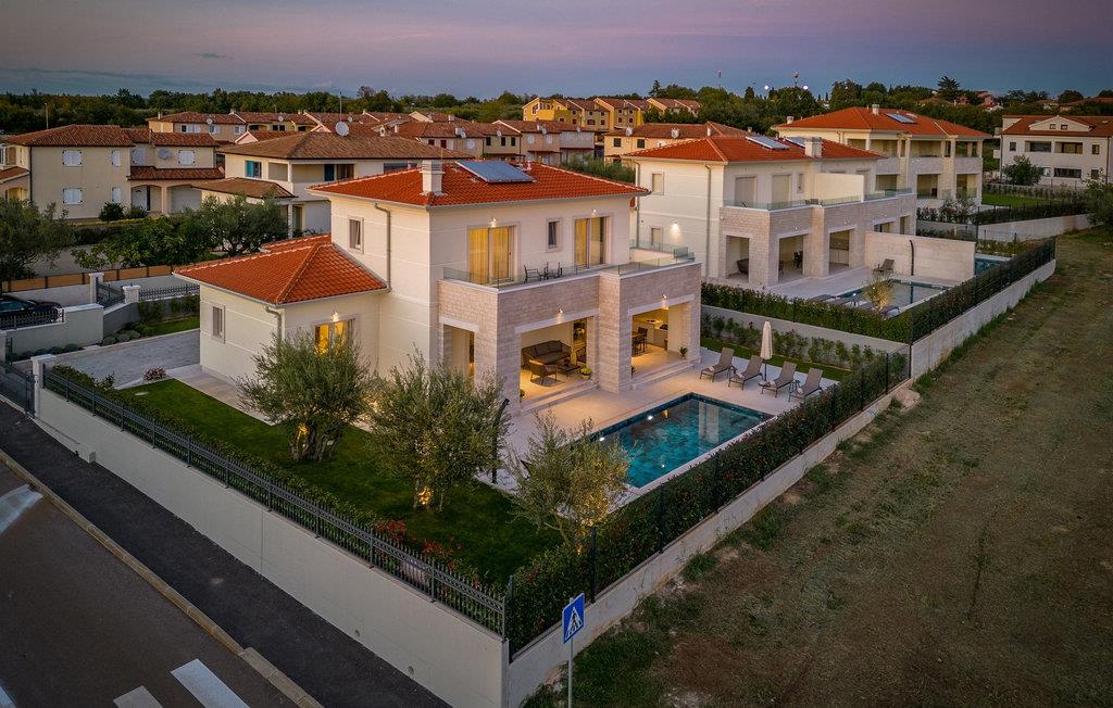 Villa Santina ligger i det eventyrlige Istrien i Vabriga. Denne lille landsby ligger på Istriens vestkyst og kun 7 km fra byen Porec. Placeringen af Villa Santina er ideel til en rolig og afslappende ferie med familie eller venner, samtidig med at den er tæt nok på alle de aktiviteter, du kan ønske dig. Hvis du ønsker at forkæle dig selv og dine kære med en luksuriøs ferie, så er denne villa det rigtige valg for dig! Villa Santina er bygget i rustik arkitektonisk stil og tilbyder sine gæster 208 m2 boligareal, mens det samlede areal af ejendommen er 725 m2. Det er 1,5 km væk fra den nærmeste strand og det klare hav, hvor du kan nyde solen og udforske havets dybder. Villaen er fuldt klimatiseret og sover maksimalt 8, ideelt set 6 personer. Gæsterne er indkvarteret i 3 komfortable og smukt indrettede dobbeltværelser, og du vil blive glad for at vide, at hvert af de nævnte værelser har eget badeværelse med bruser. To soveværelser er placeret på øverste etage af villaen og har adgang til en privat terrasse med havudsigt, mens det tredje soveværelse er i stueetagen. I stueetagen er der desuden en rummelig stue med to sofaer, en lænestol, et sofabord og et tv. Lige ved siden af stuen ligger spisestuen med spisebord til 8 personer, samt et moderne og fuldt udstyret køkken med bar, bag hvilken der er yderligere 4 barstole. Fra spisestue og stue er der direkte udgang til den udendørs terrasse, hvor du på varme sommerdage kan slappe af i den opvarmede pool på 28 m2 og en dybde på 1,6 meter. Du kan solbade på 8 liggestole og læse din yndlingsbog eller bare hvile krop og sjæl i fred. Der er også et overdækket spisebord på den udendørs terrasse, ved siden af er der en udendørs kul- eller brændegrill, perfekt til at tilberede lækre måltider for hele familien. Ved siden af poolen er der også et opholdsområde, ideelt til at nippe til kaffe om morgenen eller socialt samvær om aftenen. Andre funktioner i Villa Santina omfatter 1 separat toilet, vaskemaskine, tørretumbler og strygejern. Som en ekstra seng til to personer er der også en sovesofa i stuen, samt et foderbord og en babyseng. Massage er muligt efter forudgående aftale. Villaen er helt indhegnet og byder på 2 private parkeringspladser i gården. Der er også masser af grønne områder, hvor børn kan lege ubekymret. Hvis du beslutter dig for at besøge Istrien og Vabriga, kan vi garantere, at du ikke bliver skuffet. Hvert år bliver Istrien besøgt af talrige indenlandske og udenlandske turister, der er forbløffet over skønheden, den uberørte natur og eventyrlige steder i nærheden af Vabriga. Naturelskere kan udforske omgivelserne, svømme i små og skjulte bugter og besøge Mirna-flodens dal, hvor der er skove rige på trøfler. Hvis du er mere interesseret i kulturarv, kan du nå byen Porec på kun 20 minutter i bil, og der er andre nærliggende byer som Novigrad, Rovinj eller Pula, hvor du vil blive overrasket over det romerske amfiteater. Det gastronomiske tilbud er fremragende og omfatter adskillige restauranter, taverner og landlige husholdninger, hvor du kan smage istriske specialiteter og lokale vine af topkvalitet. Overgiv dig til Istriens charme og nyd en vidunderlig årlig ferie i Villa Santina! Kæledyr er tilladt på denne ejendom efter ejerens skøn eller mod et gebyr.