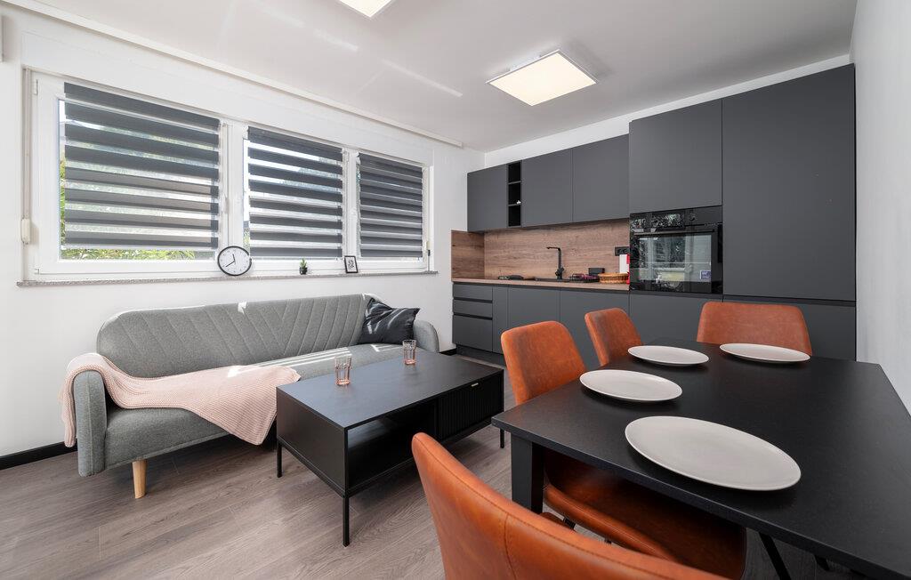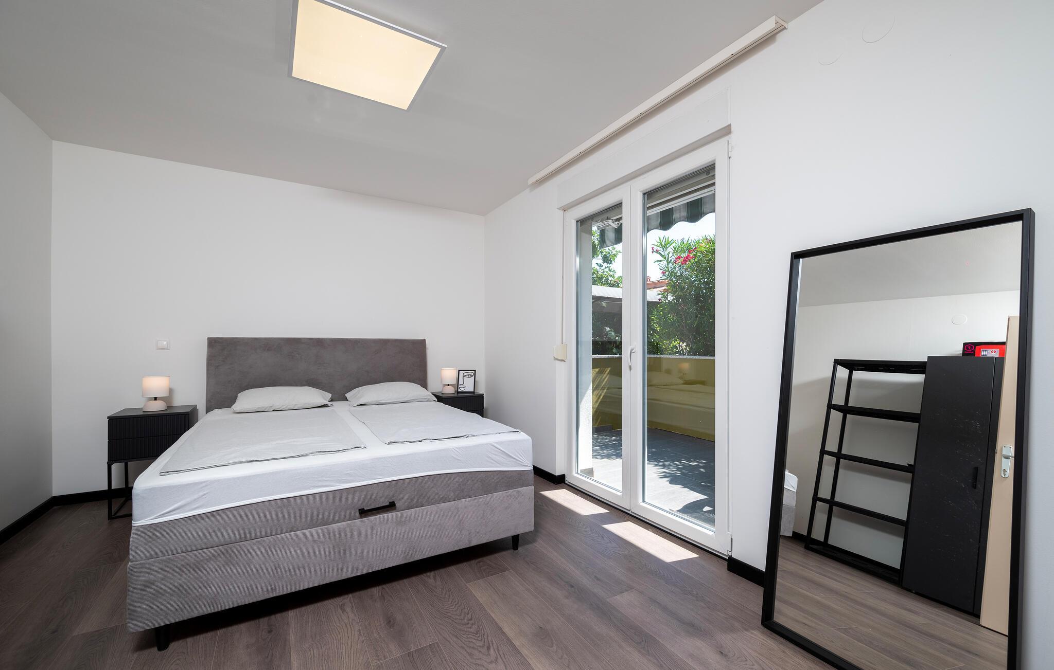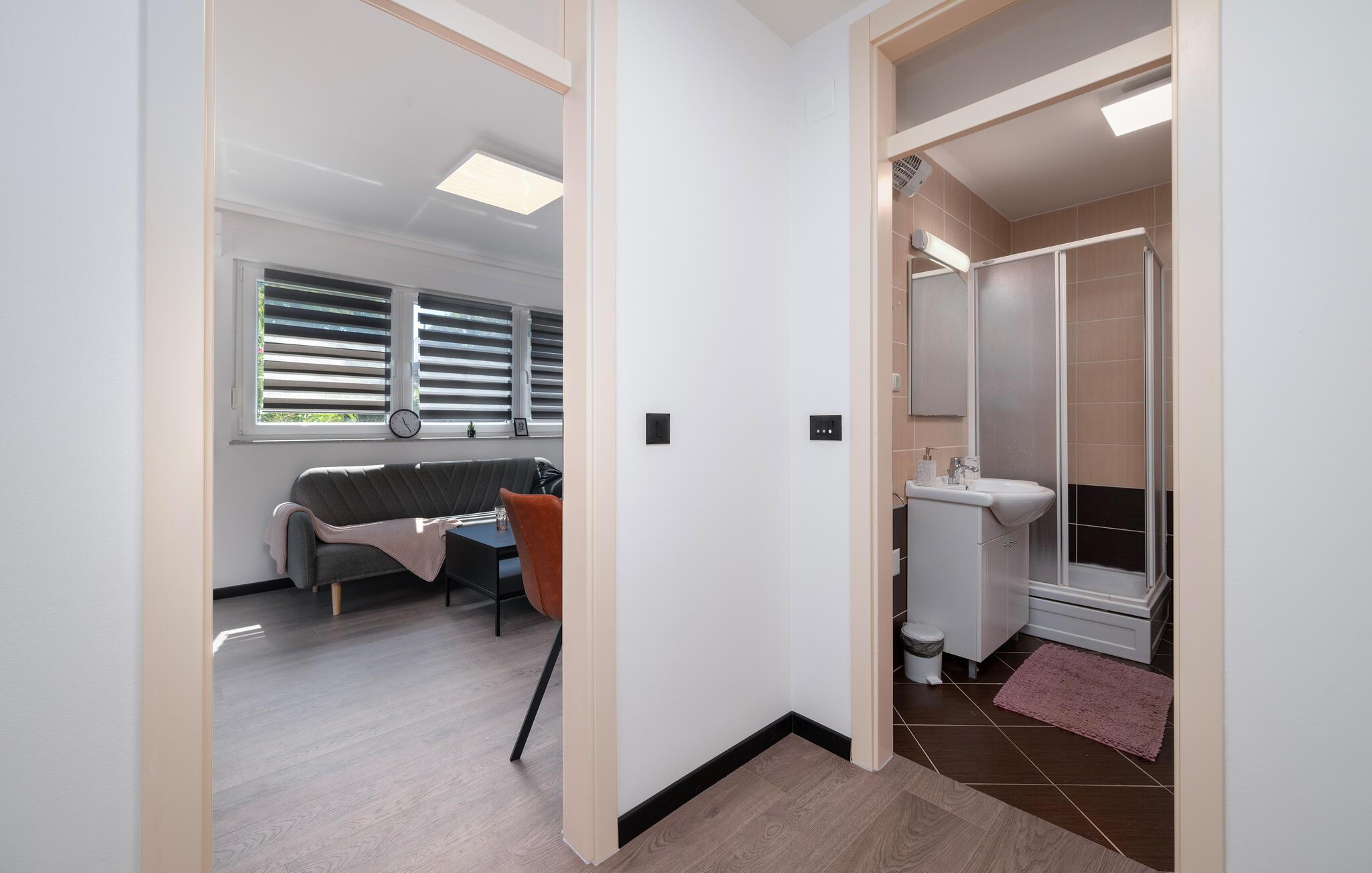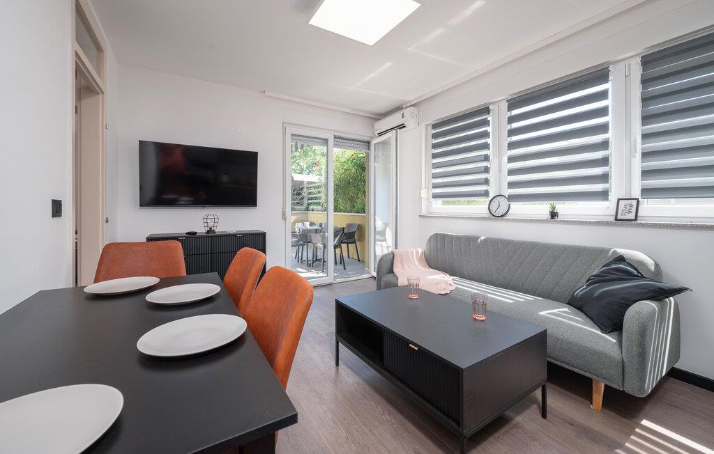 Oplev denne stilfulde ferielejlighed til jeres næste ferie i Istrien. jeres moderne ferielejlighed i Vranici, en forstad til Porec, byder jer hjertelig velkommen til et behageligt ophold. Nyd jeres måltider på den private terrasse, omgivet af grønne planter, der skaber en behagelig, rolig atmosfære. Start jeres dag med en afslappet morgenmad udendørs og slap af om aftenen med et glas vin. Stuen er moderne og komfortabel. Tilbring hyggelige aftener her i sofaen og se en film. Det åbne køkken er veludstyret, så I til enhver tid kan tilberede lækre måltider. Den tilstødende spiseplads tilbyder plads til fælles måltider med familie eller venner. Vranici ligger ikke langt fra den gamle bydel i Porec, som glæder sig over sine historiske seværdigheder og charmerende gader. Besøg den berømte Euphrasian-basilika, som er optaget på UNESCOs verdensarvsliste, og slentre gennem de maleriske gader med talrige caféer og restauranter. Gå ikke glip af de smukke strande i Porec, kun en kort køretur væk. Tilbring afslappende dage ved havet, svøm i Adriaterhavets klare vand eller tag en bådtur langs kysten.