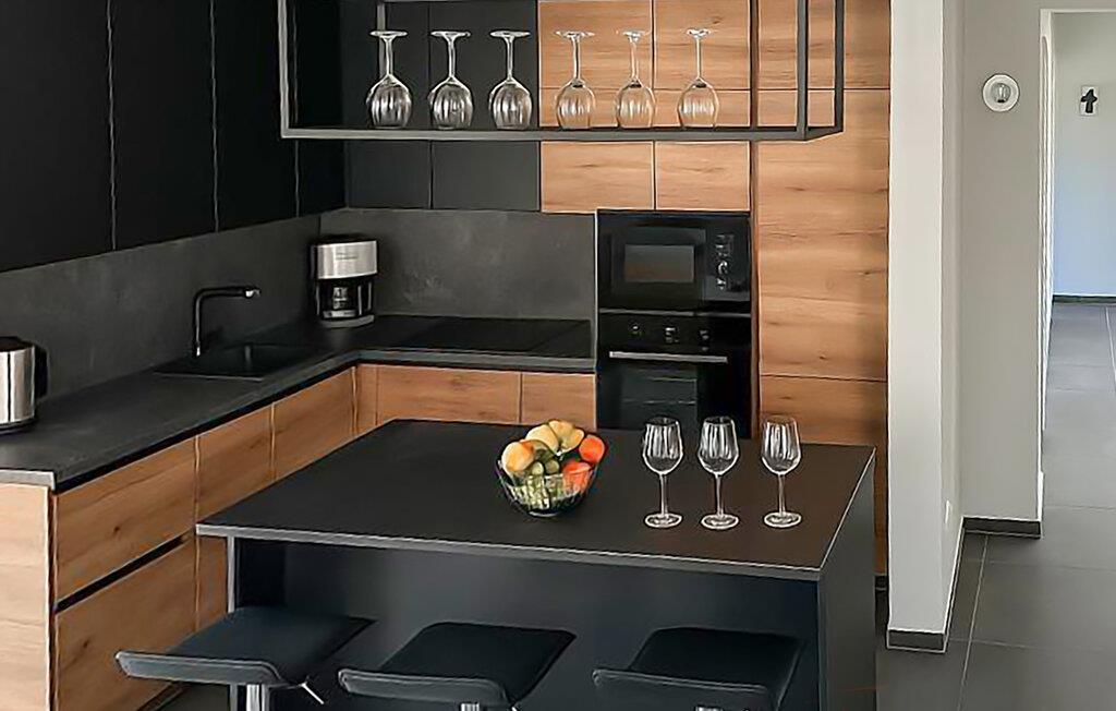 Dette hus er noget særligt med sin stilfulde atmosfære, rene linjer og harmoniske kombination af mørke accenter og varmt træ. Sæt jer godt til rette i sofaen, snak over en kop kaffe og nyd hyggelige stunder i den lyse opholdsstue. Lyt til god musik, og lav mad sammen i det åbne køkken, inden I afslutter dagen med venner og familie.