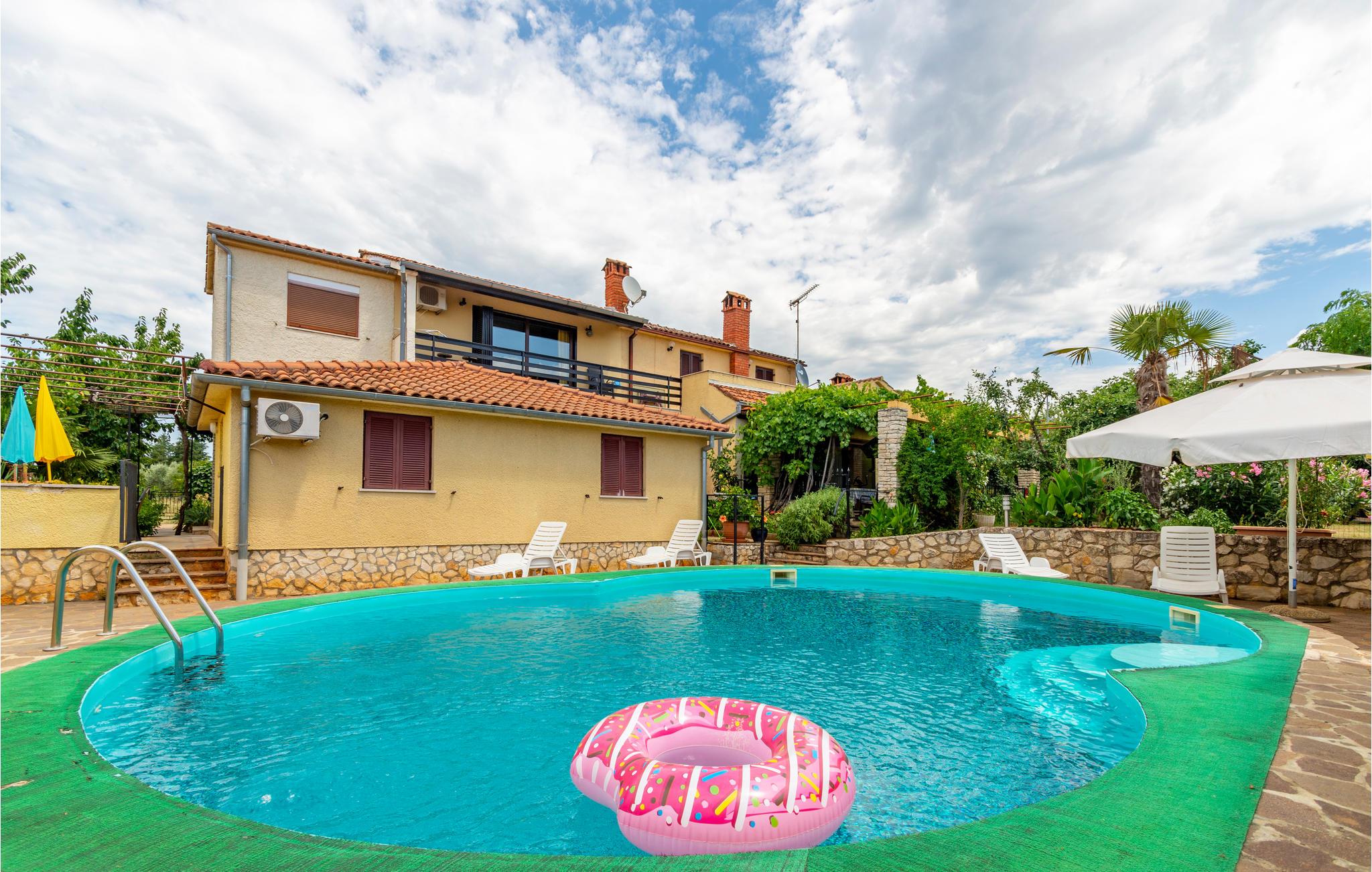 I finder dette komfortabelt indrettede feriehus nær havet og den kulturelt vigtige by Porec. Lejligheden ligger i et familiehus med en idyllisk beliggenhed. Den er praktisk udstyret og byder på gode rammer for en afslappende ferie med familien inklusiv jeres firbenede ven. I har adgang til en fælles have med grill og swimmingpool. Lad dagen ende dejligt på terrassen under vinstokkene med lækre snacks og kolde forfriskninger.