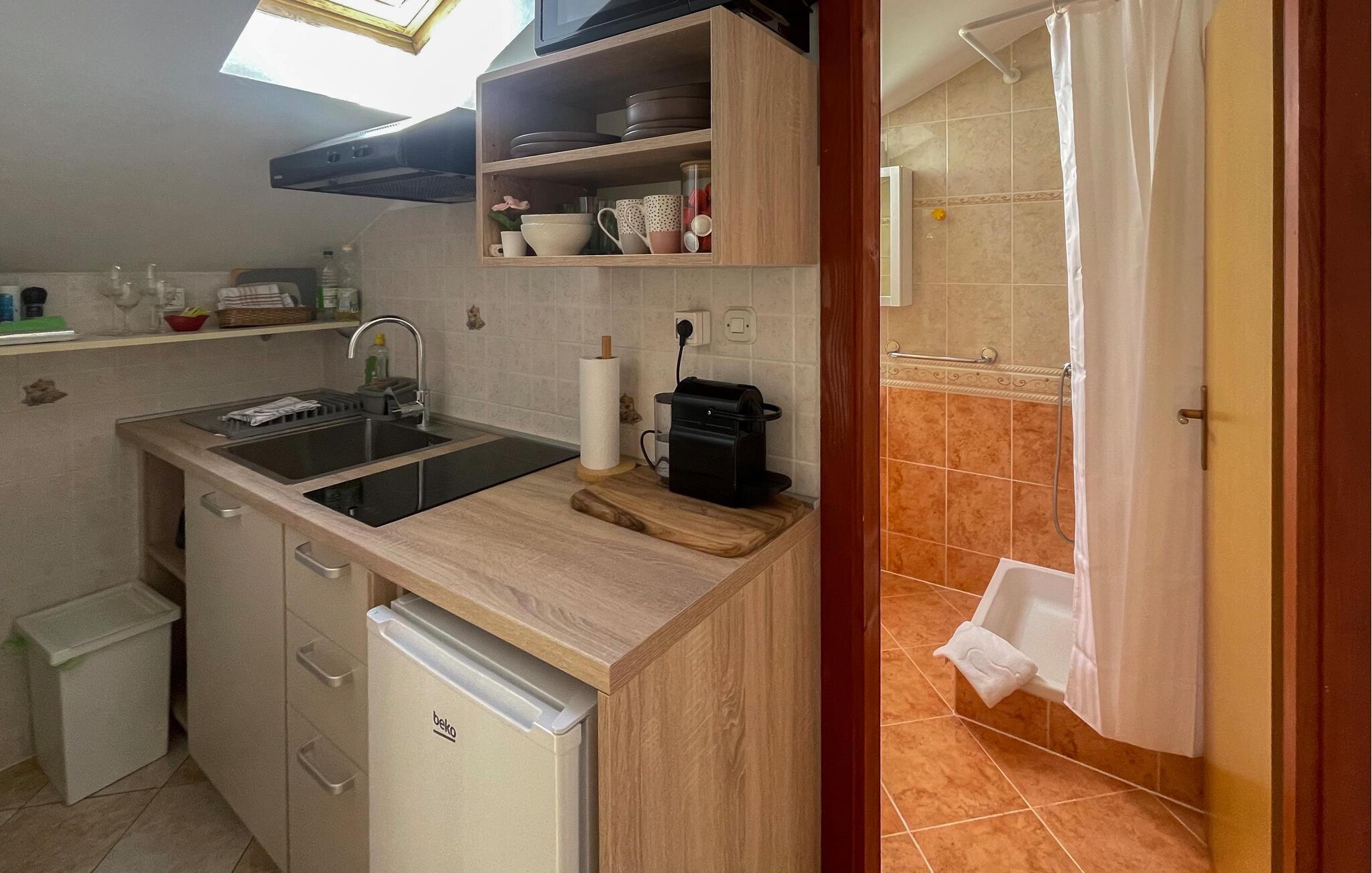 I en af de skønneste dele af Porec, Finida, ligger denne private ejendom med disse enkelt og bekvemt indrettede ferielejligheder. I haven står en fælles grill, hvor I kan inspirere hinanden til nye lækkerier over gløderne. Tag gerne børnene med, da her er en legeplads lige i nærheden. På grund af de hyggelige skrå vægge i CIE185 og CIE189 er laveste loftshøjde i siden ca. 160 cm. I byens centrum er der en rig kultur og historie, hvor der er talrige attraktioner. Der er ikke langt til nærmeste strand, hvor I kan slappe af i solen dagen lang, med afkølende pauser i det dejlige hav. Har I cykler med – eller kan leje – så prøv en tur ad den kendte cykelsti Parenzana, der er ca. 80 km lang.