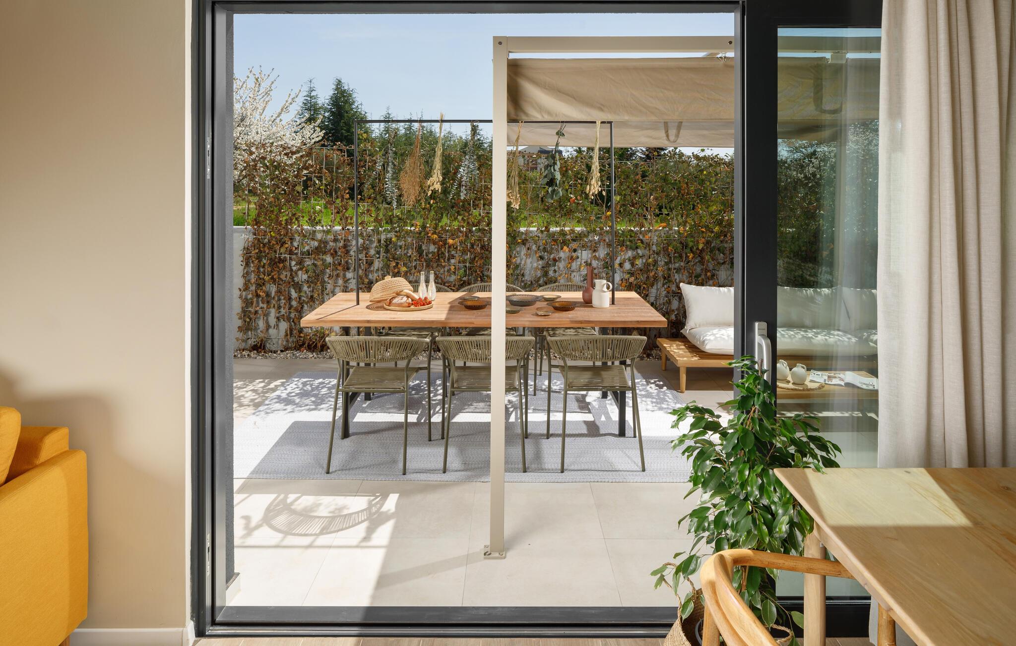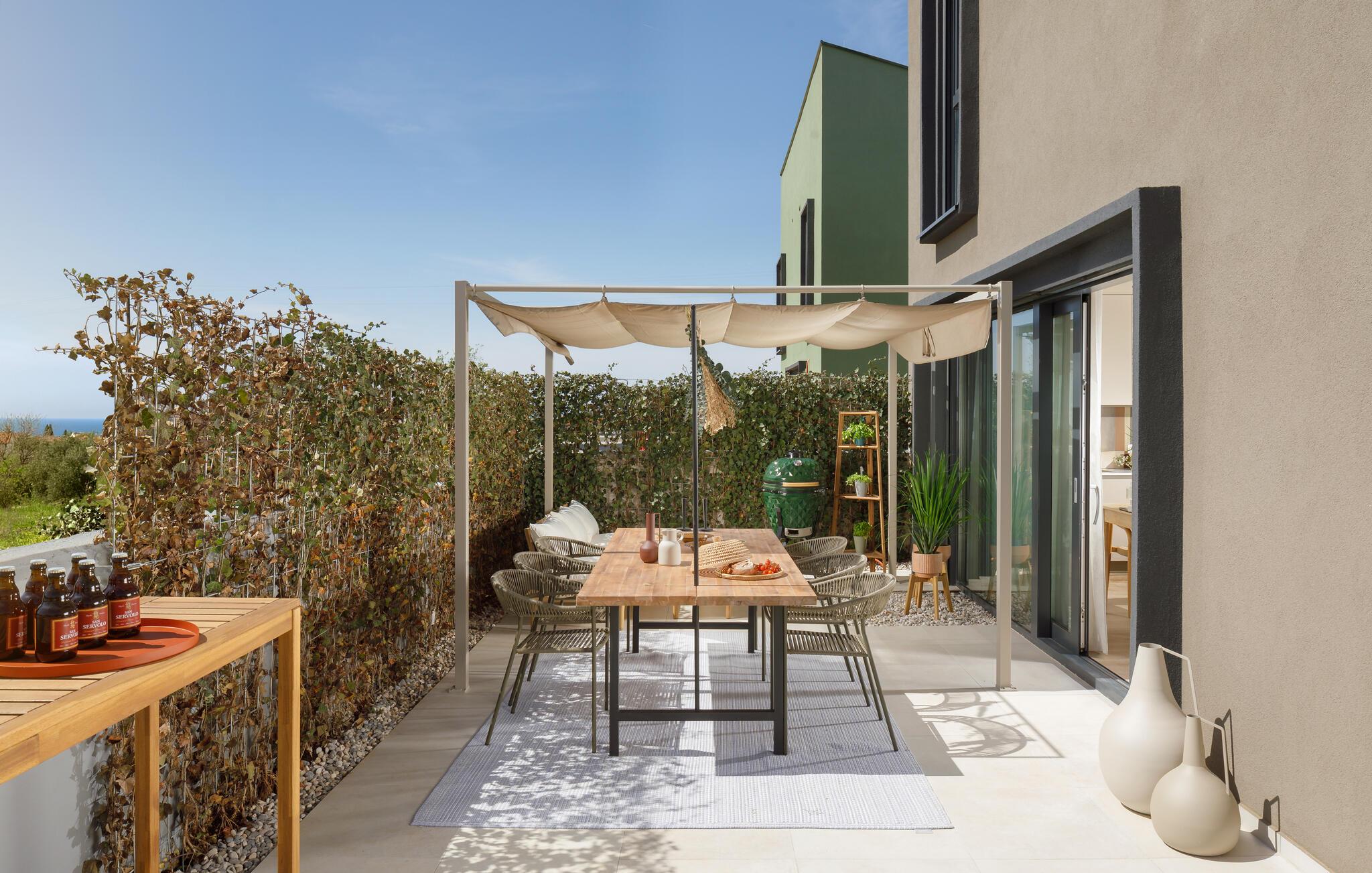 Nyd den rummelige have med svømmespa, slap af på liggestolene eller afslut dagen med en lækker grillaften på den overdækkede terrasse. Her kan I opleve ren ferieglæde i en stilfuld atmosfære.