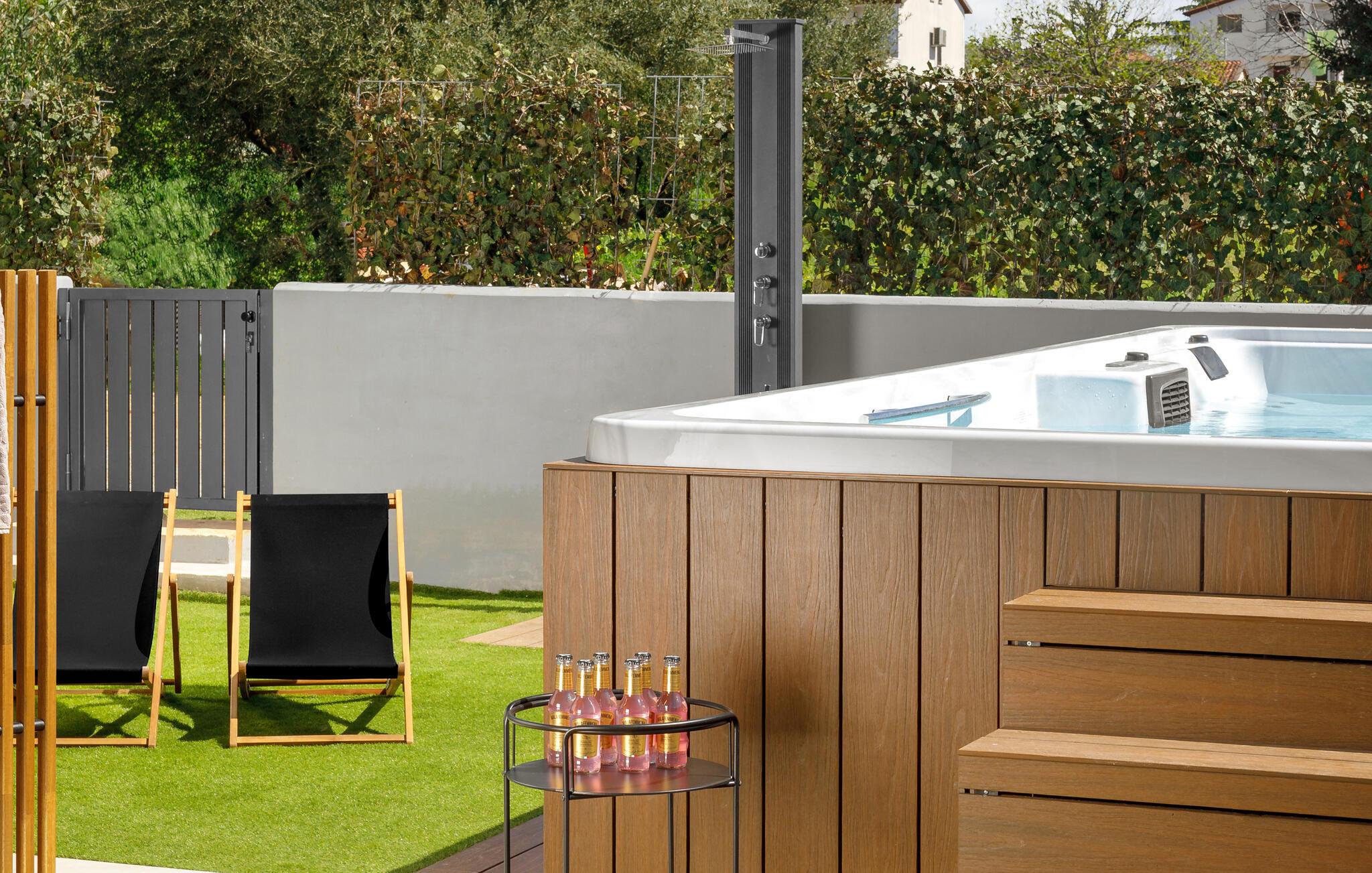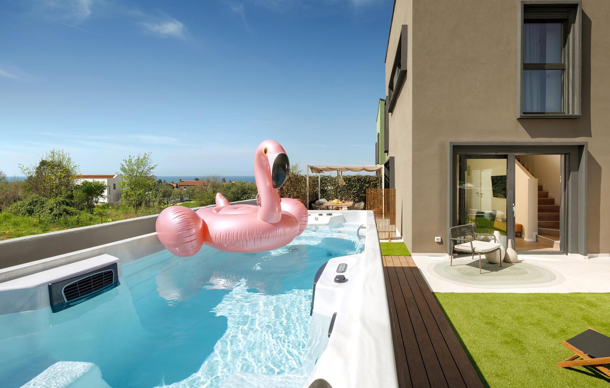 Slap af med familien i dette smukke og moderne feriehus med svømmespa.