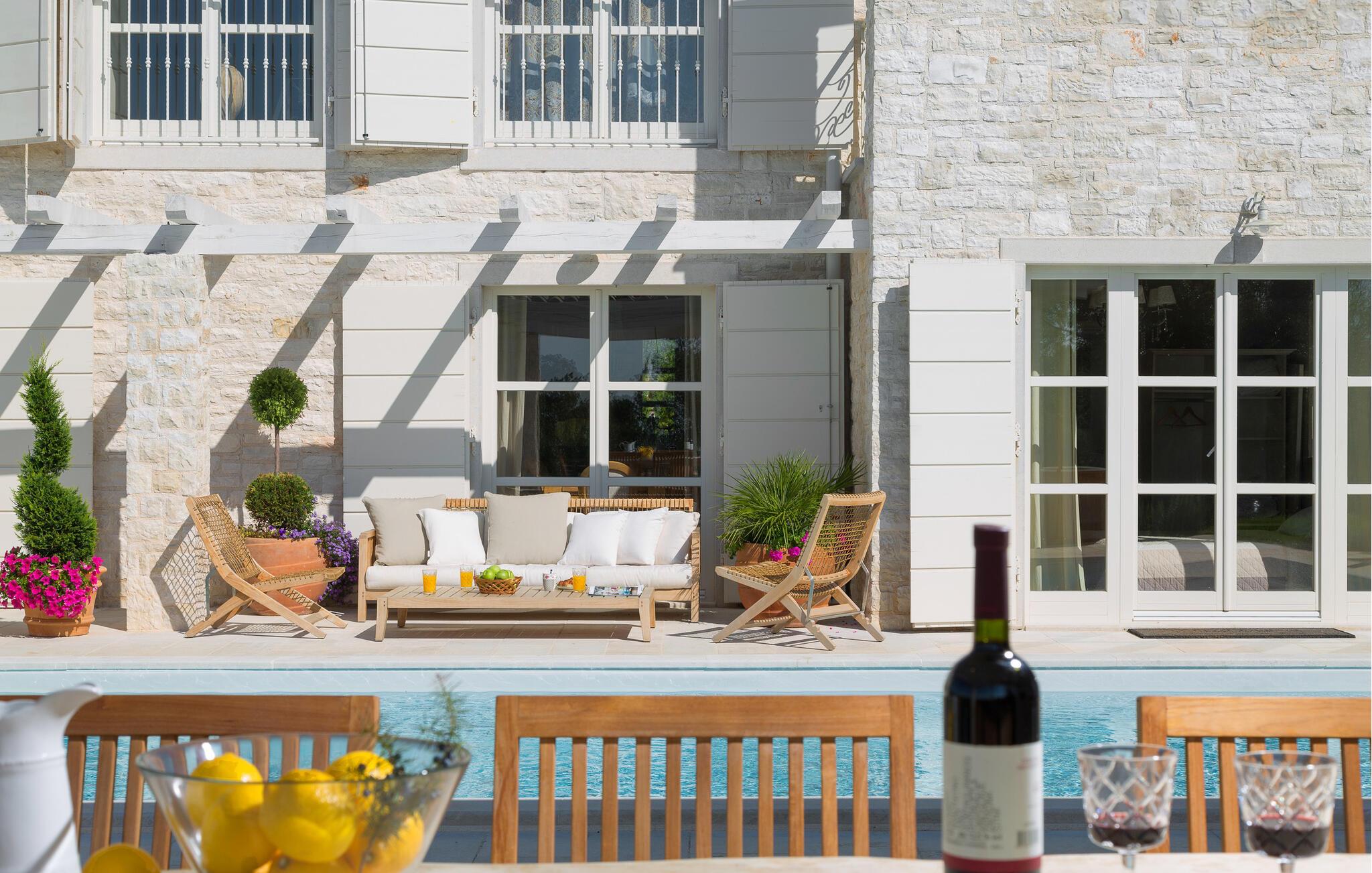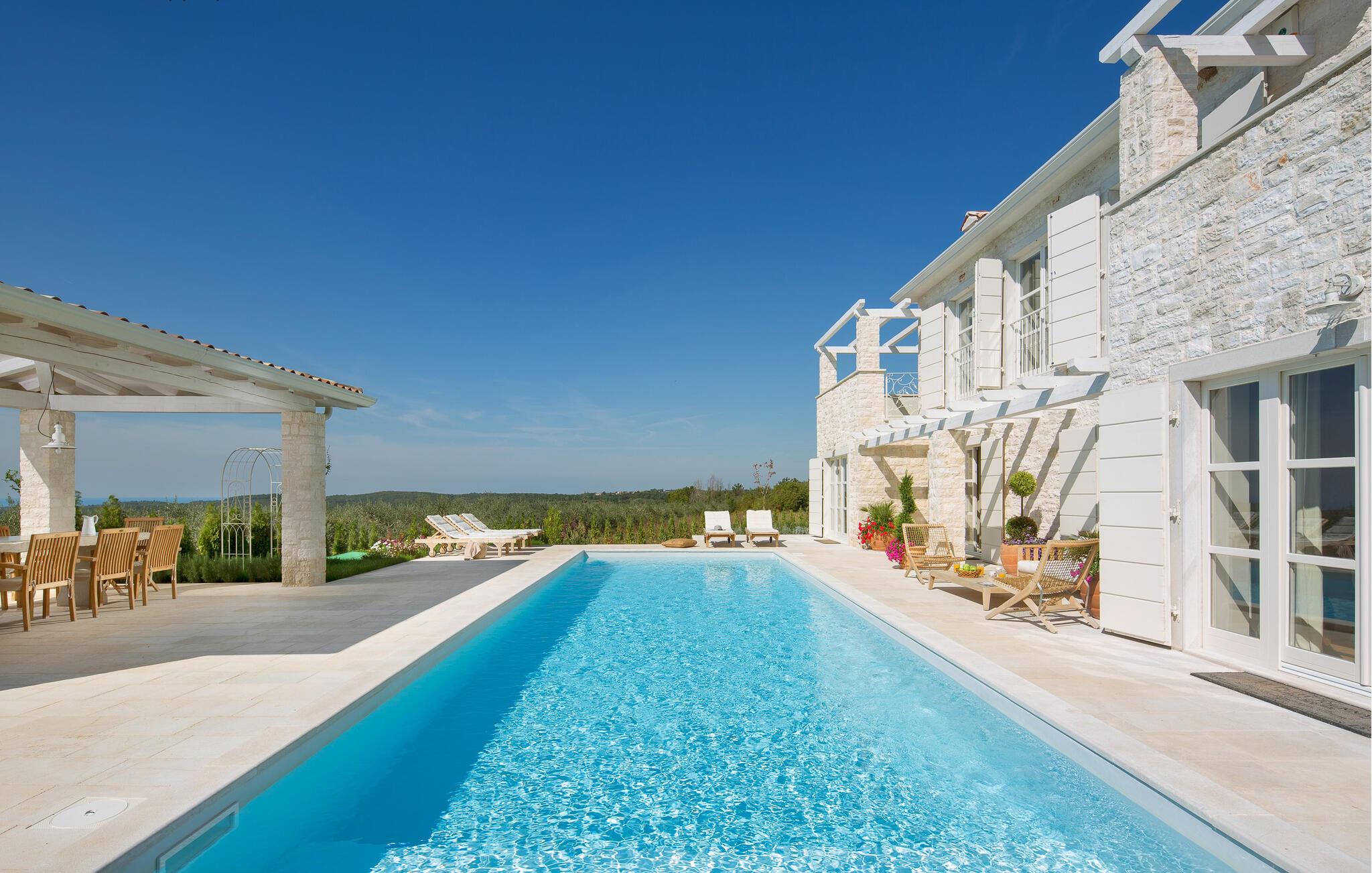 Om morgenen lokker poolen med en forfriskende dukkert eller et sjovt spil vandpolo. Slap af på en liggestol med en kølig drink eller fordyb jer i jeres ferielæsning. Om aftenen kan I tænde grillen, og dagen kan I afslutte med et måltid under åben himmel og en fin kroatisk vin.