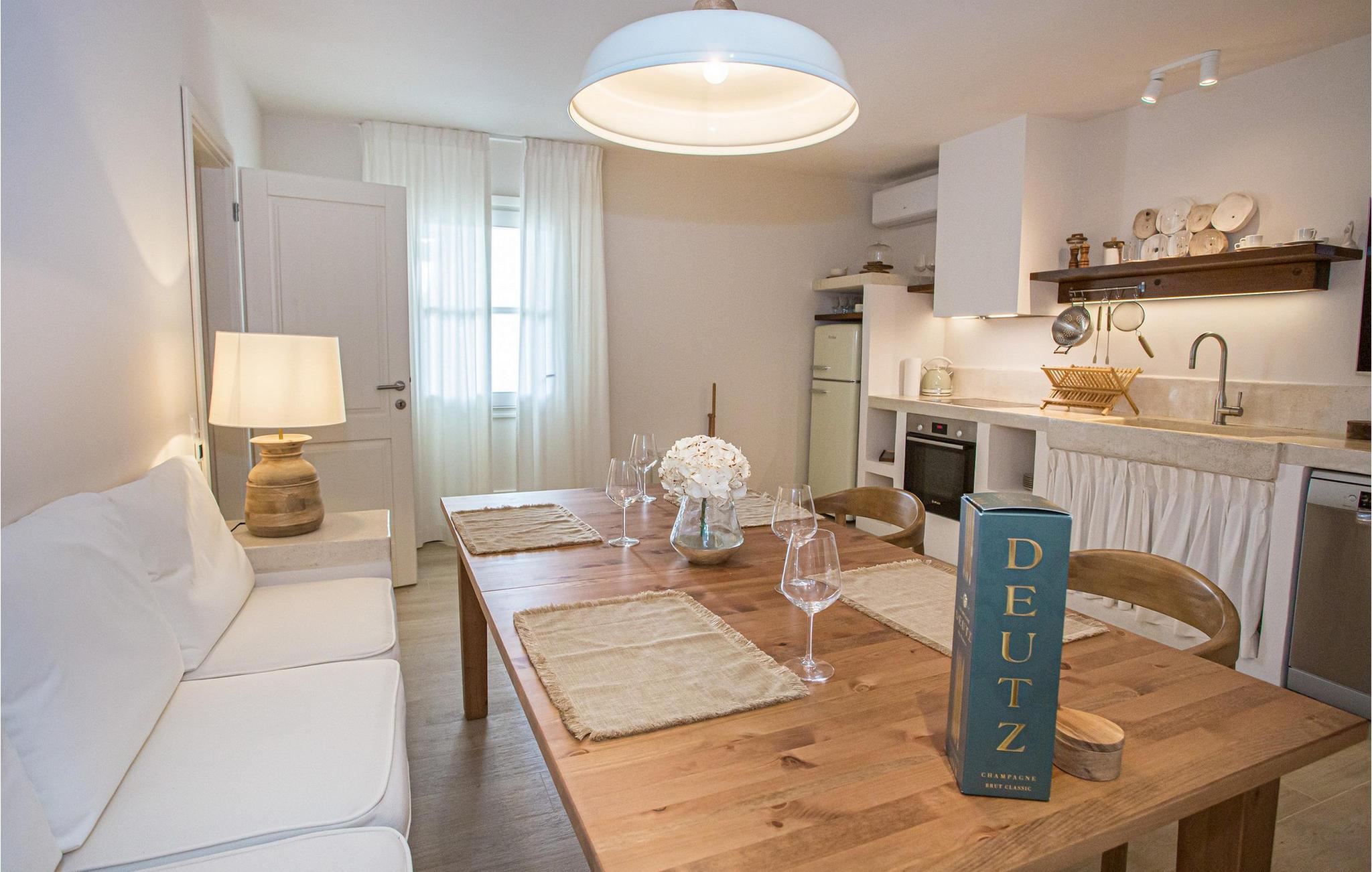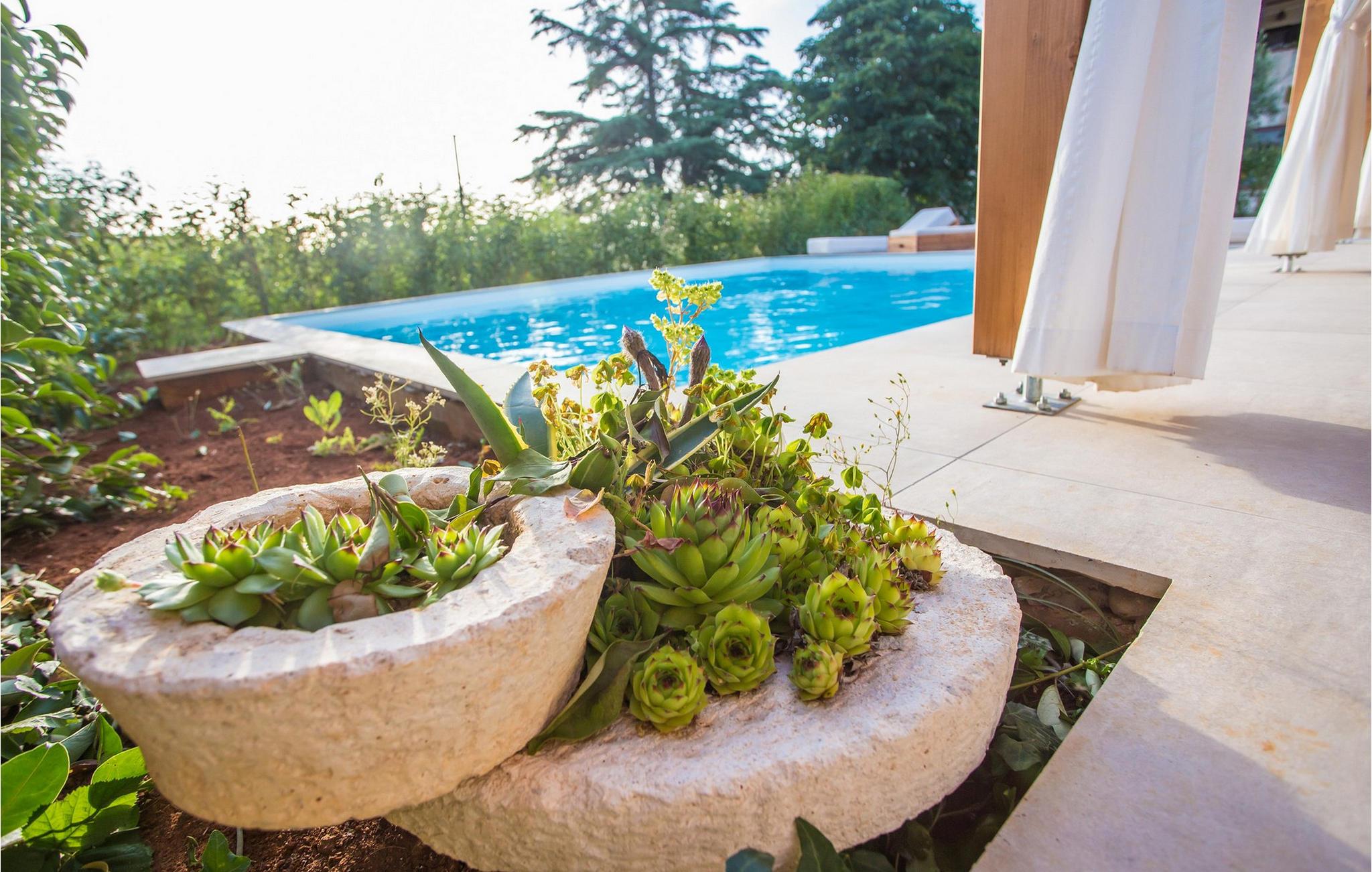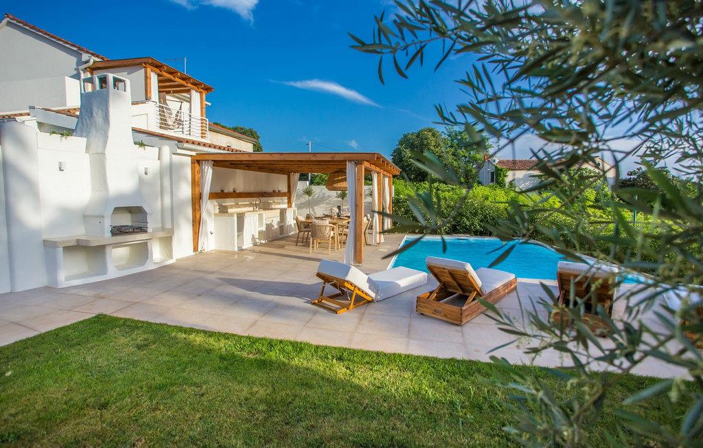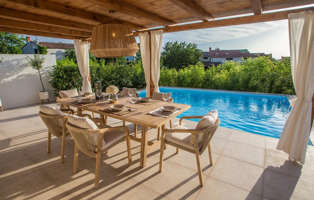 Villa San Biagio Star ligger i Porec, en lille by på halvøen Istrien, der har titlen som en af de vigtigste turistdestinationer, både for ferie og for at nyde kultur og gastronomi. Perfekt til luksuriøs afslapning med familie og venner, villaen er klar til at tilbyde dig alt, hvad du altid har drømt om. Den fuldt klimatiserede Villa San Biagio Star, bygget i 2022 i rustik stil, tilbyder sine gæster 85 m2 boligareal, der vil inspirere dig. Villaen sover maksimalt 4 personer komfortabelt indkvarteret i 2 soveværelser med dobbeltsenge. Værelserne leder direkte ud på terrassen, hvor du kan sidde i sofaen og drikke din morgenkaffe og nyde freden og roen. Villaen har desuden et almindeligt badeværelse med brusekabine. I det smukt møblerede køkken finder du alt hvad du behøver for at tilberede dine yndlingsmåltider og lige ved køkkenet ligger spisestuen med et spisebord til 4 personer. Du vil helt sikkert tilbringe det meste af din tid på den udendørs terrasse, som har en pool på 22 m2 og en dybde på 1,4 meter. Ved siden af poolen er der liggestole til solbadning og hvile, også er der et overdækket udendørs bord til at spise og sidde. Sommerkøkkenet, som ligger lige ved siden af spisebordet, vil være til stor nytte for dig. På terrassen, lige ved siden af grillen, er der også en udendørs bruser. Du kan også tilberede måltider udendørs på kul- eller brændegrillen og have fuldstændig privatliv, da du er omgivet af en smukt anlagt have. Et separat toilet, en vaskemaskine og et strygejern er tilgængelige som ekstraudstyr. Villaens gård er indhegnet og du har 1 parkeringsplads udenfor. Sammen med Pula, Umag og Rovinj er byen Porec en af de mest interessante destinationer, der besøges af talrige indenlandske og udenlandske turister hvert år. Besøg også forskellige restauranter og caféer, hvor du kan opleve Istriens charme med traditionelle retter og en lækker dråbe vin. Det mest betydningsfulde og samtidig det mest værdifulde kulturelle og historiske sted i Porec er komplekset af Euphrasian Basilica. Det er på UNESCOs verdensarvsliste og blev bygget i det 6. århundrede. Gå ikke glip af et besøg i byen Rovinj, der ligger 35 km fra Porec, som også er en af Istriens juveler. Forkæl dig selv med en uforglemmelig ferie på Villa San Biagio Star, som du vil vende tilbage til næste år! *Ved siden af Villa San Biagio Star ligger søstervillaen San Biago Heart. Begge villaer udlejes som separate enheder, men kan også lejes som villakompleks, hvis der er en større gruppe gæster (maks. 8).