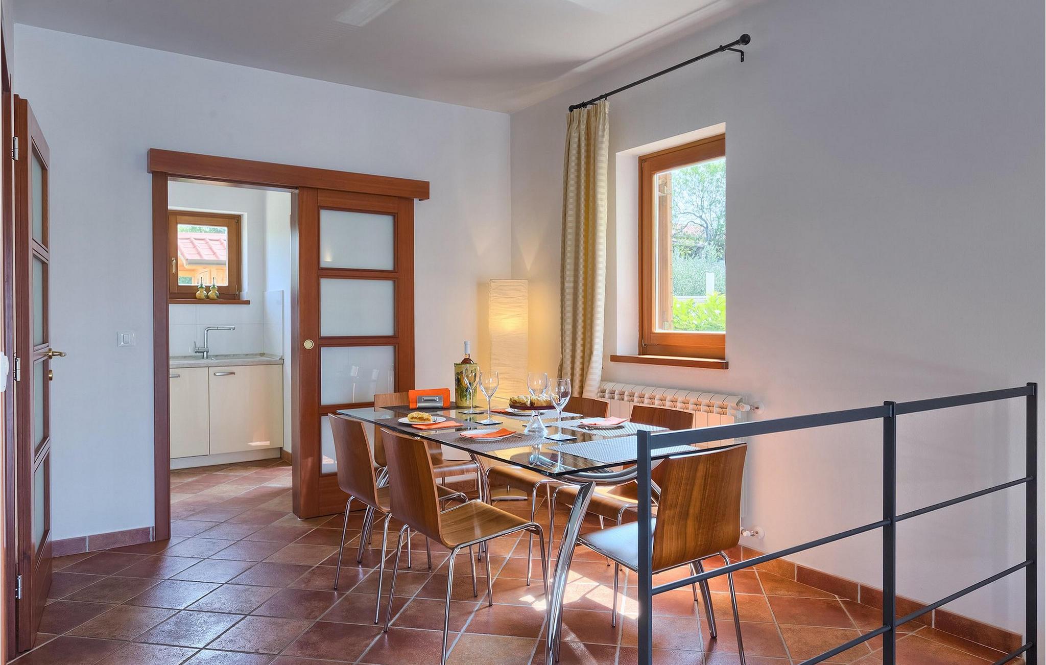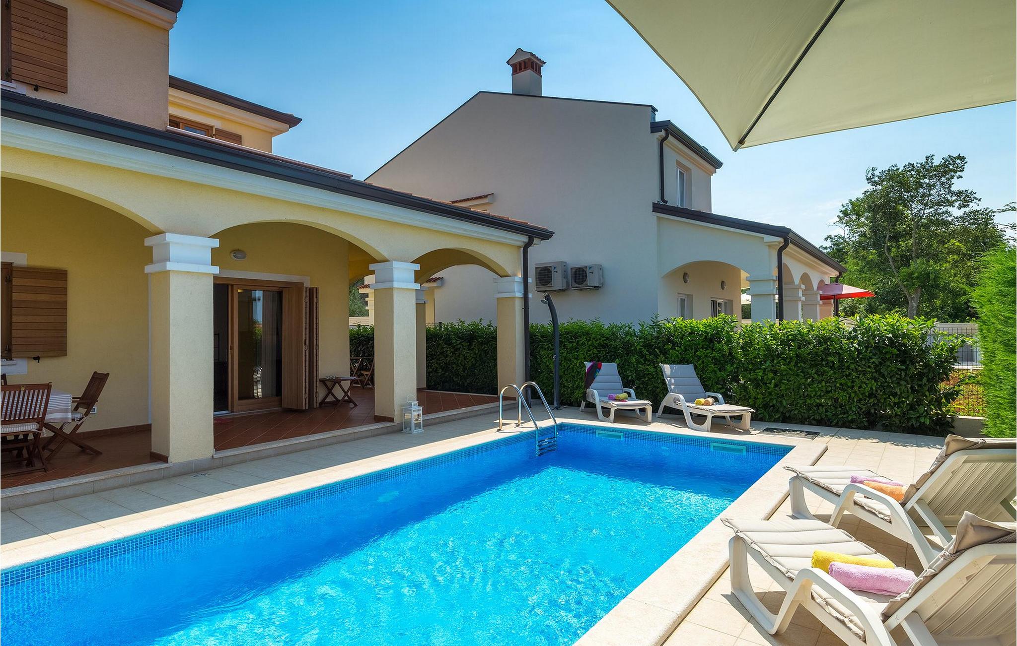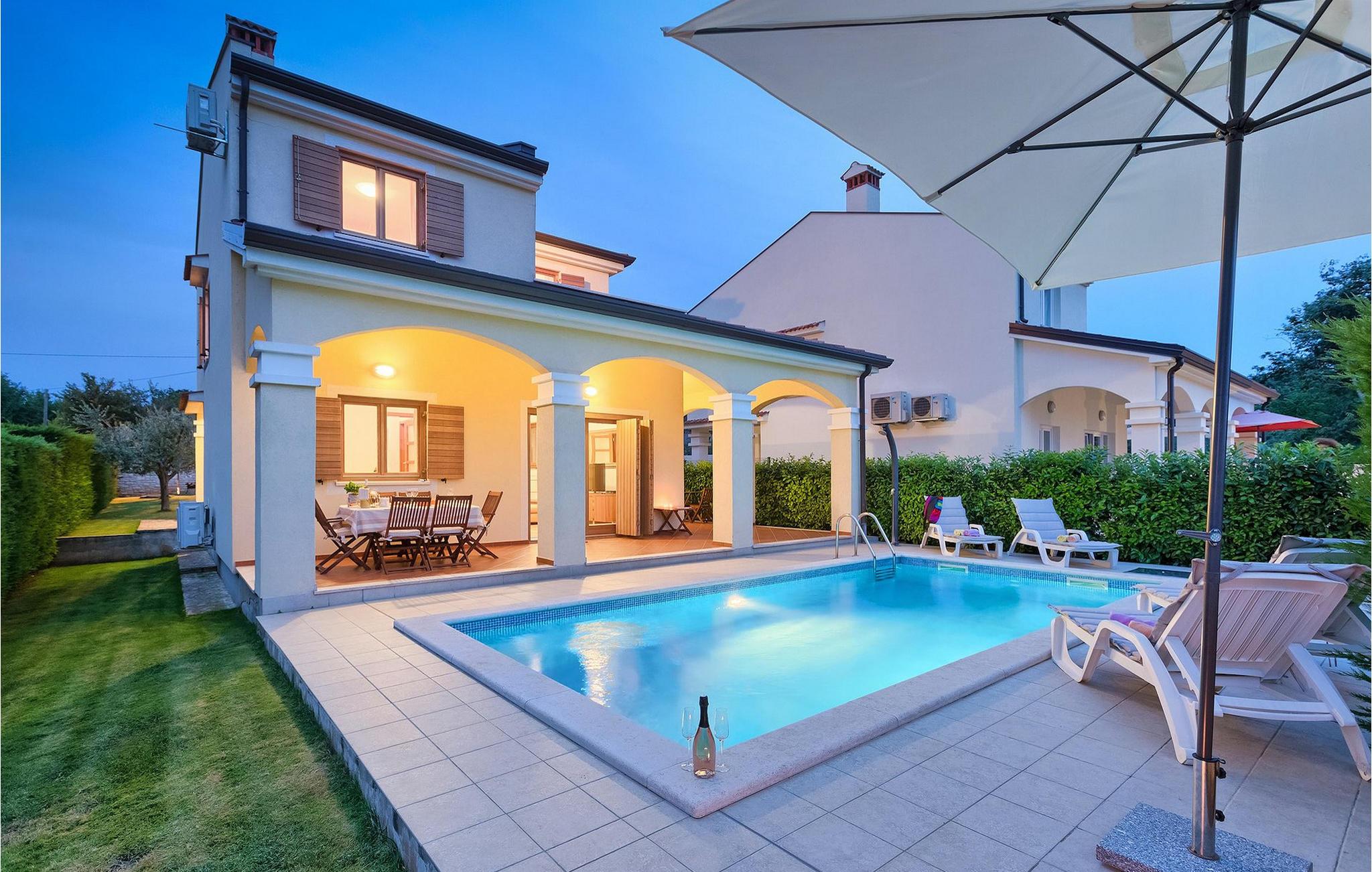 Den charmerende familie Villa Roza er gemt væk i en lille landsby nær Porec, et perfekt feriehus, der bare venter på at bære alle dine problemer væk. Denne smukke villa med 3 soveværelser har en privat pool og en dejlig have. Det er bare det drømmende feriested, du har ledt efter. Går du gennem forhaven vil du passere oliventræerne - et autentisk symbol på Istrien. Når du kommer ind i villaen, vil du befinde dig i stueetagen. Vær forberedt på at lade dig rive med af en lys, elegant og hyggelig stue/spisestue efterfulgt af et fuldt udstyret køkken. Fra stuen er der udgang til den skønne terrasse med privat pool. Når du går til første sal, finder du tre soveværelser. To af soveværelserne har dobbeltsenge og det ene har en enkeltseng. Et af soveværelserne har desuden en smuk altan med en drømmeagtig panoramaudsigt over havet. Et perfekt syn til at starte din dag. Villa Roza er udstyret med to badeværelser, et med badekar og et andet med bruser. Villaen kan charmere dig til at blive længere end forventet. Et ideelt sted at nyde solbadning, mens du læser den bog, du har lagt til side i et stykke tid. Der er en gasgrill og et spisebord, hvis du føler dig inspireret til at lave nogle lækre måltider. Hvorfor ikke prøve nogle autentiske kroatiske opskrifter? Rul gennem vores galleri af Villa Roza og lad dig fascinere af denne unikke villa. Zbandaj er en stille landsby kun 6 km fra Porec - det største turiststed i Istrien. Butik og restauranter kan findes inden for 500 m fra villaen. Strande ligger 7 km fra Zbandaj, og du kan vælge en strand efter eget valg omkring Porec-området. Porec turisme er mere end havet, solen og turistbilledet. Turisterne kan sagtens genkende byen, der bevarer sine historiske værdier. Du kan finde museer, gallerier og mange værdifulde bypaladser. Den uvurderlige bymidte, beliggende på en lille halvø omgivet af havet. Dens grundlag blev sat på plads under det romerske imperiums styre.