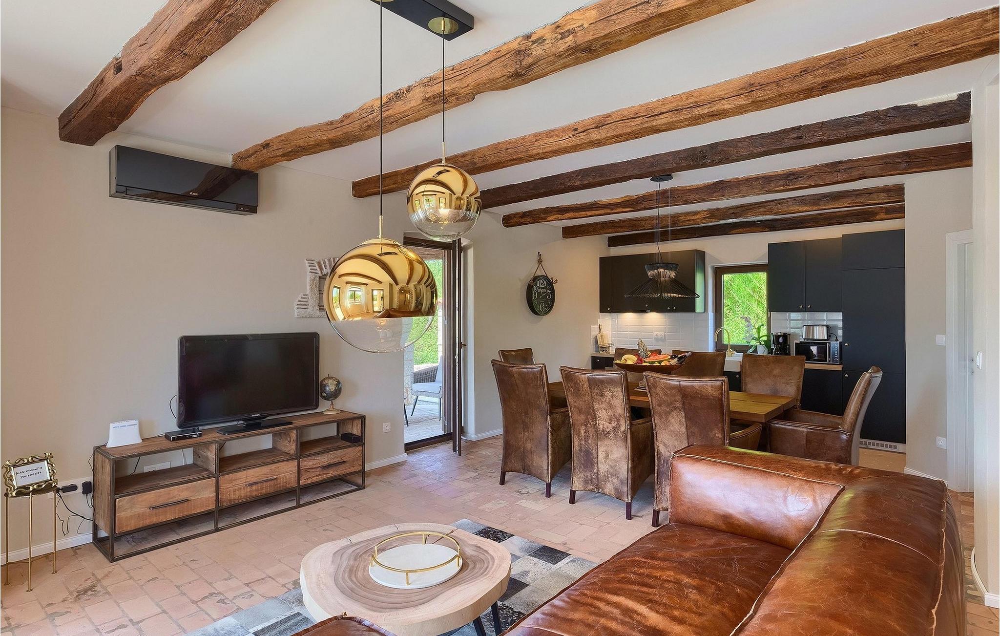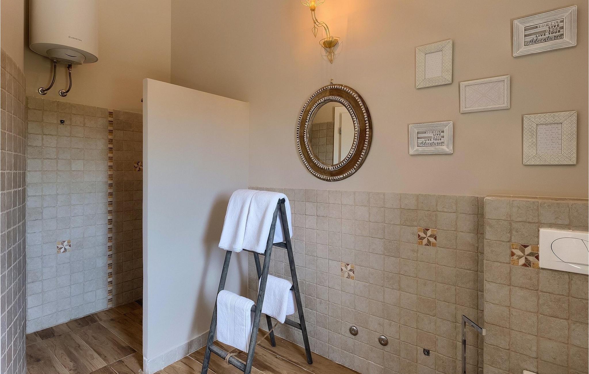 Et par trin fører fra villaens stueetage til poolområdet med komfortable liggestole, der venter på, at du skal prøve dem. Lav dig selv en dejlig forfriskende drink og nyd solen ved din egen private pool. Udearealet byder også på en dejlig skyggefuld have med et par opholdsområder. En udendørs spiseplads er ideel til spisning under åben himmel - du kan forberede mails på en traditionel stengrill. Villaen har aircondition, Wi-Fi og privat parkering.