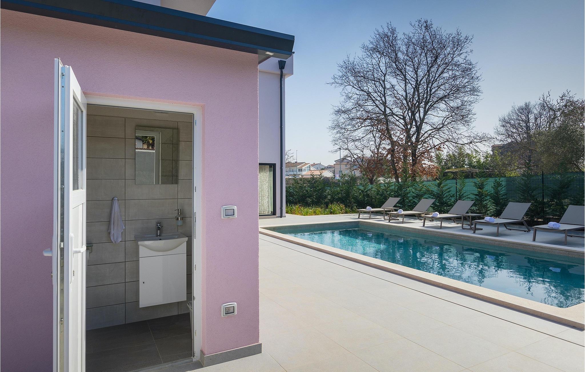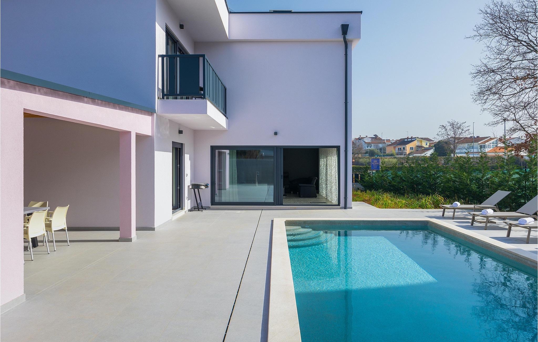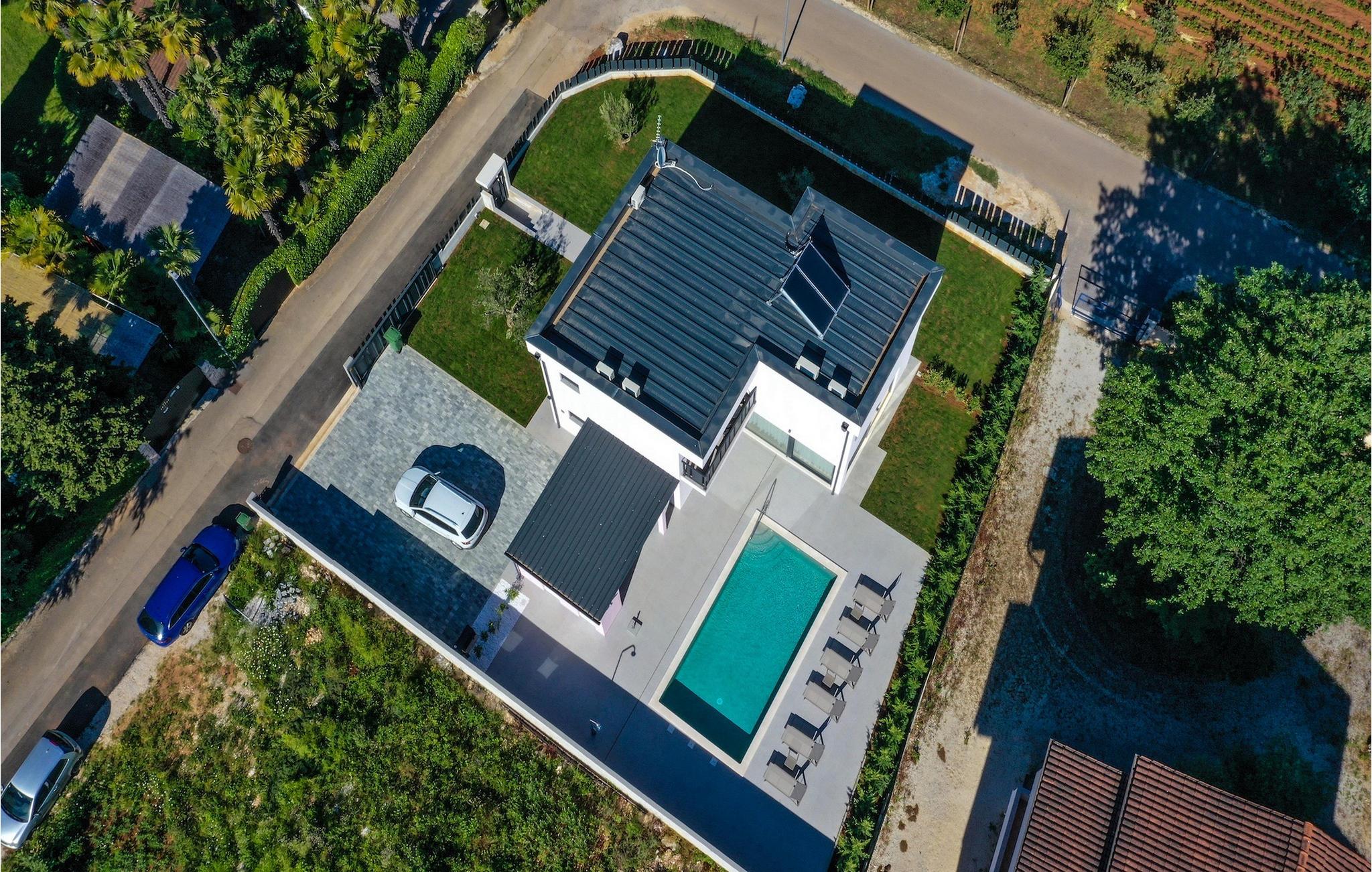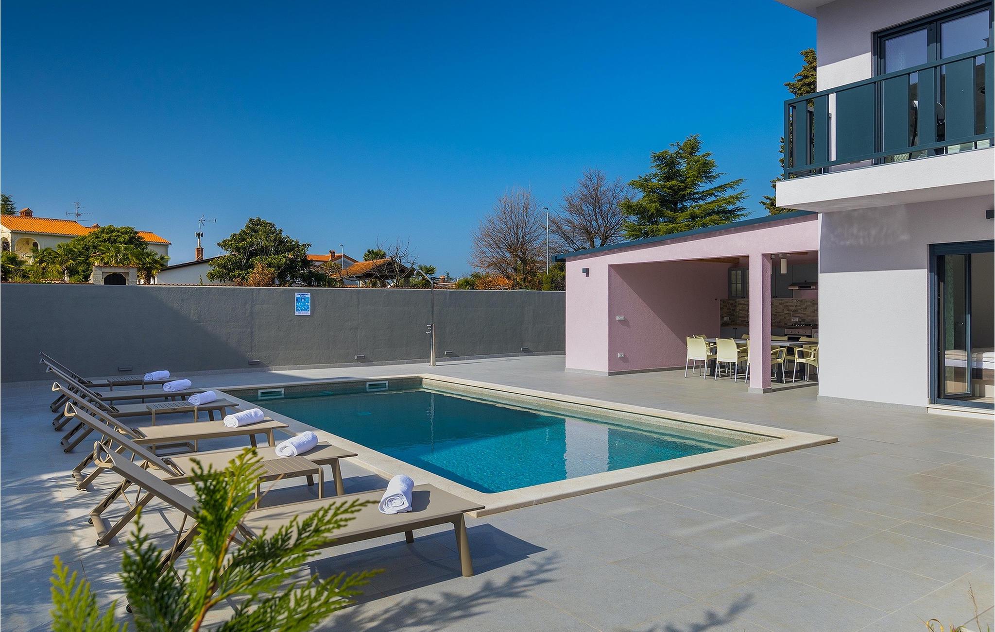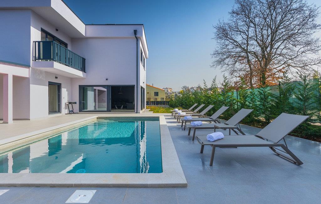 Den smukke Villa Jacky ligger i den vidunderlige kystby Porec. Villaen i to etager har 4 moderne designede soveværelser og kan i alt rumme op til 8 personer. Interiøret er meget lyst og luftigt på grund af de store vinduer og glasdøre. Den åbne stueetage består af et opholdsområde med SAT/TV, et fuldt udstyret køkken med spiseplads og et separat toilet. Der er også et smukt indrettet soveværelse med eget badeværelse og direkte udgang til den store terrasse. På første sal er der yderligere tre soveværelser med ensuite badeværelser og en lille terrasse, hvorfra man kan nyde den smukke udsigt over omgivelserne. Alle værelser har tv og aircondition. Foran villaen ligger en stor, indbydende pool, som indbyder til en forfriskning på varme sommerdage. Udenfor finder I et sommerkøkken med gasgrill, som er perfekt til en familiesammenkomst. Hvis du leder efter en afslappende ferie med din familie og venner, er denne villa et perfekt valg! Så gå ikke glip af denne mulighed og bestil Villa Jacky.Villa Jacky ligger i den smukke kystby Porec, kun 900 meter fra det krystalklare Adriaterhav. Gå en tur gennem byens smalle gader og nyd historiske seværdigheder såsom den Unesco-listede Euphrasius-basilika. Gå ikke glip af at besøge andre kystbyer som Rovinj og Pula, samt byer på østkysten som Opatija og Rijeka. For alle elskere af en aktiv ferie er Istrien et ideelt valg. Her finder du adskillige cykel- og vandrestier, topgolfbaner og talrige muligheder for vandsport. Regionen Istrien har længe været på listen over alle elskere af gastronomi. Hvis du er en af dem, anbefaler vi, at du prøver en række traditionelle retter. I restauranterne på kysten finder du frisk fisk, krabber og skaldyr, mens du inde i landet kan prøve fuzi med hvide trøfler, pljukanci eller istrisk oksekød boskarin. For at lære Istrien bedre at kende, så tjek helt sikkert vores MyIstria-guide, hvor du kan finde mange interessante artikler om kultur, gastronomi og adskillige aktiviteter.