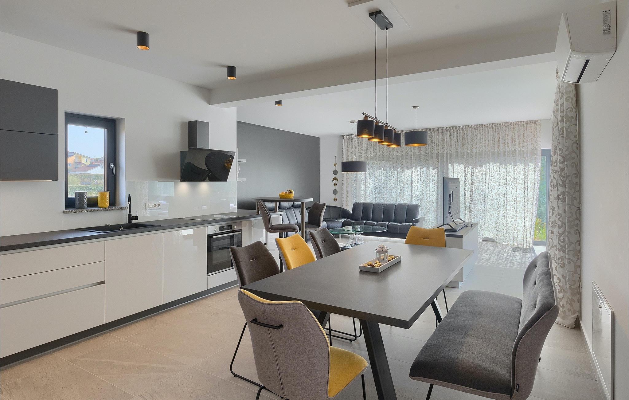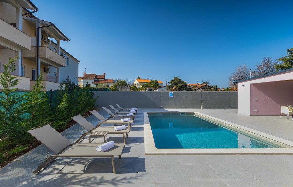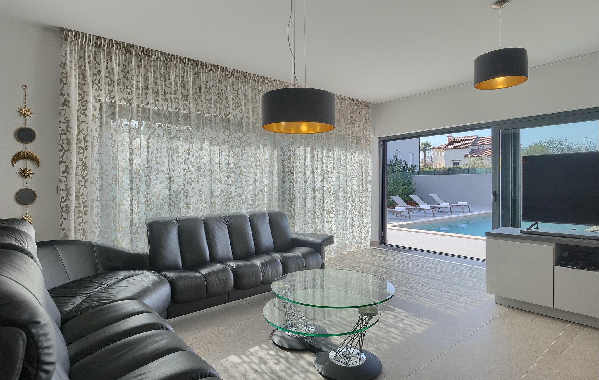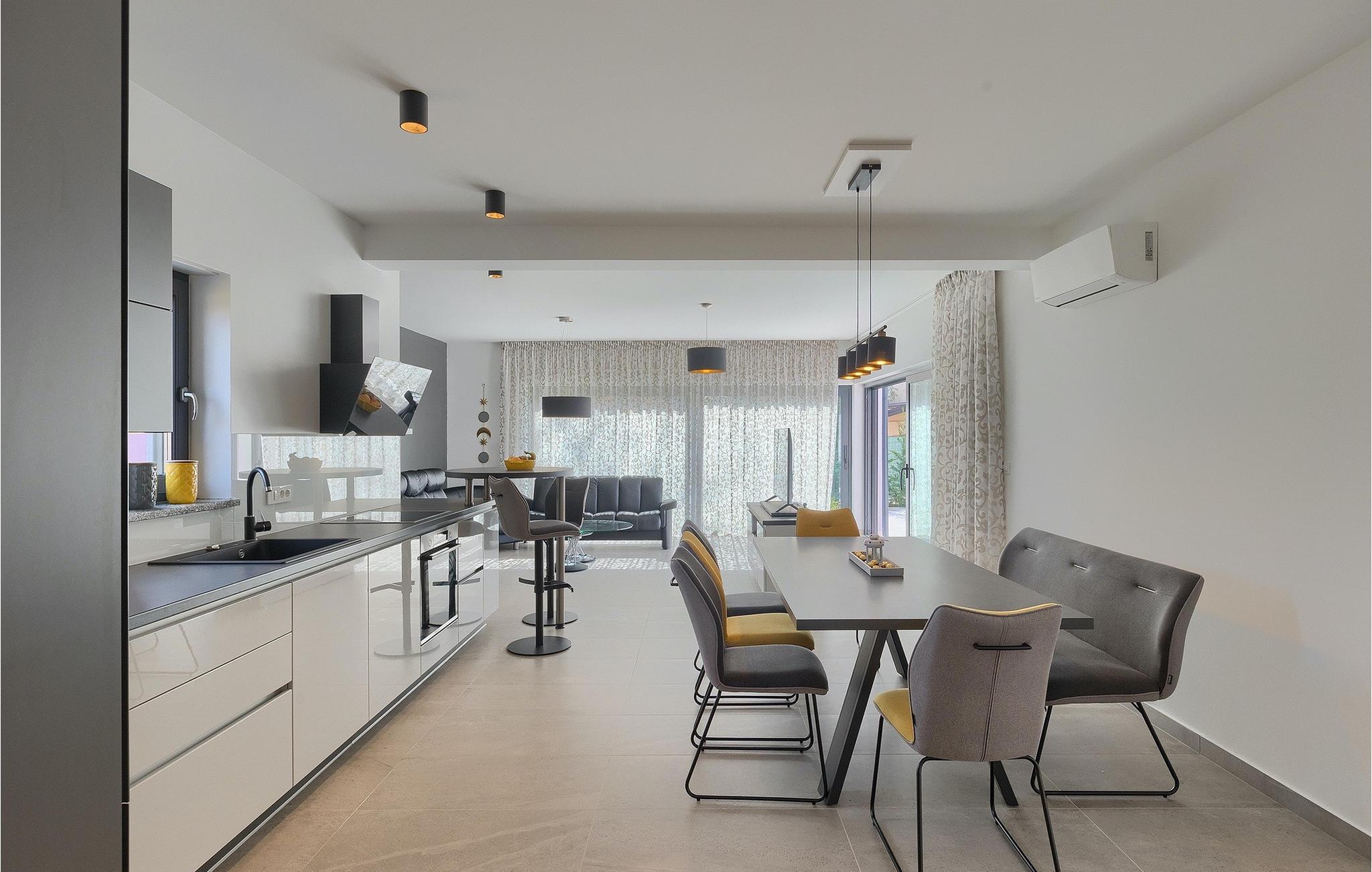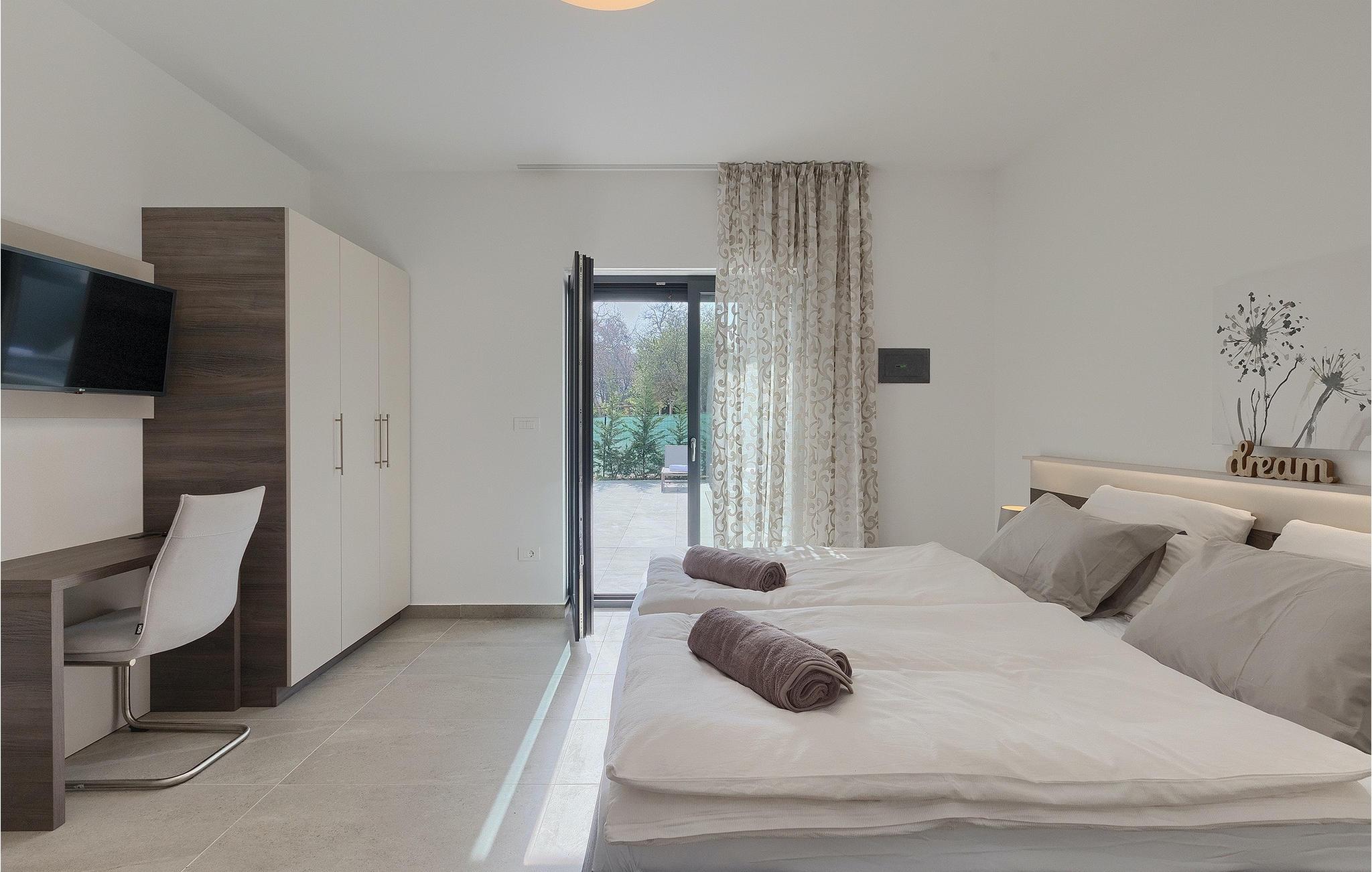 Den smukke Villa Jacky ligger i den vidunderlige kystby Porec. Villaen i to etager har 4 moderne designede soveværelser og kan i alt rumme op til 8 personer. Interiøret er meget lyst og luftigt på grund af de store vinduer og glasdøre. Den åbne stueetage består af et opholdsområde med SAT/TV, et fuldt udstyret køkken med spiseplads og et separat toilet. Der er også et smukt indrettet soveværelse med eget badeværelse og direkte udgang til den store terrasse. På første sal er der yderligere tre soveværelser med ensuite badeværelser og en lille terrasse, hvorfra man kan nyde den smukke udsigt over omgivelserne. Alle værelser har tv og aircondition. Foran villaen ligger en stor, indbydende pool, som indbyder til en forfriskning på varme sommerdage. Udenfor finder I et sommerkøkken med gasgrill, som er perfekt til en familiesammenkomst. Hvis du leder efter en afslappende ferie med din familie og venner, er denne villa et perfekt valg! Så gå ikke glip af denne mulighed og bestil Villa Jacky.Villa Jacky ligger i den smukke kystby Porec, kun 900 meter fra det krystalklare Adriaterhav. Gå en tur gennem byens smalle gader og nyd historiske seværdigheder såsom den Unesco-listede Euphrasius-basilika. Gå ikke glip af at besøge andre kystbyer som Rovinj og Pula, samt byer på østkysten som Opatija og Rijeka. For alle elskere af en aktiv ferie er Istrien et ideelt valg. Her finder du adskillige cykel- og vandrestier, topgolfbaner og talrige muligheder for vandsport. Regionen Istrien har længe været på listen over alle elskere af gastronomi. Hvis du er en af dem, anbefaler vi, at du prøver en række traditionelle retter. I restauranterne på kysten finder du frisk fisk, krabber og skaldyr, mens du inde i landet kan prøve fuzi med hvide trøfler, pljukanci eller istrisk oksekød boskarin. For at lære Istrien bedre at kende, så tjek helt sikkert vores MyIstria-guide, hvor du kan finde mange interessante artikler om kultur, gastronomi og adskillige aktiviteter.