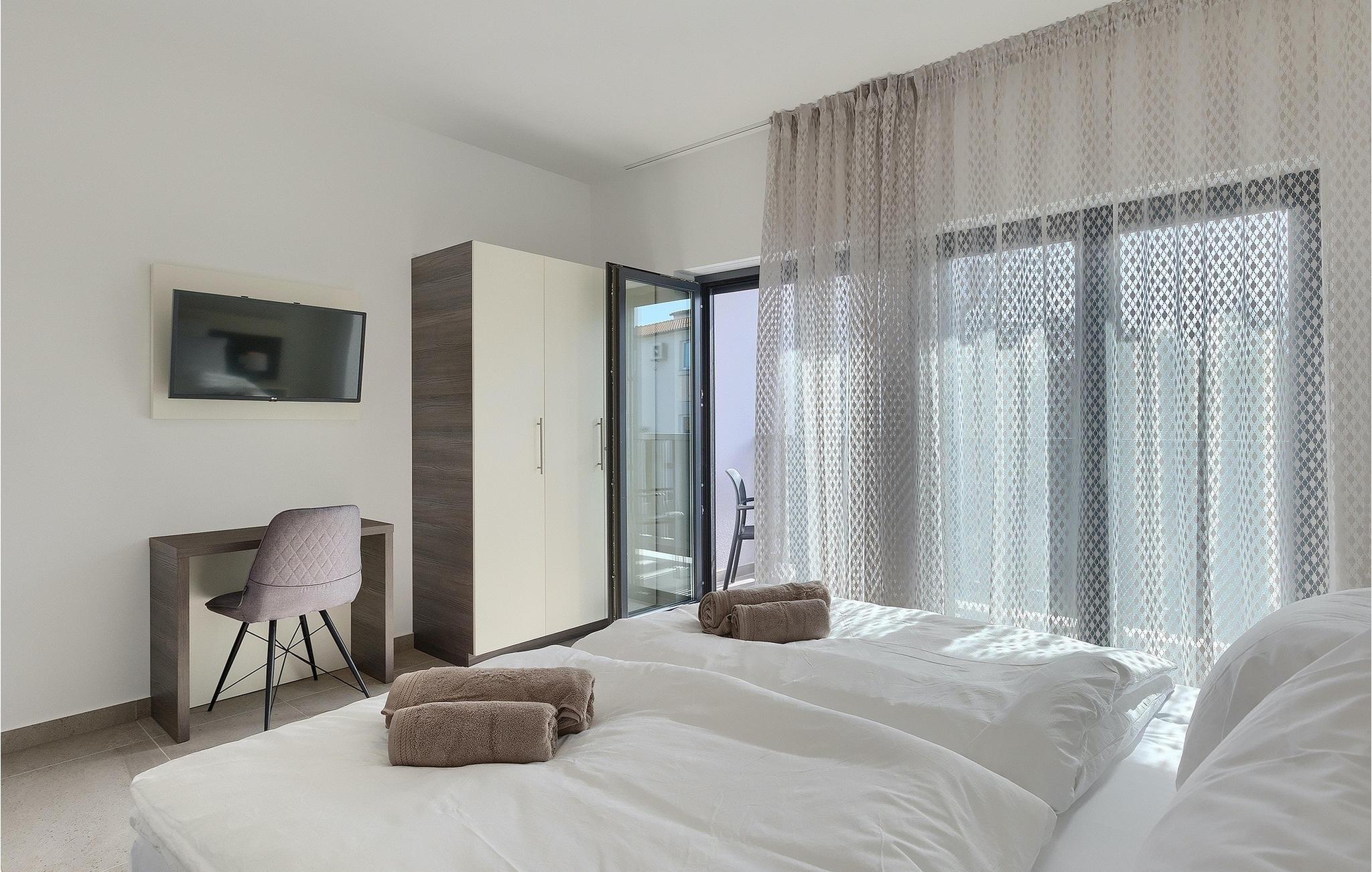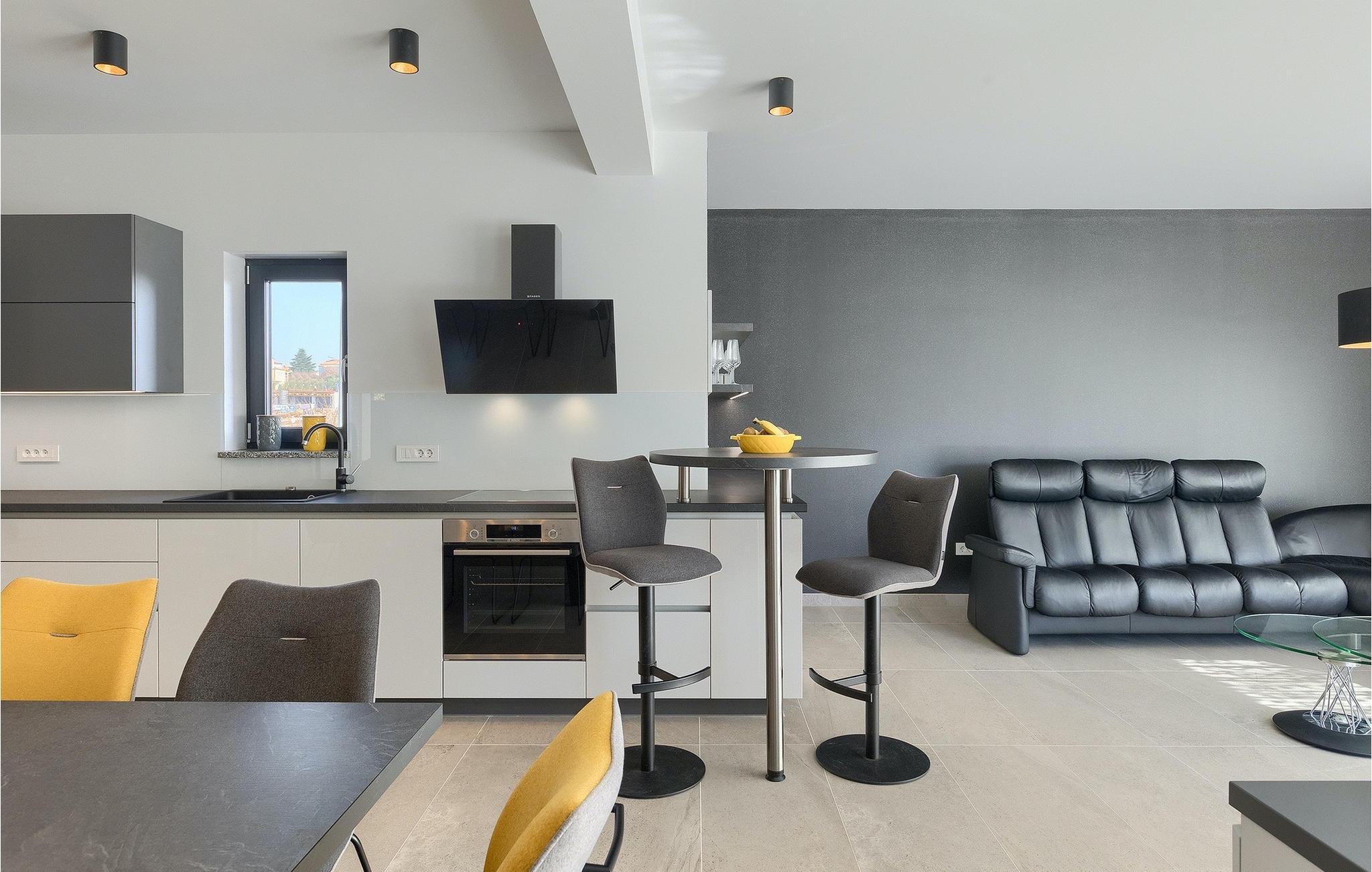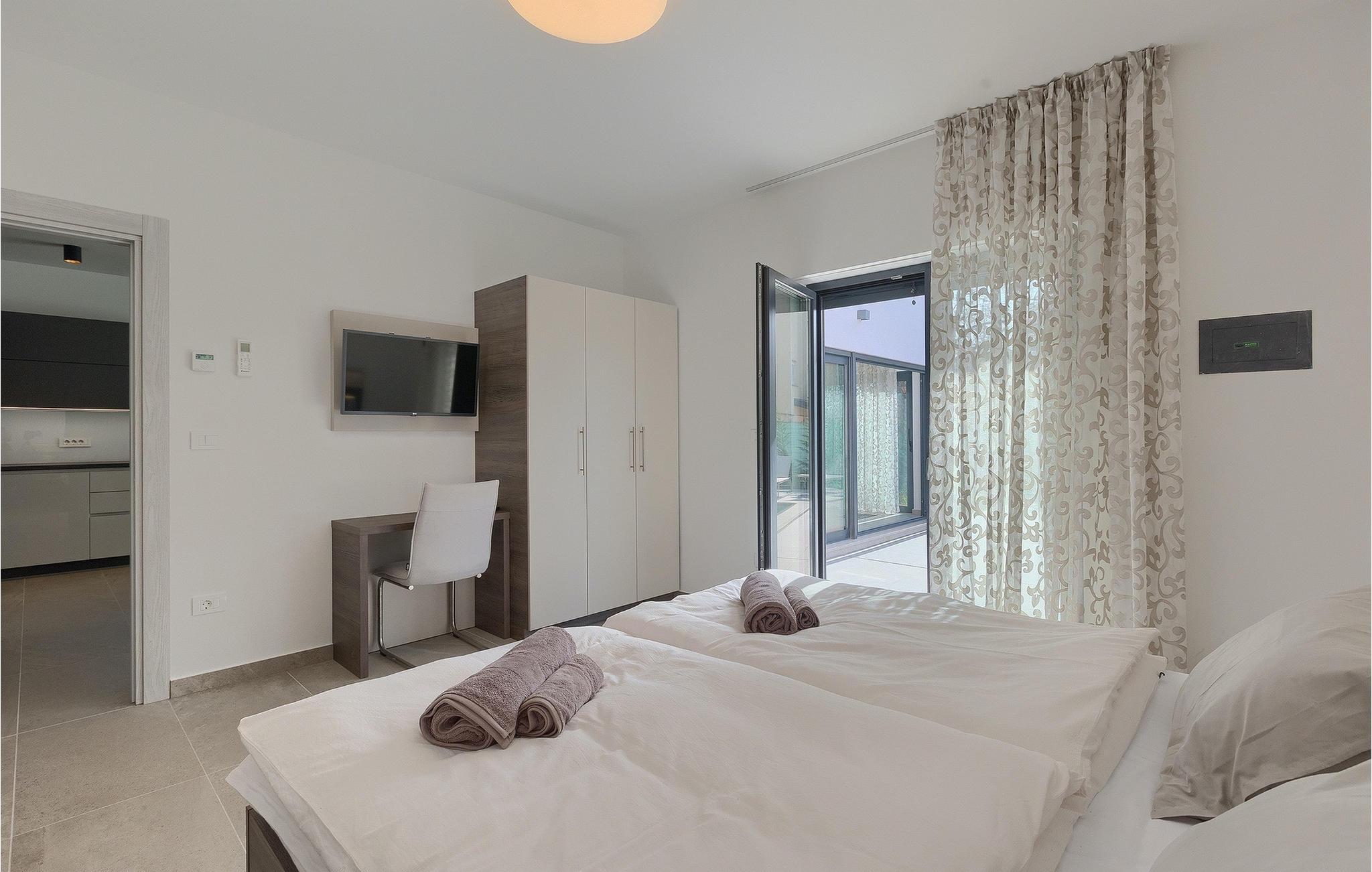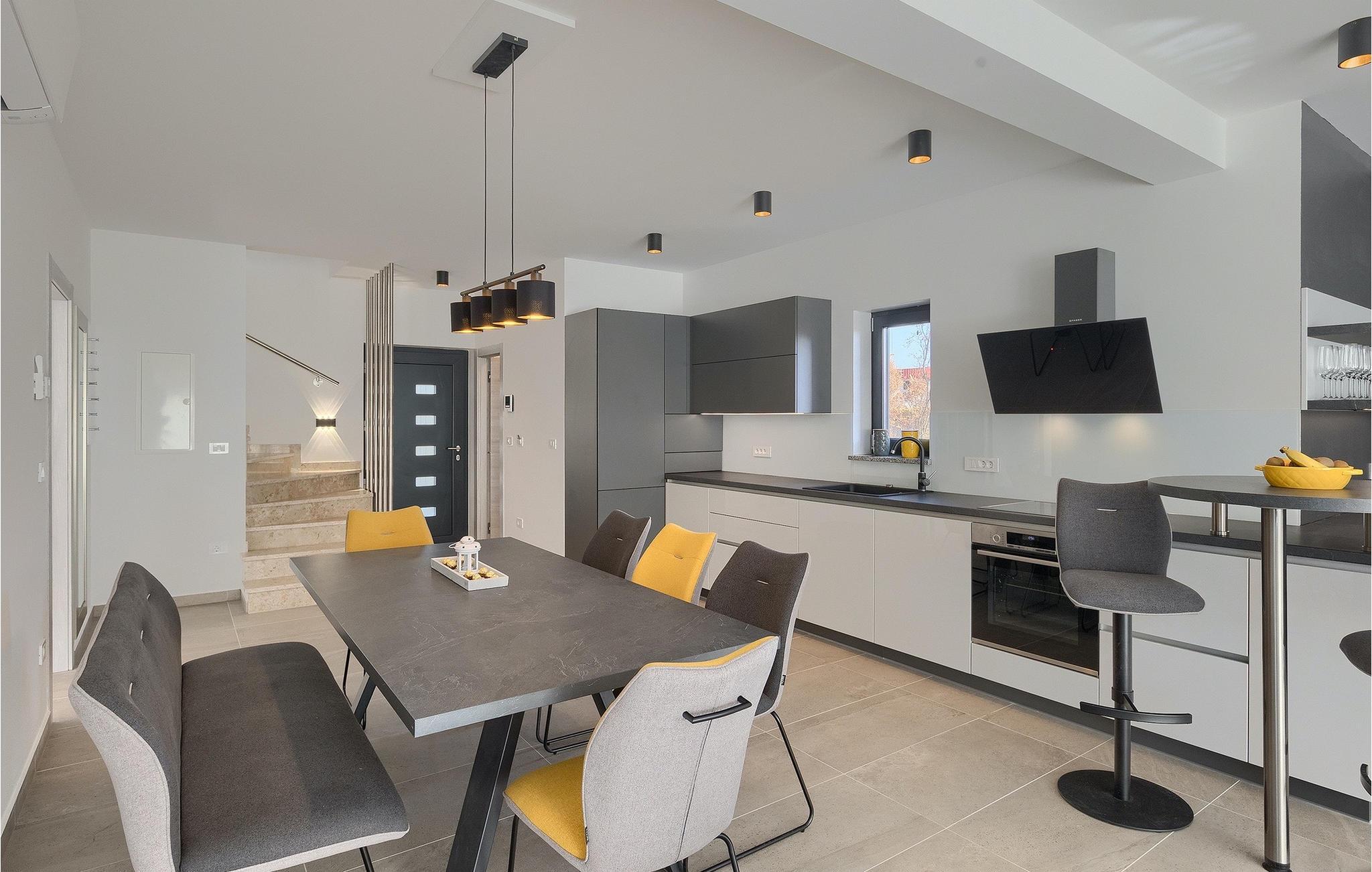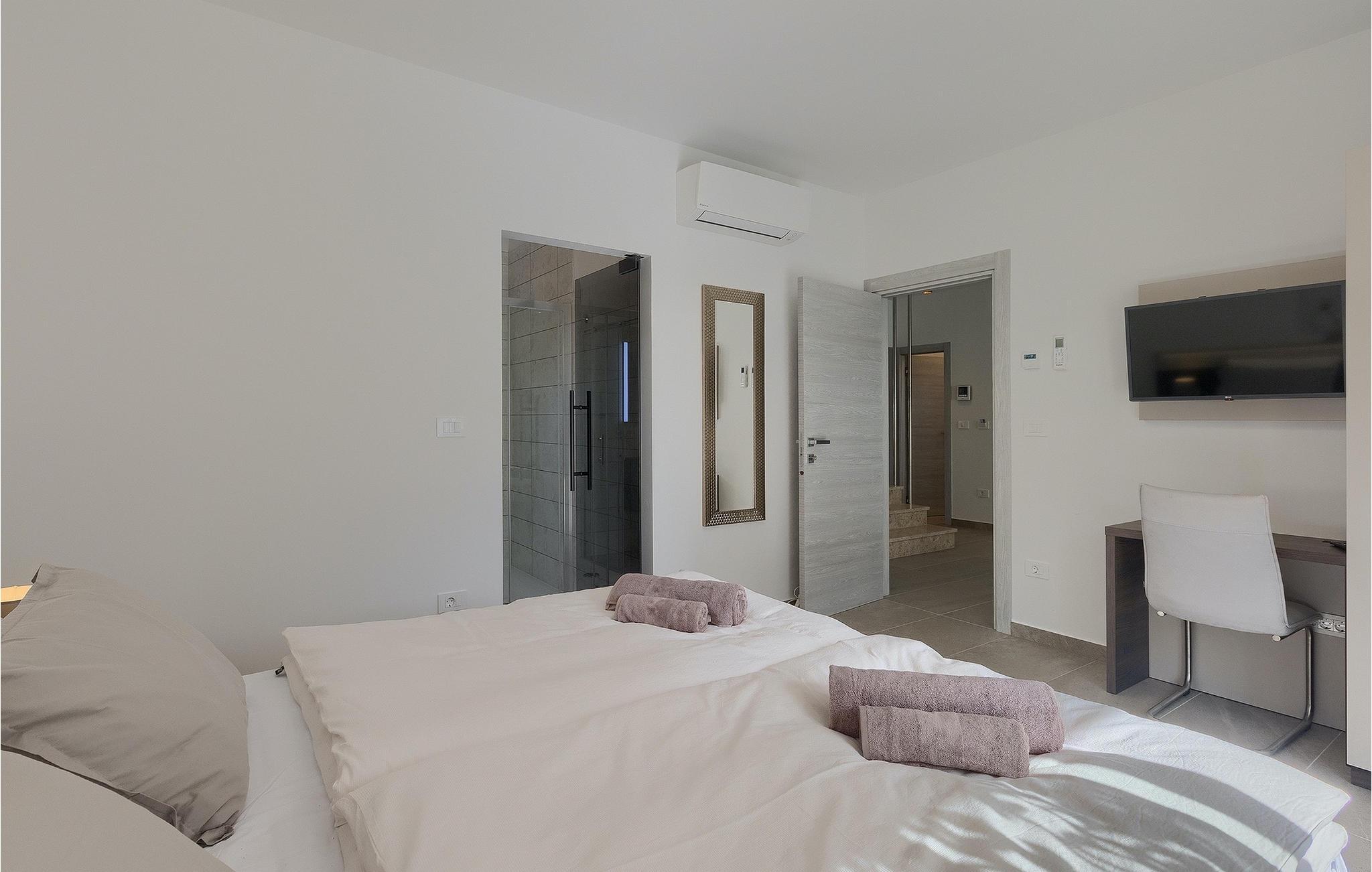 Den smukke Villa Jacky ligger i den vidunderlige kystby Porec. Villaen i to etager har 4 moderne designede soveværelser og kan i alt rumme op til 8 personer. Interiøret er meget lyst og luftigt på grund af de store vinduer og glasdøre. Den åbne stueetage består af et opholdsområde med SAT/TV, et fuldt udstyret køkken med spiseplads og et separat toilet. Der er også et smukt indrettet soveværelse med eget badeværelse og direkte udgang til den store terrasse. På første sal er der yderligere tre soveværelser med ensuite badeværelser og en lille terrasse, hvorfra man kan nyde den smukke udsigt over omgivelserne. Alle værelser har tv og aircondition. Foran villaen ligger en stor, indbydende pool, som indbyder til en forfriskning på varme sommerdage. Udenfor finder I et sommerkøkken med gasgrill, som er perfekt til en familiesammenkomst. Hvis du leder efter en afslappende ferie med din familie og venner, er denne villa et perfekt valg! Så gå ikke glip af denne mulighed og bestil Villa Jacky.Villa Jacky ligger i den smukke kystby Porec, kun 900 meter fra det krystalklare Adriaterhav. Gå en tur gennem byens smalle gader og nyd historiske seværdigheder såsom den Unesco-listede Euphrasius-basilika. Gå ikke glip af at besøge andre kystbyer som Rovinj og Pula, samt byer på østkysten som Opatija og Rijeka. For alle elskere af en aktiv ferie er Istrien et ideelt valg. Her finder du adskillige cykel- og vandrestier, topgolfbaner og talrige muligheder for vandsport. Regionen Istrien har længe været på listen over alle elskere af gastronomi. Hvis du er en af dem, anbefaler vi, at du prøver en række traditionelle retter. I restauranterne på kysten finder du frisk fisk, krabber og skaldyr, mens du inde i landet kan prøve fuzi med hvide trøfler, pljukanci eller istrisk oksekød boskarin. For at lære Istrien bedre at kende, så tjek helt sikkert vores MyIstria-guide, hvor du kan finde mange interessante artikler om kultur, gastronomi og adskillige aktiviteter.