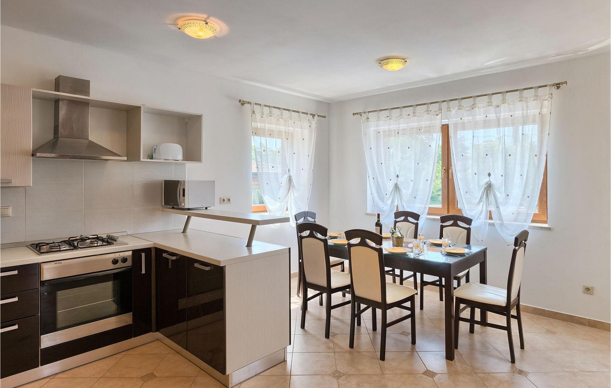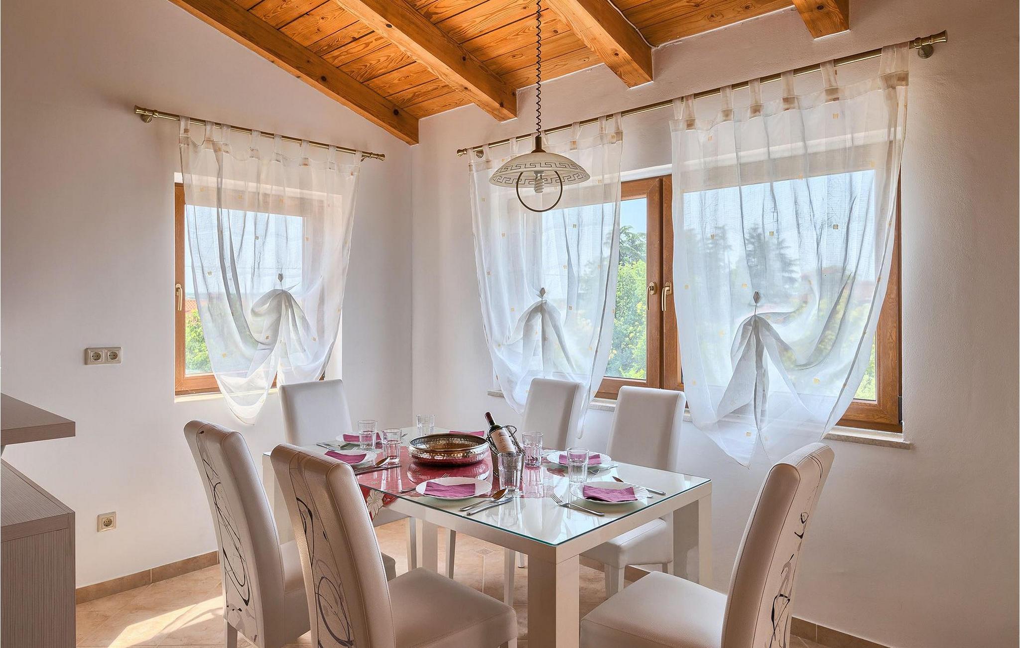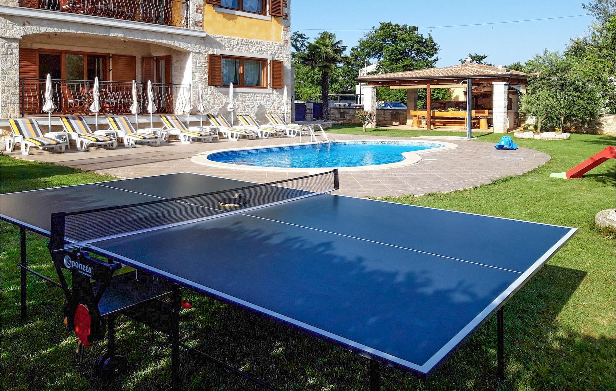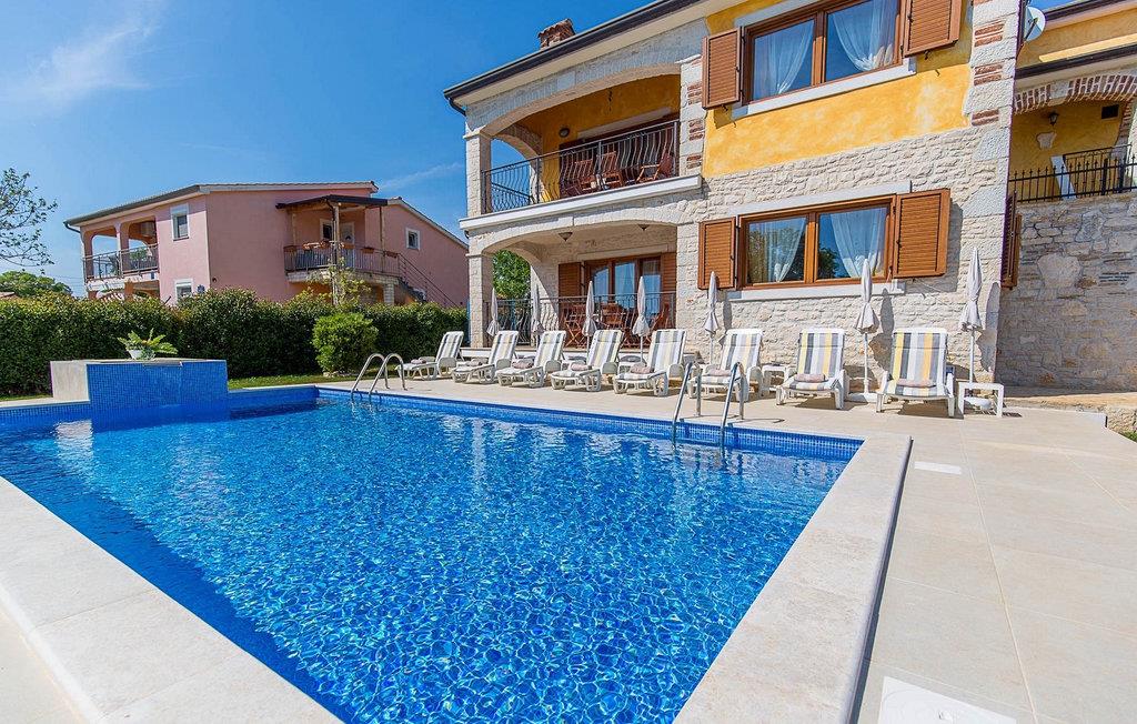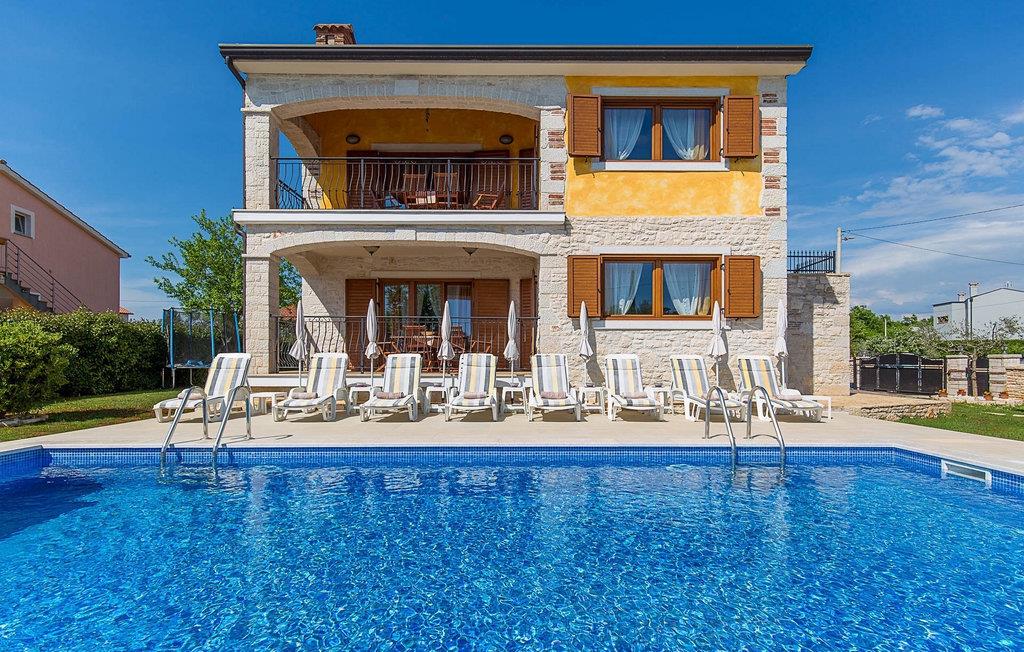 Hvis du drømmer om at tilbringe en afslappende ferie nær byen Porec og dens vidunderlige strande, kan Villa Jenny være det ideelle valg for dig! Denne dejlige villa blev bygget i 2011 og tilbyder alt hvad du kan få brug for på din ferie. Villaen er velegnet til op til 10 gæster (inklusive babyer) og består af 2 separate lejligheder fordelt på to etager. Hver lejlighed har en stue/spisestue og et veludstyret køkken. I stueetagen finder du 3 og på første sal 2 soveværelser. Der er et badeværelse på hver etage. På grund af villaens rummelige og lyse interiør ville den bedste måde at beskrive Villa Jenny være "hyggelig" - her vil du virkelig føle dig som hjemme. Hvis du gerne vil nyde den varme istriske sommer fuldt ud, så gå ikke glip af muligheden for at tage en dukkert i villaens indbydende pool eller nyde solen på terrassen. Villa Jenny har en stengrill, hvor du kan tilberede lokale specialiteter, mens de yngste gæster leger på legepladsen.