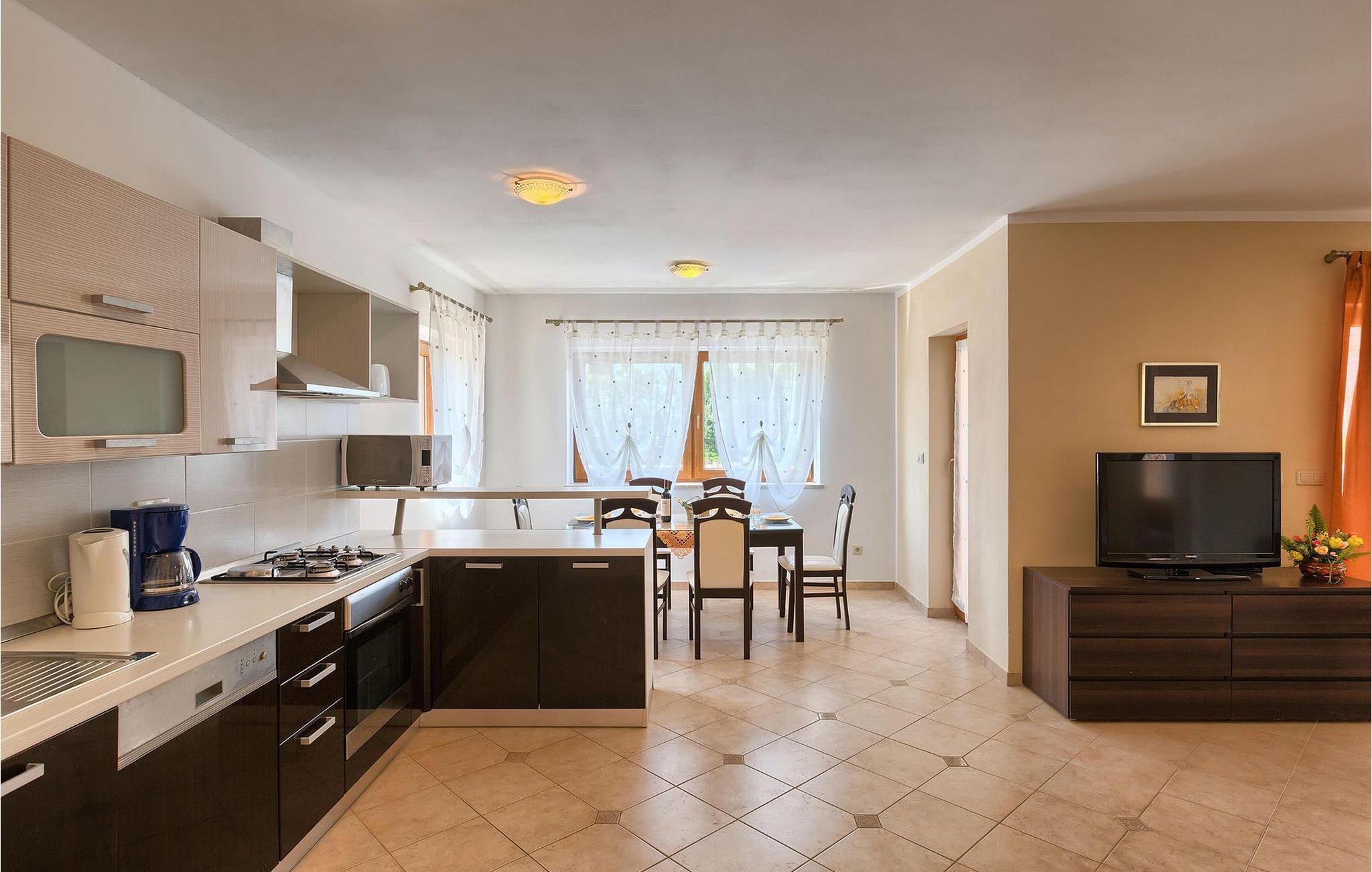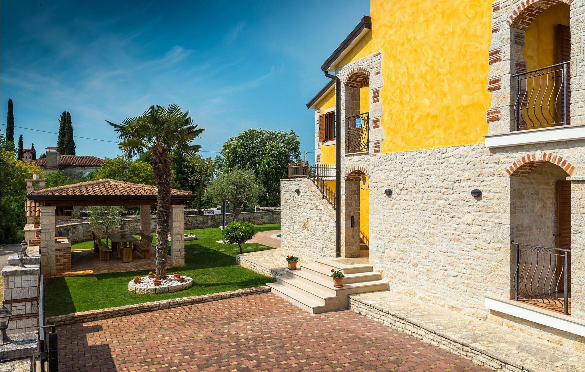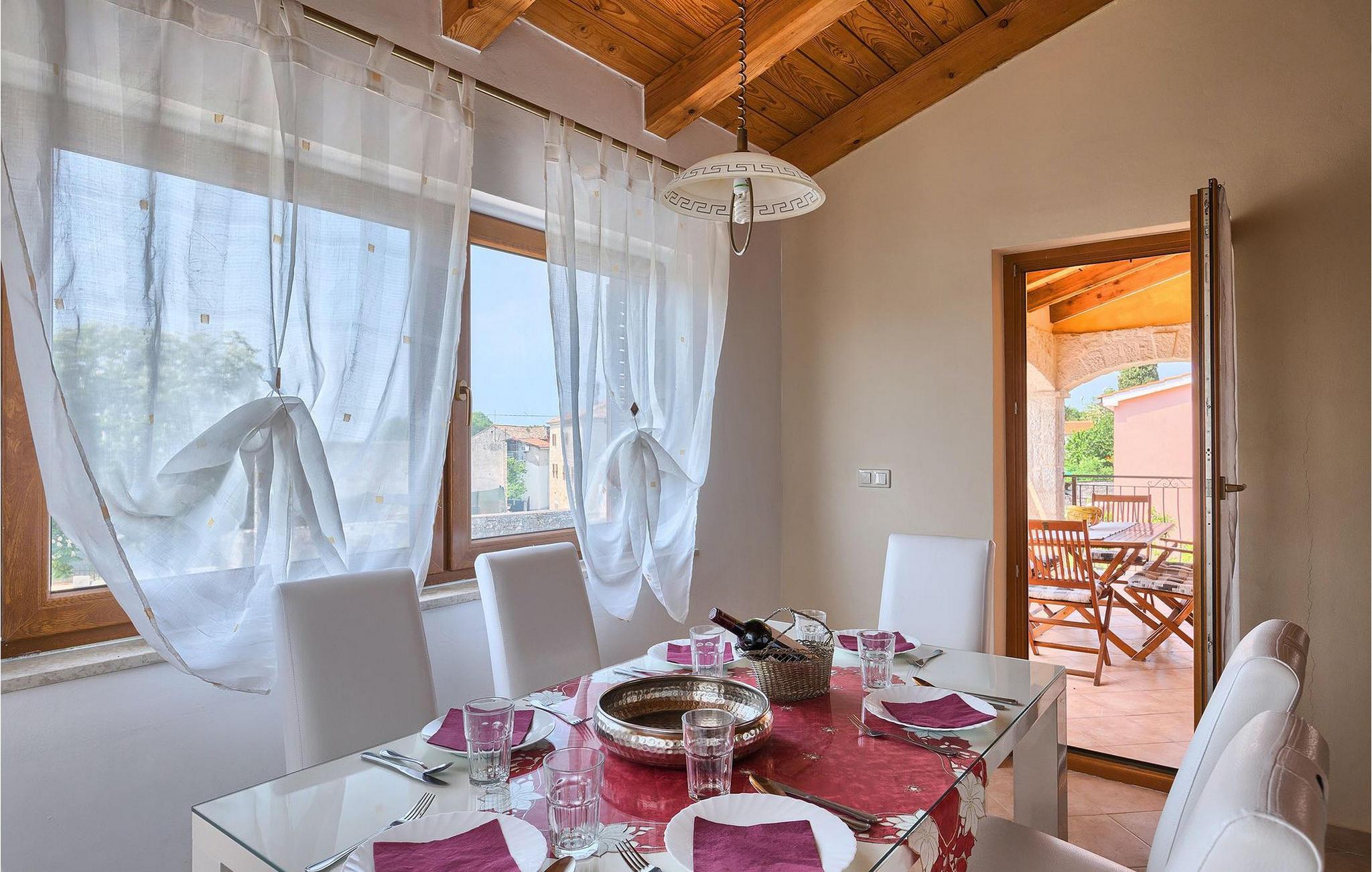 Hvis du drømmer om at tilbringe en afslappende ferie nær byen Porec og dens vidunderlige strande, kan Villa Jenny være det ideelle valg for dig! Denne dejlige villa blev bygget i 2011 og tilbyder alt hvad du kan få brug for på din ferie. Villaen er velegnet til op til 10 gæster (inklusive babyer) og består af 2 separate lejligheder fordelt på to etager. Hver lejlighed har en stue/spisestue og et veludstyret køkken. I stueetagen finder du 3 og på første sal 2 soveværelser. Der er et badeværelse på hver etage. På grund af villaens rummelige og lyse interiør ville den bedste måde at beskrive Villa Jenny være "hyggelig" - her vil du virkelig føle dig som hjemme. Hvis du gerne vil nyde den varme istriske sommer fuldt ud, så gå ikke glip af muligheden for at tage en dukkert i villaens indbydende pool eller nyde solen på terrassen. Villa Jenny har en stengrill, hvor du kan tilberede lokale specialiteter, mens de yngste gæster leger på legepladsen.