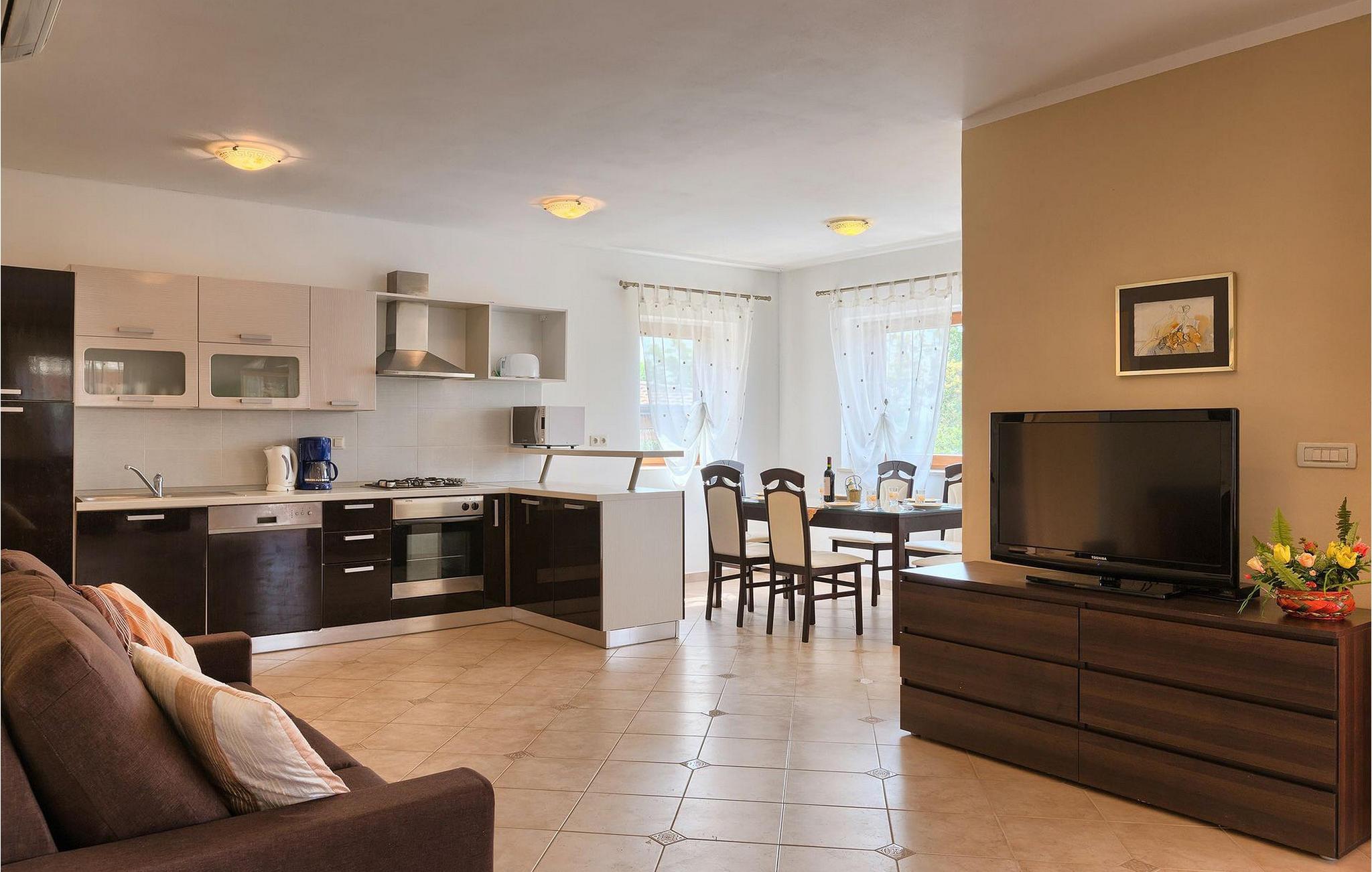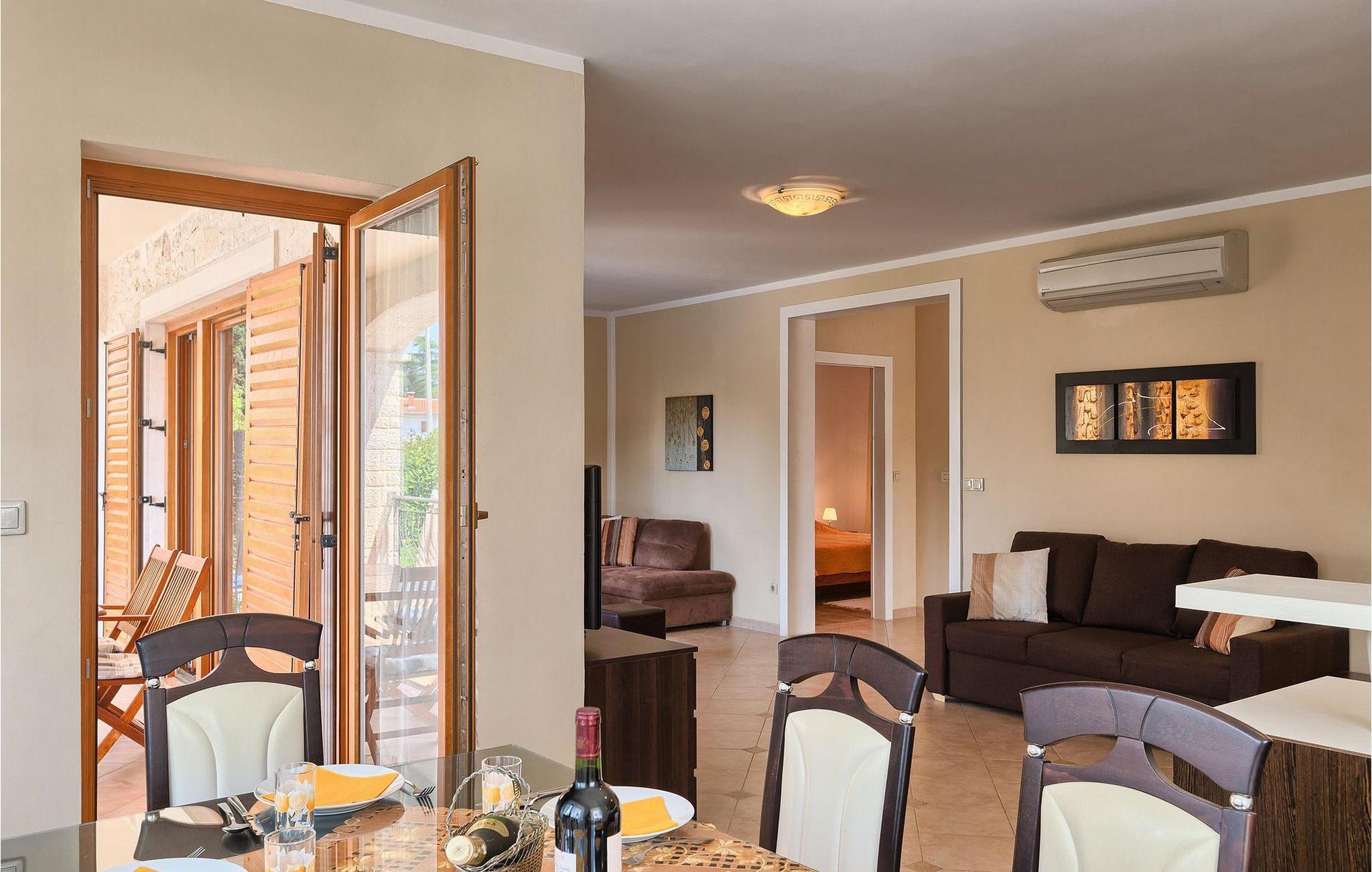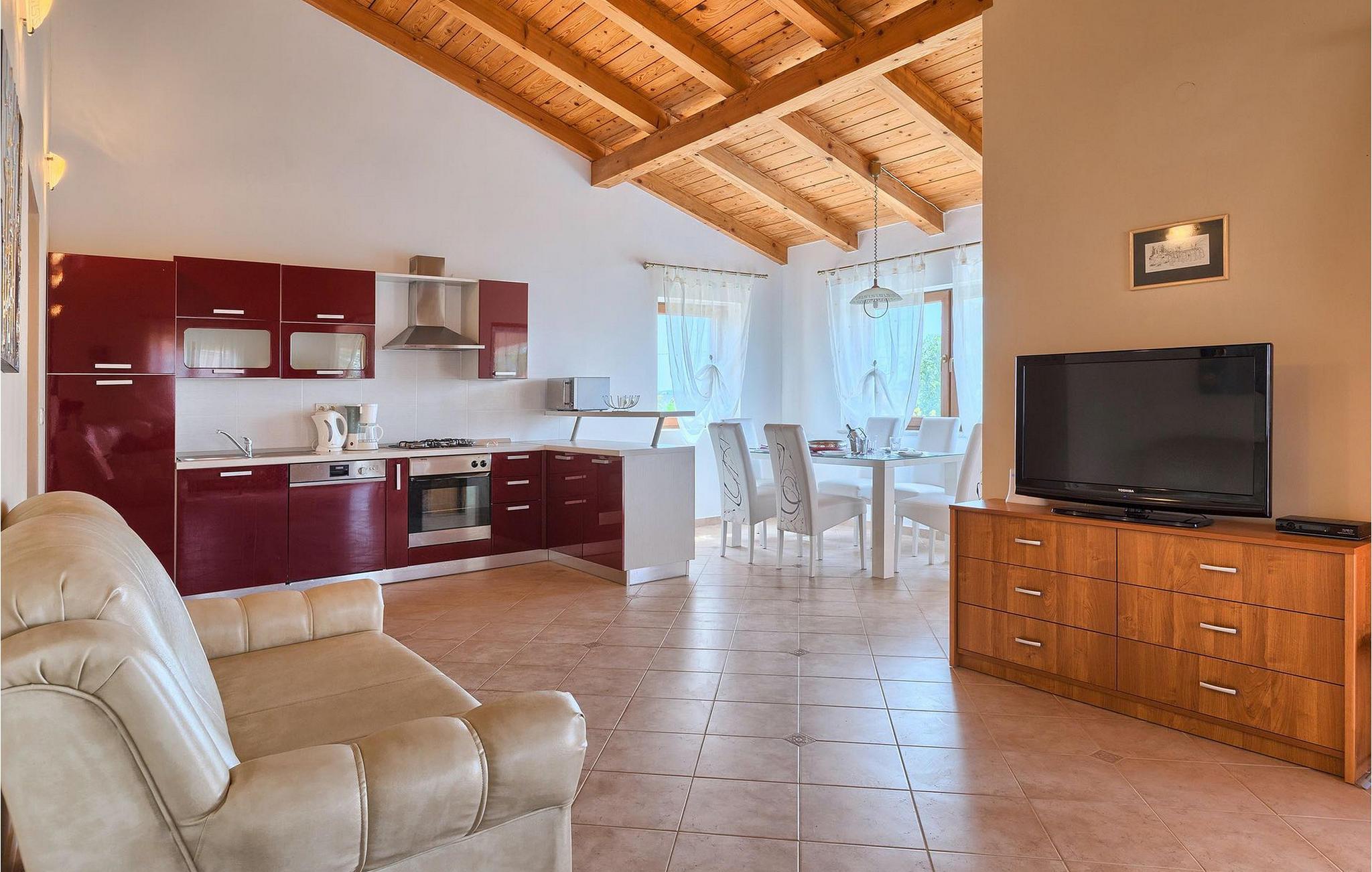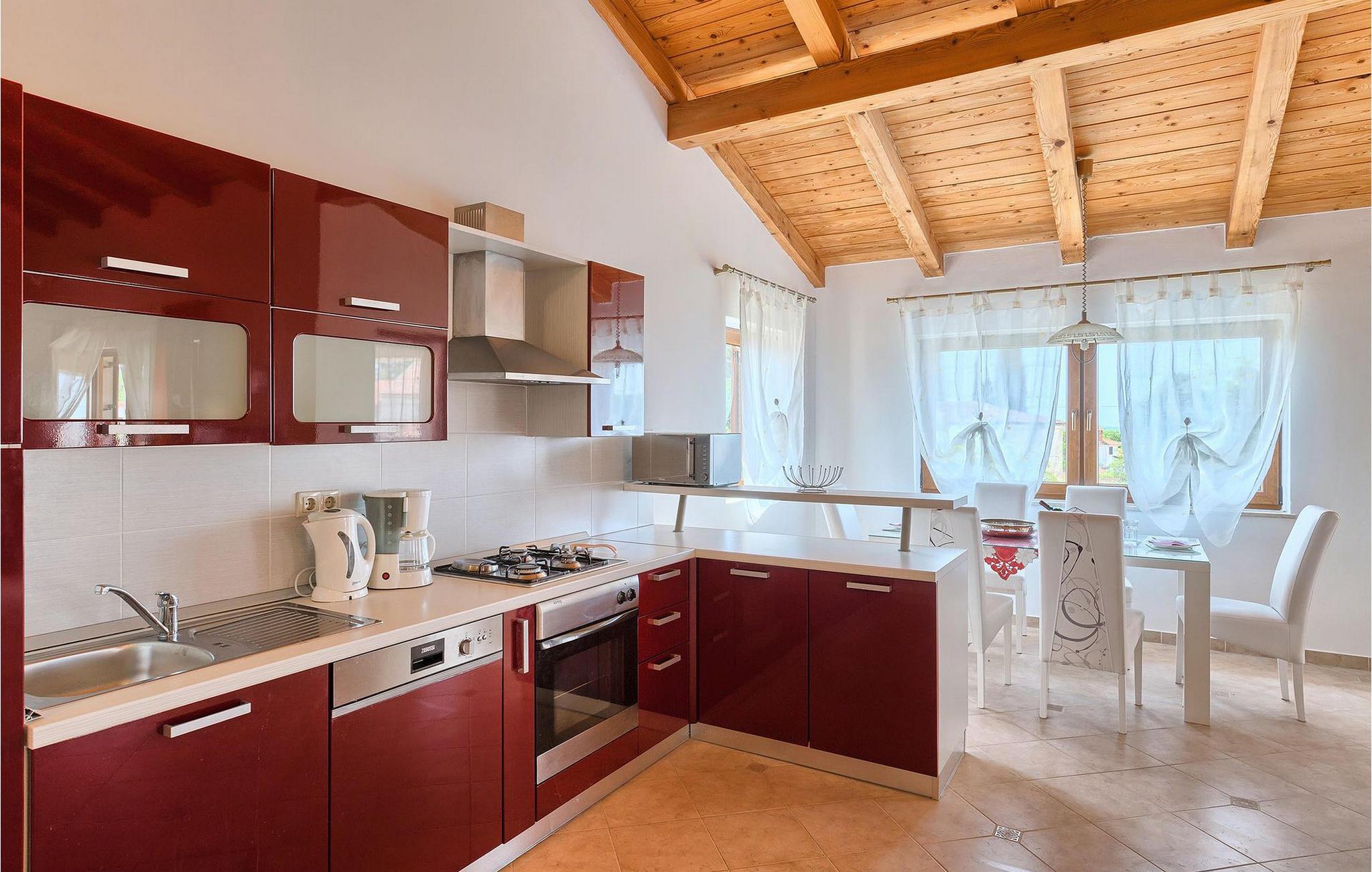 Hvis du drømmer om at tilbringe en afslappende ferie nær byen Porec og dens vidunderlige strande, kan Villa Jenny være det ideelle valg for dig! Denne dejlige villa blev bygget i 2011 og tilbyder alt hvad du kan få brug for på din ferie. Villaen er velegnet til op til 10 gæster (inklusive babyer) og består af 2 separate lejligheder fordelt på to etager. Hver lejlighed har en stue/spisestue og et veludstyret køkken. I stueetagen finder du 3 og på første sal 2 soveværelser. Der er et badeværelse på hver etage. På grund af villaens rummelige og lyse interiør ville den bedste måde at beskrive Villa Jenny være "hyggelig" - her vil du virkelig føle dig som hjemme. Hvis du gerne vil nyde den varme istriske sommer fuldt ud, så gå ikke glip af muligheden for at tage en dukkert i villaens indbydende pool eller nyde solen på terrassen. Villa Jenny har en stengrill, hvor du kan tilberede lokale specialiteter, mens de yngste gæster leger på legepladsen.