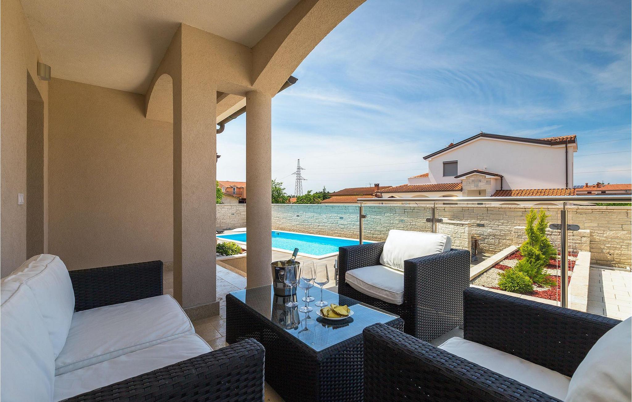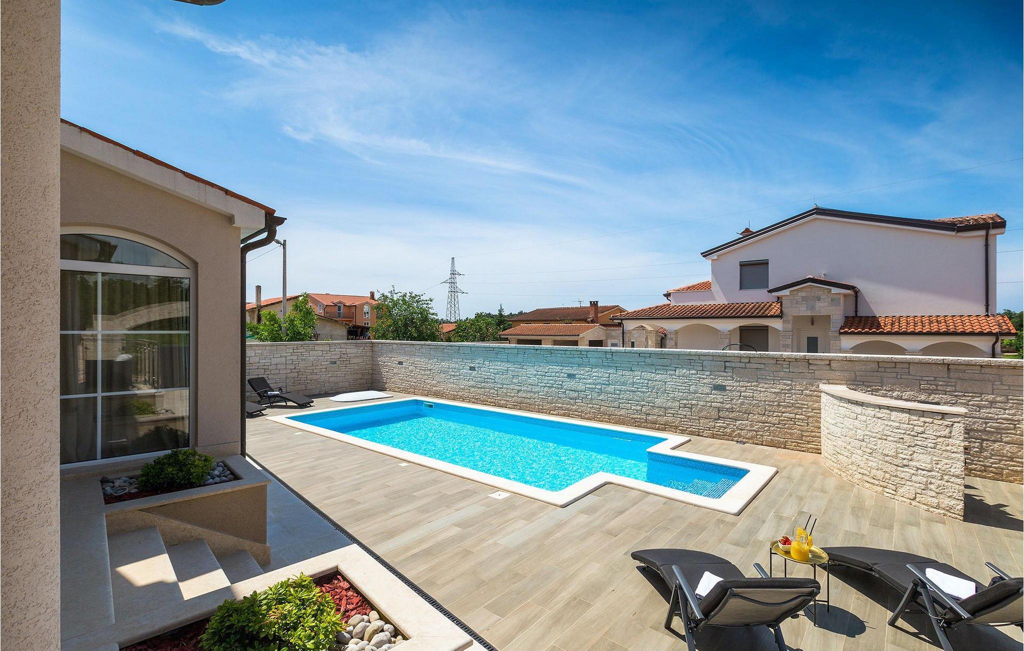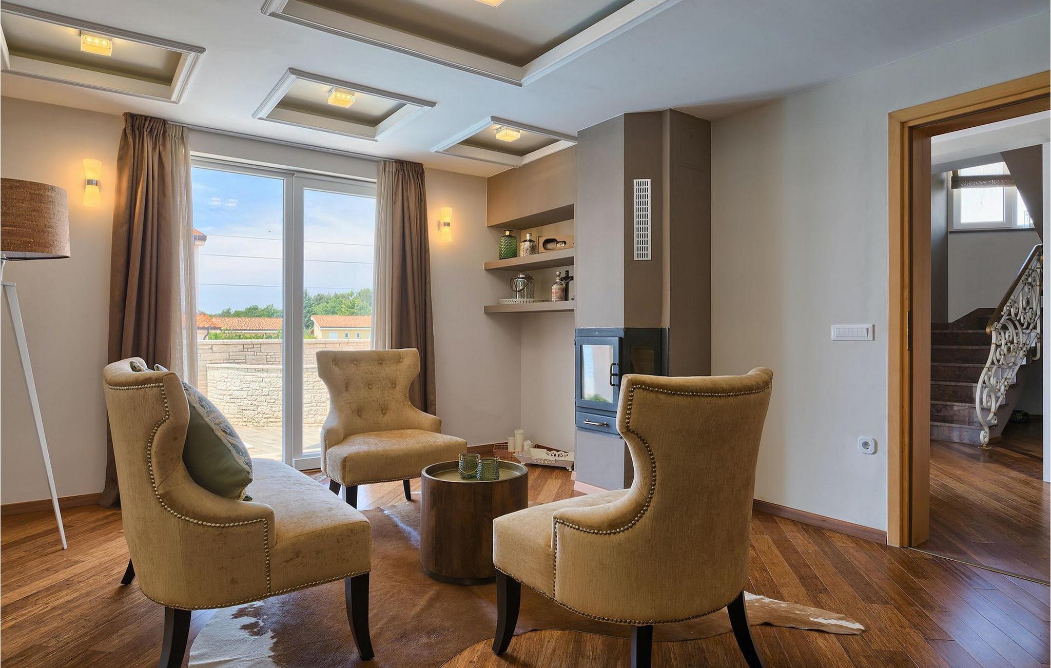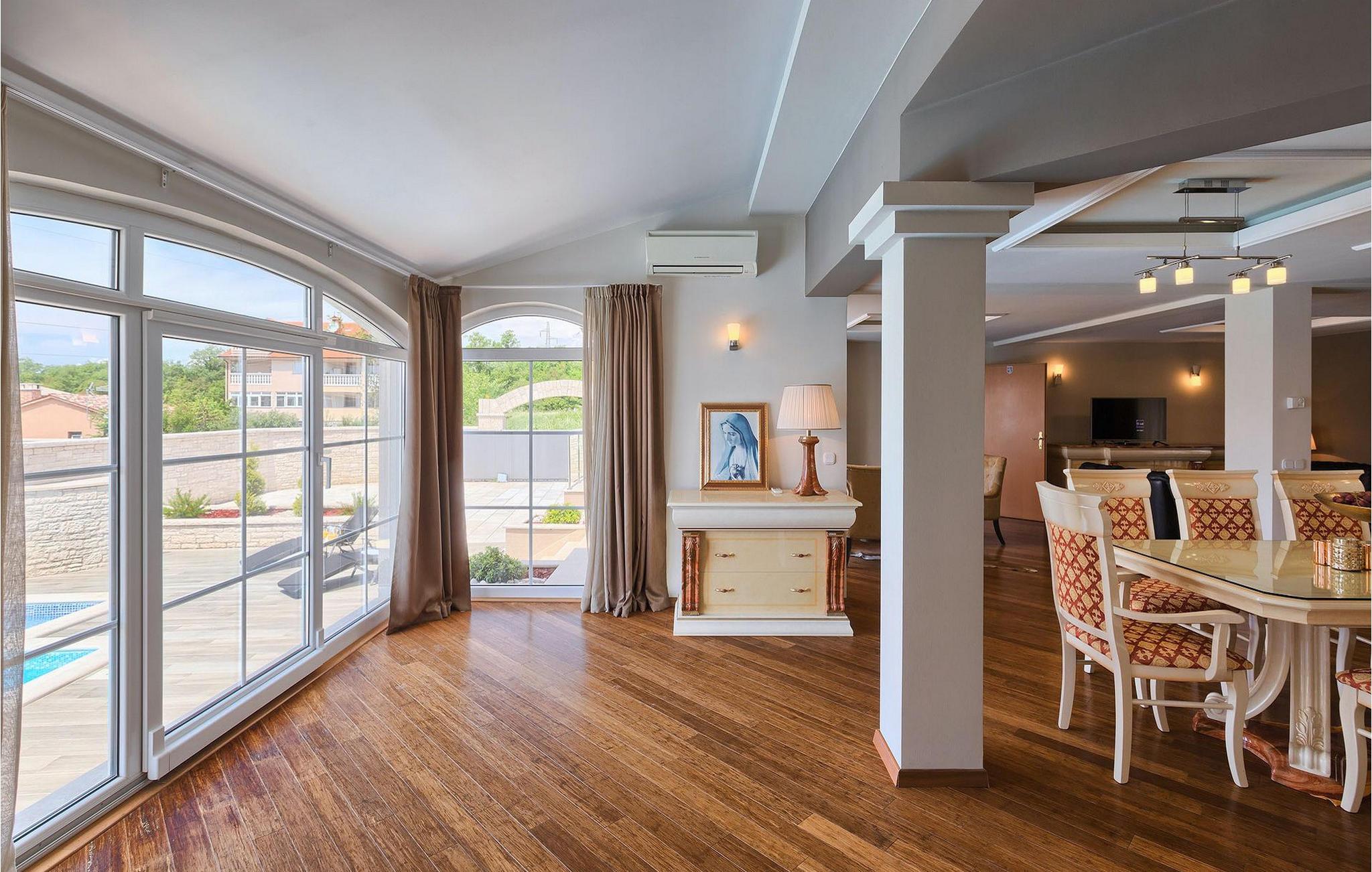 Villa Gordana, som ligger nær byen Porec, samt nær de Porec-omgivende strande, er velegnet til at rumme op til 8 gæster. Overetagen er opdelt i 4 hyggelige soveværelser, hver med aircondition, og et med udgang til den dejlige altan, hvor man kan nyde udsigten over det omkringliggende. At komme til stueetagen vil bringe dig til den rummelige og meget elegante stue med pejs, der er forbundet med spisepladsen og det fuldt udstyrede køkken med en moderne kogeø og nogle ekstra siddepladser. De store glasflader i spisepladsen giver masser af naturligt lys i villaen, men vil også give dig en fremragende udsigt til den private pool, hvor du kan nyde på en af liggestolene. Interiøret i denne villa er meget elegant og stilfuldt møbleret og dekoreret, samt meget veludstyret med alle de bekvemmeligheder, du måske har brug for, så du kan tilbringe en virkelig afslappende ferie. Yngre grupper er ikke tilladt i villaen. Porec er et sandt turist-hot spot, hvor du kan finde alle former for underholdning, fra sportsaktiviteter til restauranter, barer og natklubber, men byen er mest kendt for sin rige kulturelle arv. Porec er en tidligere romersk koloni, der nåede sit højdepunkt under en byzantinsk kejser Justinians regeringstid. Den betagende Eufrasiusbasilika, bygget i midten af det 6. århundrede i byzantinsk stil og i øjeblikket under Unescos beskyttelse, er absolut et "must-see". At se den fantastiske solnedgang, mens du nyder et glas lokal drink og bid af lækre lokale kødfade i den gamle by, er bestemt en ting at gøre her. På den anden side giver denne del af Istrien dig mulighed for at forblive aktiv med sine mange jogging- og cykelstier samt forskellige strande langs kysten. Der er uendelige muligheder for at se og gøre inden for blot 50 km i bil eller på cykel. Benyt lejligheden og besøg et af de fantastiske steder som Novigrad, Vrsar, Funtana, Umag, Rovinj, Pazin - hver smuk og anderledes end andre.