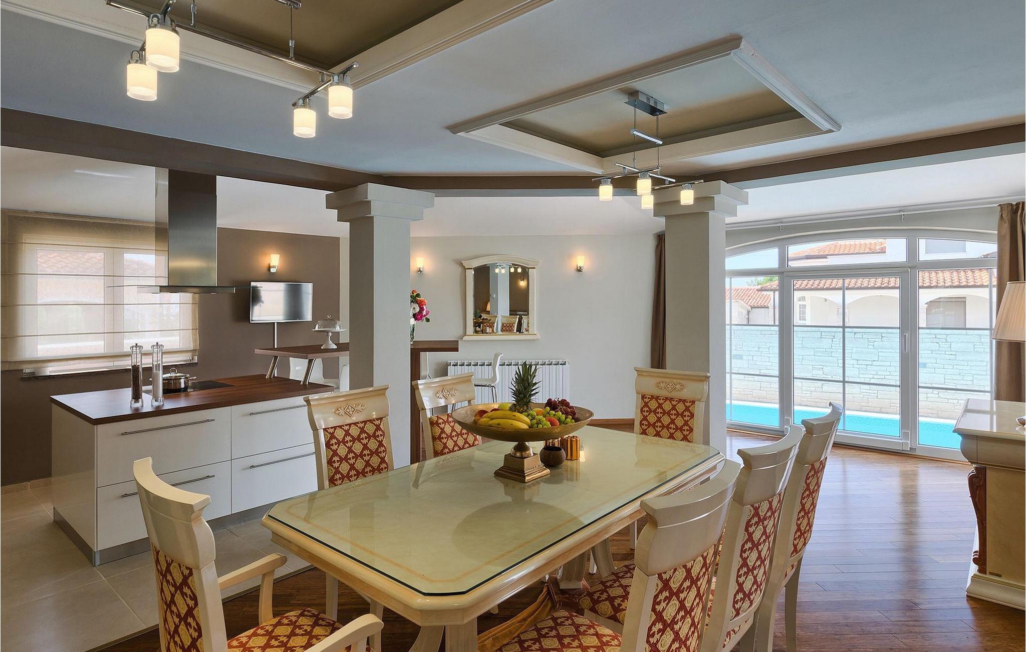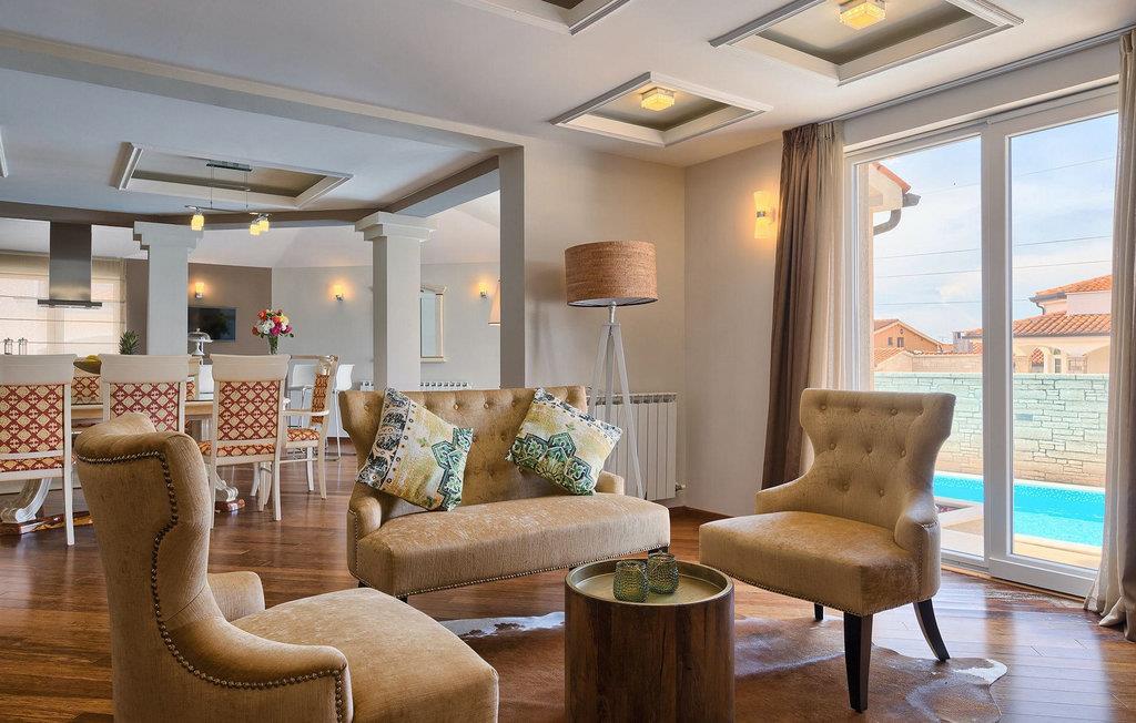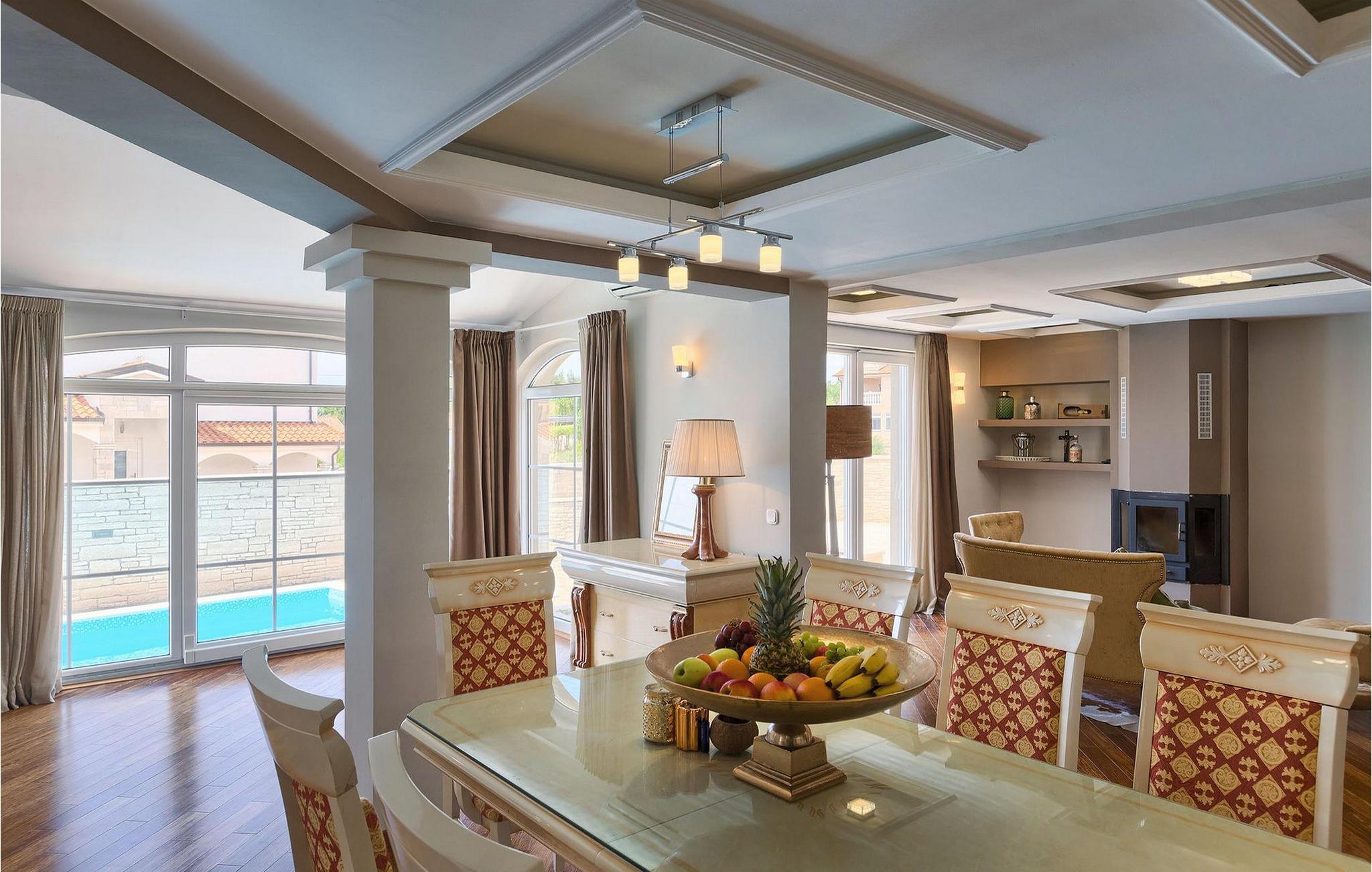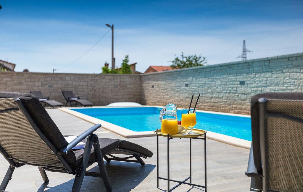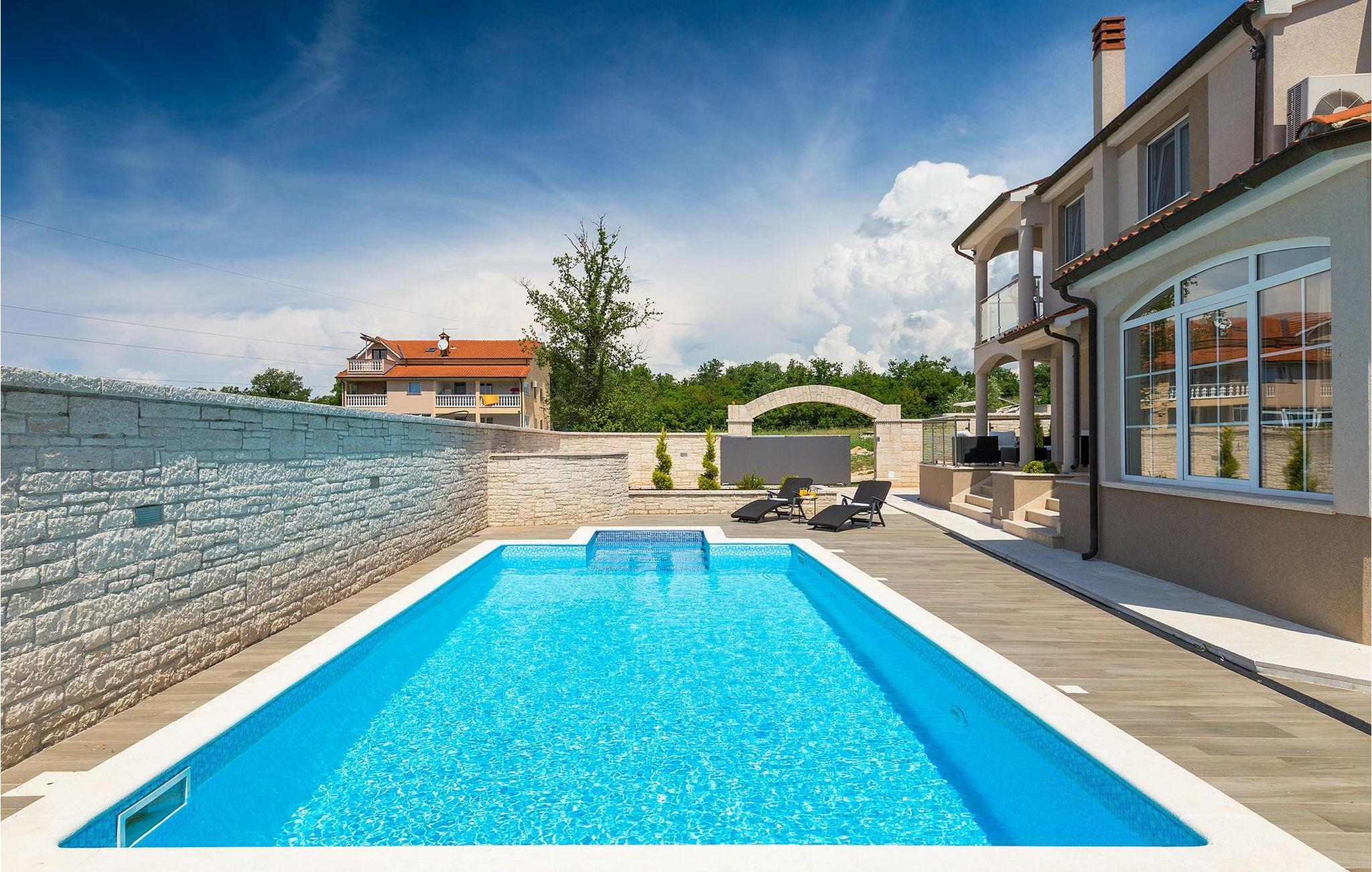 Villa Gordana, som ligger nær byen Porec, samt nær de Porec-omgivende strande, er velegnet til at rumme op til 8 gæster. Overetagen er opdelt i 4 hyggelige soveværelser, hver med aircondition, og et med udgang til den dejlige altan, hvor man kan nyde udsigten over det omkringliggende. At komme til stueetagen vil bringe dig til den rummelige og meget elegante stue med pejs, der er forbundet med spisepladsen og det fuldt udstyrede køkken med en moderne kogeø og nogle ekstra siddepladser. De store glasflader i spisepladsen giver masser af naturligt lys i villaen, men vil også give dig en fremragende udsigt til den private pool, hvor du kan nyde på en af liggestolene. Interiøret i denne villa er meget elegant og stilfuldt møbleret og dekoreret, samt meget veludstyret med alle de bekvemmeligheder, du måske har brug for, så du kan tilbringe en virkelig afslappende ferie. Yngre grupper er ikke tilladt i villaen. Porec er et sandt turist-hot spot, hvor du kan finde alle former for underholdning, fra sportsaktiviteter til restauranter, barer og natklubber, men byen er mest kendt for sin rige kulturelle arv. Porec er en tidligere romersk koloni, der nåede sit højdepunkt under en byzantinsk kejser Justinians regeringstid. Den betagende Eufrasiusbasilika, bygget i midten af det 6. århundrede i byzantinsk stil og i øjeblikket under Unescos beskyttelse, er absolut et "must-see". At se den fantastiske solnedgang, mens du nyder et glas lokal drink og bid af lækre lokale kødfade i den gamle by, er bestemt en ting at gøre her. På den anden side giver denne del af Istrien dig mulighed for at forblive aktiv med sine mange jogging- og cykelstier samt forskellige strande langs kysten. Der er uendelige muligheder for at se og gøre inden for blot 50 km i bil eller på cykel. Benyt lejligheden og besøg et af de fantastiske steder som Novigrad, Vrsar, Funtana, Umag, Rovinj, Pazin - hver smuk og anderledes end andre.