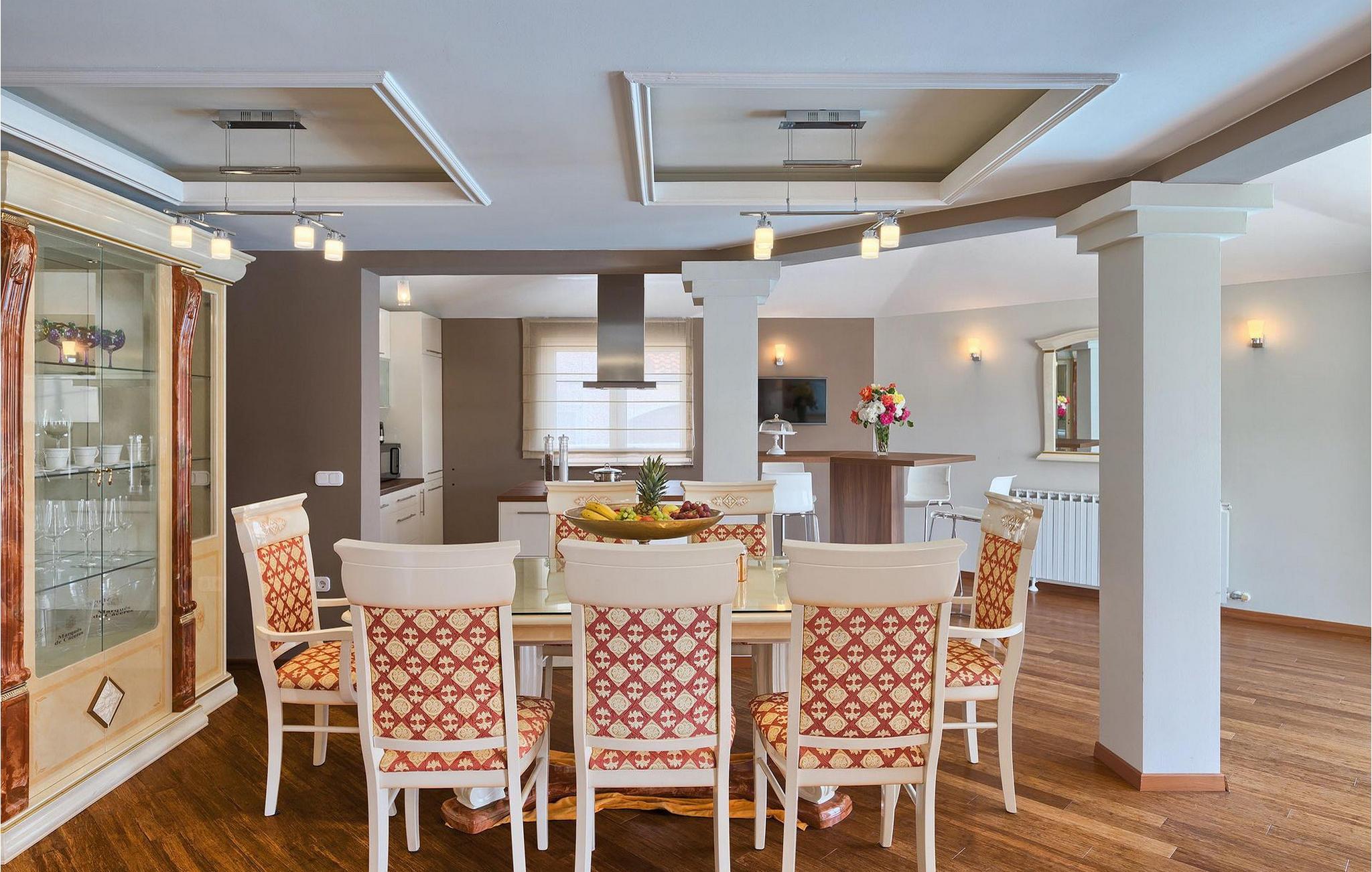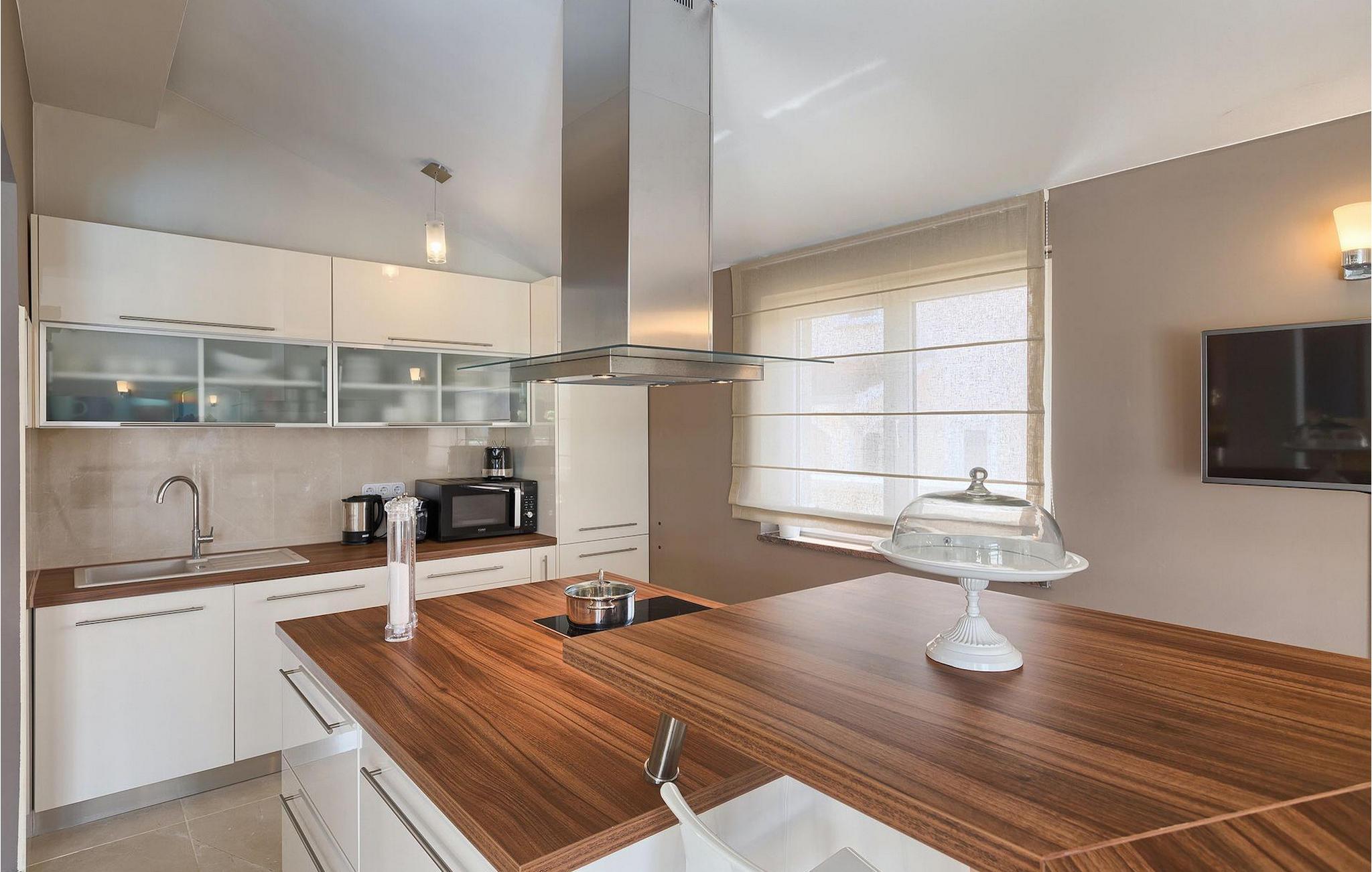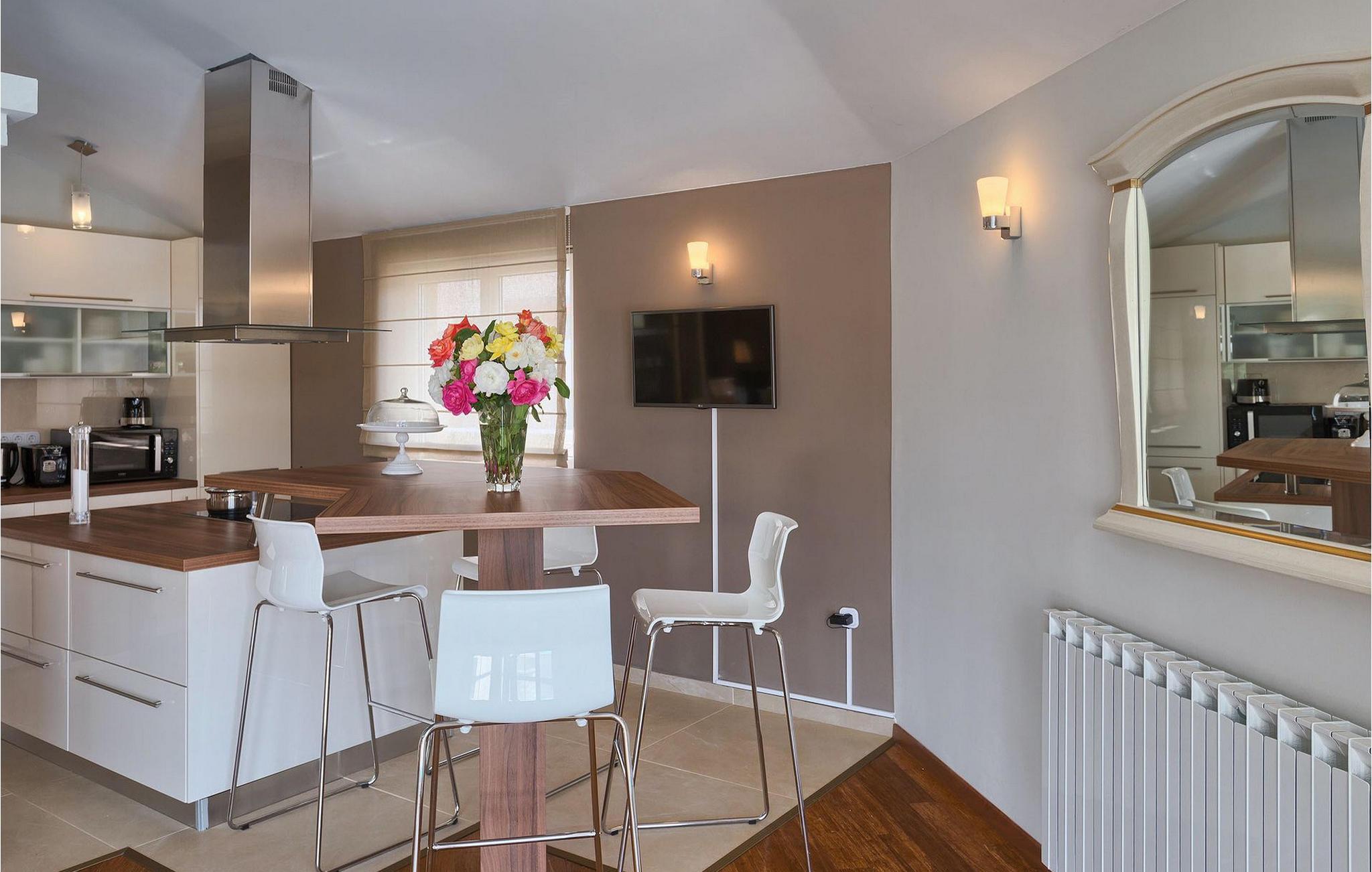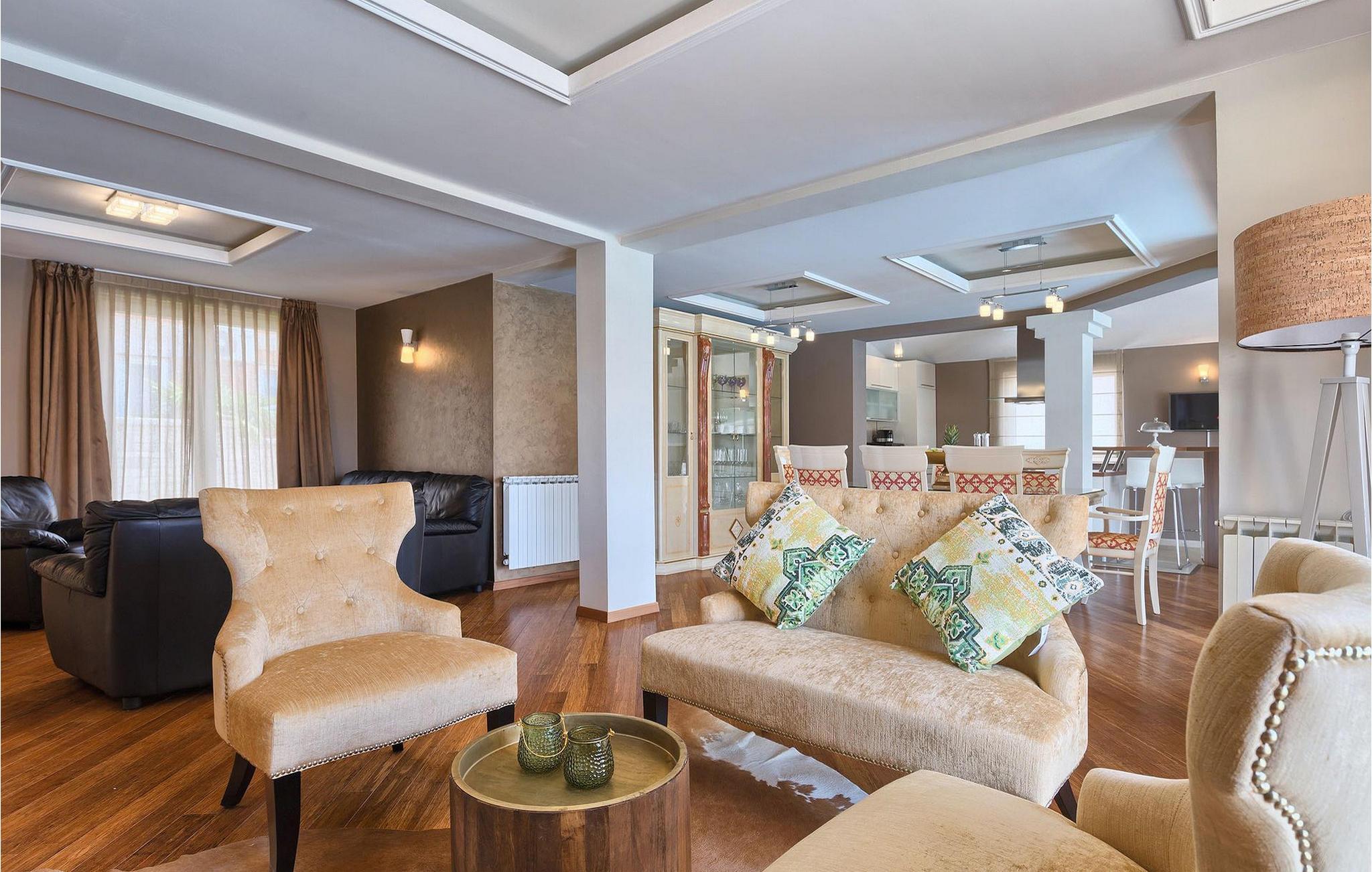 Villa Gordana, som ligger nær byen Porec, samt nær de Porec-omgivende strande, er velegnet til at rumme op til 8 gæster. Overetagen er opdelt i 4 hyggelige soveværelser, hver med aircondition, og et med udgang til den dejlige altan, hvor man kan nyde udsigten over det omkringliggende. At komme til stueetagen vil bringe dig til den rummelige og meget elegante stue med pejs, der er forbundet med spisepladsen og det fuldt udstyrede køkken med en moderne kogeø og nogle ekstra siddepladser. De store glasflader i spisepladsen giver masser af naturligt lys i villaen, men vil også give dig en fremragende udsigt til den private pool, hvor du kan nyde på en af liggestolene. Interiøret i denne villa er meget elegant og stilfuldt møbleret og dekoreret, samt meget veludstyret med alle de bekvemmeligheder, du måske har brug for, så du kan tilbringe en virkelig afslappende ferie. Yngre grupper er ikke tilladt i villaen. Porec er et sandt turist-hot spot, hvor du kan finde alle former for underholdning, fra sportsaktiviteter til restauranter, barer og natklubber, men byen er mest kendt for sin rige kulturelle arv. Porec er en tidligere romersk koloni, der nåede sit højdepunkt under en byzantinsk kejser Justinians regeringstid. Den betagende Eufrasiusbasilika, bygget i midten af det 6. århundrede i byzantinsk stil og i øjeblikket under Unescos beskyttelse, er absolut et "must-see". At se den fantastiske solnedgang, mens du nyder et glas lokal drink og bid af lækre lokale kødfade i den gamle by, er bestemt en ting at gøre her. På den anden side giver denne del af Istrien dig mulighed for at forblive aktiv med sine mange jogging- og cykelstier samt forskellige strande langs kysten. Der er uendelige muligheder for at se og gøre inden for blot 50 km i bil eller på cykel. Benyt lejligheden og besøg et af de fantastiske steder som Novigrad, Vrsar, Funtana, Umag, Rovinj, Pazin - hver smuk og anderledes end andre.