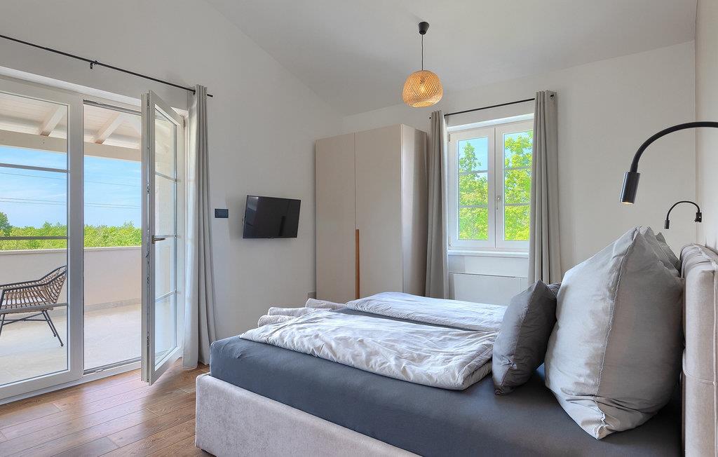 Villa Legro ligger i landsbyen Anzici, kun omkring 30 minutter fra den antikke by Porec. Porec er en fortryllende by, der problemfrit blander sin rige historie og fængslende kystallur. Byens omdrejningspunkt er den bemærkelsesværdige Euphrasian Basilica, et UNESCO-verdensarvssted kendt for sine fascinerende byzantinske mosaikker. Efter at have nydt historiske seværdigheder, kan du gå en tur gennem Porecs maleriske, smalle brostensbelagte gader, udsmykket med dejlige butikker, caféer og restauranter, der vil friste dig med lækkert lokalt køkken, som inviterer dig til at omfavne den afslappede middelhavsstemning. Nyd en is foran den pulserende strandpromenade, hvor farverige både markerer scenen og tilbyder ærefrygtindgydende udsigter over det uberørte Adriaterhav. Med sine fantastiske strande, blomstrende natteliv og et væld af kulturelle og rekreative aktiviteter, skinner Porec som en sand perle i Istrien-regionen, der fascinerer besøgende med sin tidløse skønhed og ægte varme af gæstfrihed. En anden tæt destination er Novigrad, hvor der ikke er mangel på underholdning med adskillige lokale arrangementer og et nærliggende vandland, perfekt for både børn og voksne.