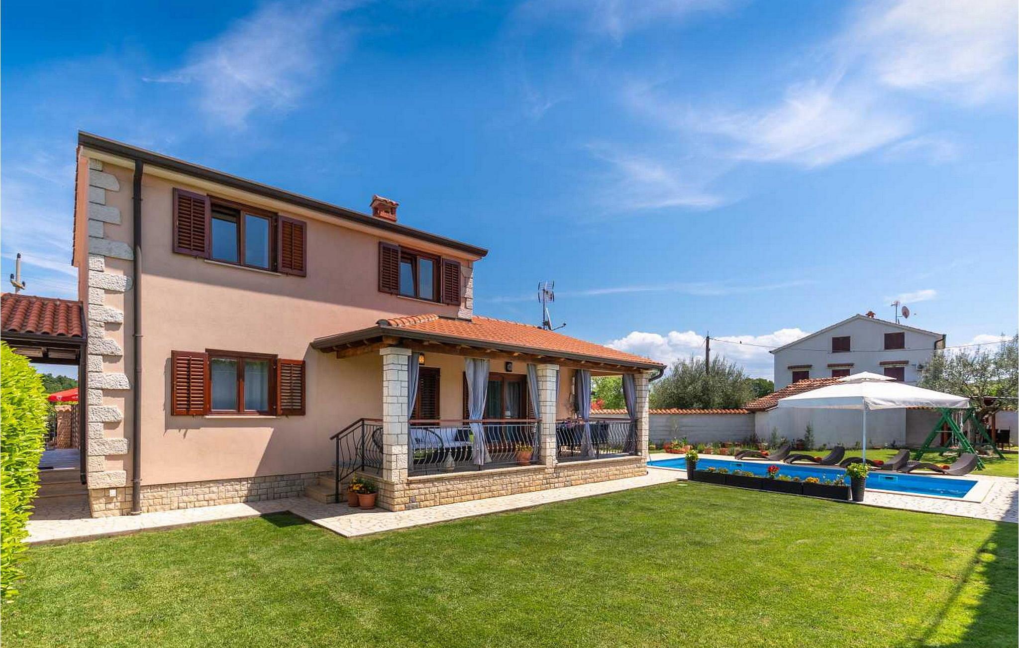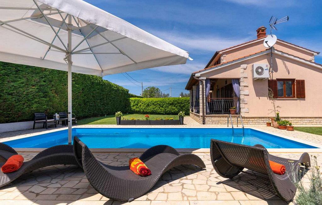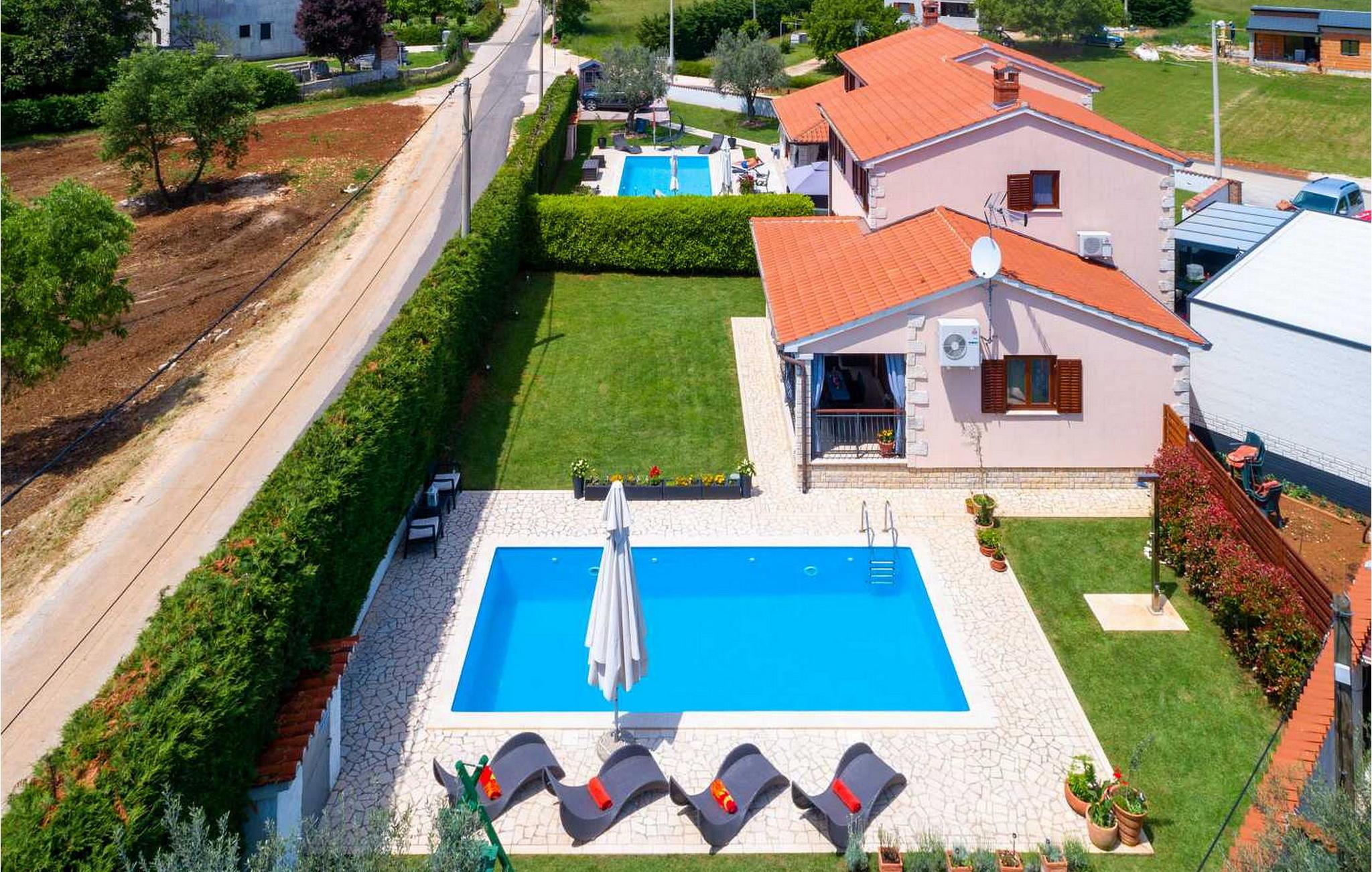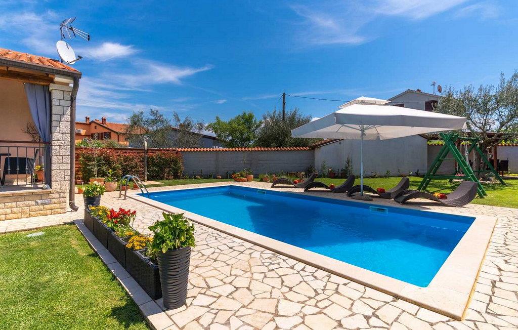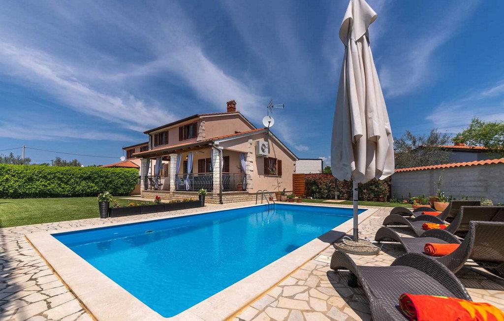 Dette komfortable hus til 6-8 gæster ligger i landsbyen Dracevac, 9 km fra Porec. Huset er bygget i 2007 og udstyret med nye og moderne møbler. På sin egen 500 kvm store ejendom tilbyder det sine gæster en udendørs pool, velholdt have med loungesæt og grill, overdækket terrasse med spisefaciliteter, legeplads og privat parkering. Med et boligareal på 135 kvm, i stueetagen er der stue med SAT-TV og sovesofa til 2 gæster, spisebord, medierum med sovesofa til 1 gæst og SAT-TV, fuldt udstyret køkken, bruser/ toilet og mindre spisekammer med vaskemaskine. Fra stuen er der udgang til terrasse med spisebord og komfortable siddepladser med udsigt over poolen. På første sal er der tre soveværelser, to med dobbeltsenge og et med to enkeltsenge, et bad/toilet. Huset har aircondition på begge etager. Interiøret og haven er delvist istandsat til sommersæsonen 2020. OBS: Mindre kæledyr op til max 10 kg er tilladt. Bemærk venligst, at denne ejendom ikke accepterer ungdomsgrupper eller polterabends. En ungdomsgruppe på denne ejendom er en gruppe bestående af personer på 26 år eller derunder. Book ikke denne ejendom, hvis du er en ungdomsgruppe eller et polterabend, da din reservation vil blive afvist efter booking, hvilket kan omfatte ved ankomst til ejendommen eller under dit ophold, og du vil ikke blive refunderet.
