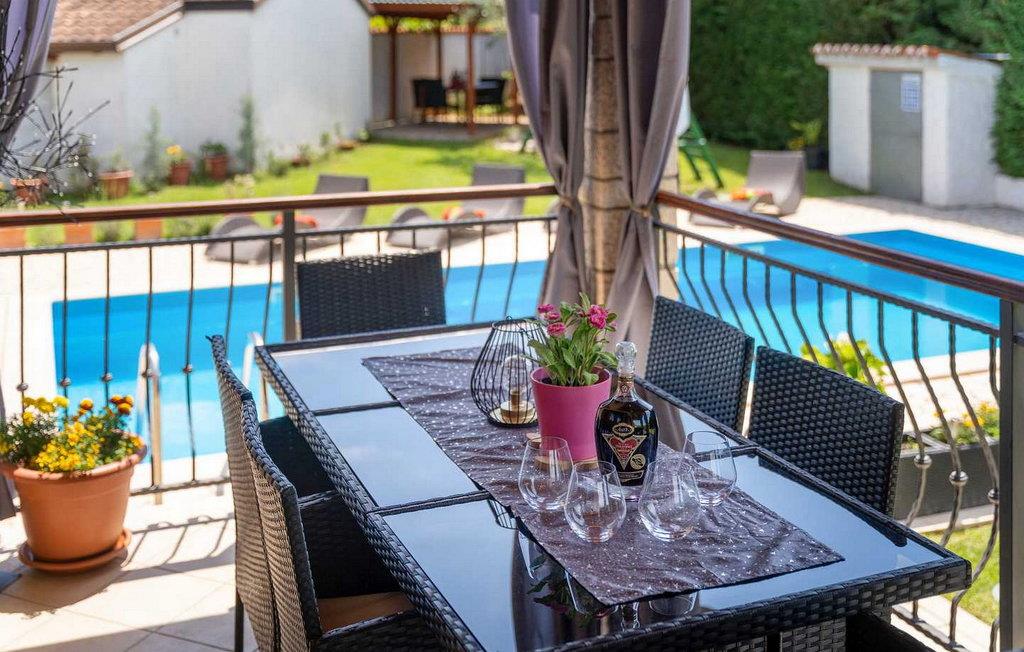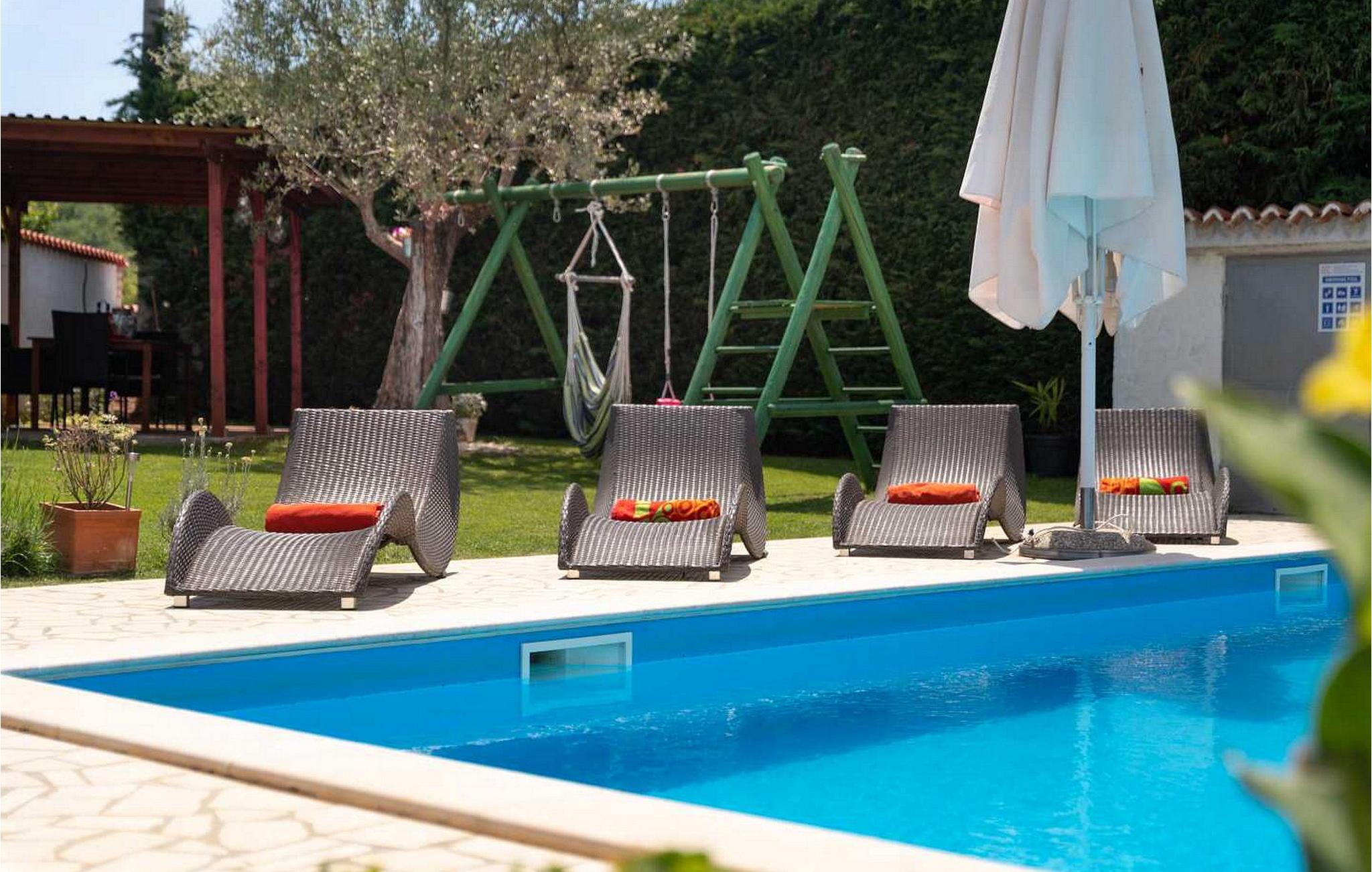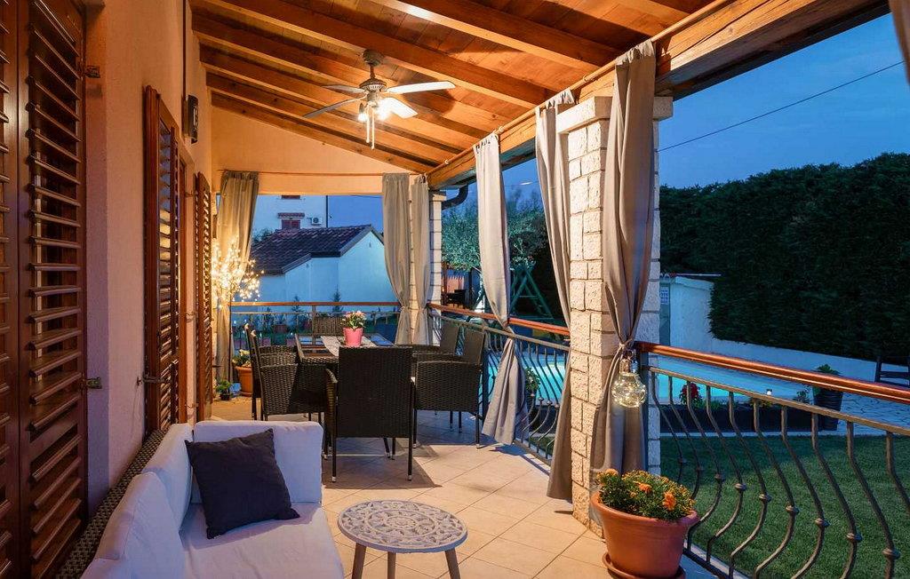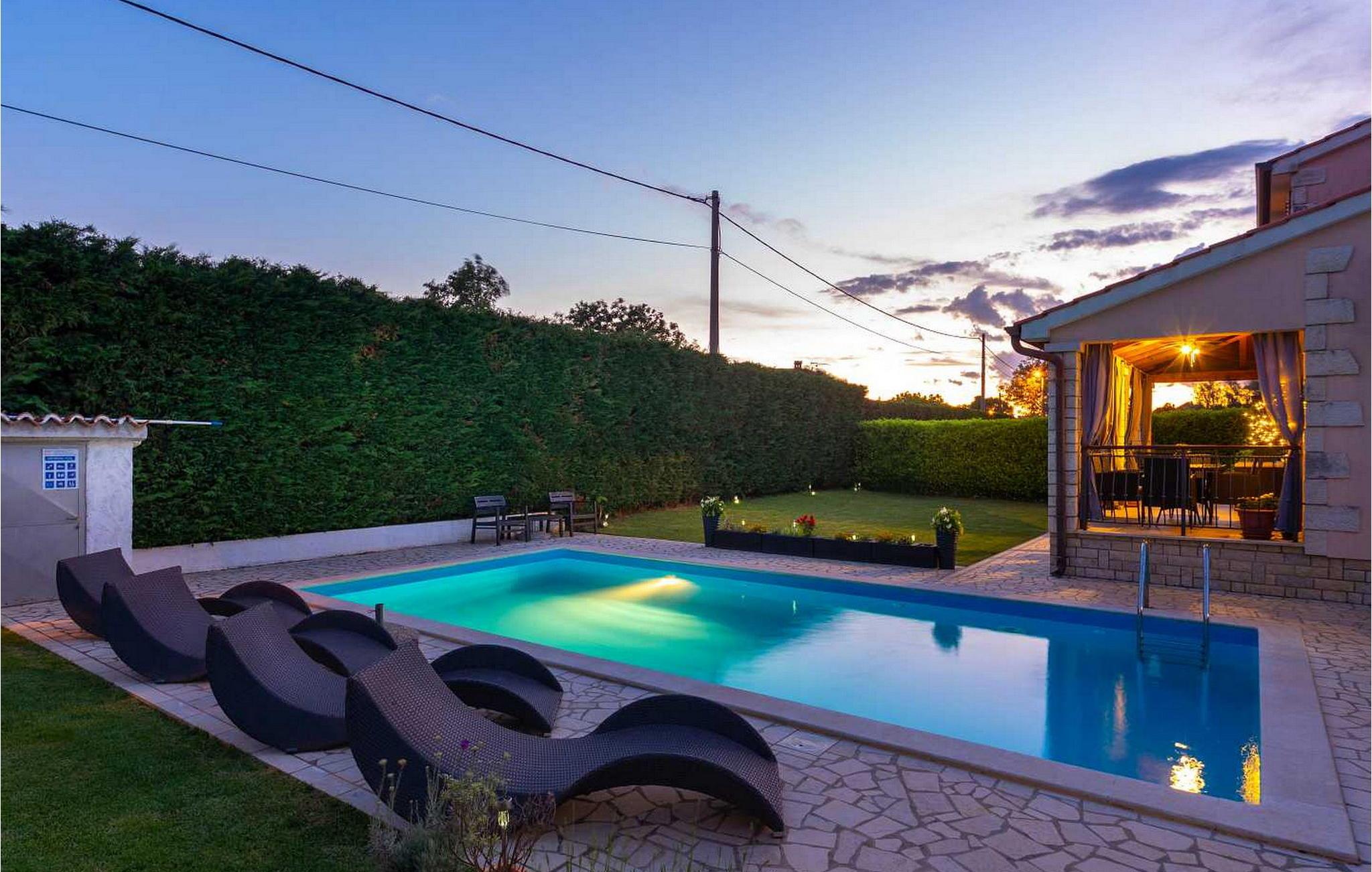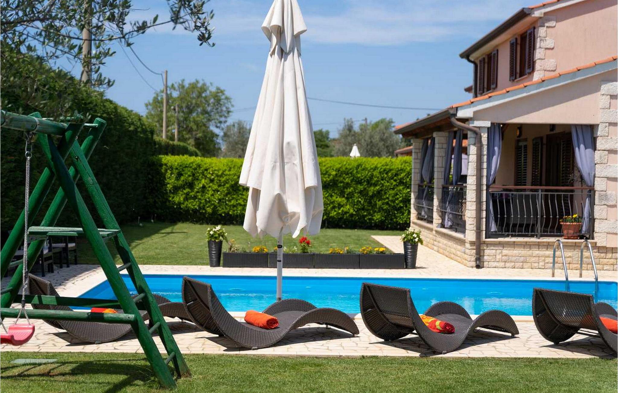 Dette komfortable hus til 6-8 gæster ligger i landsbyen Dracevac, 9 km fra Porec. Huset er bygget i 2007 og udstyret med nye og moderne møbler. På sin egen 500 kvm store ejendom tilbyder det sine gæster en udendørs pool, velholdt have med loungesæt og grill, overdækket terrasse med spisefaciliteter, legeplads og privat parkering. Med et boligareal på 135 kvm, i stueetagen er der stue med SAT-TV og sovesofa til 2 gæster, spisebord, medierum med sovesofa til 1 gæst og SAT-TV, fuldt udstyret køkken, bruser/ toilet og mindre spisekammer med vaskemaskine. Fra stuen er der udgang til terrasse med spisebord og komfortable siddepladser med udsigt over poolen. På første sal er der tre soveværelser, to med dobbeltsenge og et med to enkeltsenge, et bad/toilet. Huset har aircondition på begge etager. Interiøret og haven er delvist istandsat til sommersæsonen 2020. OBS: Mindre kæledyr op til max 10 kg er tilladt. Bemærk venligst, at denne ejendom ikke accepterer ungdomsgrupper eller polterabends. En ungdomsgruppe på denne ejendom er en gruppe bestående af personer på 26 år eller derunder. Book ikke denne ejendom, hvis du er en ungdomsgruppe eller et polterabend, da din reservation vil blive afvist efter booking, hvilket kan omfatte ved ankomst til ejendommen eller under dit ophold, og du vil ikke blive refunderet.