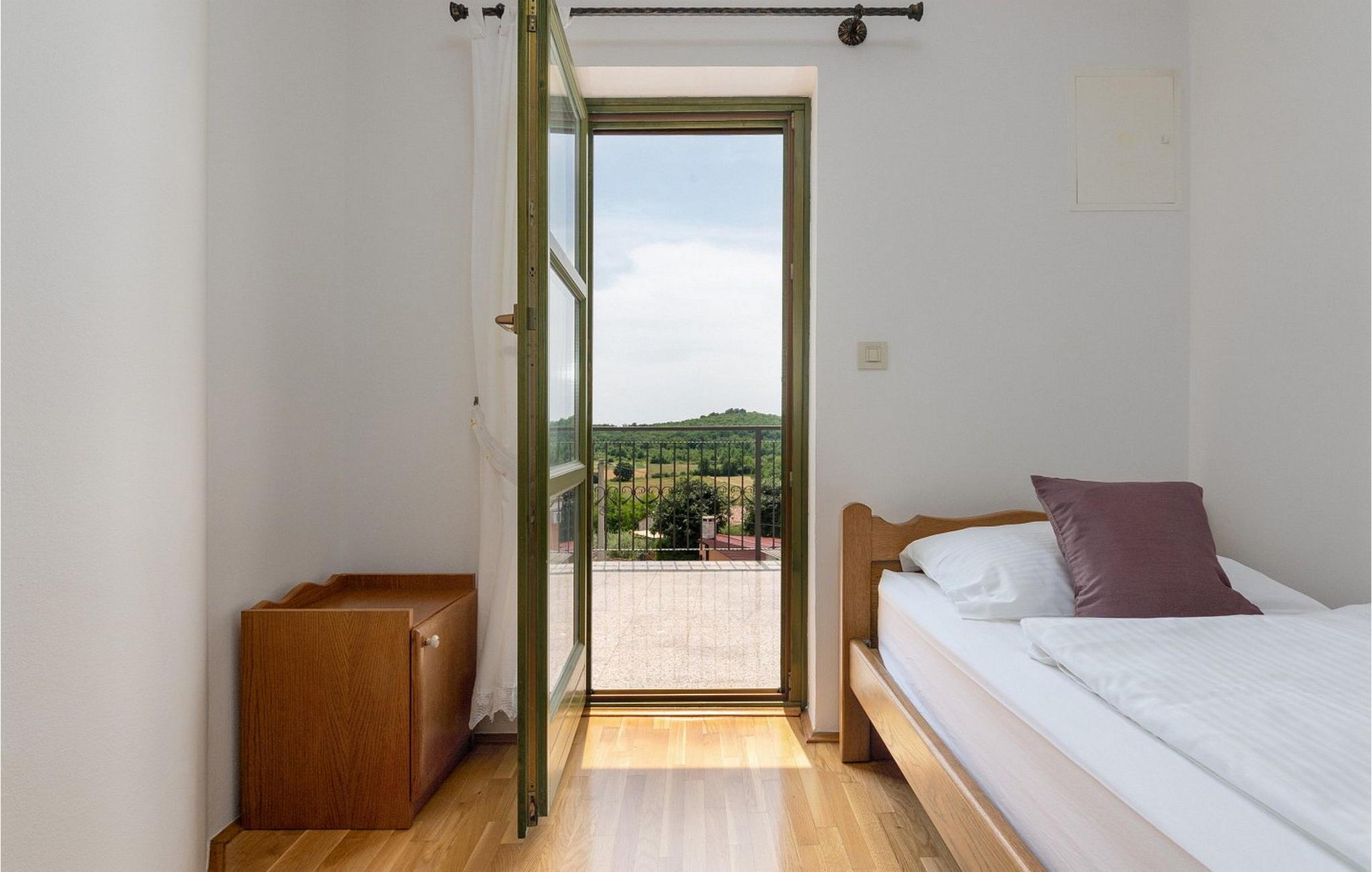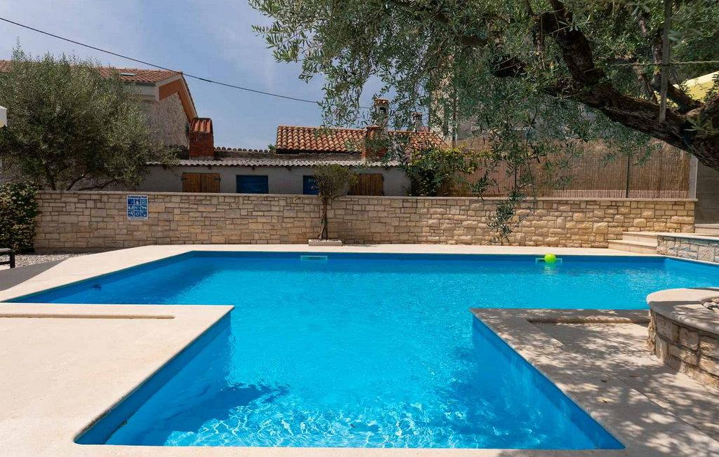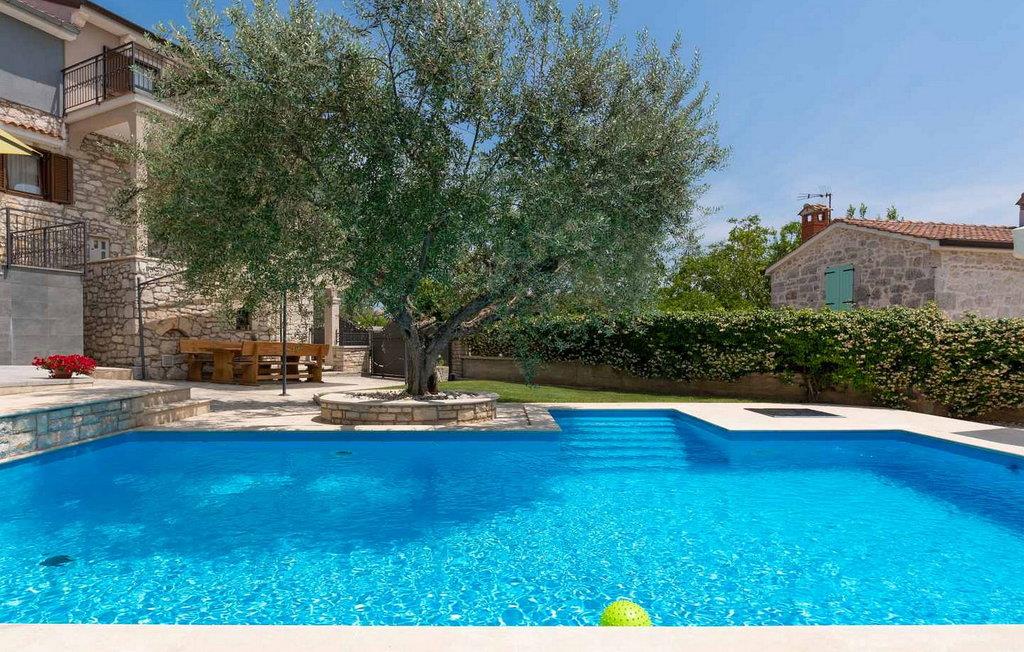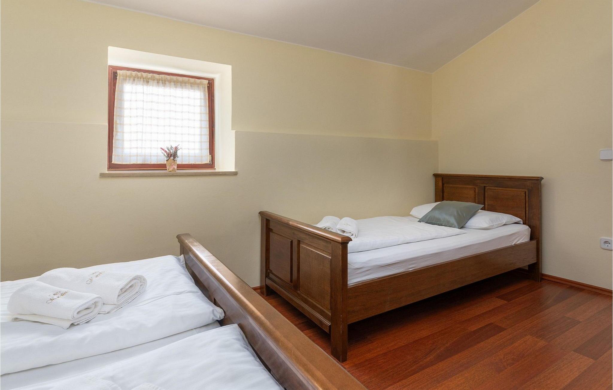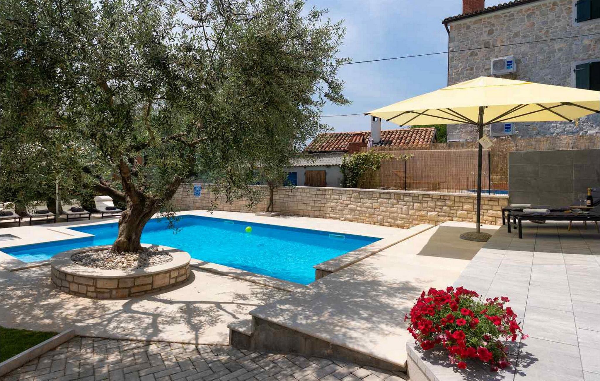 Dette imponerende feriehus, bestående af to nænsomt restaurerede rækkehuse, kombinerer moderne komfort med traditionel charme. I den rolige landsby Dracevac, kun få kilometer fra Porec og havet, byder huset på masser af plads i to etager til to til tre familier. Dobbeltværelserne med egen terrasse og pooludsigt sikrer en god nats søvn.
