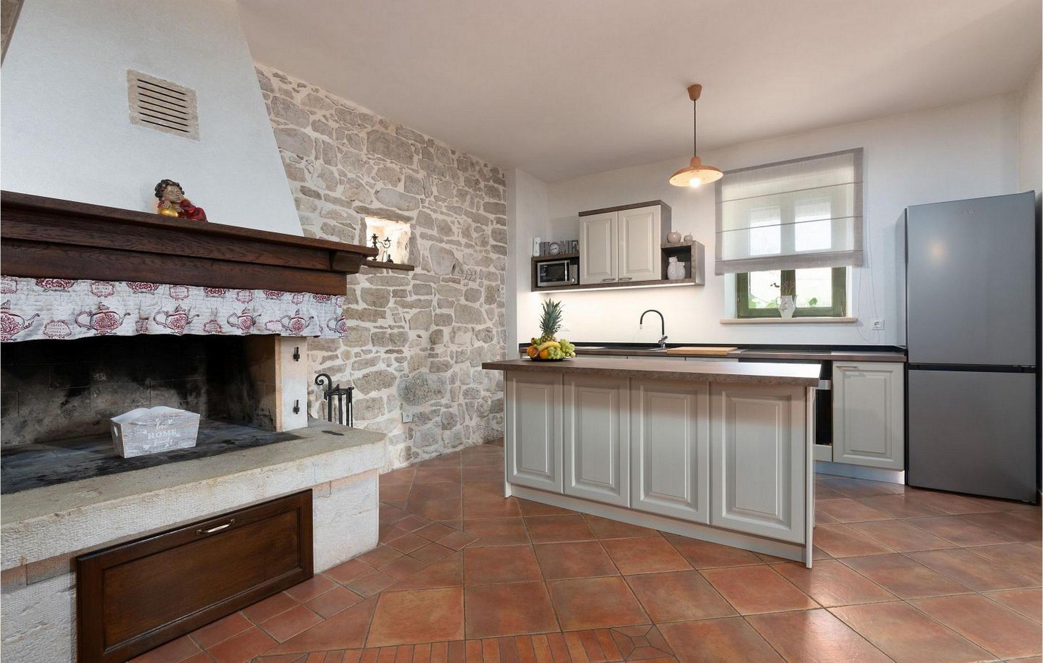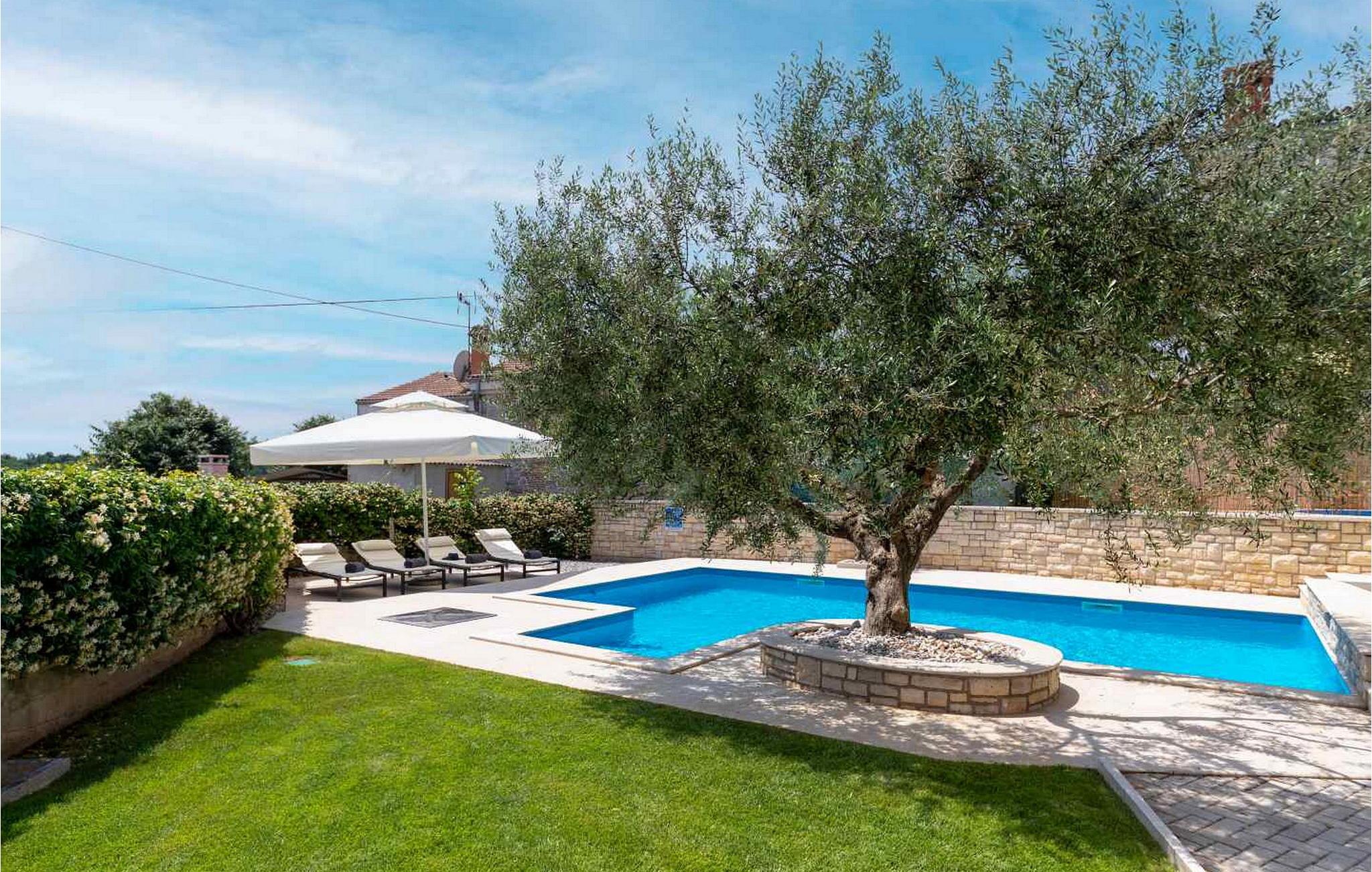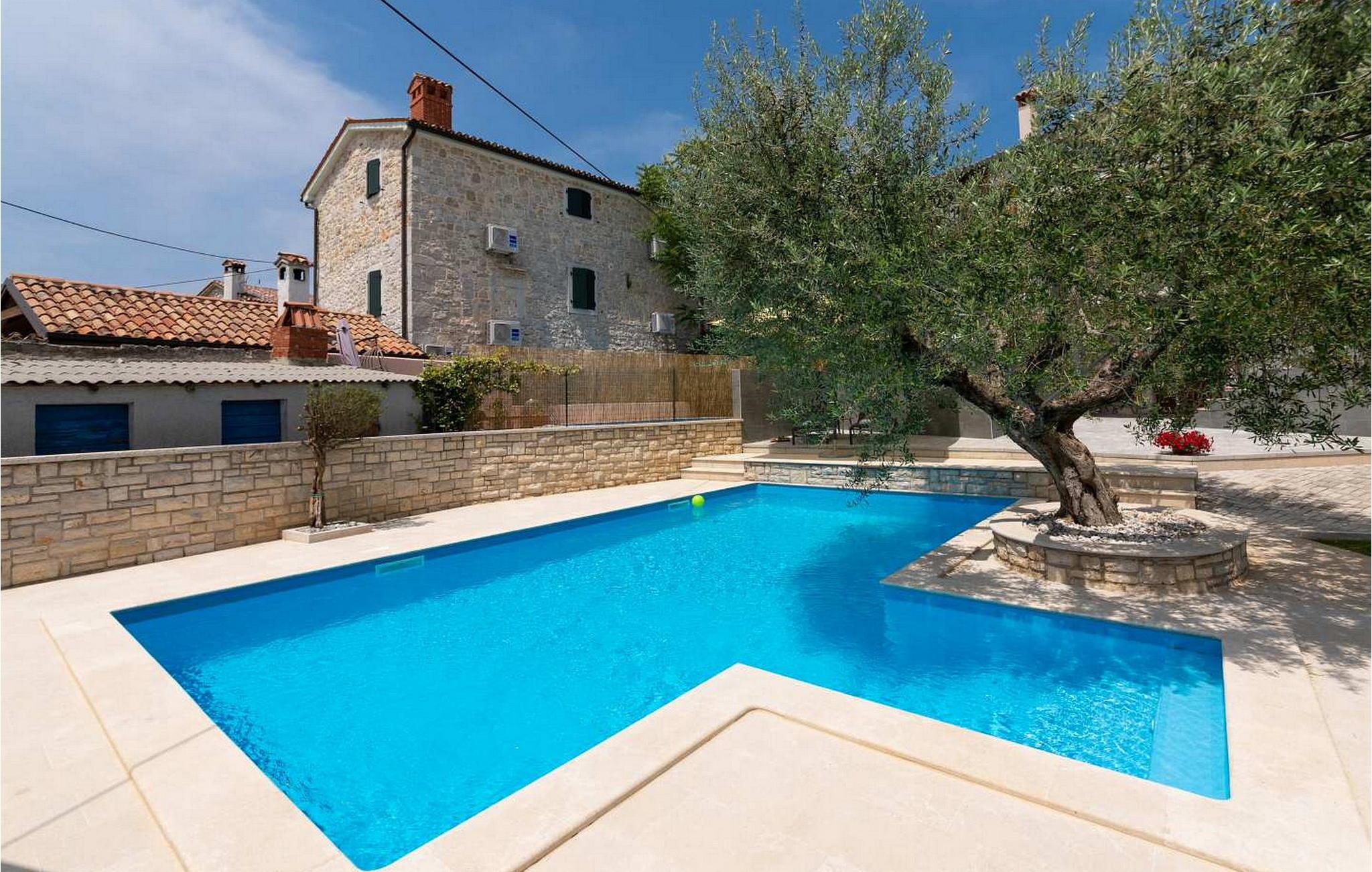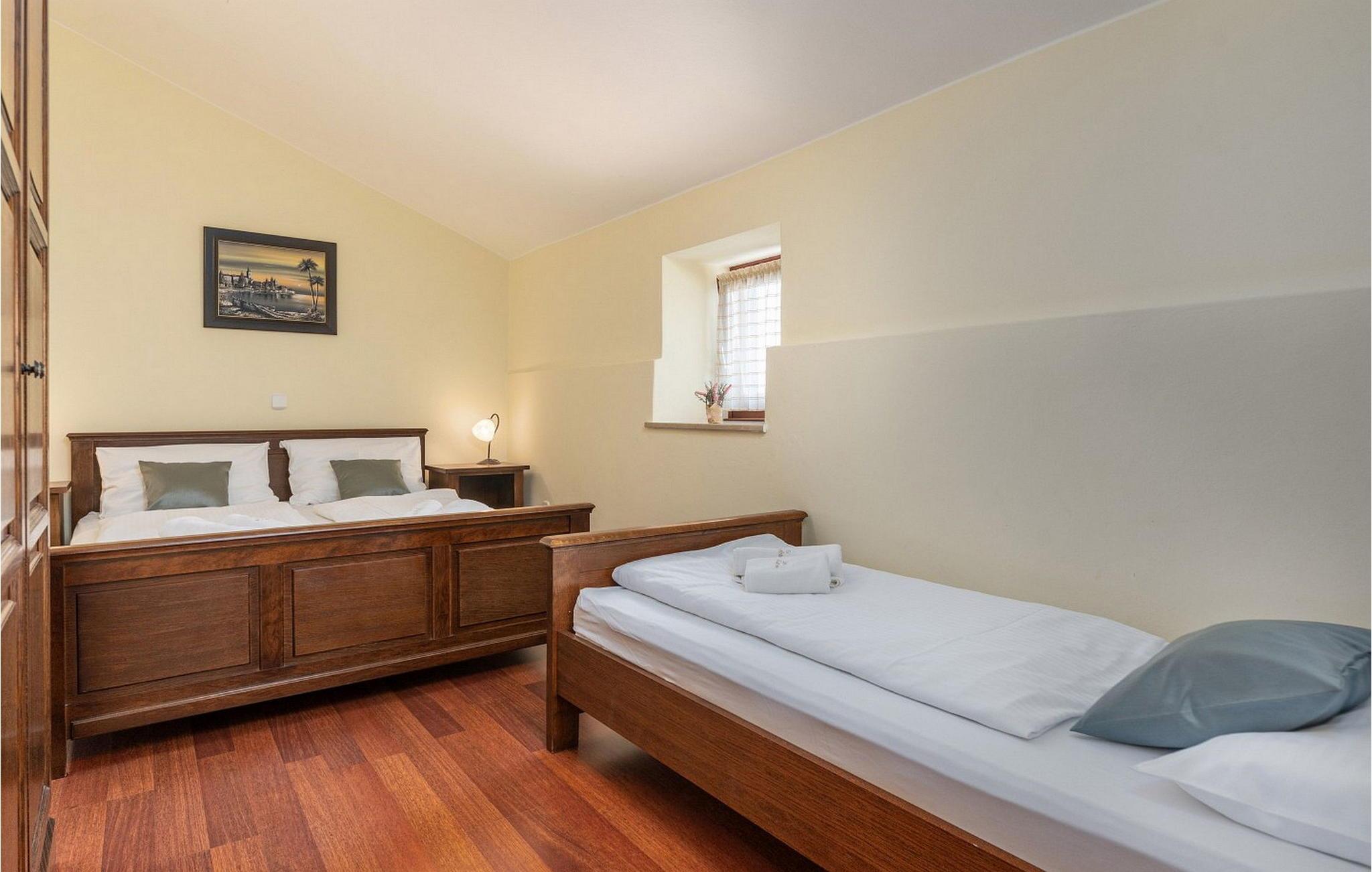 Dette imponerende feriehus, bestående af to nænsomt restaurerede rækkehuse, kombinerer moderne komfort med traditionel charme. I den rolige landsby Dracevac, kun få kilometer fra Porec og havet, byder huset på masser af plads i to etager til to til tre familier. Dobbeltværelserne med egen terrasse og pooludsigt sikrer en god nats søvn.
