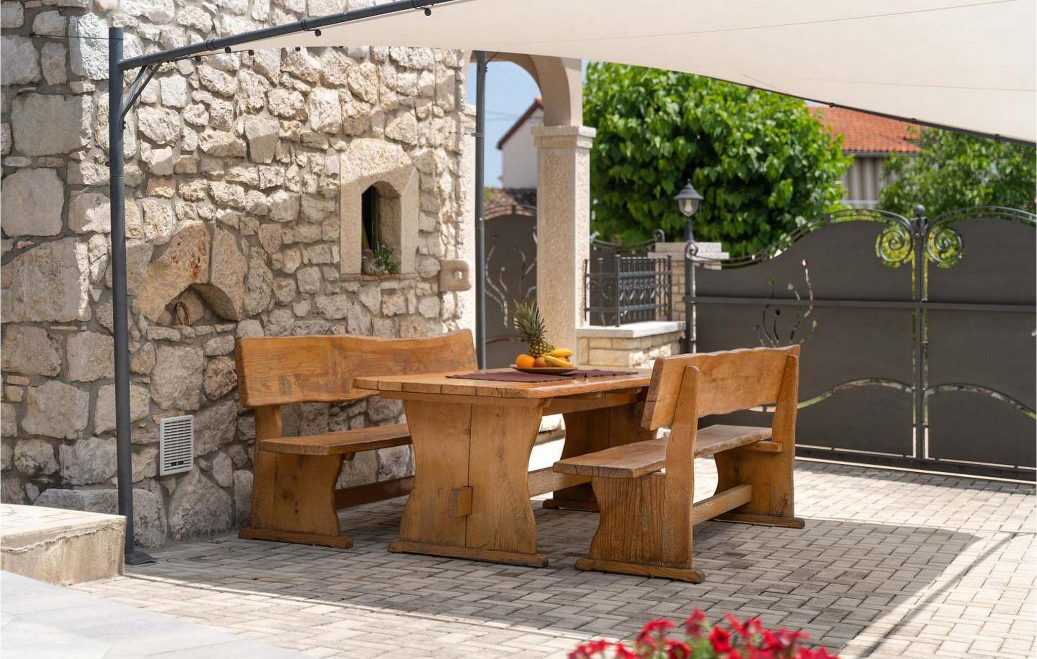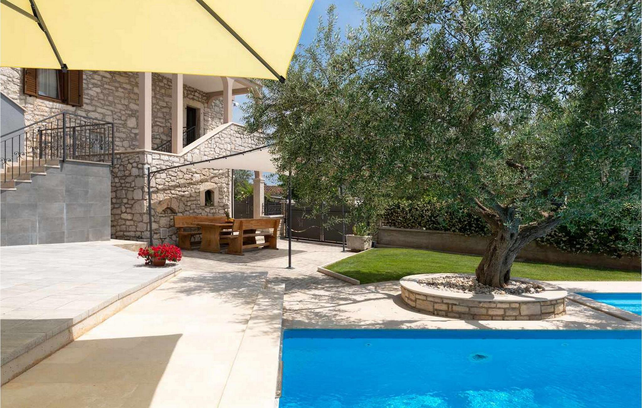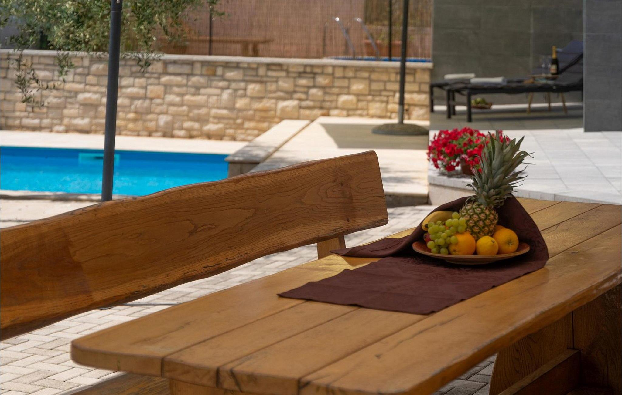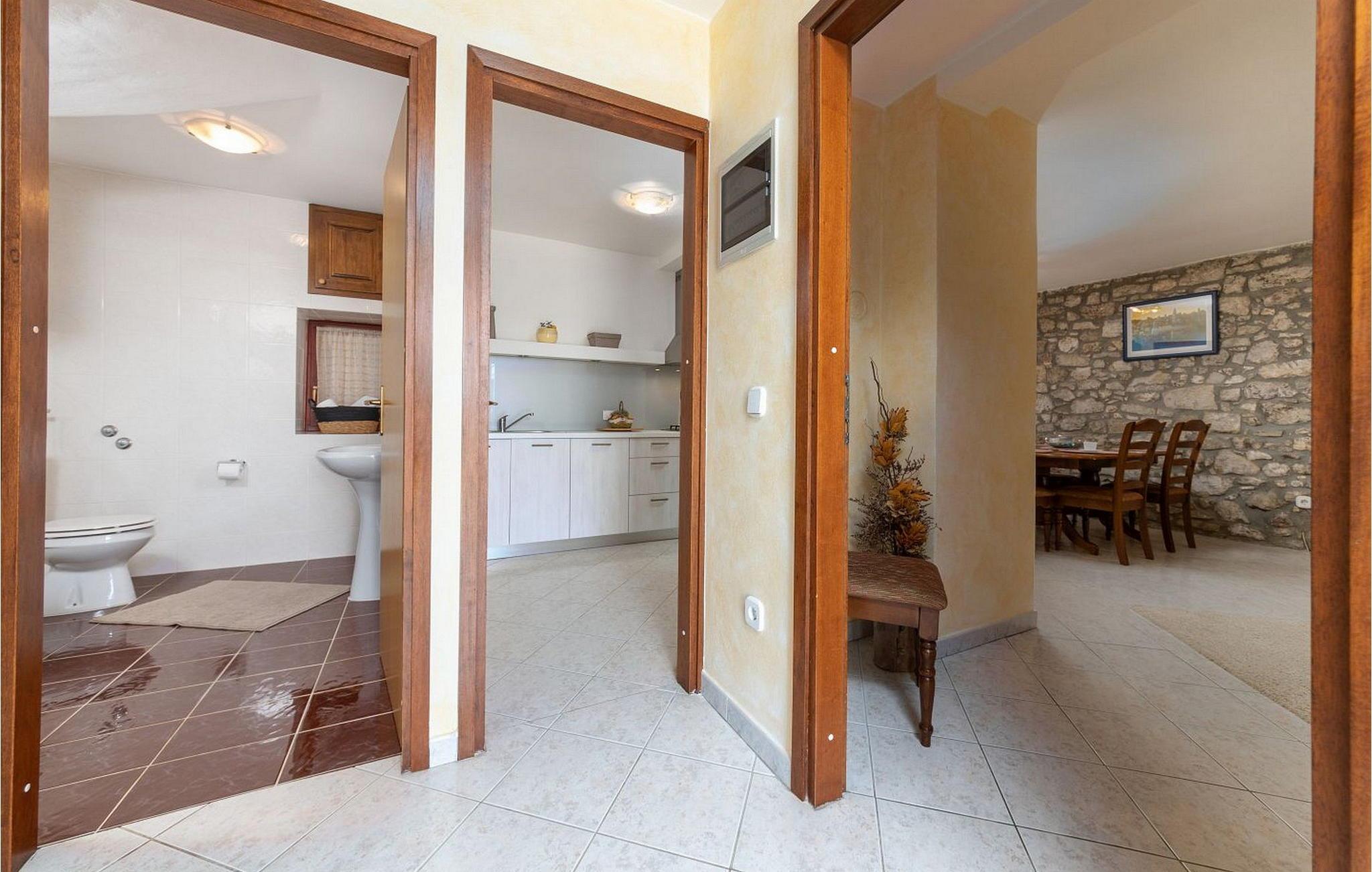 Dette imponerende feriehus, bestående af to nænsomt restaurerede rækkehuse, kombinerer moderne komfort med traditionel charme. I den rolige landsby Dracevac, kun få kilometer fra Porec og havet, byder huset på masser af plads i to etager til to til tre familier. Dobbeltværelserne med egen terrasse og pooludsigt sikrer en god nats søvn.