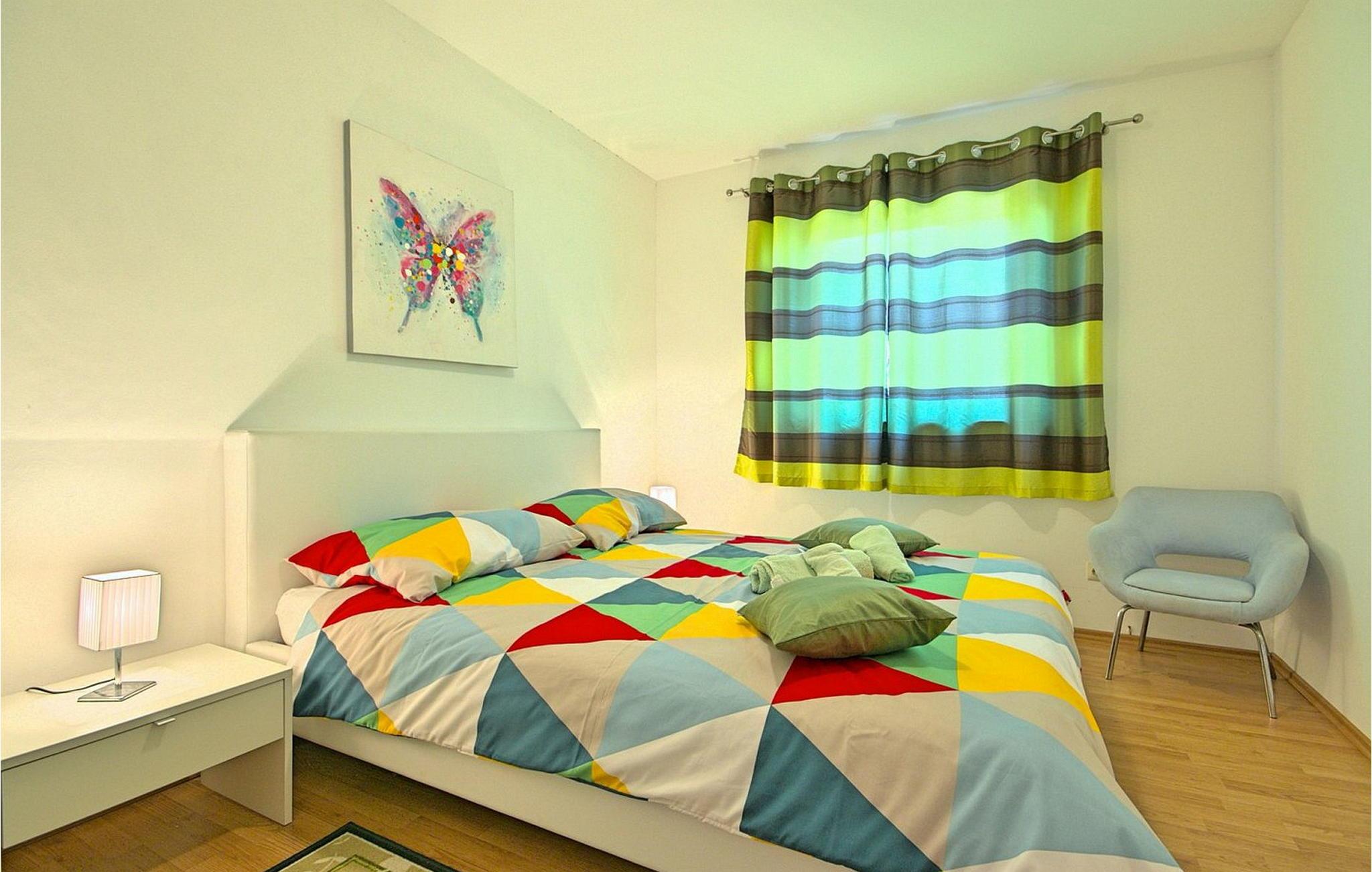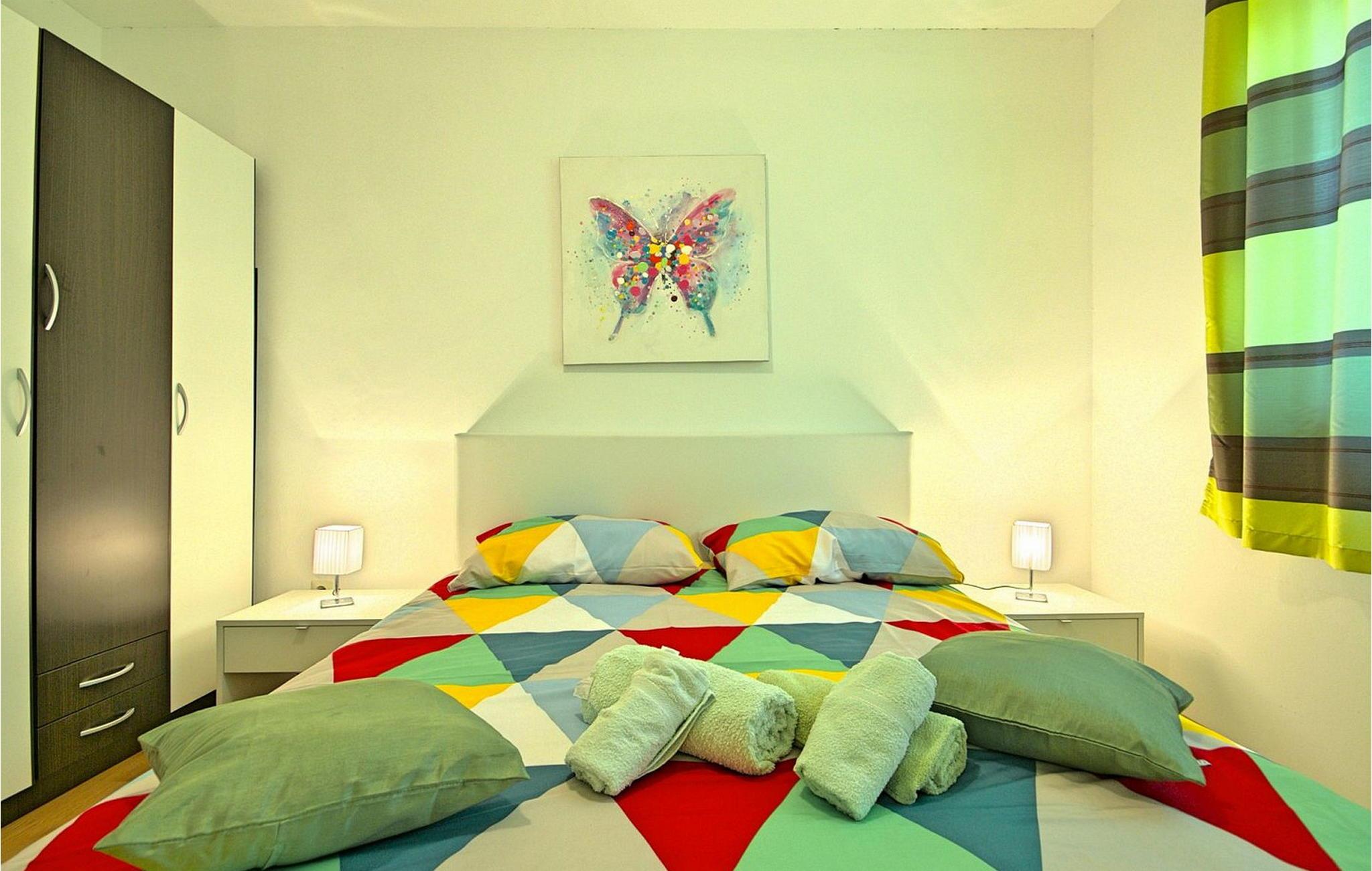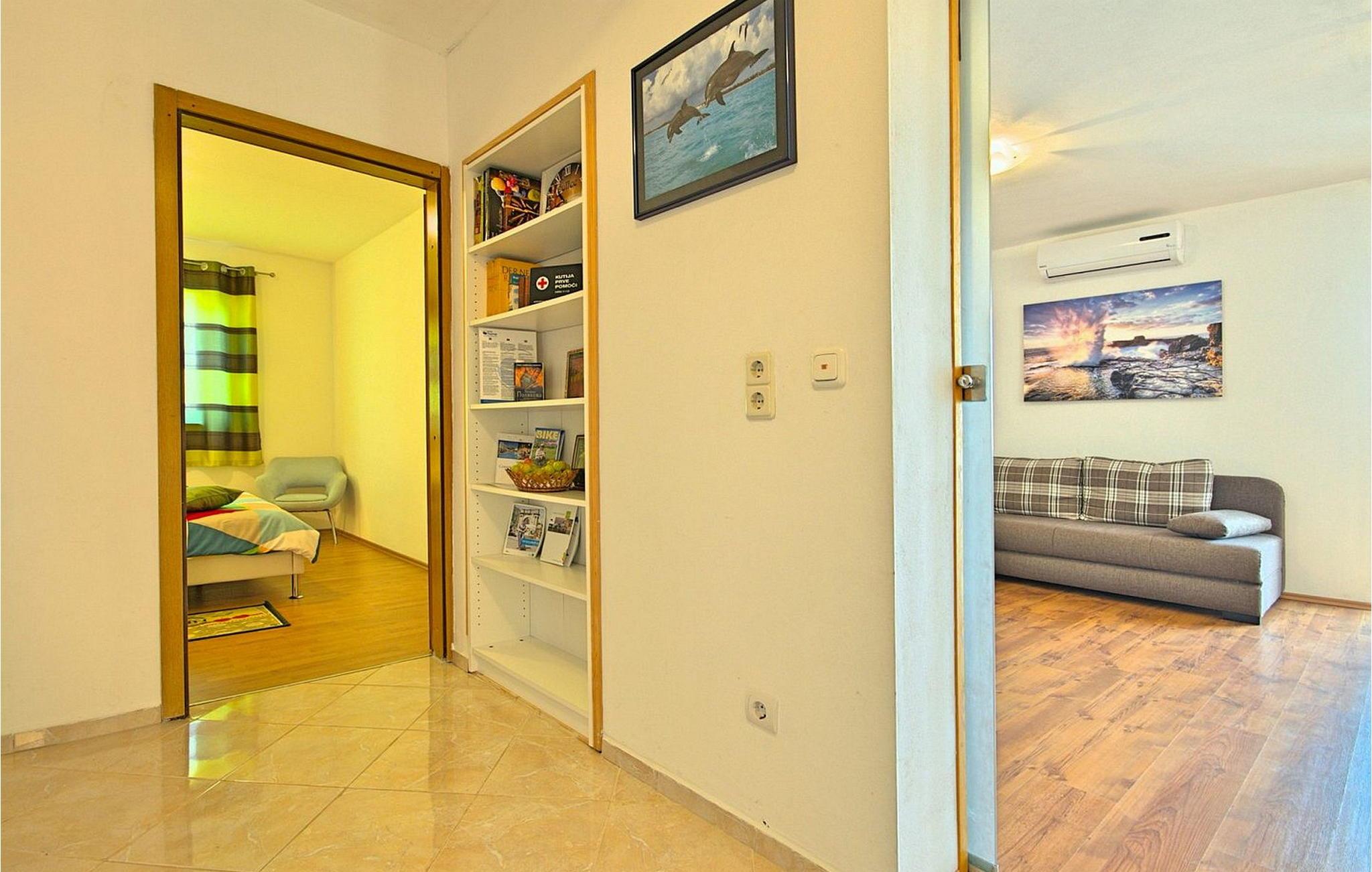 Nyd en vidunderlig ferie i Istrien i lejlighed Lukas, bekvemt beliggende kun 4 km fra centrum af Porec, dets strande og den charmerende gamle bydel. Gæsterne har adgang til en rummelig overdækket terrasse med bord og stole, hvor de kan få mest muligt ud af udendørslivet. Der er også en grill, hvor du kan tilberede dine yndlingsmåltider, mens du er på ferie udendørs. Lejligheden består af en stor stue med en komfortabel sofa (en sovesofa til to personer) og udgang til terrassen. Stuen fører til et soveværelse med dobbeltseng, som også har udgang til terrassen, og et separat køkken. Lejligheden er beliggende i et enfamiliehus i boligområdet Vrvari. Porec er meget tæt på. Der kan du besøge den berømte Euphrasiam-basilika eller tage en afslappet gåtur langs havnepromenaden eller gennem den gamle bydel. En livlig atmosfære venter dig i de smalle stengader med hyggelige restauranter og små souvenirbutikker. Bemærk venligst, at denne ejendom accepterer ungdomsgrupper efter anmodning. Kontakt os venligst for at tjekke. En ungdomsgruppe på denne ejendom består af personer på 26 år eller derunder. Hvis du er en ungdomsgruppe [eller planlægger en polterabend], kan du blive bedt om at betale et ekstra depositum ved ankomst. Ethvert beløb, der kræves for at reparere eventuelle skader på ejendommen forårsaget af dig, vil blive trukket fra depositum.
