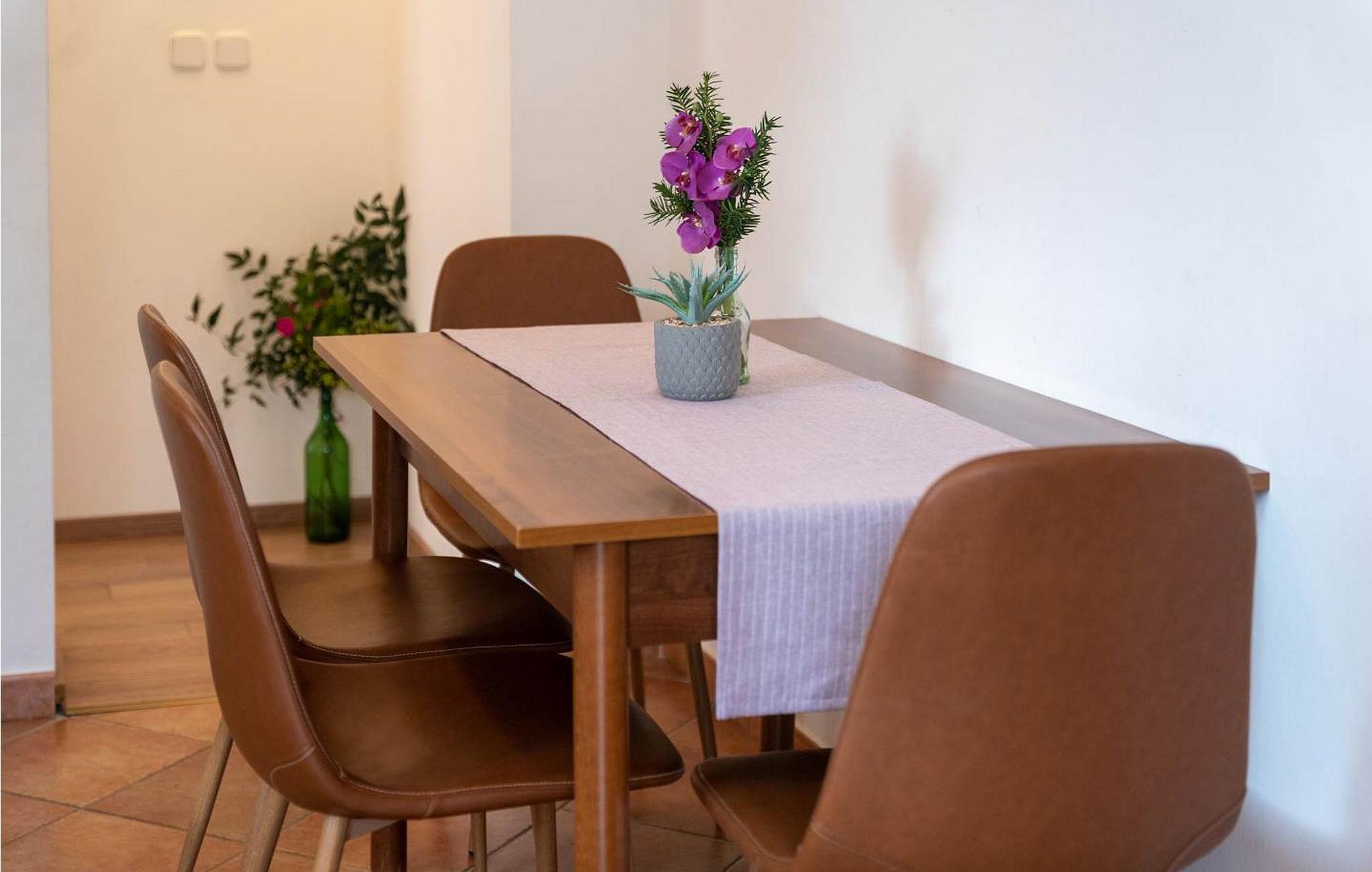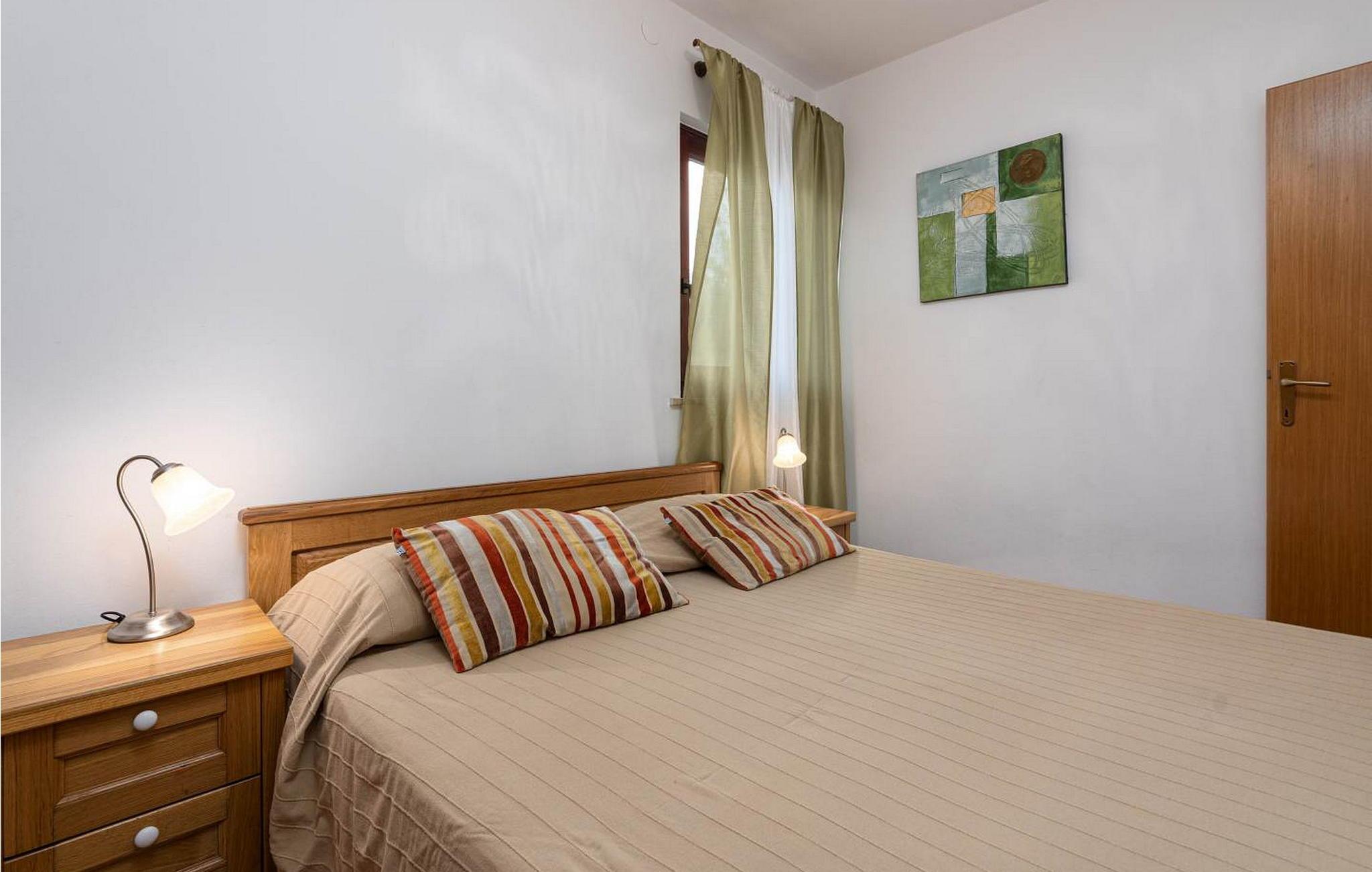 Oplev charmen ved Saladinka Apartments, beliggende i en stille landsby nær Porec. Disse hyggelige retreater er perfekt beliggende kun 150 meter fra det glitrende hav, hvilket gør dem til et ideelt valg for en uforglemmelig familieferie i Istrien. Huset består af tre forskellige lejligheder i en rummelig 1000 m² stor have. Nyd den indbydende swimmingpool omgivet af en solbeskinnet terrasse med komfortable liggestole og parasoller. Den smukt anlagte have byder på et fredeligt tilflugtssted, mens sommerkøkkenet med overdækket terrasse og stort spisebord er perfekt til udendørs spisning under stjernerne. Fire overdækkede parkeringspladser er også tilgængelige. Lejlighed Saladinka 2 for 2-4 gæster ligger i stueetagen og består af en stue med aircondition og satellit-tv, et separat køkken med spisebord, et soveværelse og et badeværelse. Træd ud på terrassen og nyd den vidunderlige udendørs atmosfære. Nyd den perfekte blanding af komfort og bekvemmelighed i dette charmerende ferieparadis. Porec ligger kun en kort køretur derfra. Der kan du beundre Euphrasia-basilikaen, et imponerende mesterværk fra det 6. århundrede. Porecs rige kulturarv omfatter massive bymure, charmerende stengader med hyggelige restauranter og souvenirbutikker og en malerisk havnepromenade perfekt til slentreture. Bemærk venligst, at denne ejendom ikke accepterer ungdomsgrupper eller polterabender. En ungdomsgruppe på denne ejendom består af personer på 26 år eller derunder.