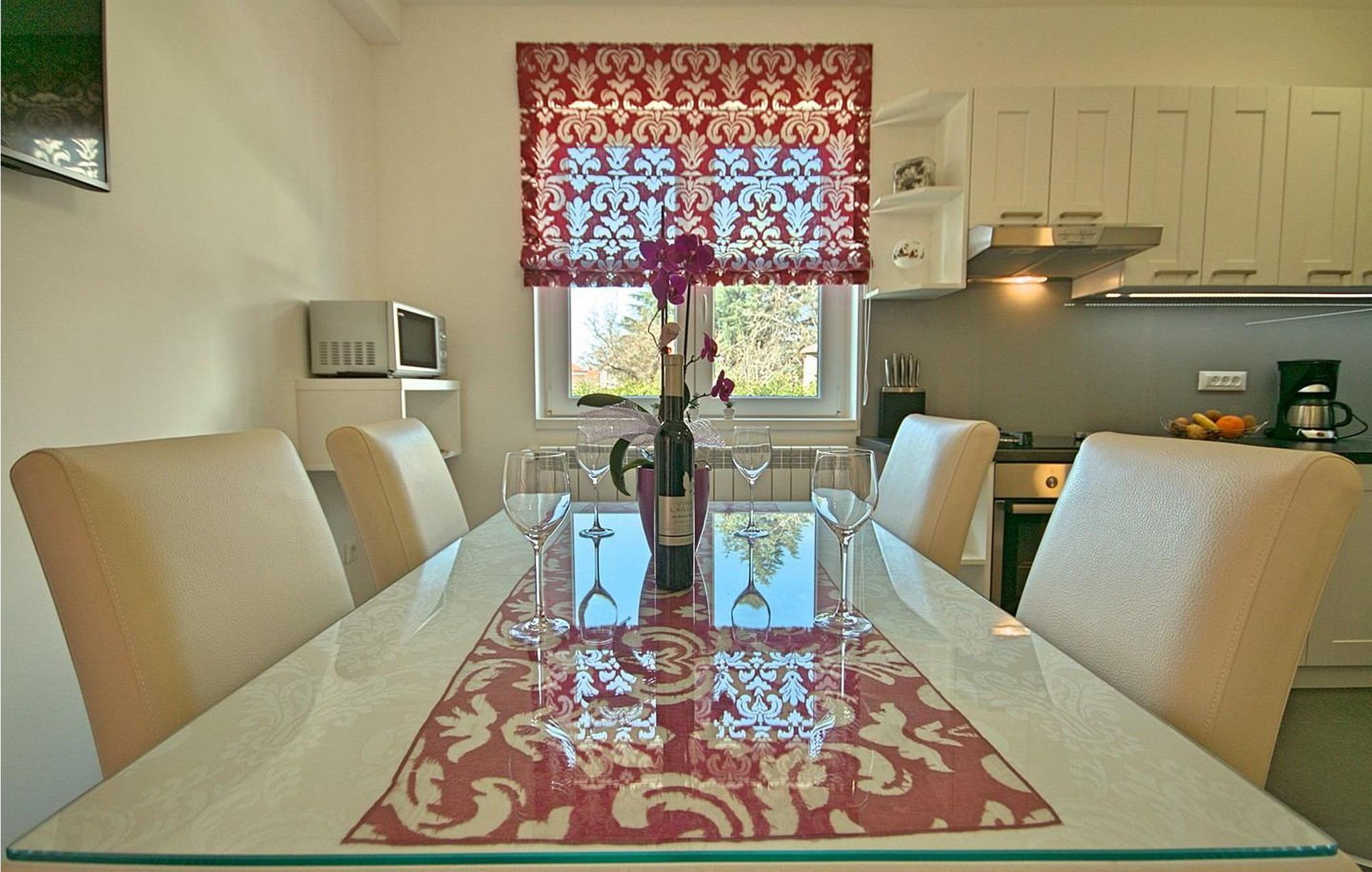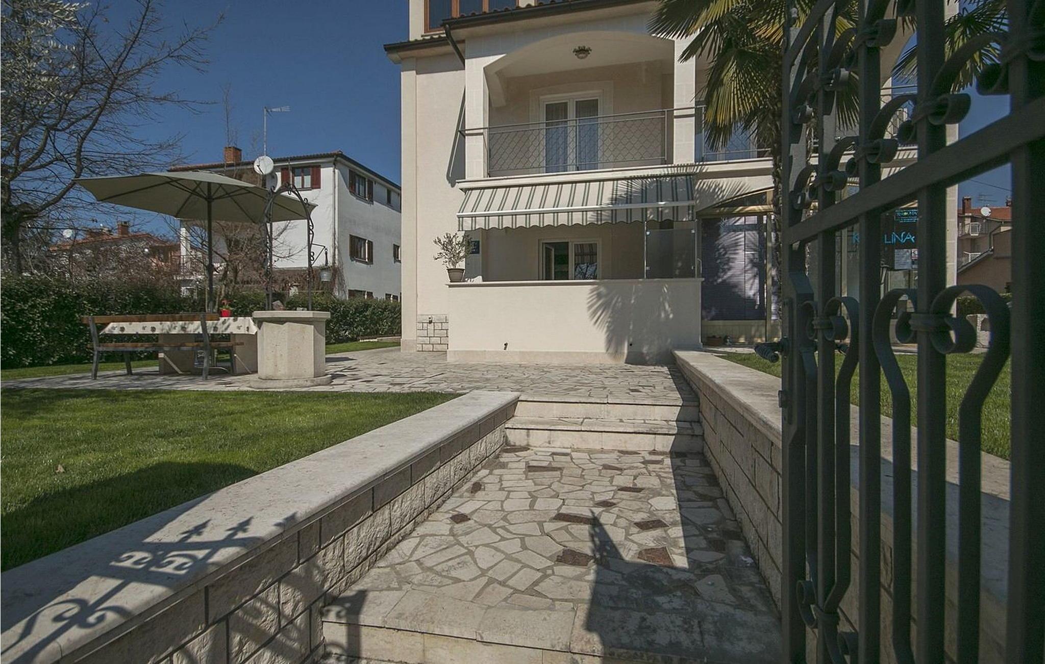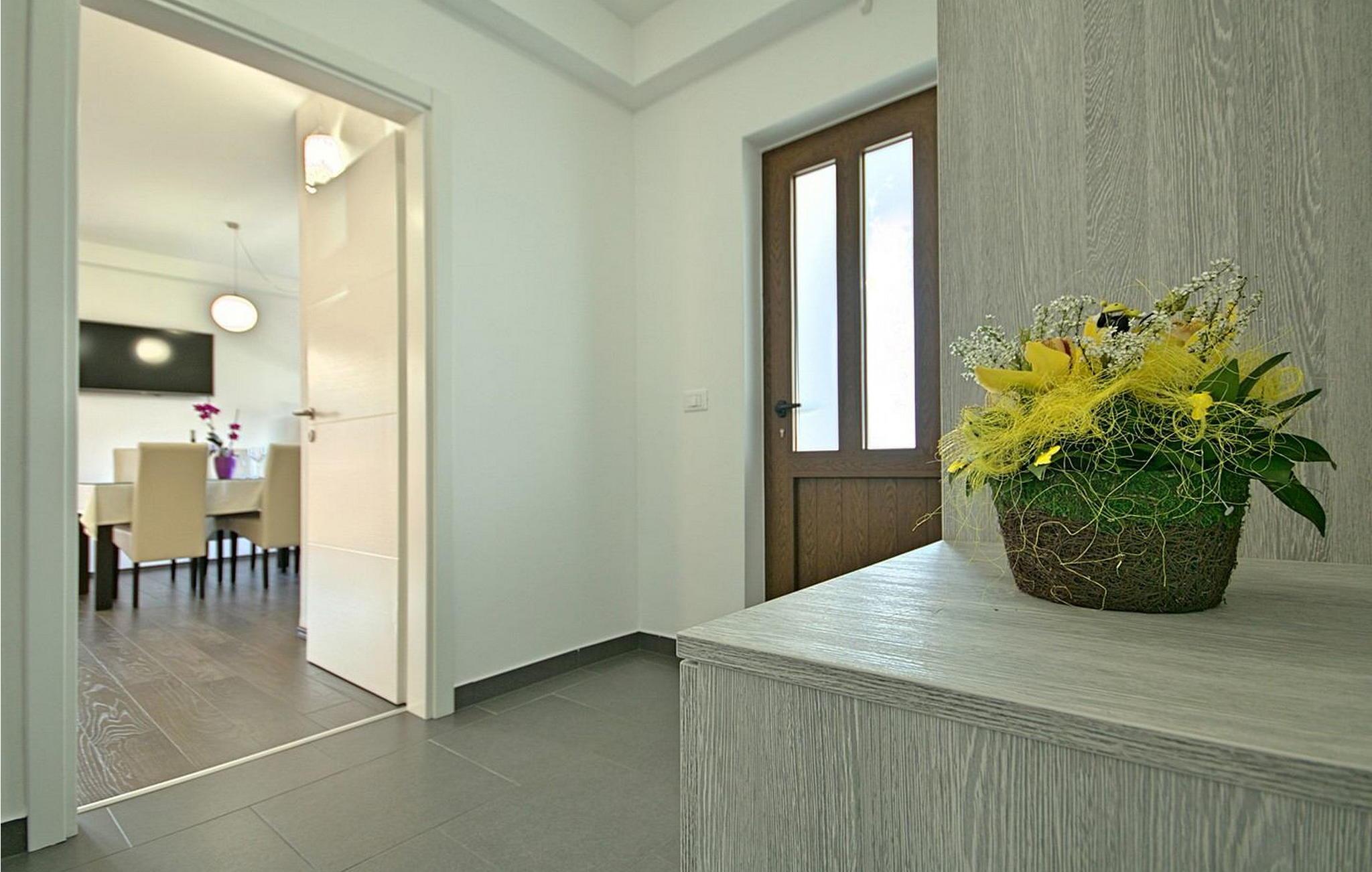 Velkommen til denne moderne ferielejlighed på første sal i et enfamiliehus i det rolige Finida-kvarter i Porec. Den lyse, stilfulde indretning sikrer en behagelig opholdsoplevelse.