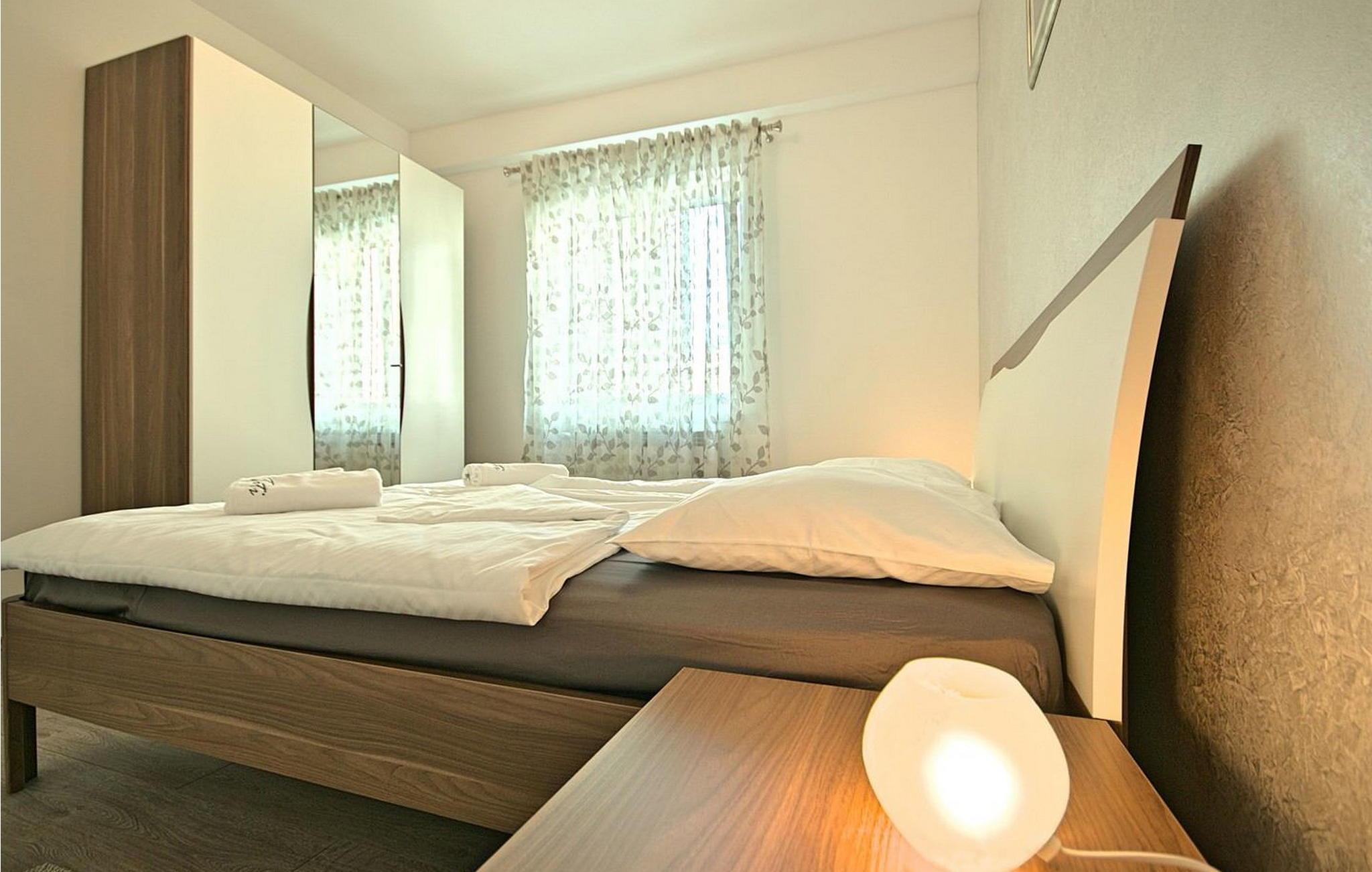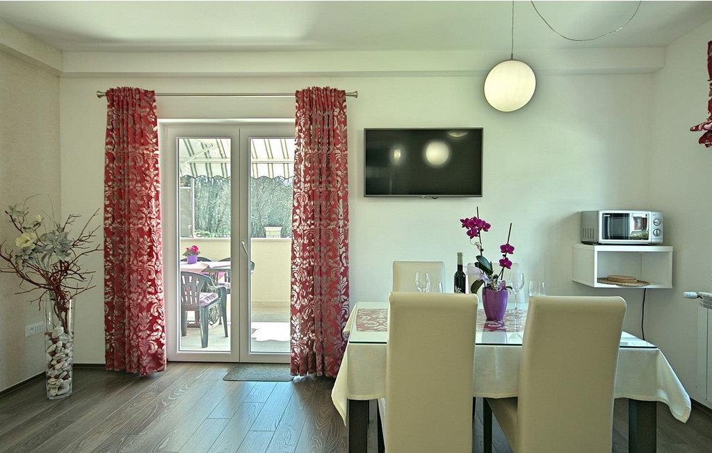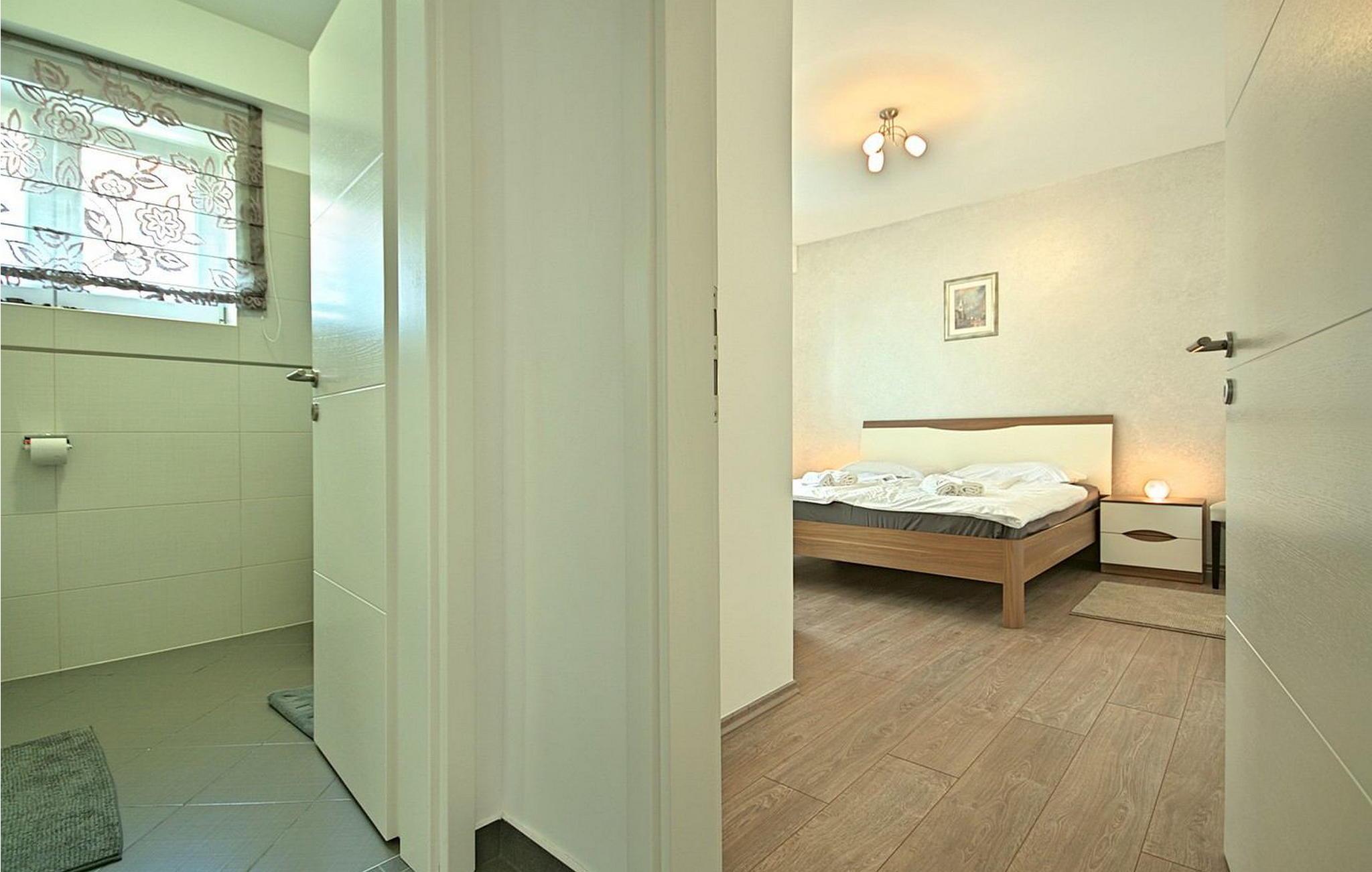 Velkommen til denne moderne ferielejlighed på første sal i et enfamiliehus i det rolige Finida-kvarter i Porec. Den lyse, stilfulde indretning sikrer en behagelig opholdsoplevelse.