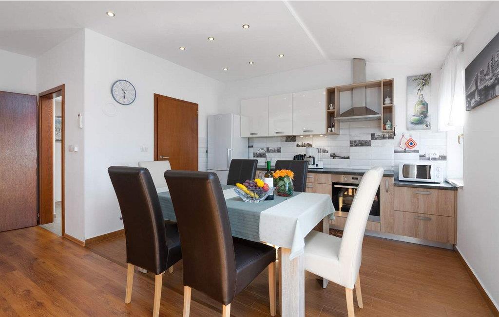 Apartment Jedro er en smuk og moderne lejlighed beliggende på første sal i et familiehus i Nova Vas, nær Porec. I nærheden er der også butik, posthus, kaffebar og pizzeria. På lukket grund på 400 kvm til gæsternes rådighed er der desuden terrasse med grill og to overdækkede parkeringspladser. Ejeren af ejendommen bor i husets stueetage. Denne rummelige lejlighed på 110 kvm består af: stue, spiseplads og køkken med udgang til altan, to soveværelser med dobbeltsenge, hvoraf det ene med egen altan, to bad/toiletter. Bemærk venligst, at denne ejendom ikke accepterer ungdomsgrupper eller polterabends. En ungdomsgruppe på denne ejendom er en gruppe bestående af personer på 26 år eller derunder. Book ikke denne ejendom, hvis du er en ungdomsgruppe eller et polterabend, da din reservation vil blive afvist efter booking, hvilket kan omfatte ved ankomst til ejendommen eller under dit ophold, og du vil ikke blive refunderet.