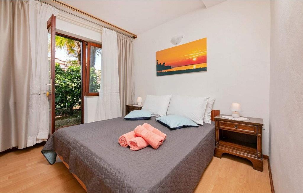 Velkommen til Apartments Sunset, ideelt beliggende i et roligt kvarter i det bredere centrum af Porec. Disse charmerende lejligheder er beliggende i et familiehus og tilbyder nem adgang til lokale faciliteter såsom butikker, restauranter, bagerier og slagtere, alle kun 2-3 minutters gang væk. Gæsterne kan nyde den fælles have med en grill til udendørs spisning, og hver lejlighed har sin egen parkeringsplads for ekstra bekvemmelighed. Apartment Sunset Porec 2 ligger i stueetagen og er perfekt til 4 gæster. Det har et fuldt udstyret køkken, en spisestue og to soveværelser med dobbeltsenge. Det ene soveværelse har eget bad/toilet og der er ekstra bad/toilet på gangen. Lejligheden har også en smuk terrasse med et opholdsområde, der giver direkte adgang til haven for et fredeligt tilflugtssted. Stenstranden og det travle centrum af Porec ligger kun 800 meter fra din hoveddør, hvilket gør dette til en ideel base for at slappe af og udforske. Bemærk venligst, at denne ejendom ikke accepterer ungdomsgrupper eller polterabender. En ungdomsgruppe på denne ejendom består af personer på 26 år eller derunder.
