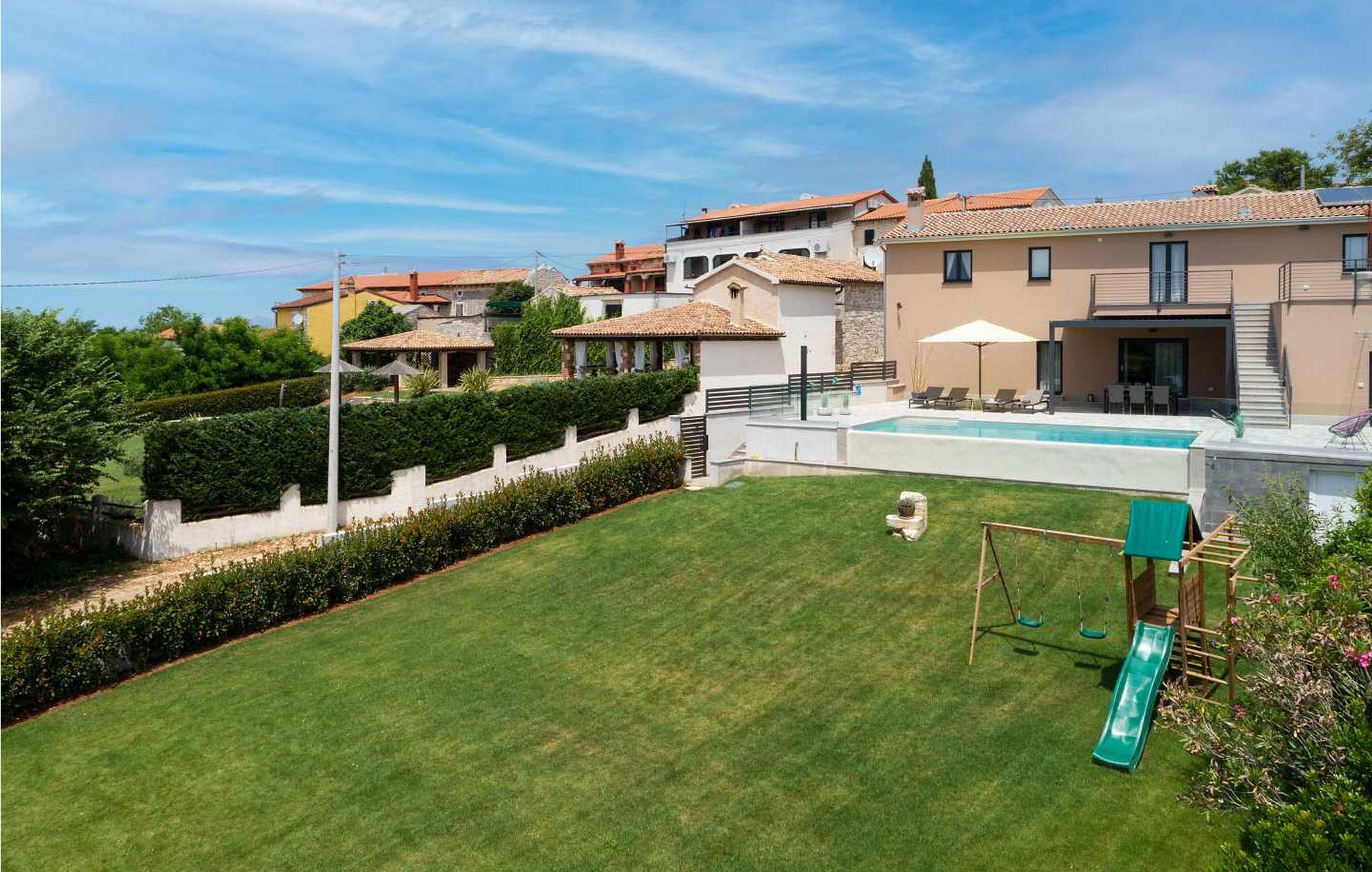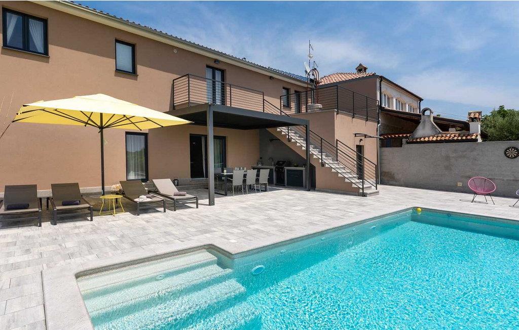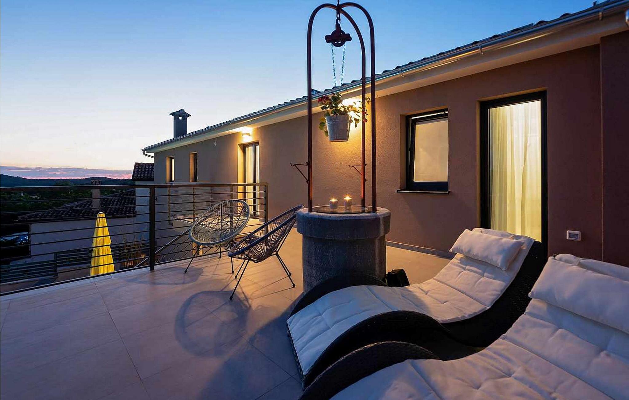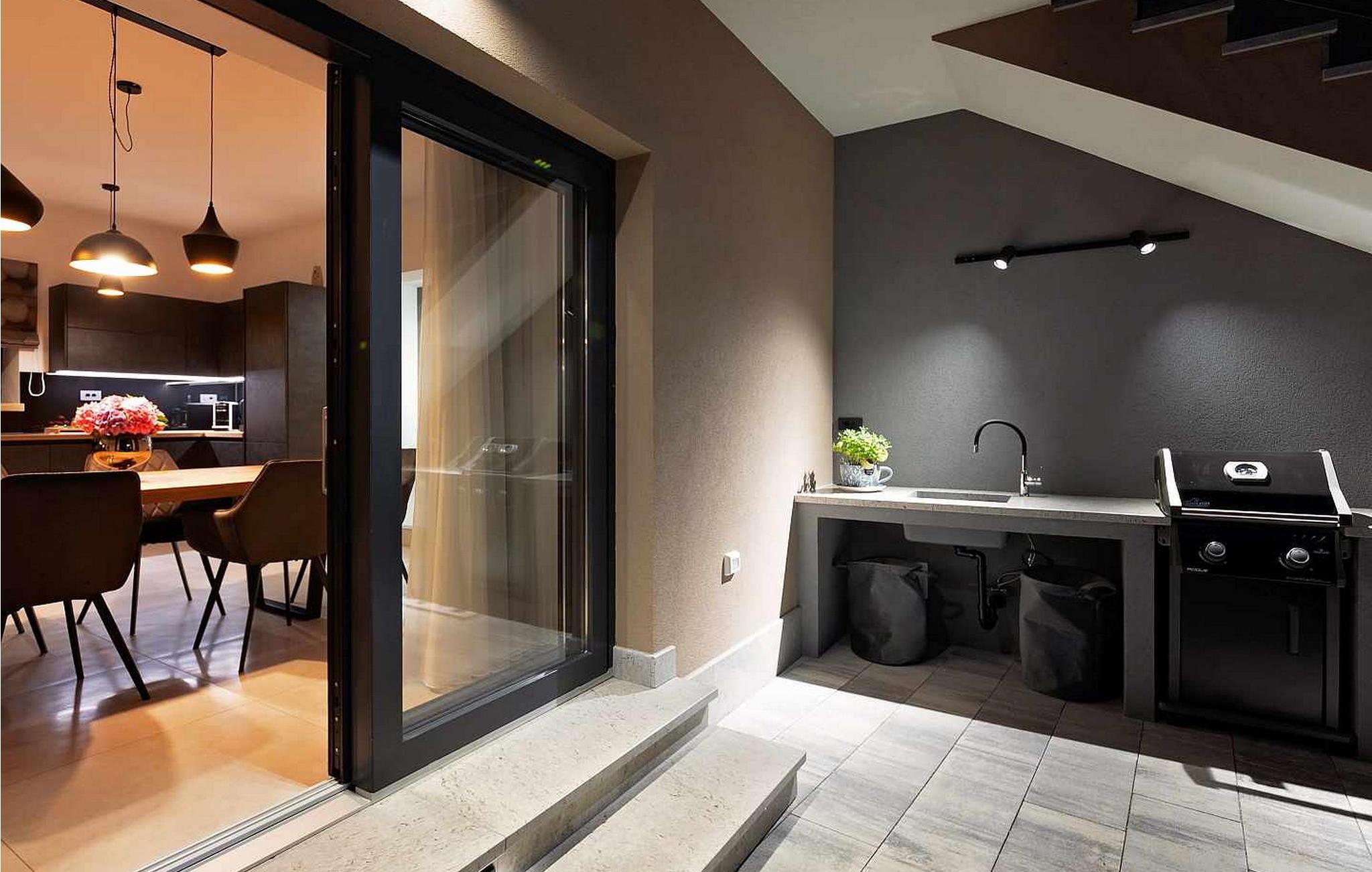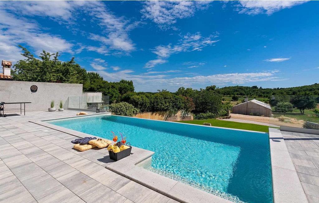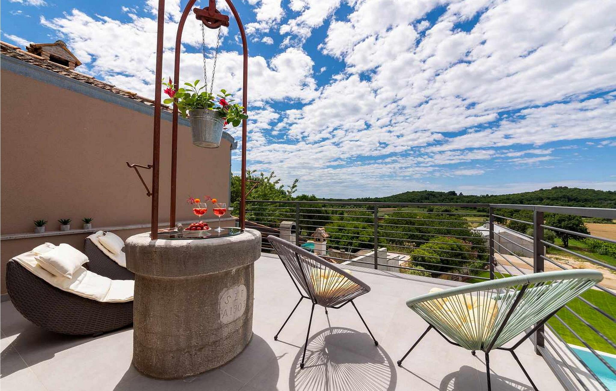 Velkommen til den imponerende Villa Sunnyside i udkanten af ??den idylliske landsby Dracevac. Dette moderne feriehus kombinerer moderne komfort med et strejf af historie, hvilket skaber en unik atmosfære. Den omhyggeligt designede vinkælder, som blev skabt af en gammel cisterne, giver boligen sin særlige charme. På den private ejendom kan I nyde fred og afslapning. Dyk ned i infinity-poolen, solbad på det rummelige solbadningsområde eller tilbring hyggelige timer ved grillen. Den udendørs spiseplads lægger op til at nyde kulinariske aftener under den istriske stjernehimmel.
