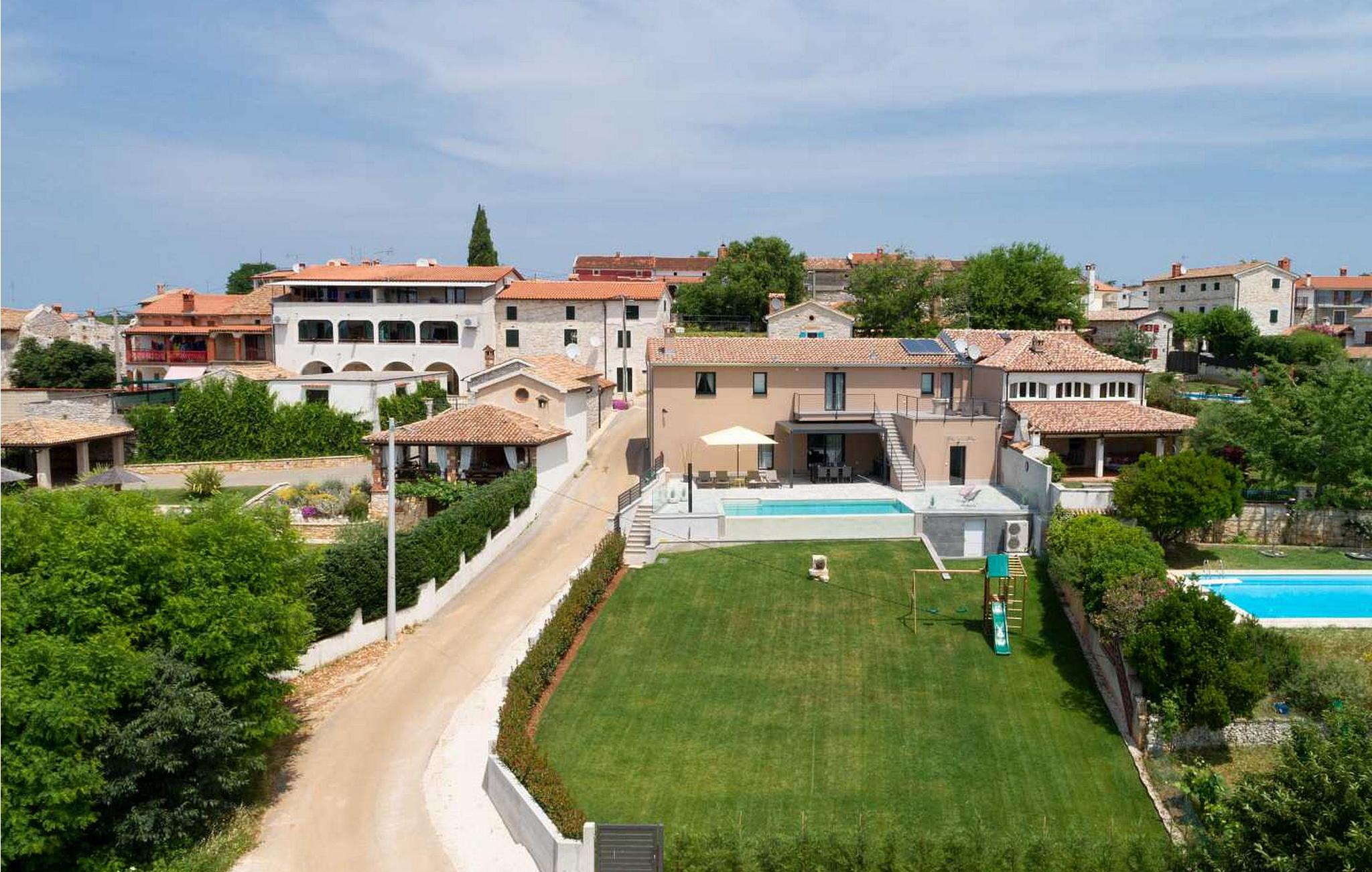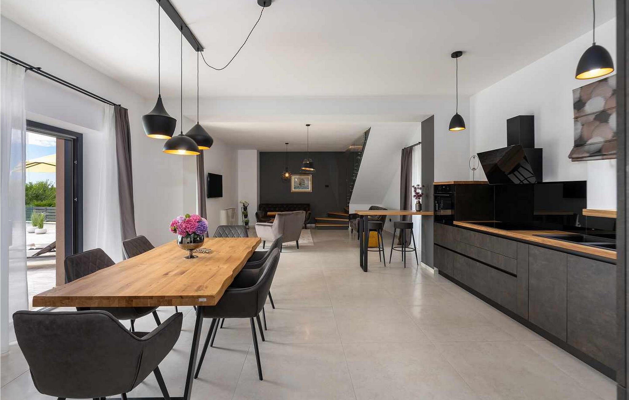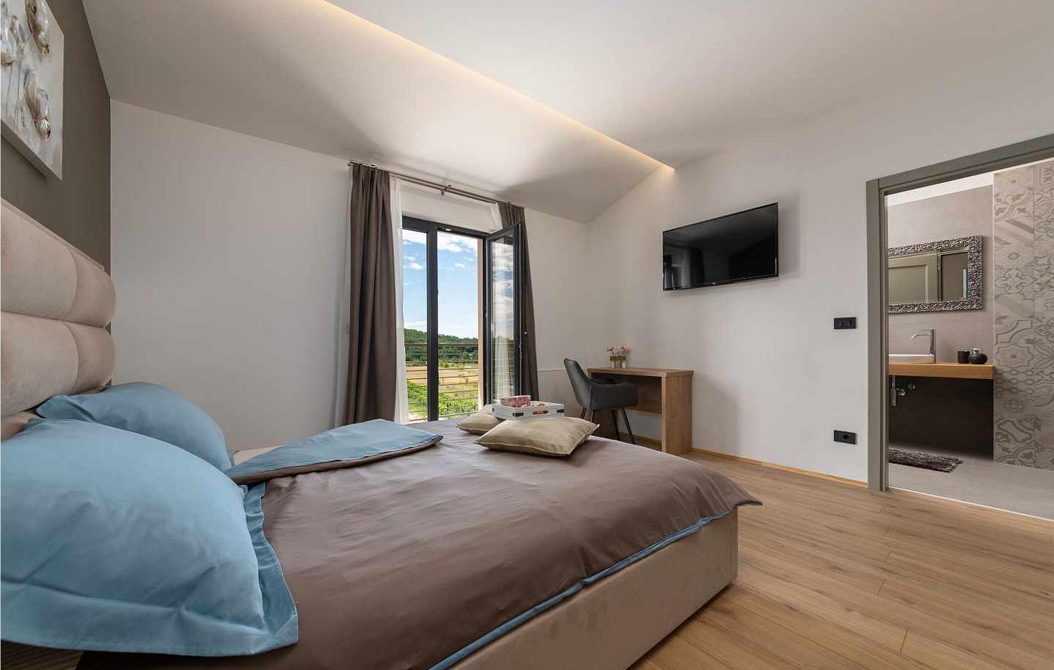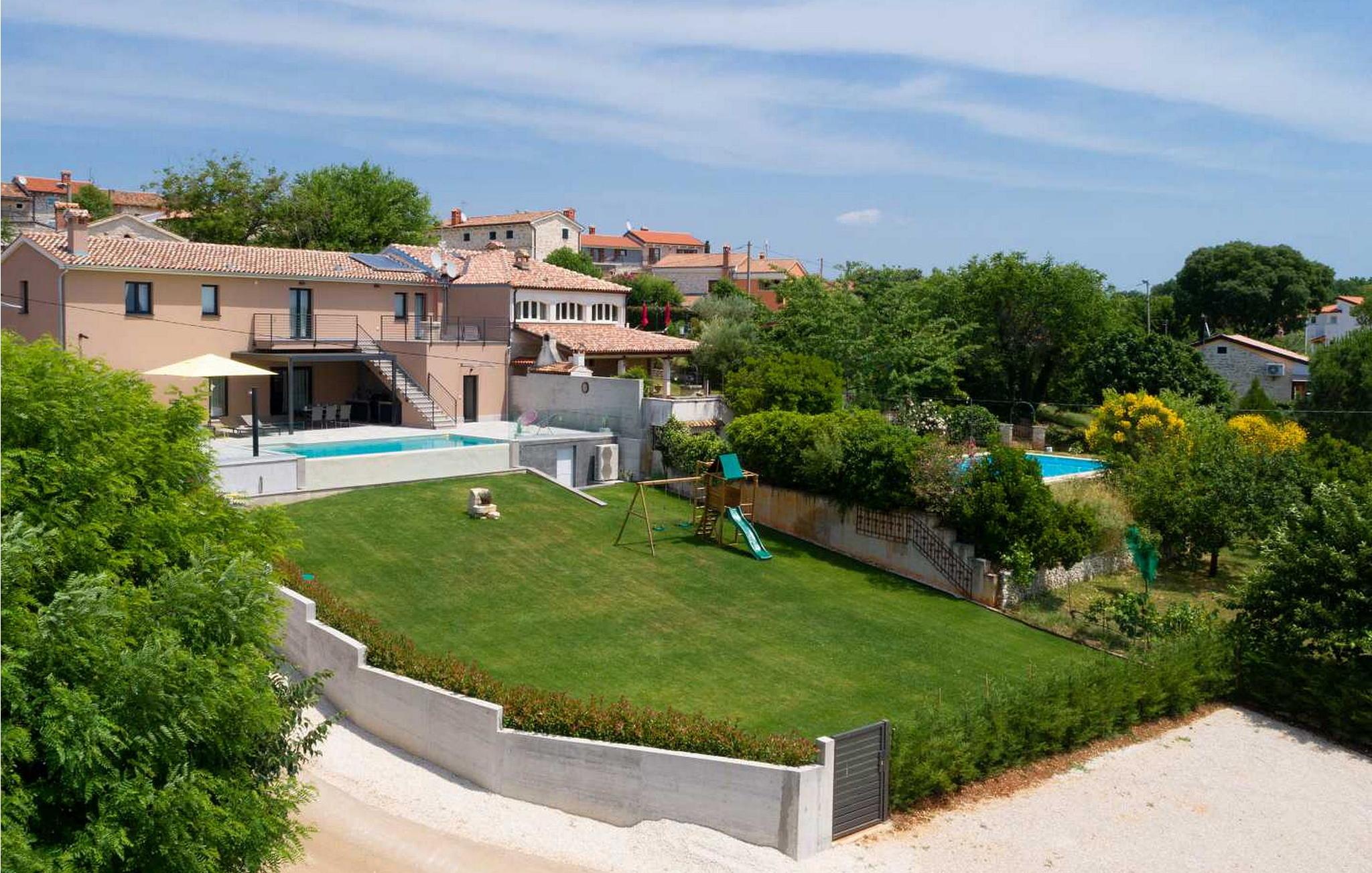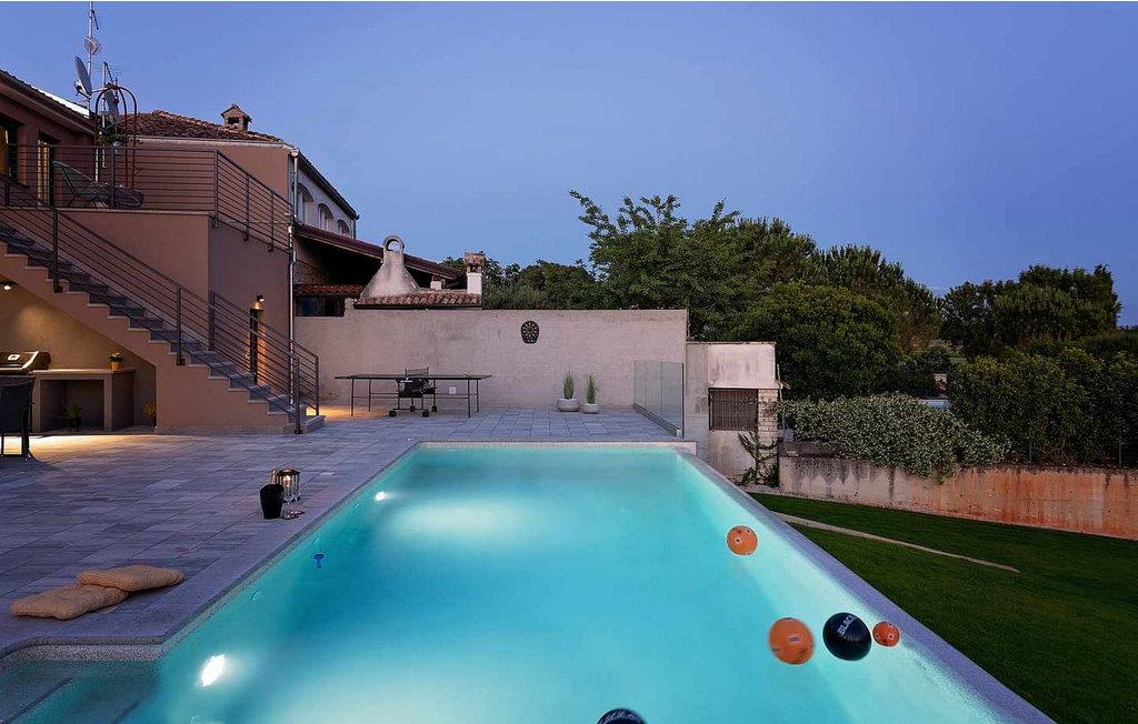 Velkommen til den imponerende Villa Sunnyside i udkanten af ??den idylliske landsby Dracevac. Dette moderne feriehus kombinerer moderne komfort med et strejf af historie, hvilket skaber en unik atmosfære. Den omhyggeligt designede vinkælder, som blev skabt af en gammel cisterne, giver boligen sin særlige charme. På den private ejendom kan I nyde fred og afslapning. Dyk ned i infinity-poolen, solbad på det rummelige solbadningsområde eller tilbring hyggelige timer ved grillen. Den udendørs spiseplads lægger op til at nyde kulinariske aftener under den istriske stjernehimmel.