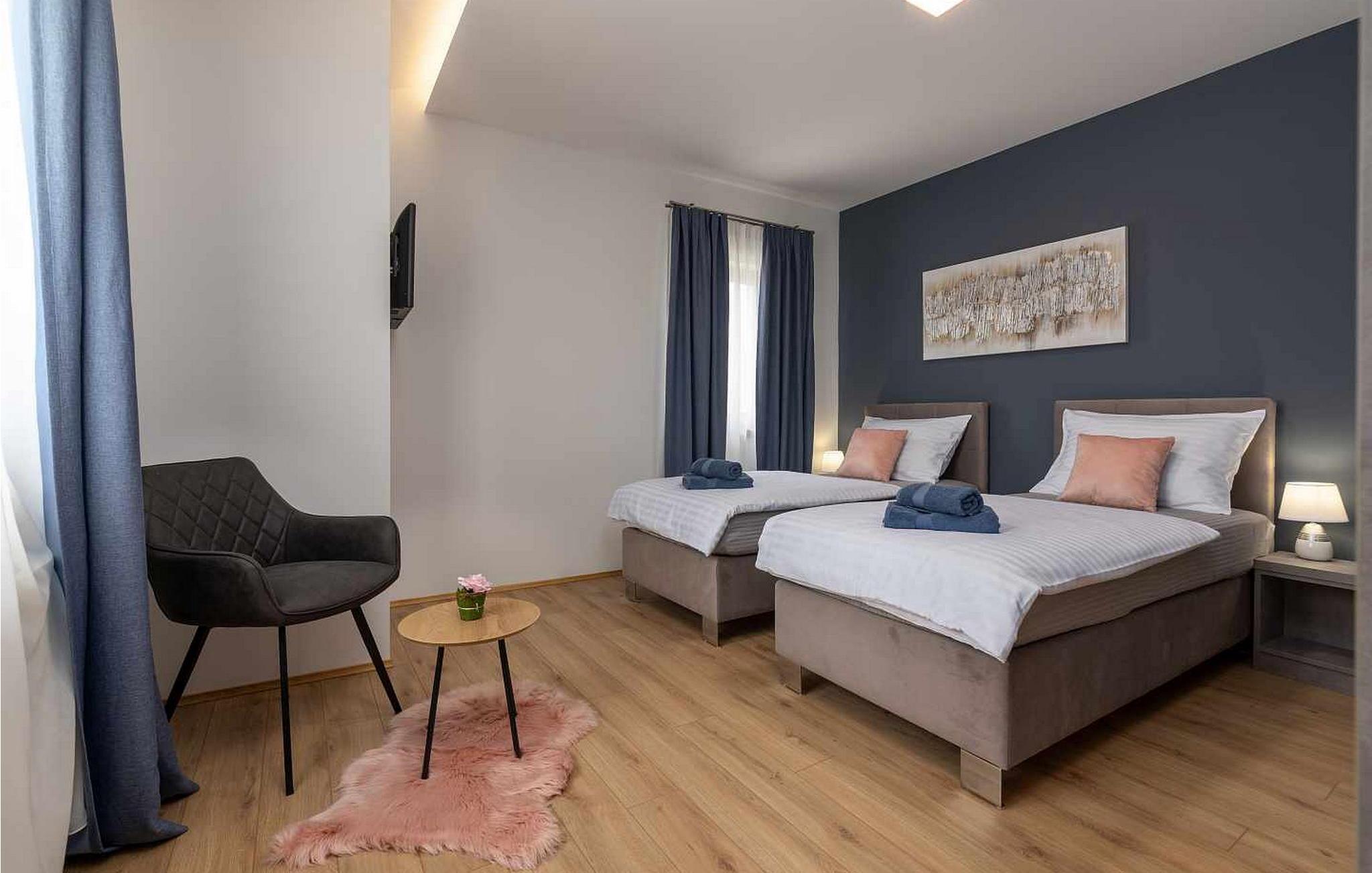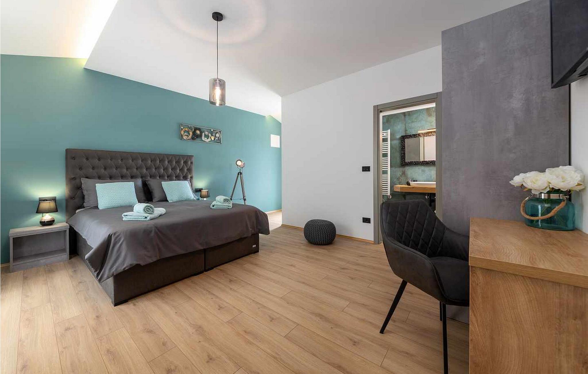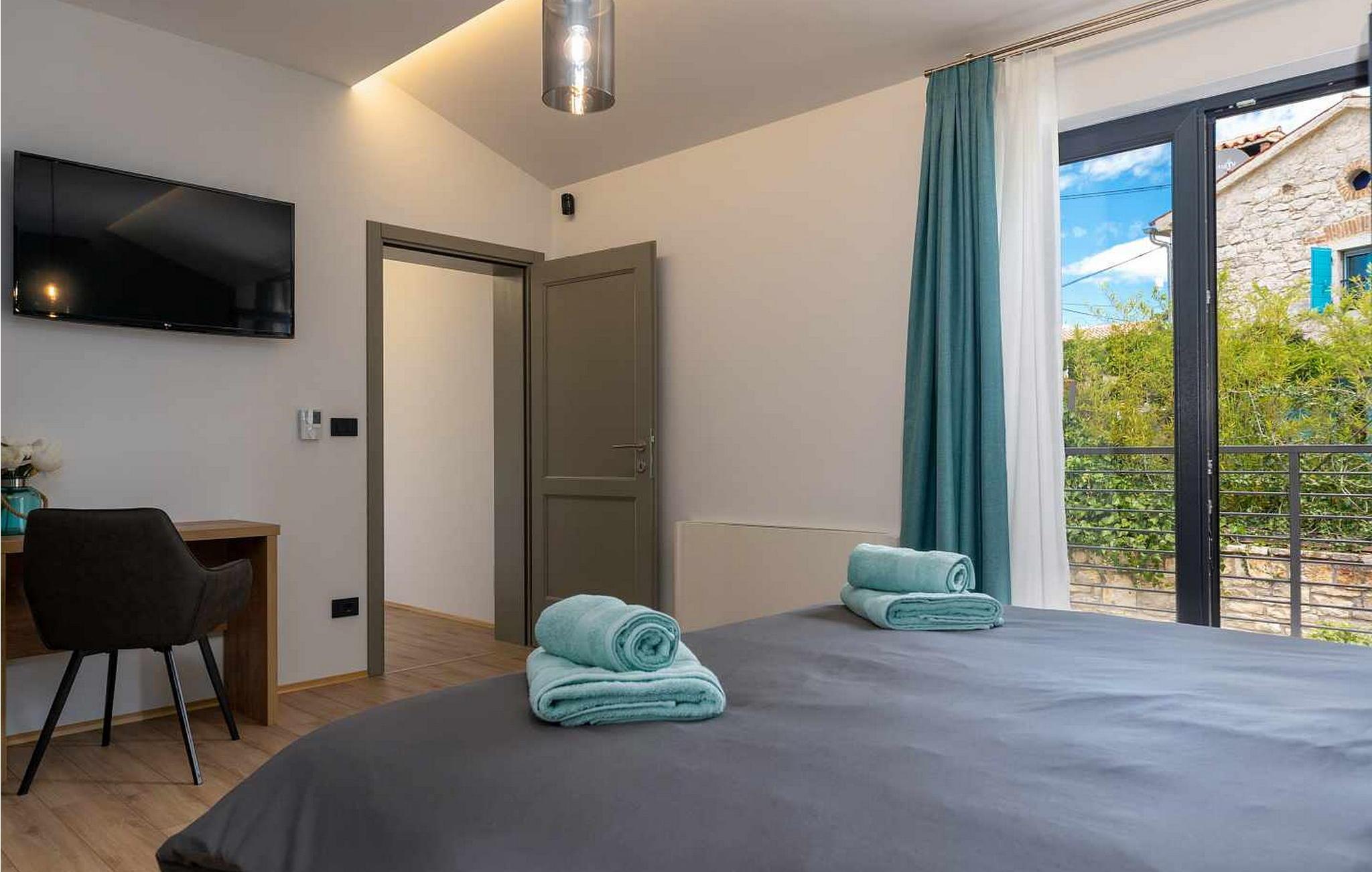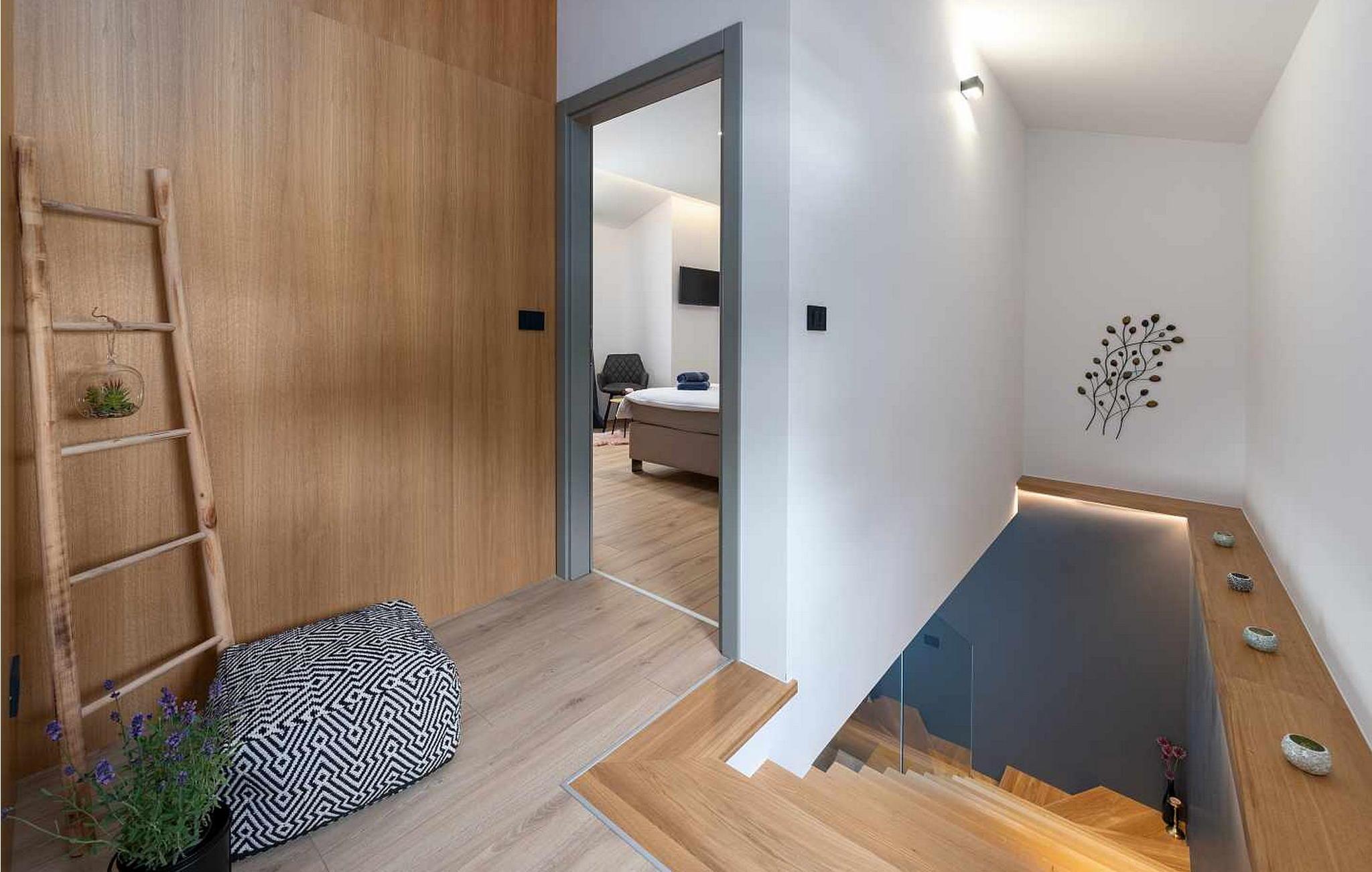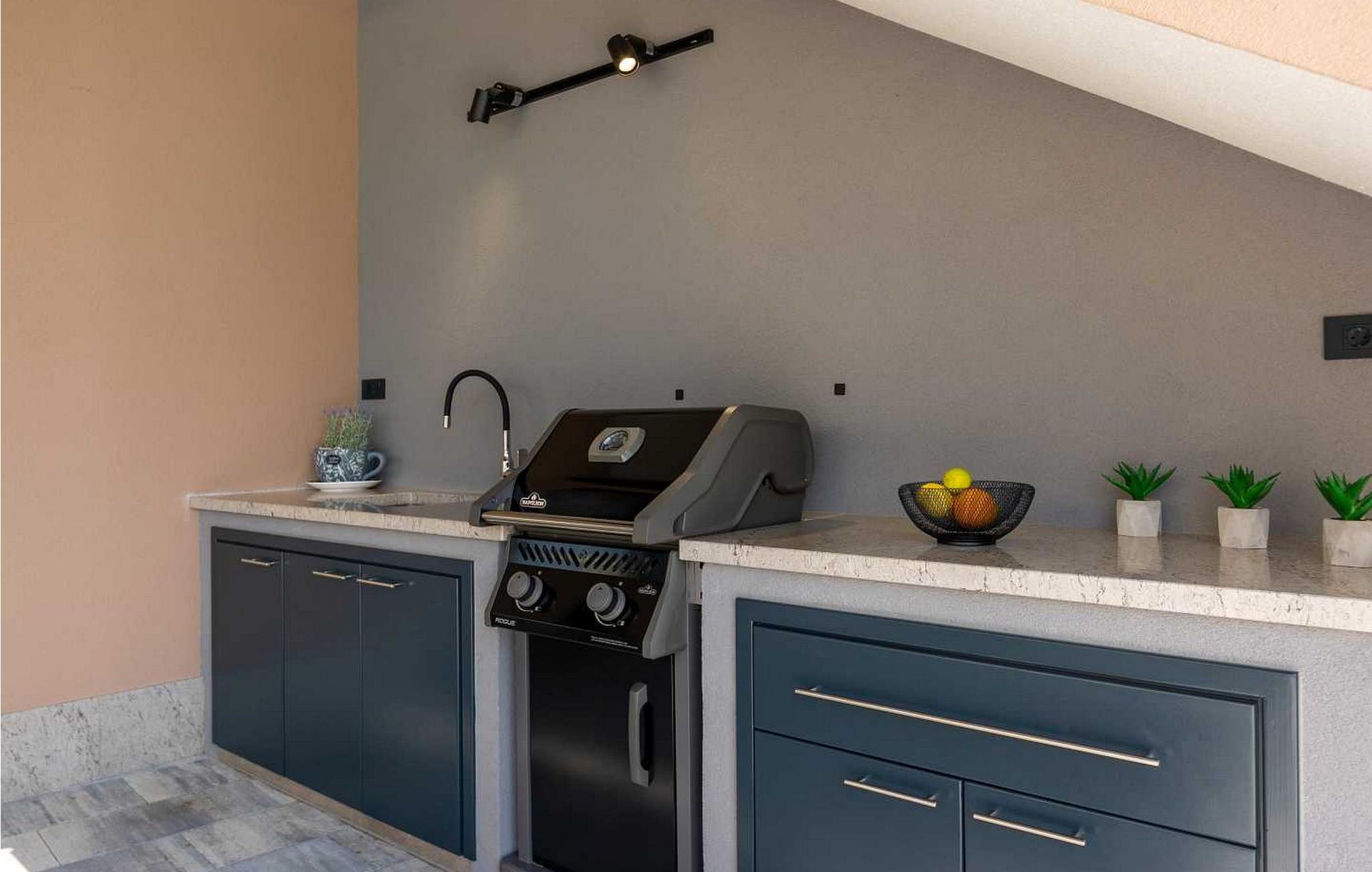 Velkommen til den imponerende Villa Sunnyside i udkanten af ??den idylliske landsby Dracevac. Dette moderne feriehus kombinerer moderne komfort med et strejf af historie, hvilket skaber en unik atmosfære. Den omhyggeligt designede vinkælder, som blev skabt af en gammel cisterne, giver boligen sin særlige charme. På den private ejendom kan I nyde fred og afslapning. Dyk ned i infinity-poolen, solbad på det rummelige solbadningsområde eller tilbring hyggelige timer ved grillen. Den udendørs spiseplads lægger op til at nyde kulinariske aftener under den istriske stjernehimmel.