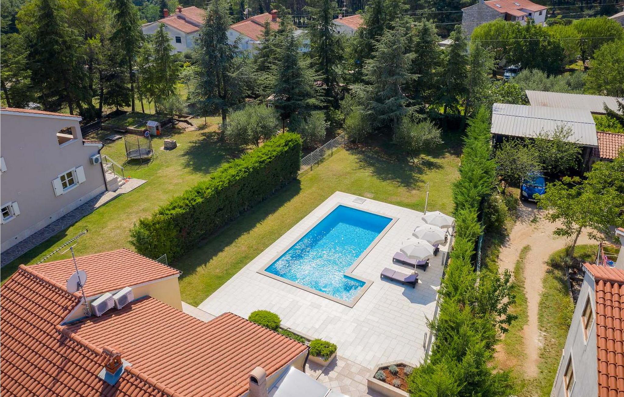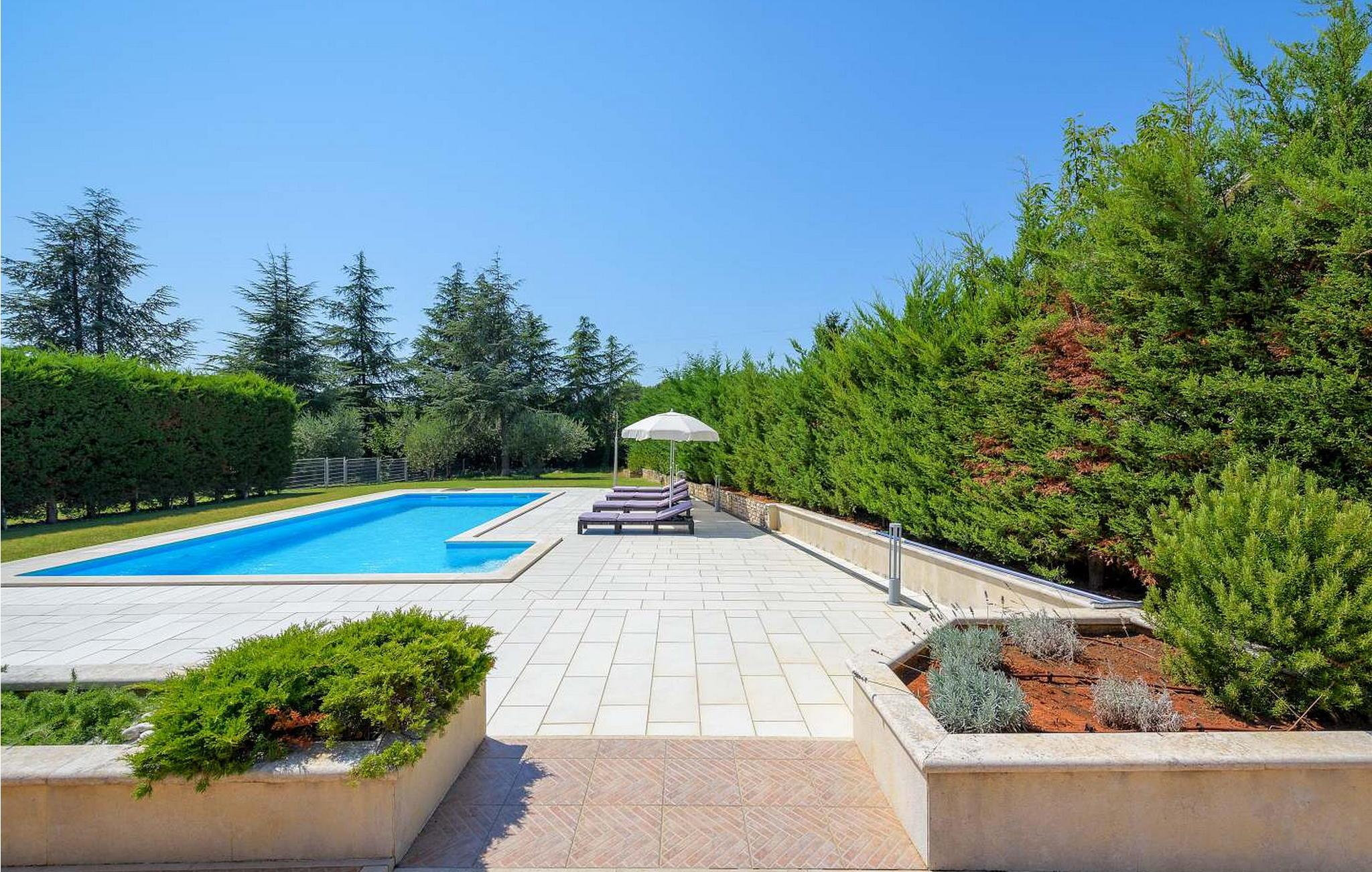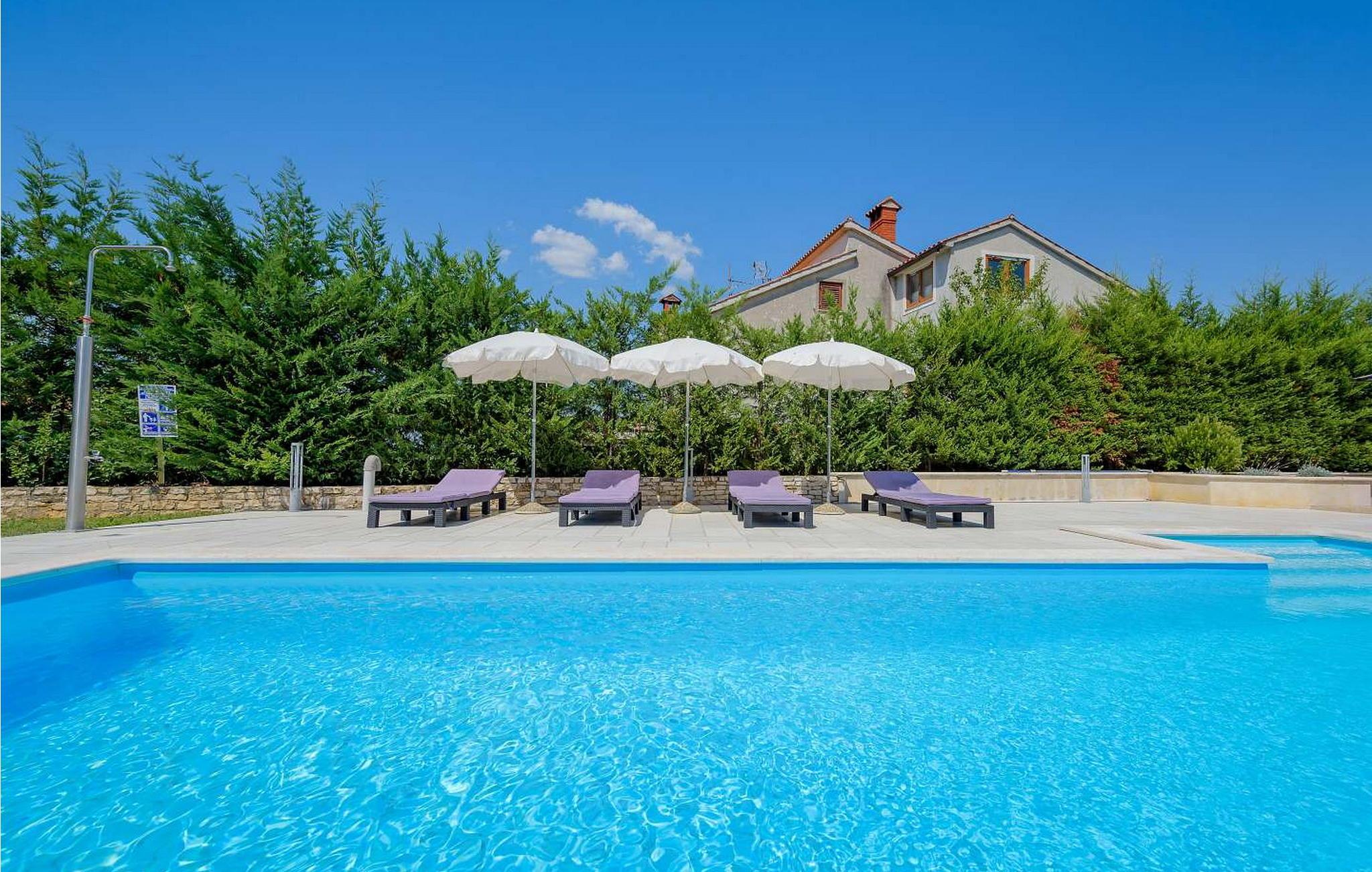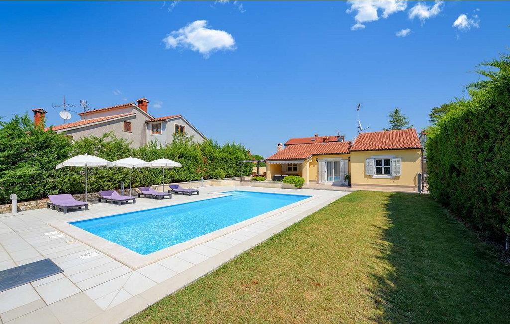 Casa Rita Porec er et dejligt en-etagers feriehus, kun 1,5 km fra Porecs travle centrum og 2 km fra stranden. Villaen er beliggende på privat, indhegnet grund med en forfriskende swimmingpool, ideel til en afslappet svømmetur på varme dage. Udendørsområdet er en sand oase med en overdækket terrasse og en muret grill med udsigt over poolen, perfekt til udendørs spisning. Et andet overdækket område med komfortable stole inviterer dig til at slappe af med en drink og nyde de rolige omgivelser. Indvendigt er opholdsstuen med aircondition designet til komfort og stil med en lædersofa og en åben grundplan, der inkluderer køkkenet og spisepladsen, begge med udsigt over poolen og opholdsstuen. Køkkenet er fuldt udstyret, hvilket gør det til en fornøjelse at tilberede måltider. Porec er let tilgængelig til fods. Der ligger en restaurant kun 300 m og en butik 500 m fra huset. Udforsk den gamle bydels livlige stengader og hyggelige restauranter, og besøg den imponerende Basilica of Euphrasia, et mesterværk fra det 6. århundrede. Bemærk venligst, at denne ejendom ikke accepterer ungdomsgrupper eller polterabender. En ungdomsgruppe på denne ejendom består af personer på 26 år eller derunder.