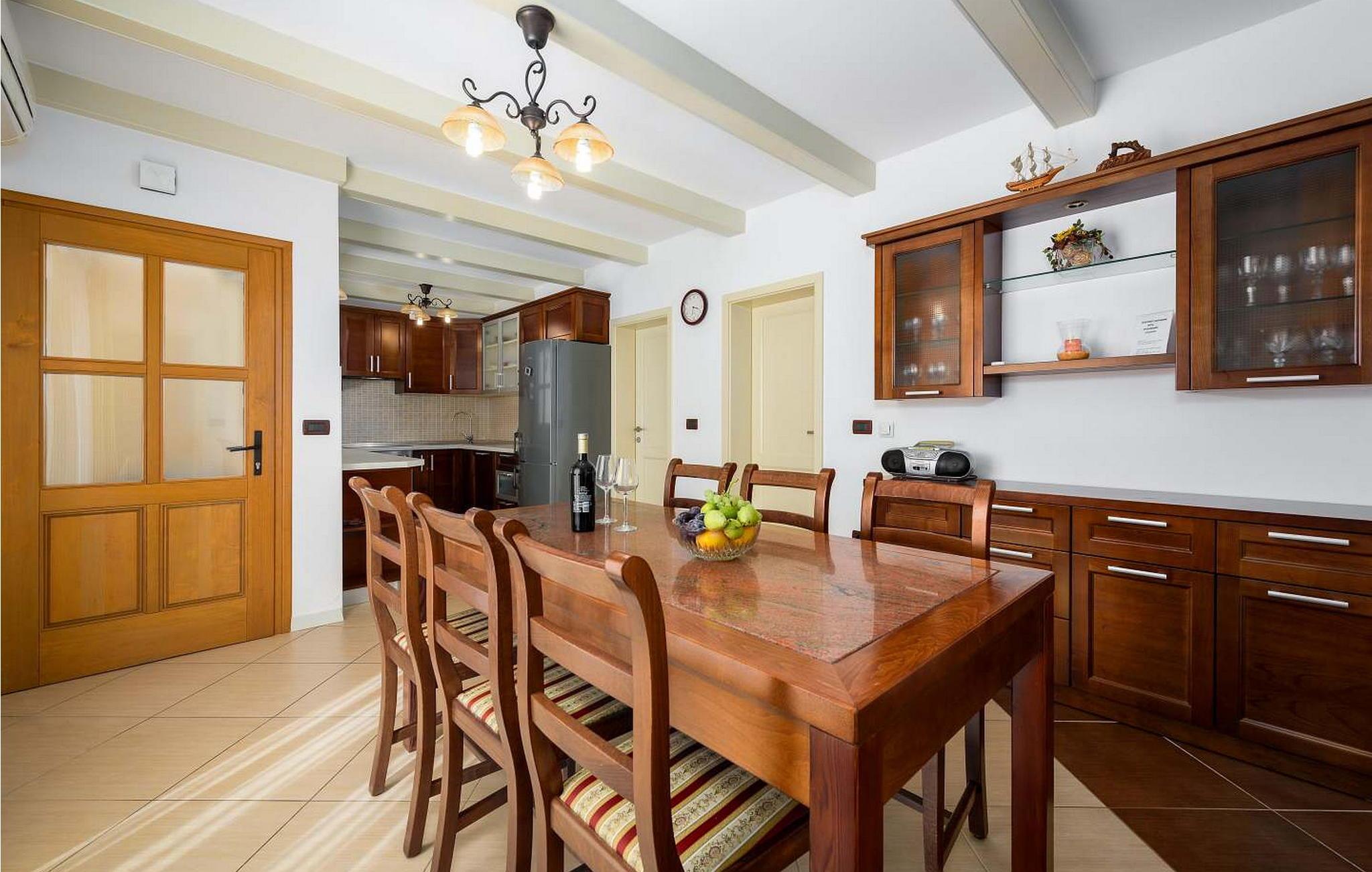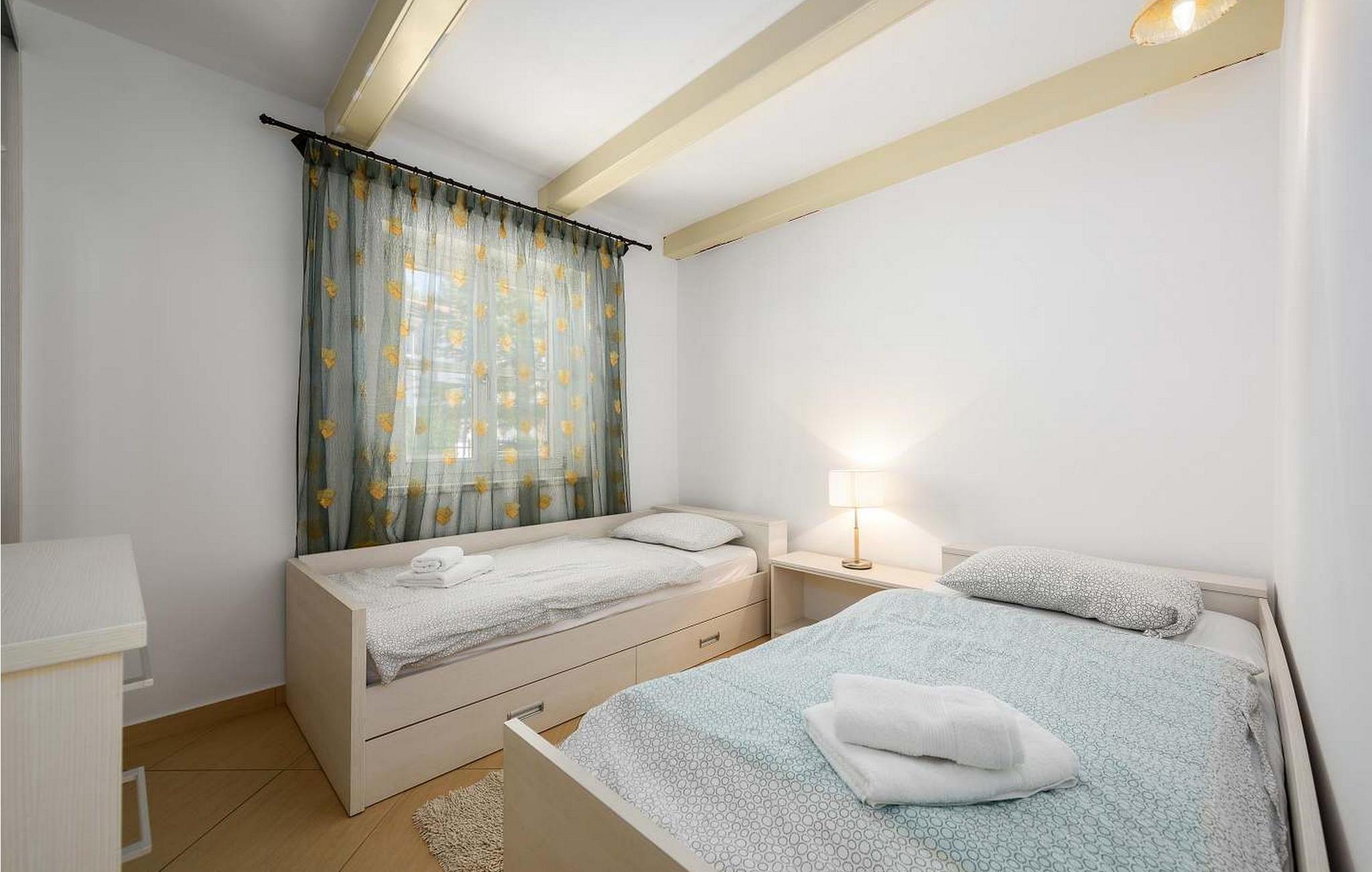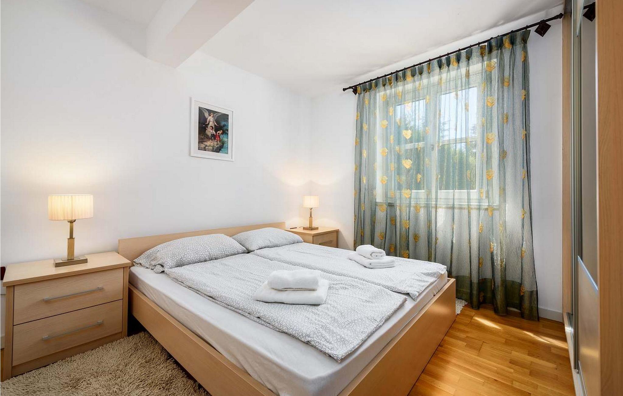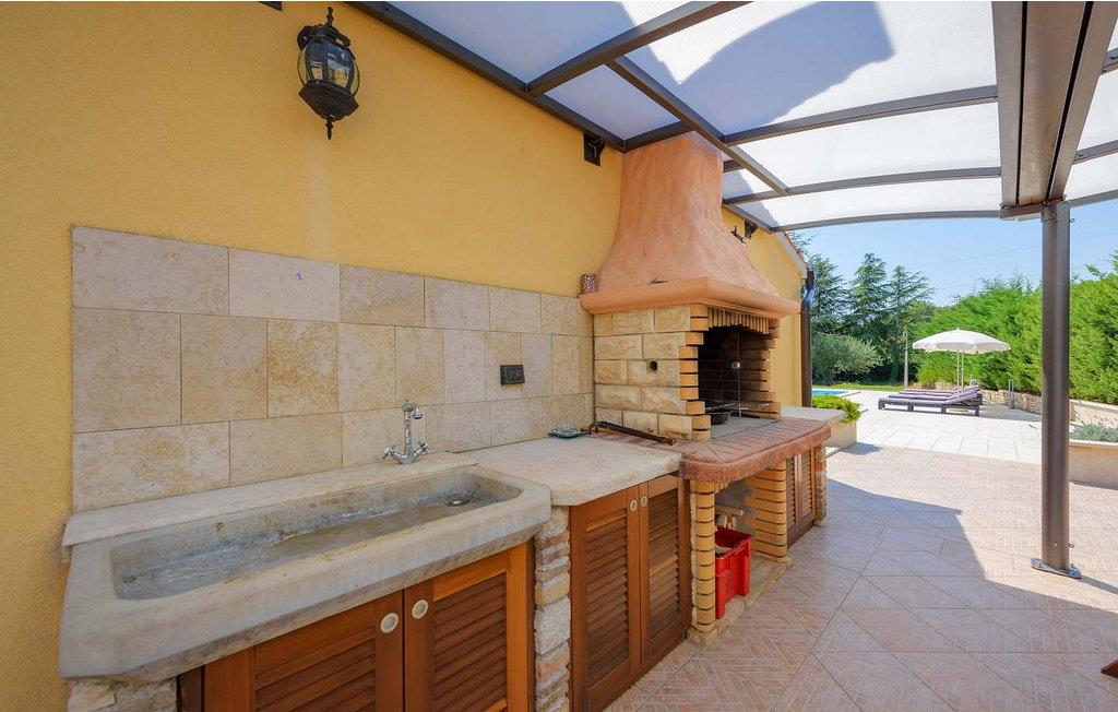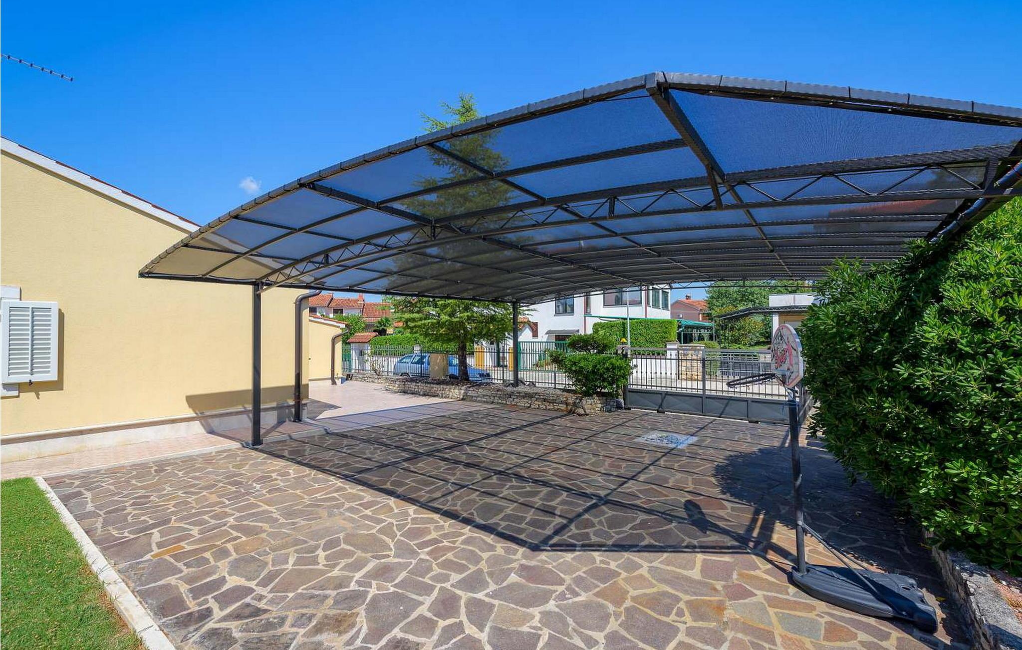 Casa Rita Porec er et dejligt en-etagers feriehus, kun 1,5 km fra Porecs travle centrum og 2 km fra stranden. Villaen er beliggende på privat, indhegnet grund med en forfriskende swimmingpool, ideel til en afslappet svømmetur på varme dage. Udendørsområdet er en sand oase med en overdækket terrasse og en muret grill med udsigt over poolen, perfekt til udendørs spisning. Et andet overdækket område med komfortable stole inviterer dig til at slappe af med en drink og nyde de rolige omgivelser. Indvendigt er opholdsstuen med aircondition designet til komfort og stil med en lædersofa og en åben grundplan, der inkluderer køkkenet og spisepladsen, begge med udsigt over poolen og opholdsstuen. Køkkenet er fuldt udstyret, hvilket gør det til en fornøjelse at tilberede måltider. Porec er let tilgængelig til fods. Der ligger en restaurant kun 300 m og en butik 500 m fra huset. Udforsk den gamle bydels livlige stengader og hyggelige restauranter, og besøg den imponerende Basilica of Euphrasia, et mesterværk fra det 6. århundrede. Bemærk venligst, at denne ejendom ikke accepterer ungdomsgrupper eller polterabender. En ungdomsgruppe på denne ejendom består af personer på 26 år eller derunder.