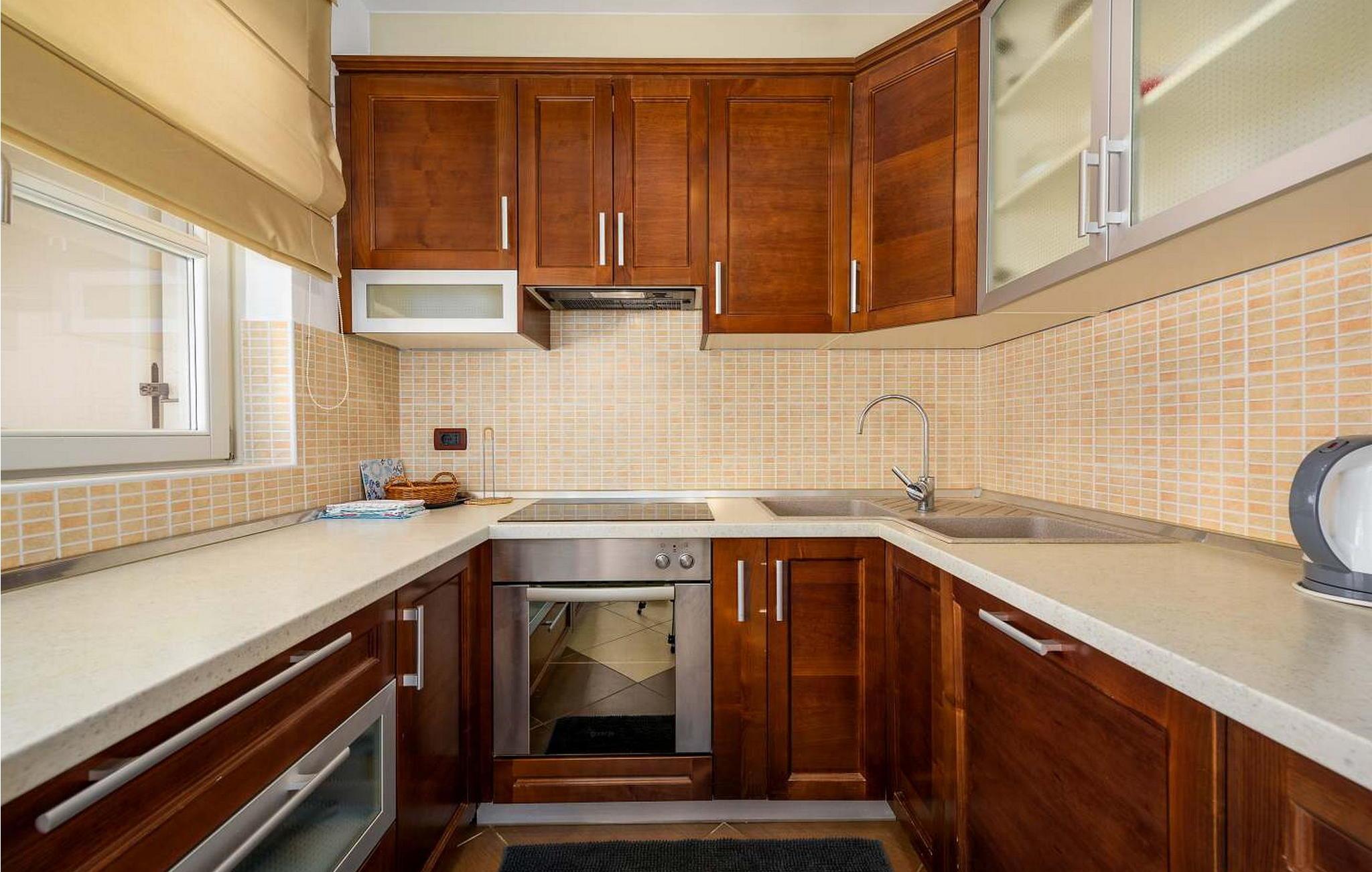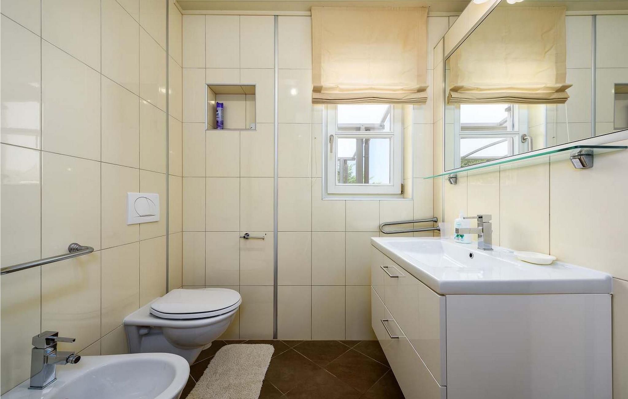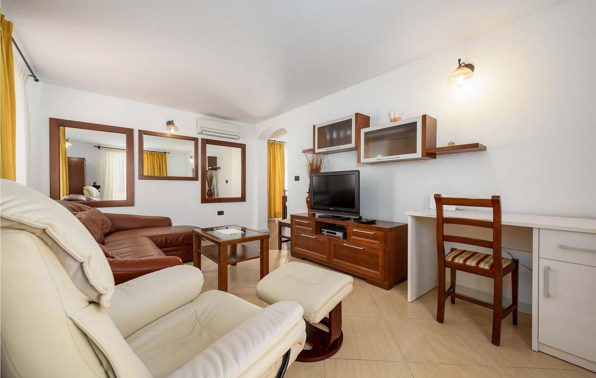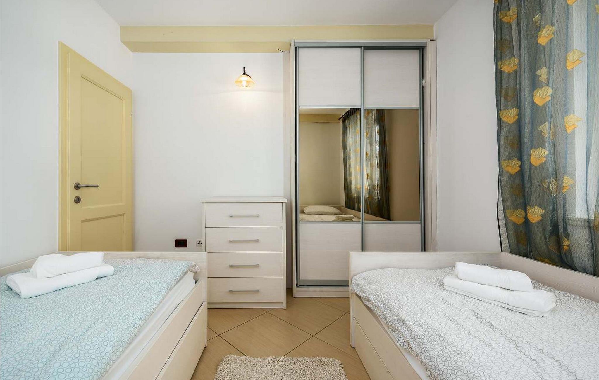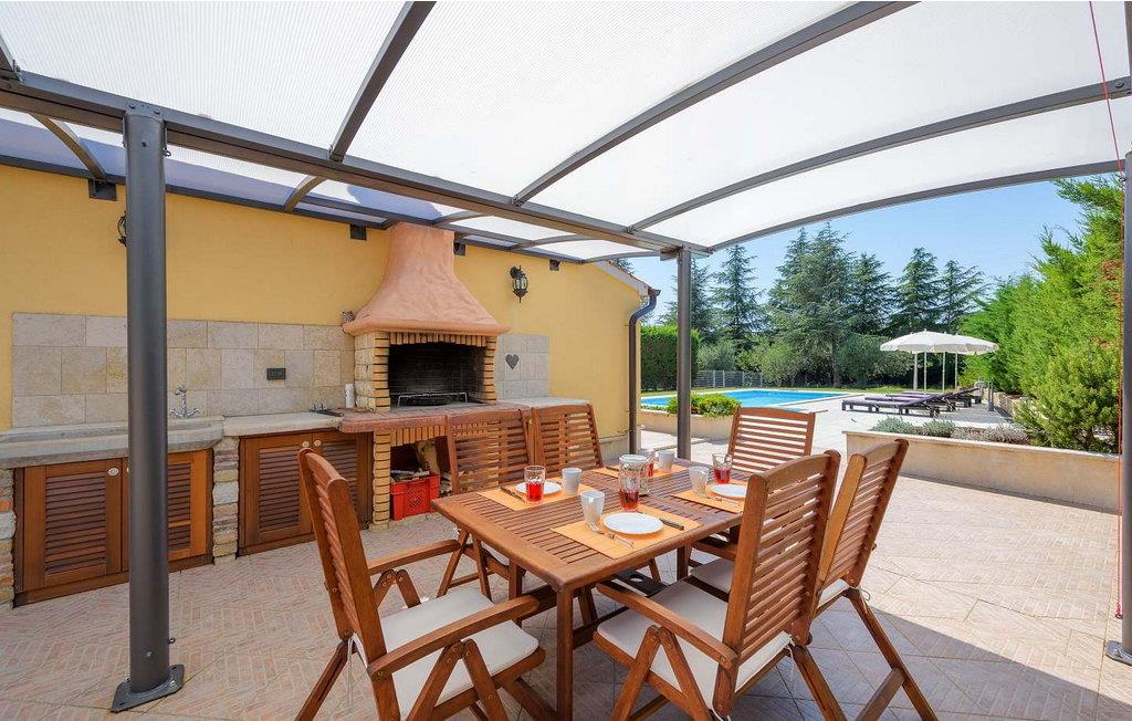 Casa Rita Porec er et dejligt en-etagers feriehus, kun 1,5 km fra Porecs travle centrum og 2 km fra stranden. Villaen er beliggende på privat, indhegnet grund med en forfriskende swimmingpool, ideel til en afslappet svømmetur på varme dage. Udendørsområdet er en sand oase med en overdækket terrasse og en muret grill med udsigt over poolen, perfekt til udendørs spisning. Et andet overdækket område med komfortable stole inviterer dig til at slappe af med en drink og nyde de rolige omgivelser. Indvendigt er opholdsstuen med aircondition designet til komfort og stil med en lædersofa og en åben grundplan, der inkluderer køkkenet og spisepladsen, begge med udsigt over poolen og opholdsstuen. Køkkenet er fuldt udstyret, hvilket gør det til en fornøjelse at tilberede måltider. Porec er let tilgængelig til fods. Der ligger en restaurant kun 300 m og en butik 500 m fra huset. Udforsk den gamle bydels livlige stengader og hyggelige restauranter, og besøg den imponerende Basilica of Euphrasia, et mesterværk fra det 6. århundrede. Bemærk venligst, at denne ejendom ikke accepterer ungdomsgrupper eller polterabender. En ungdomsgruppe på denne ejendom består af personer på 26 år eller derunder.