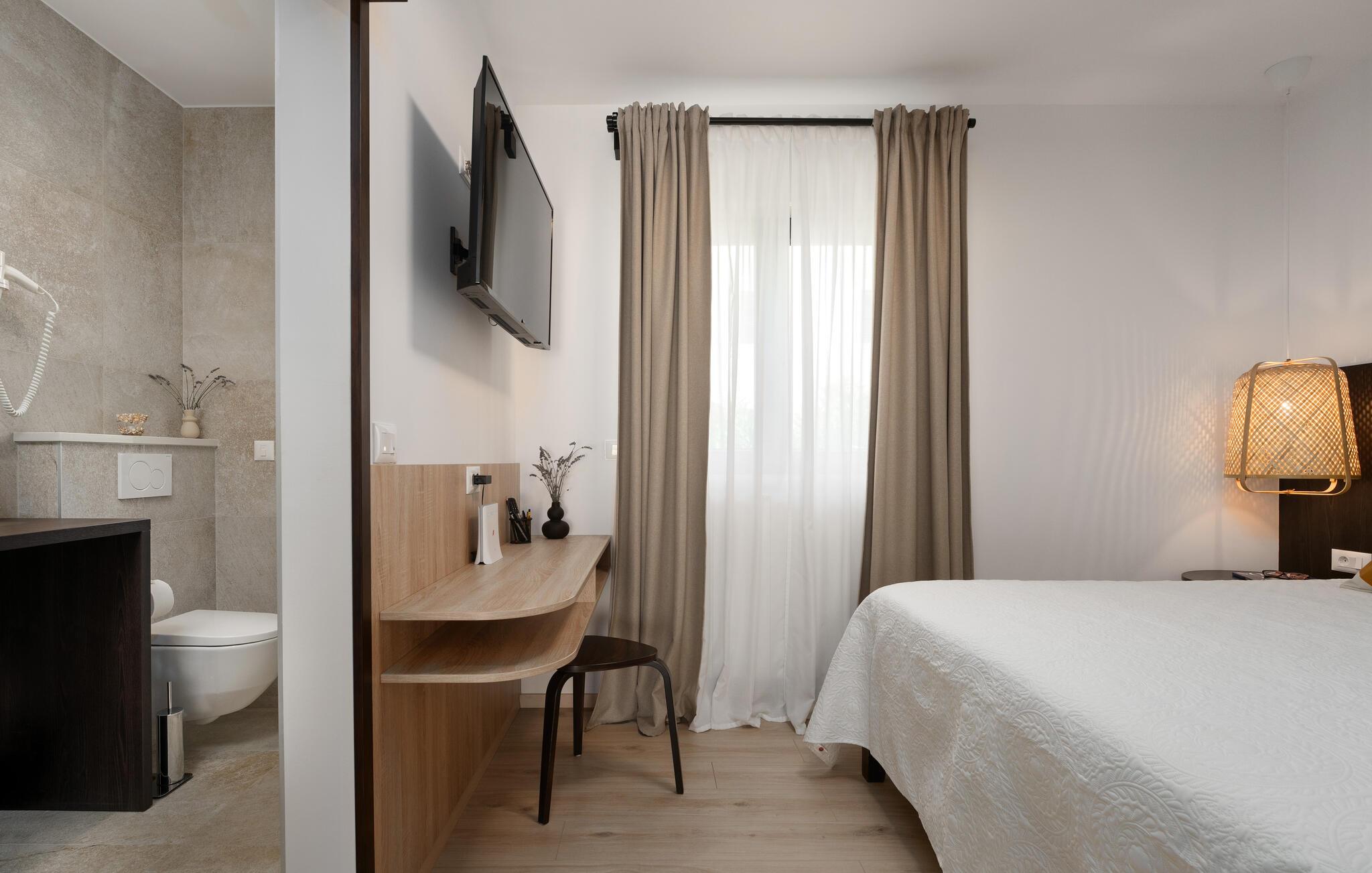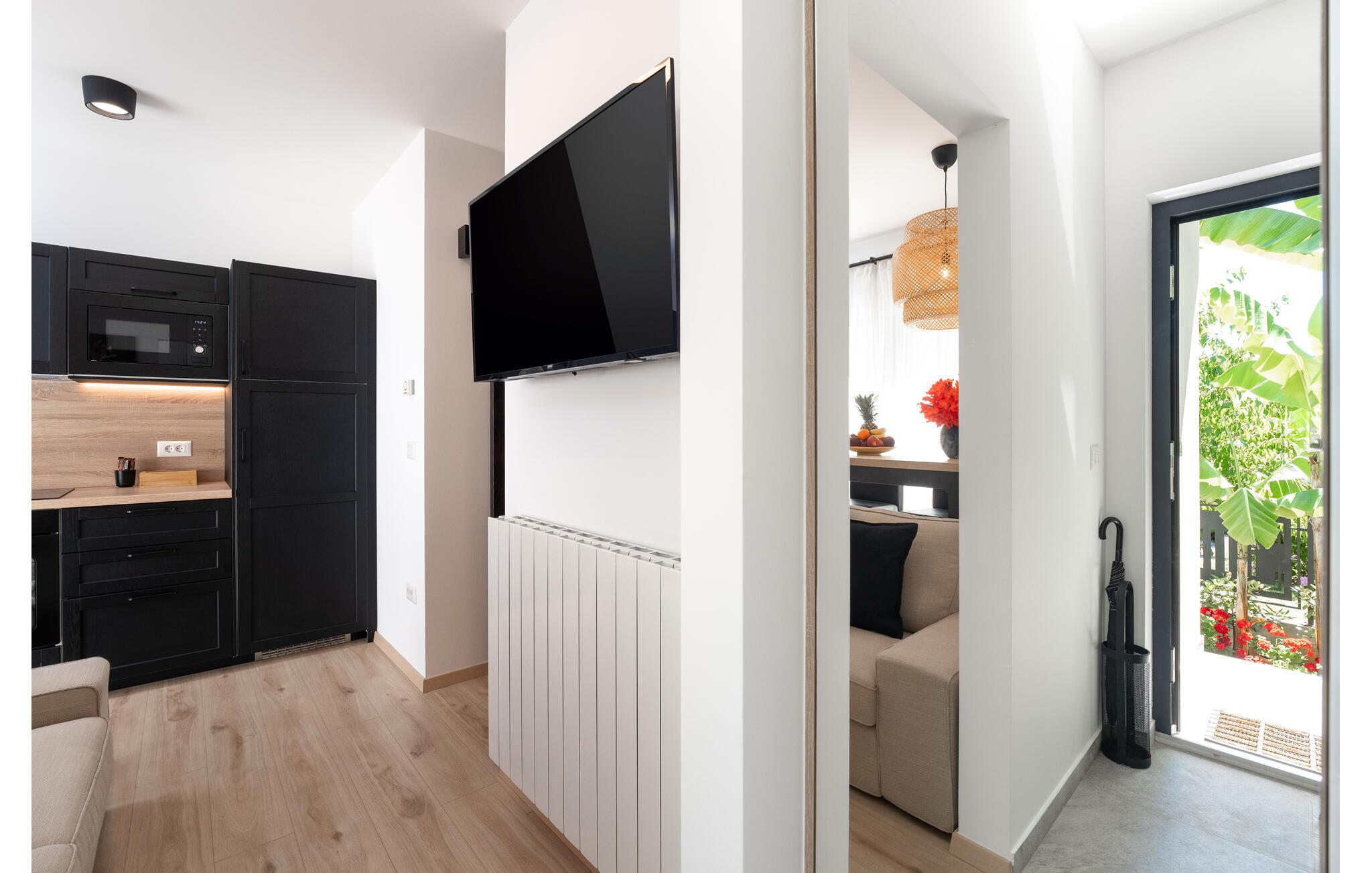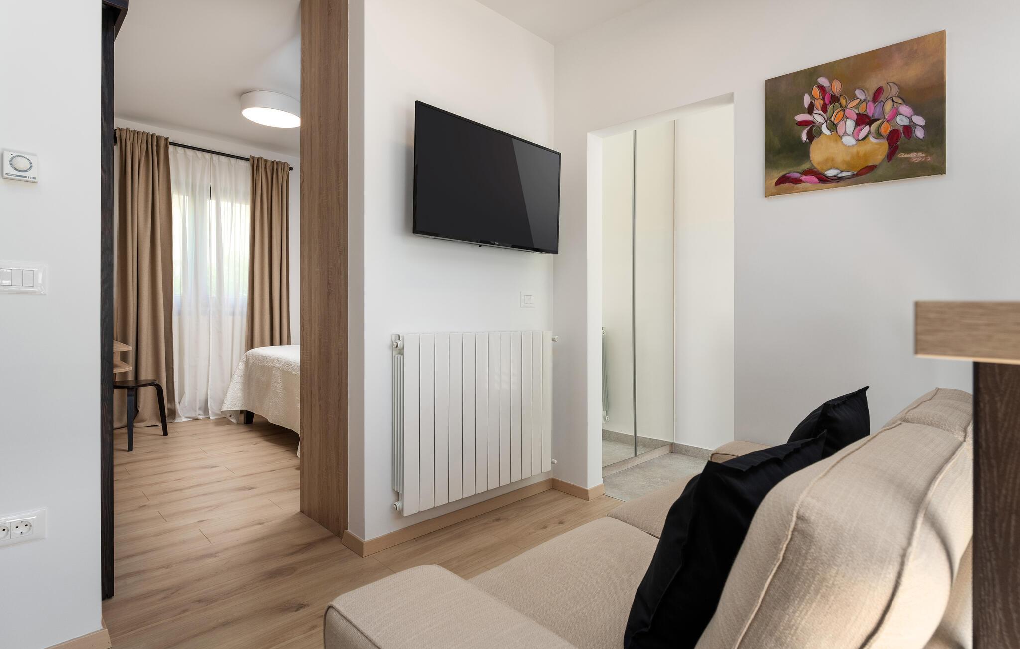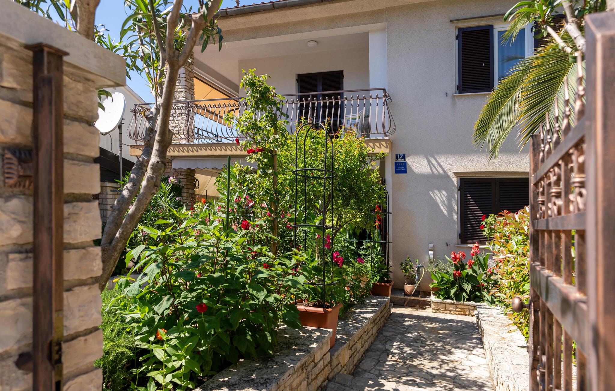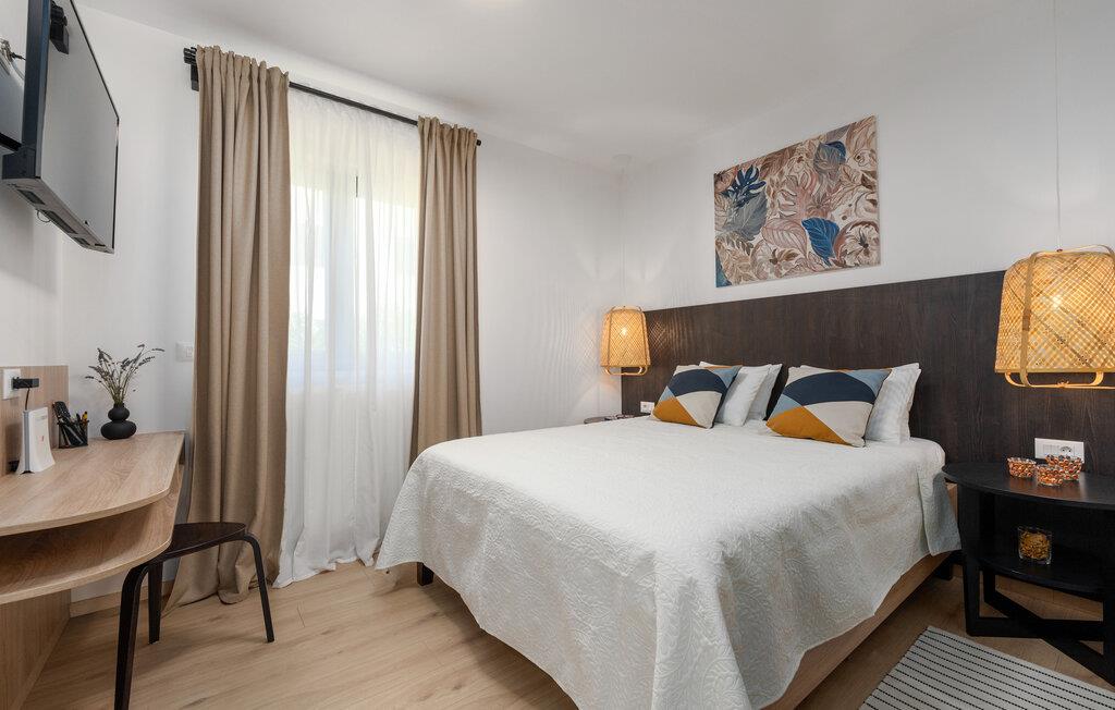 Deluxe Studio Perla er en attraktiv og komfortabel ferielejlighed i en af de smukkeste forstæder til Porec – Novo naselje. Studiet ligger i et separat lille hus med egen indgang på husejernes grund og har en parkeringsplads. Småstensstranden og forskellige sports- og gastronomiske faciliteter ligger kun 350 m væk, en butik 500 m, restaurant 350 m og centrum af Porec 1 km. Deluxe Studio Perla på 32 kvm og til 2 gæster består af airconditioneret stue-soveplads, som er delvist adskilt, i den ene del er udstyret køkken, spisebord og sofa og i den anden en dobbeltseng og bad/toilet. Studiet har en lille terrasse med spisebord. Bemærk venligst, at denne ejendom ikke accepterer ungdomsgrupper eller polterabends. En ungdomsgruppe på denne ejendom er en gruppe bestående af personer på 26 år eller derunder. Book ikke denne ejendom, hvis du er en ungdomsgruppe eller et polterabend, da din reservation vil blive afvist efter booking, hvilket kan omfatte ved ankomst til ejendommen eller under dit ophold, og du vil ikke blive refunderet.
