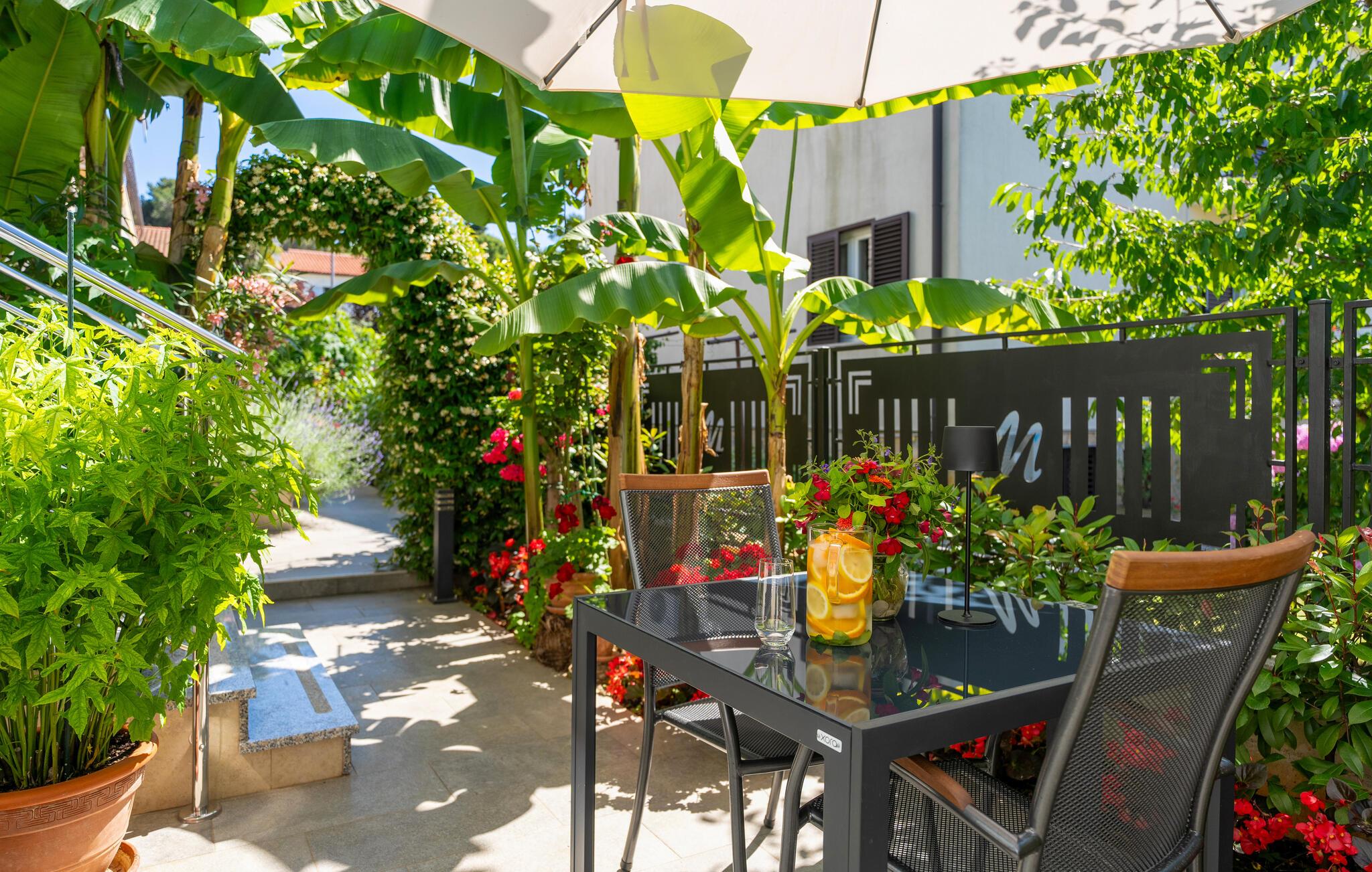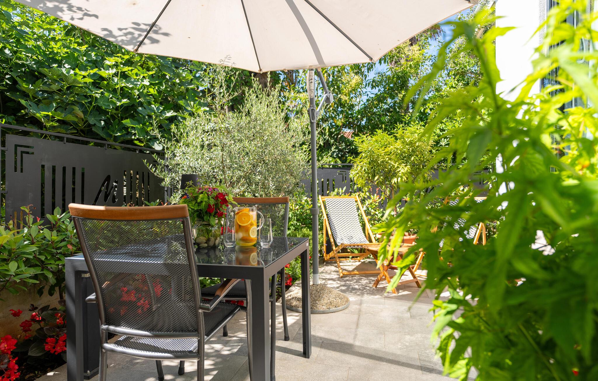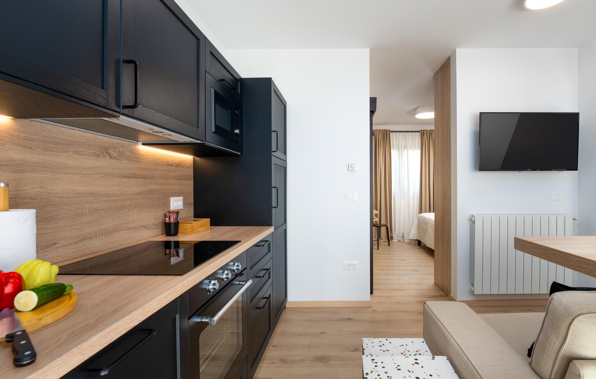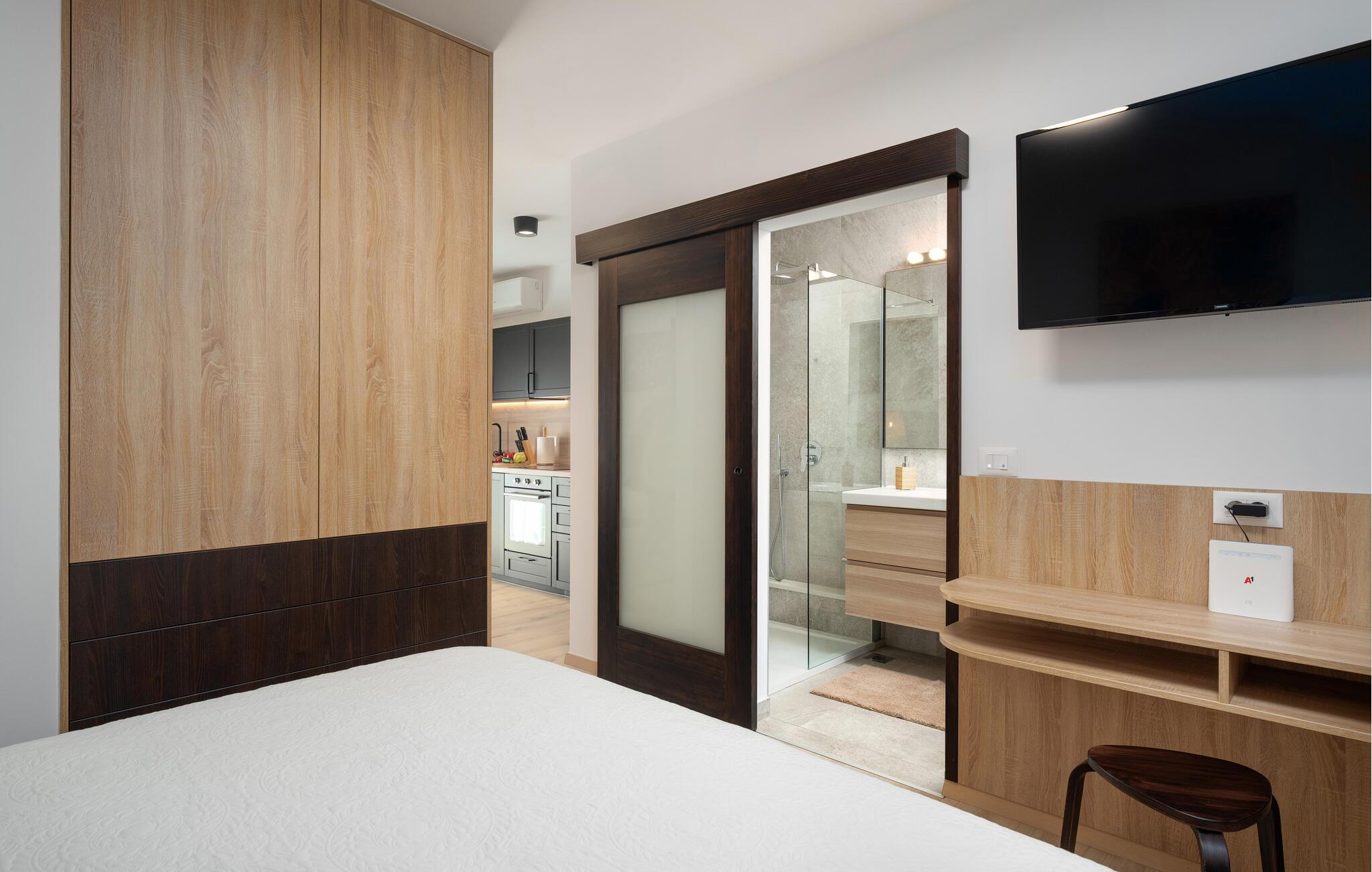 Deluxe Studio Perla er en attraktiv og komfortabel ferielejlighed i en af de smukkeste forstæder til Porec – Novo naselje. Studiet ligger i et separat lille hus med egen indgang på husejernes grund og har en parkeringsplads. Småstensstranden og forskellige sports- og gastronomiske faciliteter ligger kun 350 m væk, en butik 500 m, restaurant 350 m og centrum af Porec 1 km. Deluxe Studio Perla på 32 kvm og til 2 gæster består af airconditioneret stue-soveplads, som er delvist adskilt, i den ene del er udstyret køkken, spisebord og sofa og i den anden en dobbeltseng og bad/toilet. Studiet har en lille terrasse med spisebord. Bemærk venligst, at denne ejendom ikke accepterer ungdomsgrupper eller polterabends. En ungdomsgruppe på denne ejendom er en gruppe bestående af personer på 26 år eller derunder. Book ikke denne ejendom, hvis du er en ungdomsgruppe eller et polterabend, da din reservation vil blive afvist efter booking, hvilket kan omfatte ved ankomst til ejendommen eller under dit ophold, og du vil ikke blive refunderet.