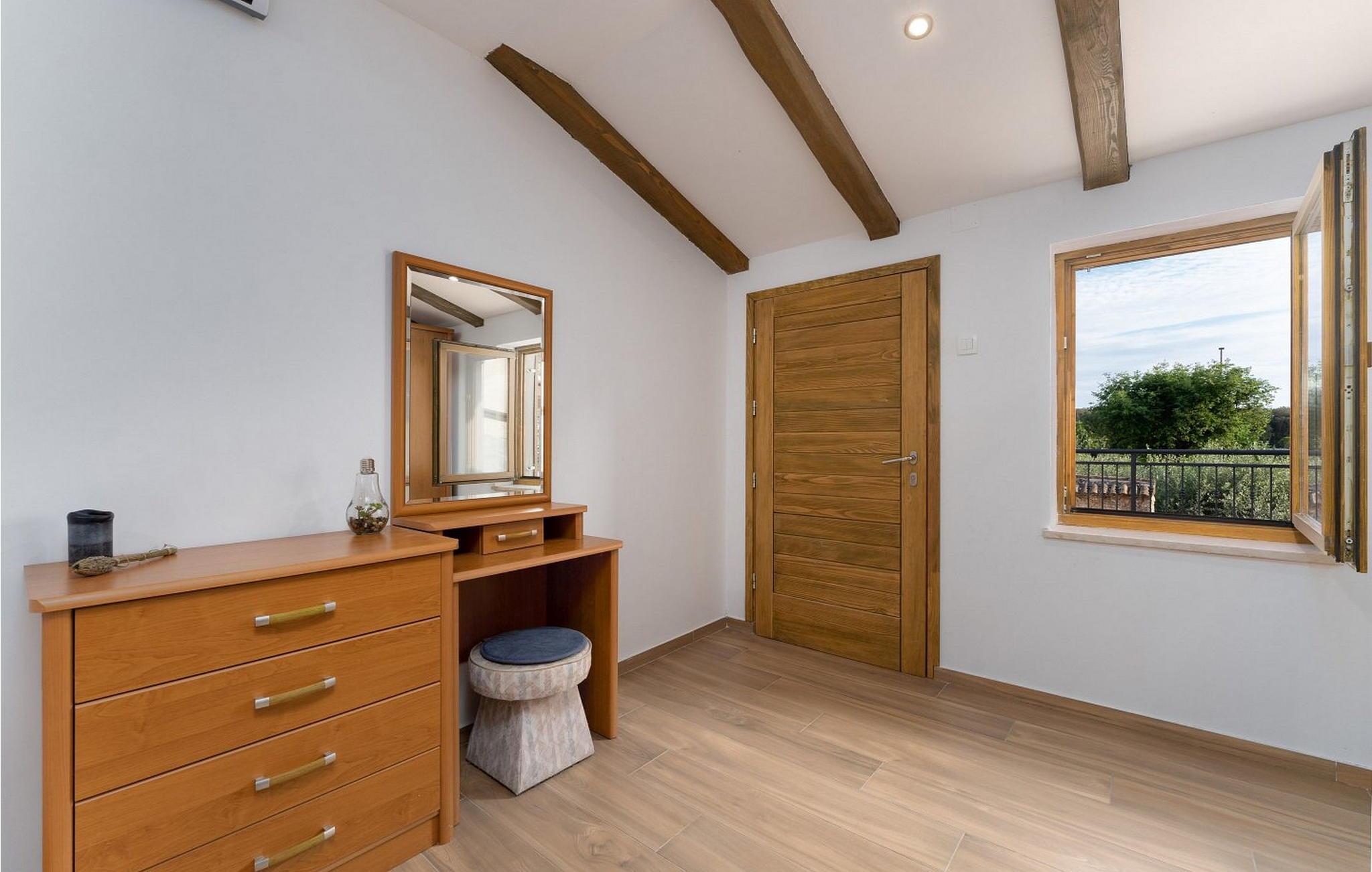 Rustik lejlighed Paris for 5 gæster kun 150 km fra havet og 2 km fra centrum af Porec. Indkvarteringen blev renoveret og indrettet med rustikke møbler. Lejligheden har en velplejet have på 100 kvm som byder gæsterne på komplet ro, balkon med siddemøbler, grill. Kun to minutters gang fra lejligheden ligger flere restauranter, caféer, bagerier, butikker og promenader. Offentlig parkering ligger 100 m fra lejligheden. Lejlighed Paris er velegnet til 5 personer og har 90 kvm. Den består af en stue med spisebord, et lille køkken, et badeværelse og et galleri med en dobbeltseng og en ekstra seng. I anden del af lejligheden med separat indgang er et soveværelse med dobbeltseng og eget badeværelse. Bemærk venligst, at denne ejendom ikke accepterer ungdomsgrupper eller polterabends. En ungdomsgruppe på denne ejendom er en gruppe bestående af personer på 26 år eller derunder. Book ikke denne ejendom, hvis du er en ungdomsgruppe eller et polterabend, da din reservation vil blive afvist efter booking, hvilket kan omfatte ved ankomst til ejendommen eller under dit ophold, og du vil ikke blive refunderet.