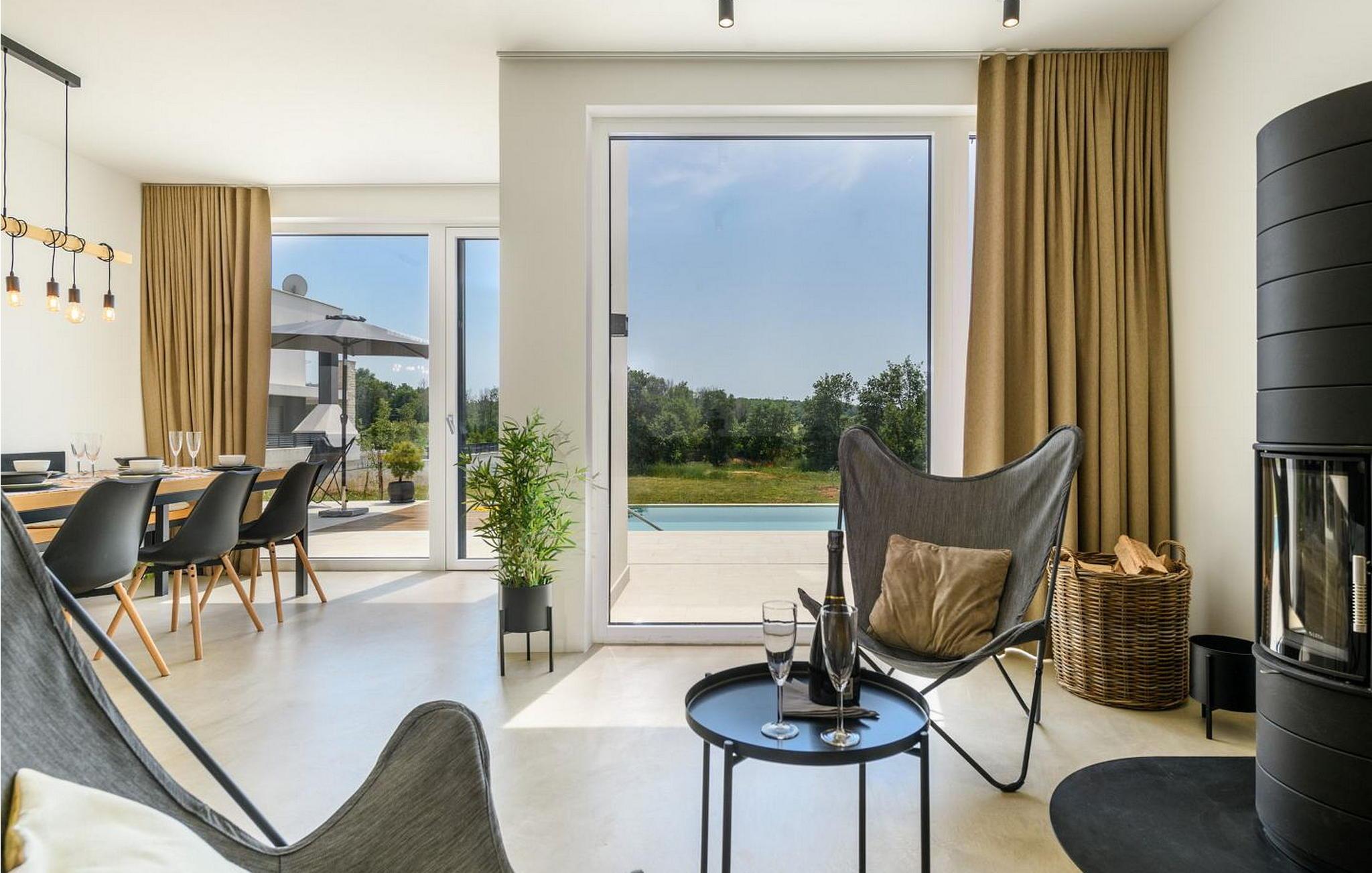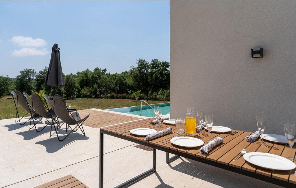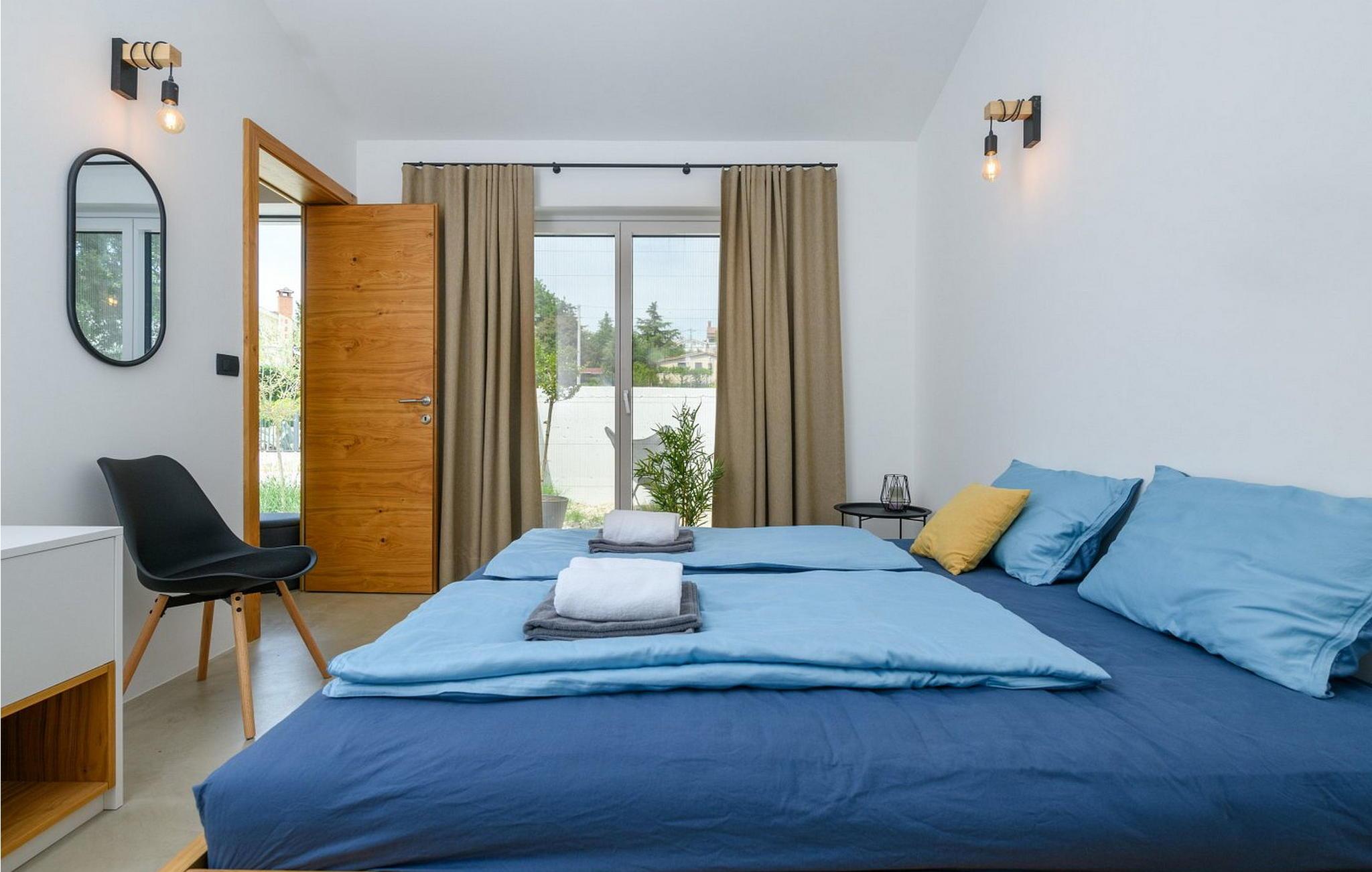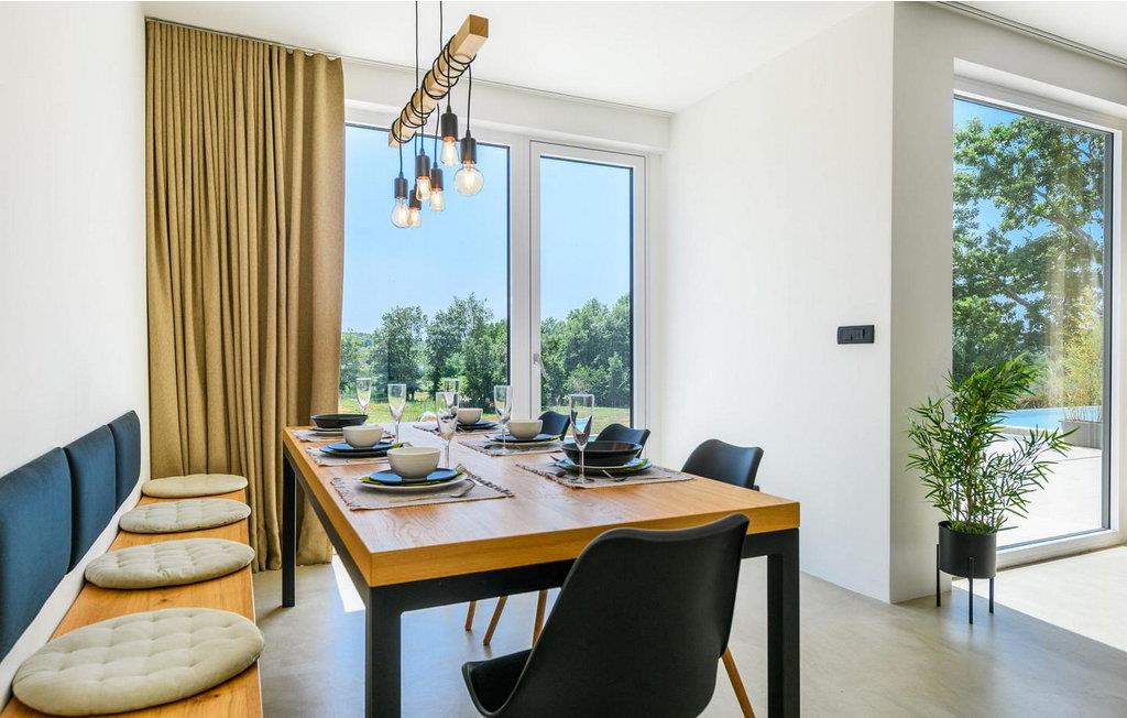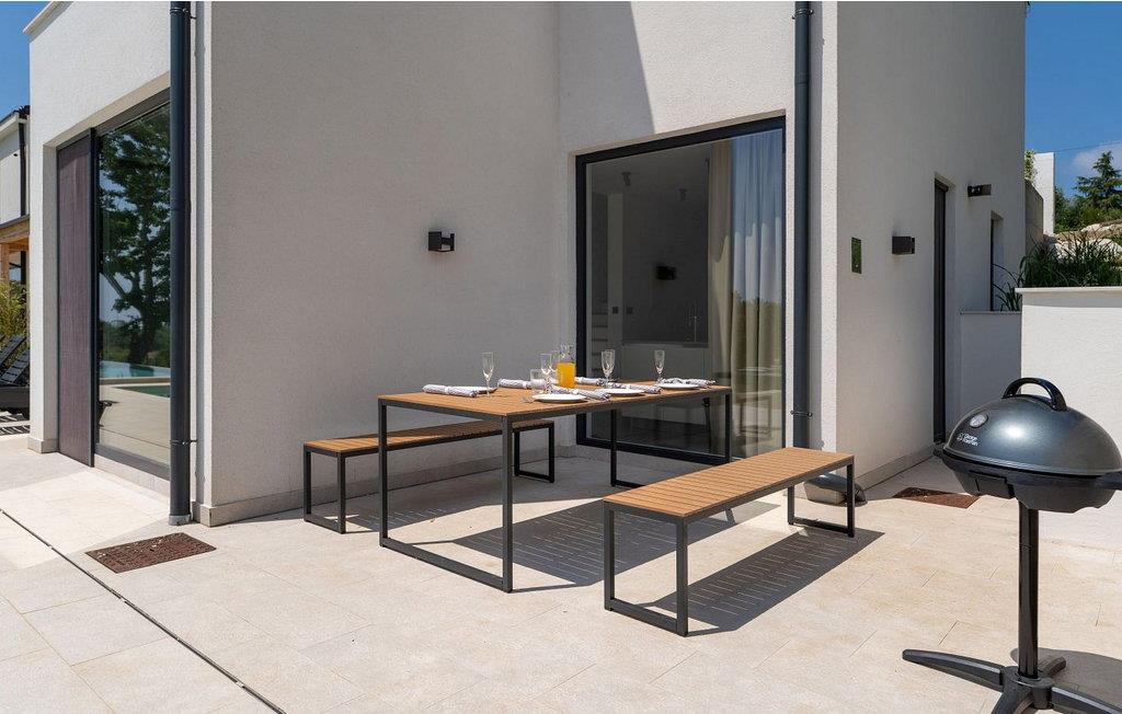 Villa Sunset er et moderne feriehus beliggende kun få kilometer fra Porec og dets indbydende hav. Villaen ligger i Fuškulin, tæt på en butik, en traditionel istrisk taverna, en førsteklasses vingård og cykelstier. Villaen byder på et smukt udendørs område med en forfriskende swimmingpool, liggestole, et udendørs spisebord, hvor du kan nyde al fresco måltider og en grill. Nyd venlig konkurrence med adgang til en indendørs squashbane, der deles med gæster fra den anden halvdel af huset. To parkeringspladser er også tilgængelige. Indenfor byder Villa Sunset på moderne interiør med moderne badeværelser. Stueetagen indeholder en rummelig opholdsstue, et fuldt udstyret køkken, en spisestue, et studie og et badeværelse. Første sal har tre soveværelser med dobbeltsenge, hver med sit eget badeværelse, hvilket sikrer både komfort og privatliv. Denne blanding af moderne komfort og rolige omgivelser lover en uforglemmelig ferieoplevelse. Porec er kun en kort køretur væk, hvor du kan beundre Euphrasia-basilikaen, et fantastisk mesterværk fra det 6. århundrede. Porecs rige kulturarv omfatter massive bymure, charmerende stengader med hyggelige restauranter og souvenirbutikker og en malerisk havnepromenade perfekt til slentreture. Bemærk venligst, at denne ejendom ikke accepterer ungdomsgrupper eller polterabender. En ungdomsgruppe på denne ejendom består af personer på 26 år eller derunder.
