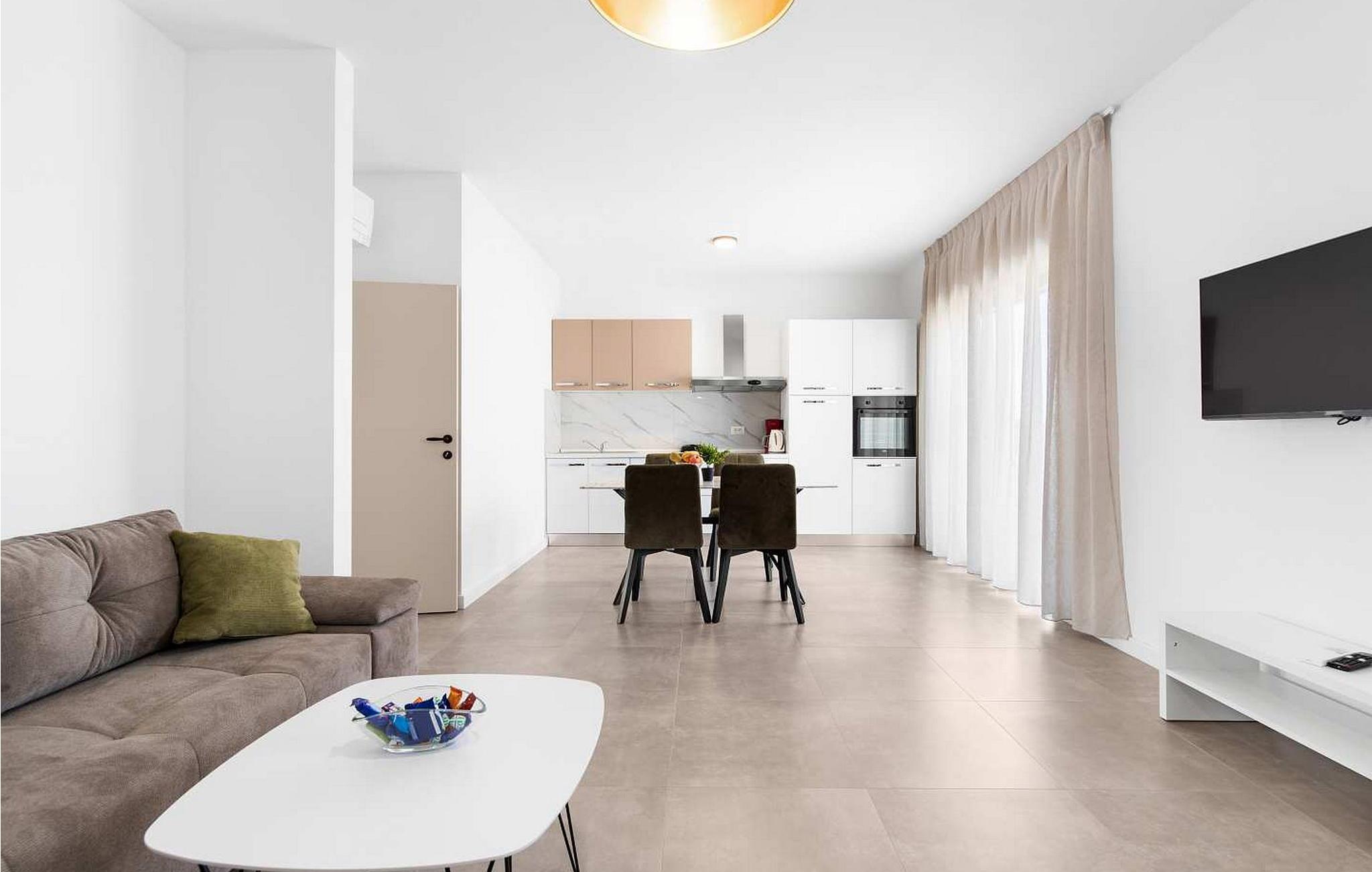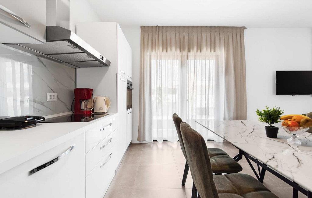 Venera er en moderne designet lejlighed til 4-5 gæster, 2 km fra havet. Lejligheden ligger kun 3-4 minutters kørsel fra indkøbscentre, cafeer, tankstationer, restauranter, pengeautomater og smukke strande. Gæsterne har en terrasse på 20 kvm med spisebord og en parkeringsplads til deres rådighed. Lejlighed Venera på 70 kvm ligger på første sal og deler entré med lejligheden i stueetagen. Lejligheden består af stue, fuldt udstyret køkken med spisebord, to soveværelser og et badeværelse. Bemærk venligst, at denne ejendom muligvis accepterer ungdomsgrupper efter anmodning. Kontakt os venligst for at tjekke. En ungdomsgruppe på denne ejendom er en gruppe bestående af personer på 26 år eller derunder. Hvis du er en ungdomsgruppe [eller planlægger et polterabend], kan du blive bedt om at betale et ekstra depositum ved ankomst. Eventuelle beløb, der kræves for at reparere skader forårsaget af ejendommen af dig, vil blive trukket fra sikkerhedsdepositummet.