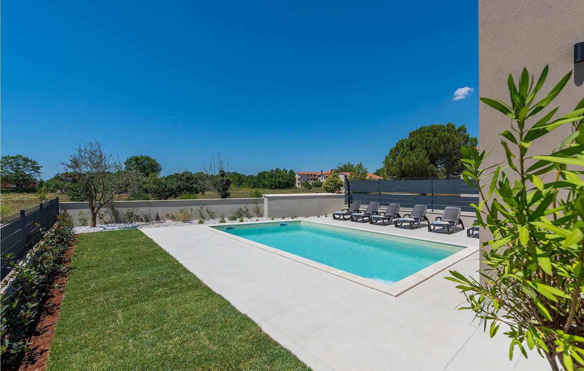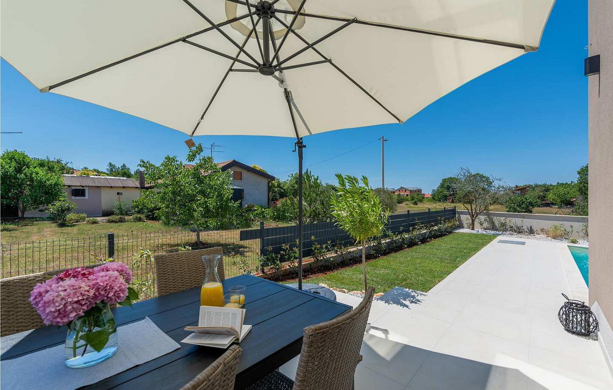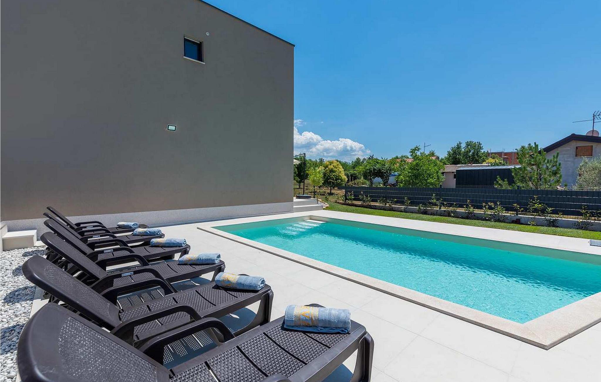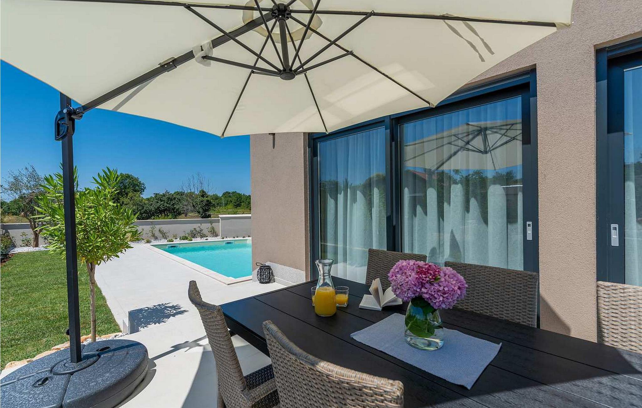 Villa Atena er en moderne designet villa med swimmingpool kun 2 km fra havet og Porec. I nærheden af huset er der indkøbscentre, pengeautomater, tankstationer, caféer, restauranter, tennis- og volleyballbaner, smukke strande. På lukket grund på 160 kvm råder gæsterne over en swimmingpool på 32 kvm, liggestole, spisebord, grill, parasol og to parkeringspladser. Villa Atena til 6 gæster har et boligareal på 150 kvm og er fordelt på to etager med aircondition. I stueetagen er der stue, fuldt udstyret køkken, soveværelse med dobbeltseng og eget badeværelse. På første sal er der to soveværelser med dobbeltsenge med private badeværelser. Bemærk venligst, at denne ejendom ikke accepterer ungdomsgrupper eller polterabends. En ungdomsgruppe på denne ejendom er en gruppe bestående af personer på 26 år eller derunder. Book ikke denne ejendom, hvis du er en ungdomsgruppe eller et polterabend, da din reservation vil blive afvist efter booking, hvilket kan omfatte ved ankomst til ejendommen eller under dit ophold, og du vil ikke blive refunderet.