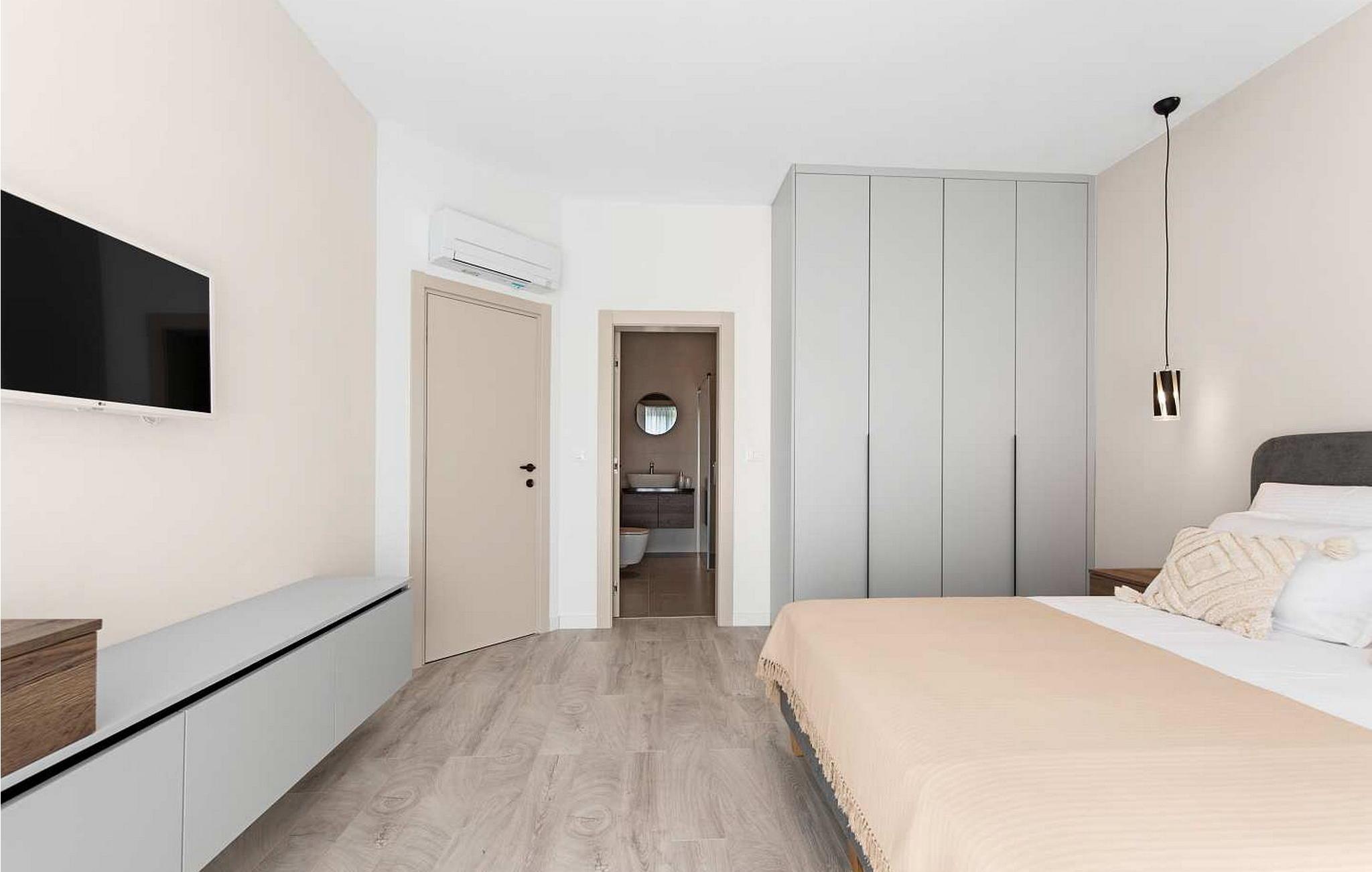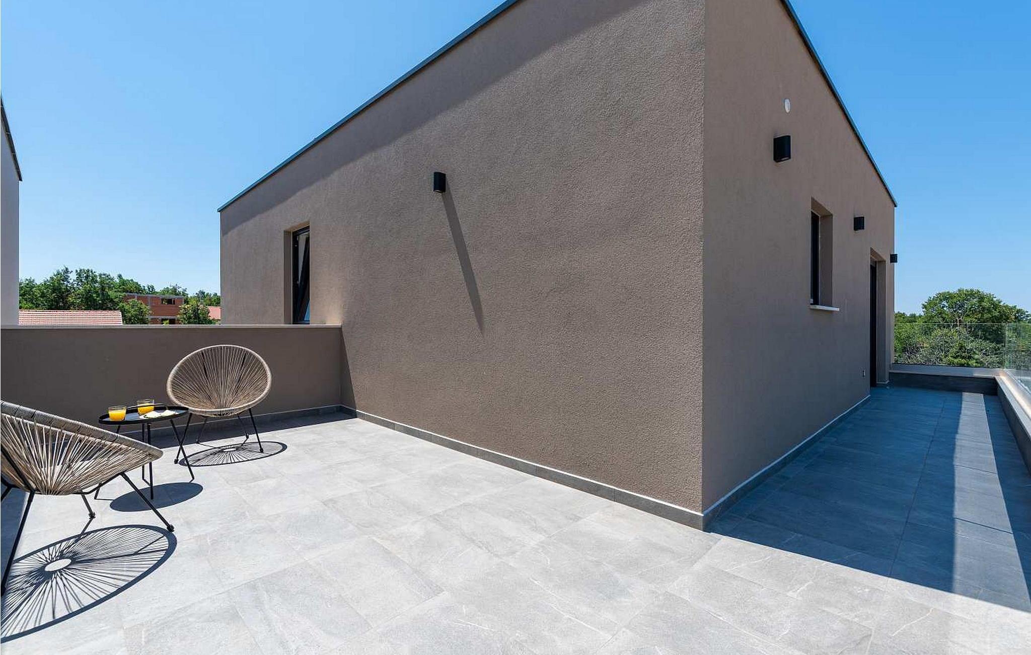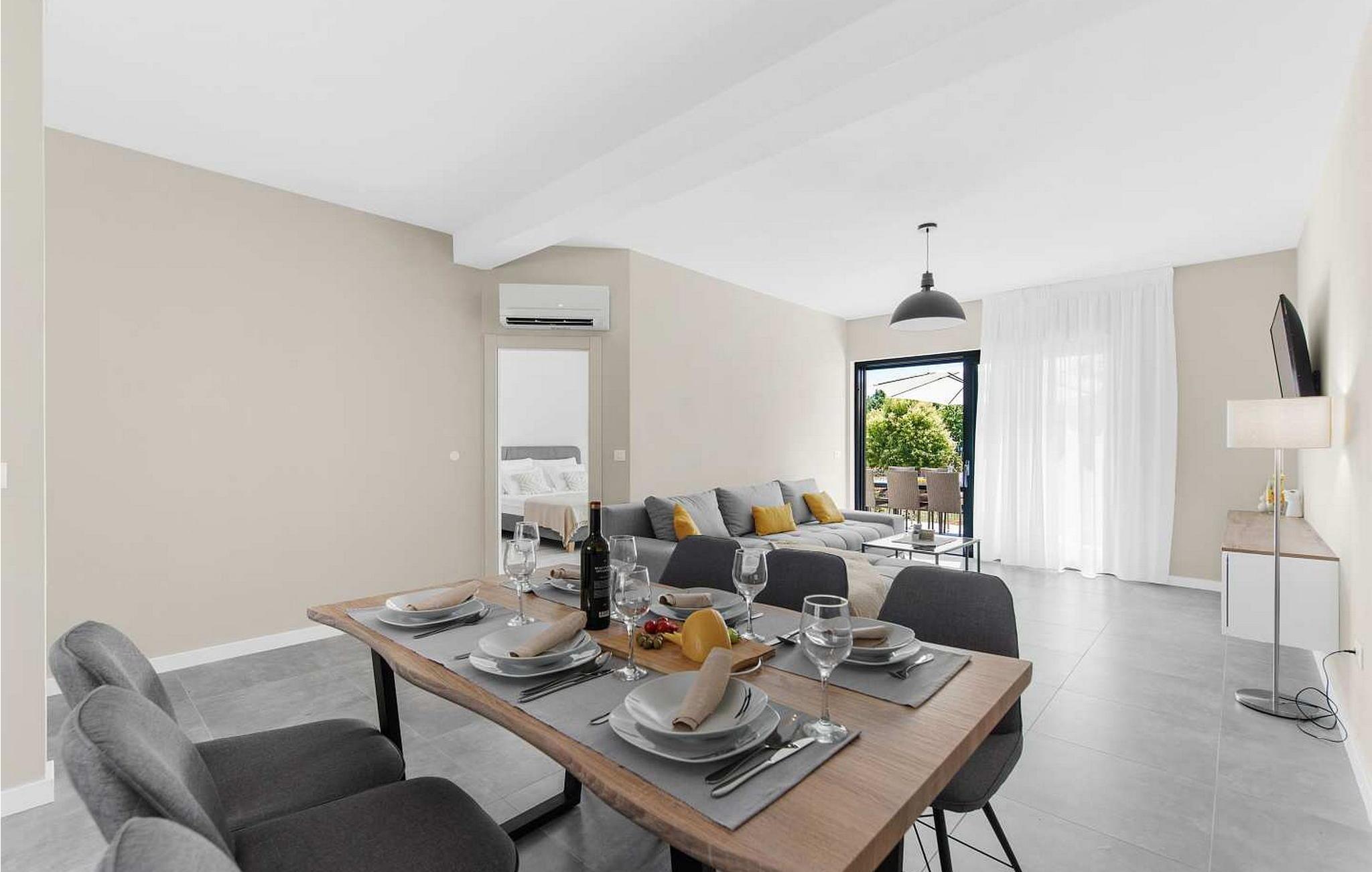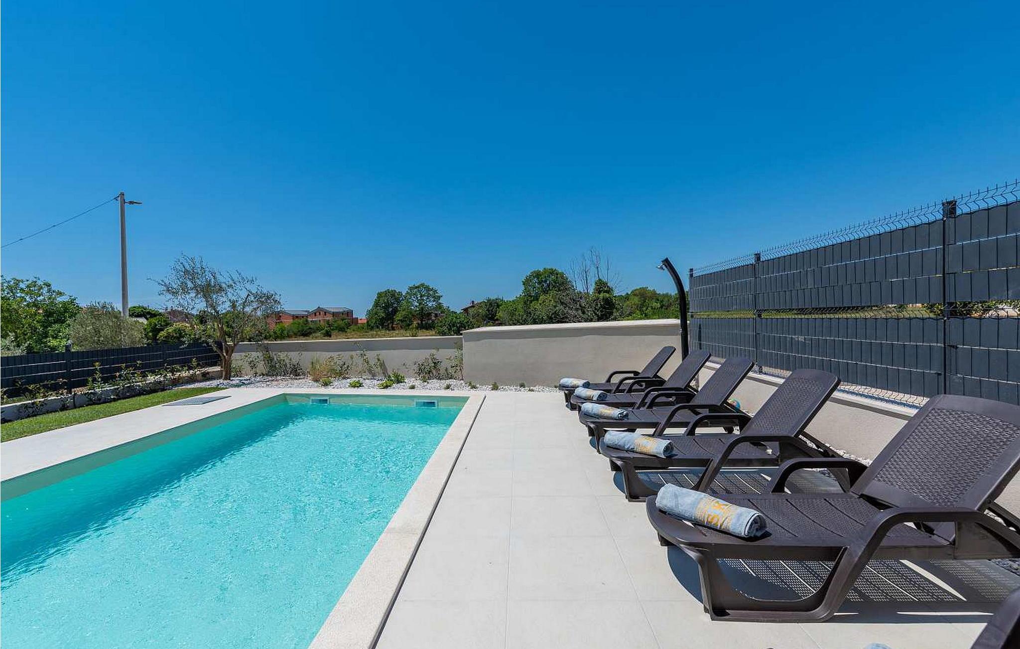Villa Atena er en moderne designet villa med swimmingpool kun 2 km fra havet og Porec. I nærheden af huset er der indkøbscentre, pengeautomater, tankstationer, caféer, restauranter, tennis- og volleyballbaner, smukke strande. På lukket grund på 160 kvm råder gæsterne over en swimmingpool på 32 kvm, liggestole, spisebord, grill, parasol og to parkeringspladser. Villa Atena til 6 gæster har et boligareal på 150 kvm og er fordelt på to etager med aircondition. I stueetagen er der stue, fuldt udstyret køkken, soveværelse med dobbeltseng og eget badeværelse. På første sal er der to soveværelser med dobbeltsenge med private badeværelser. Bemærk venligst, at denne ejendom ikke accepterer ungdomsgrupper eller polterabends. En ungdomsgruppe på denne ejendom er en gruppe bestående af personer på 26 år eller derunder. Book ikke denne ejendom, hvis du er en ungdomsgruppe eller et polterabend, da din reservation vil blive afvist efter booking, hvilket kan omfatte ved ankomst til ejendommen eller under dit ophold, og du vil ikke blive refunderet.