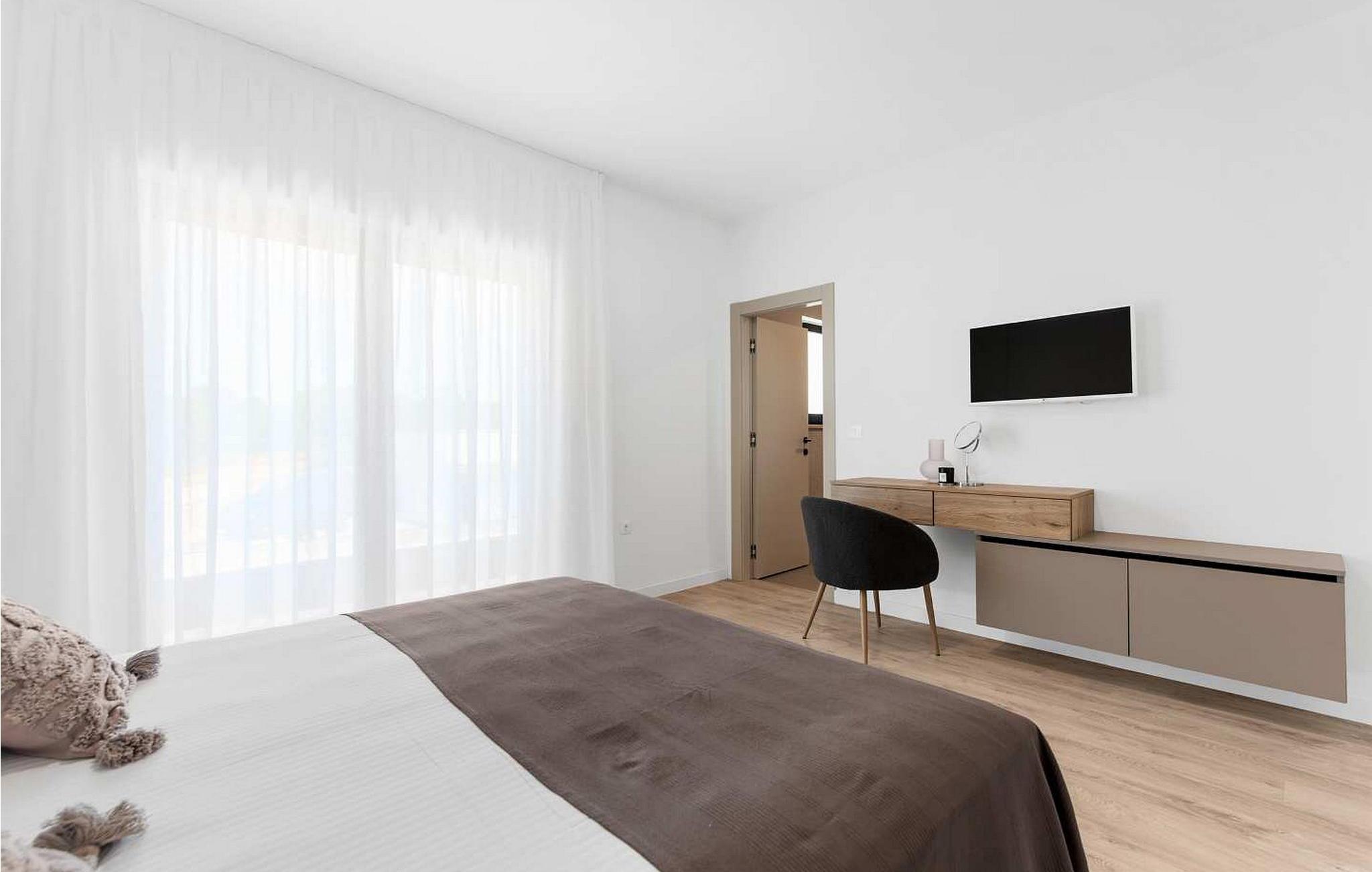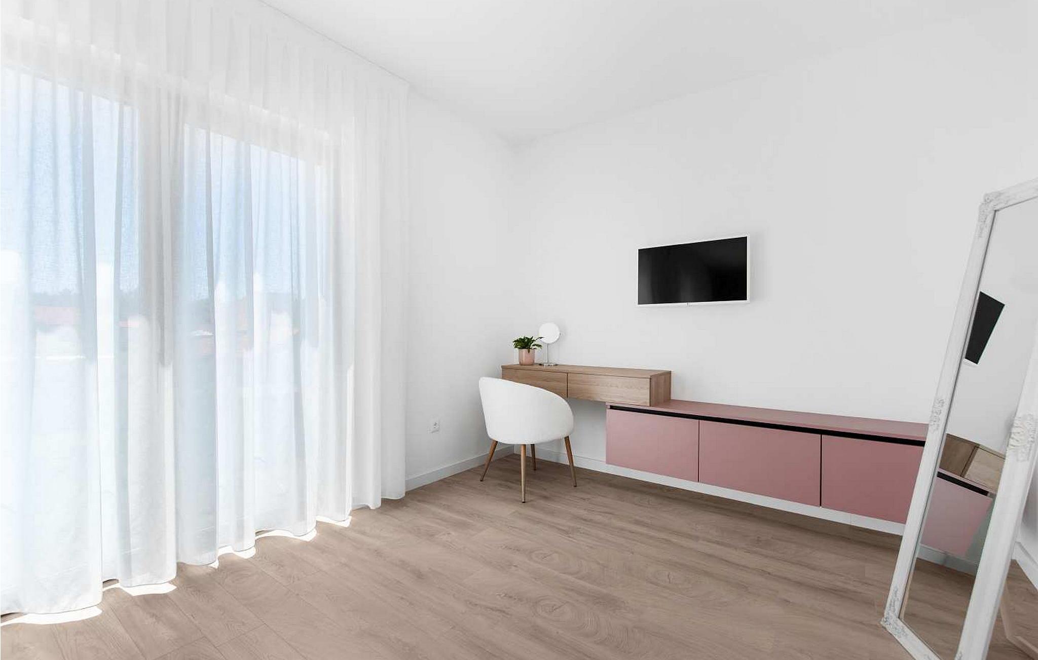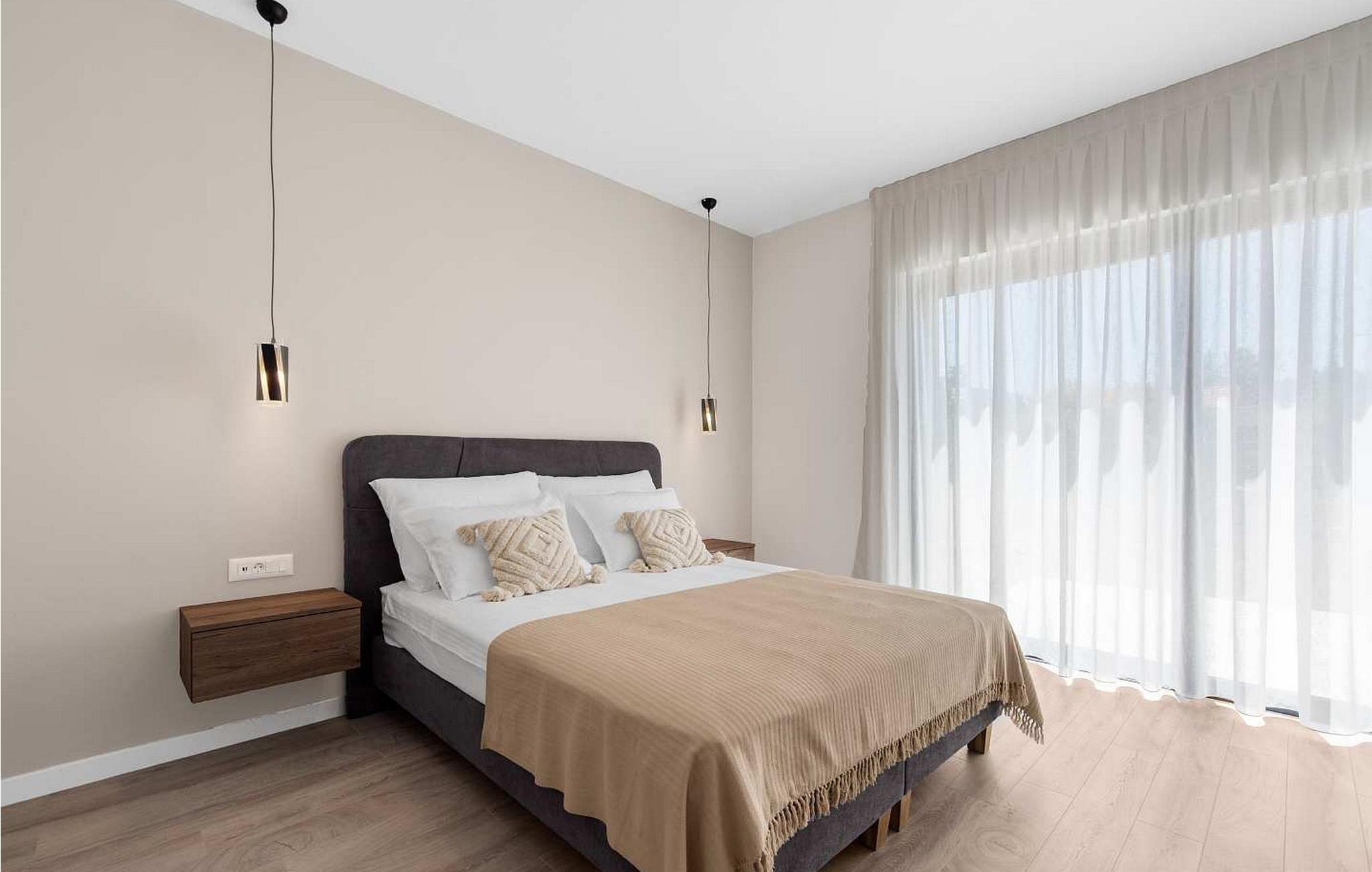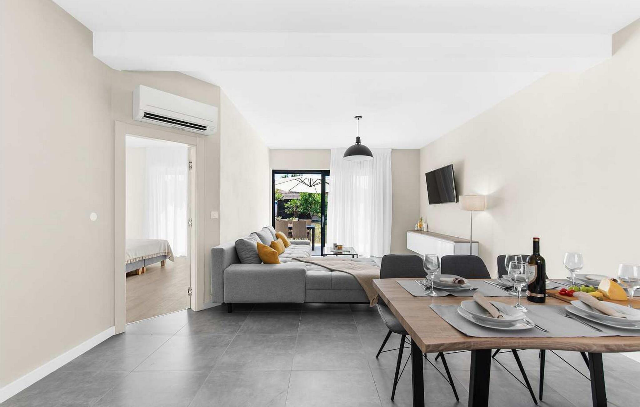 Villa Atena er en moderne designet villa med swimmingpool kun 2 km fra havet og Porec. I nærheden af huset er der indkøbscentre, pengeautomater, tankstationer, caféer, restauranter, tennis- og volleyballbaner, smukke strande. På lukket grund på 160 kvm råder gæsterne over en swimmingpool på 32 kvm, liggestole, spisebord, grill, parasol og to parkeringspladser. Villa Atena til 6 gæster har et boligareal på 150 kvm og er fordelt på to etager med aircondition. I stueetagen er der stue, fuldt udstyret køkken, soveværelse med dobbeltseng og eget badeværelse. På første sal er der to soveværelser med dobbeltsenge med private badeværelser. Bemærk venligst, at denne ejendom ikke accepterer ungdomsgrupper eller polterabends. En ungdomsgruppe på denne ejendom er en gruppe bestående af personer på 26 år eller derunder. Book ikke denne ejendom, hvis du er en ungdomsgruppe eller et polterabend, da din reservation vil blive afvist efter booking, hvilket kan omfatte ved ankomst til ejendommen eller under dit ophold, og du vil ikke blive refunderet.