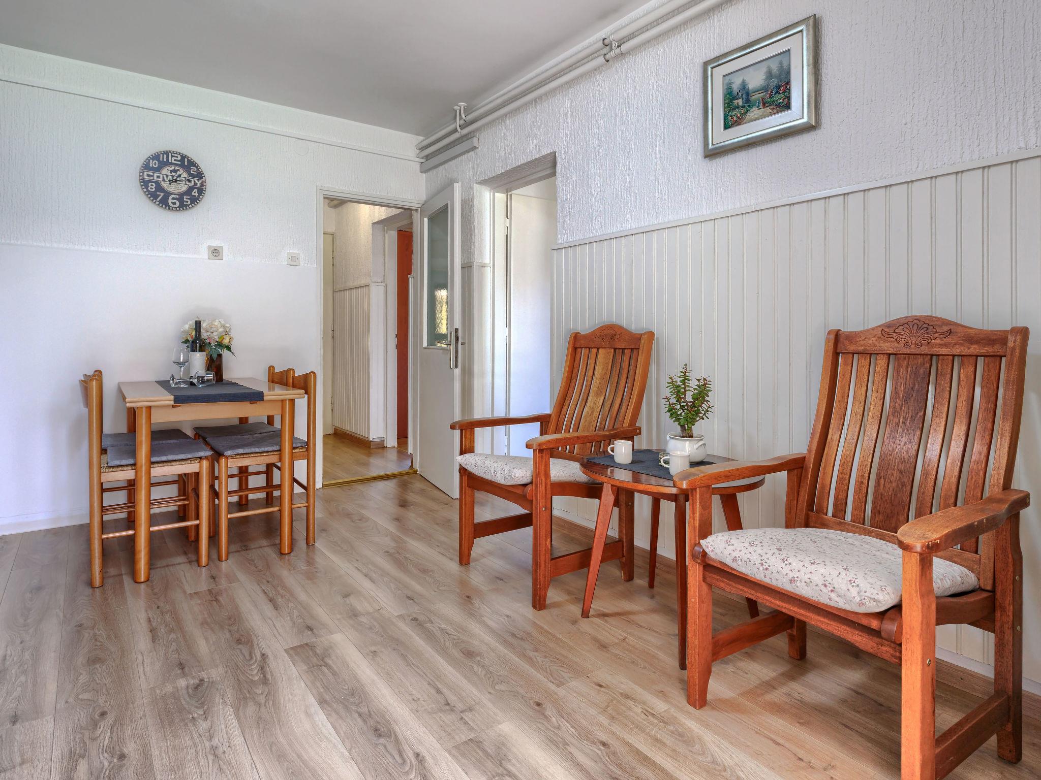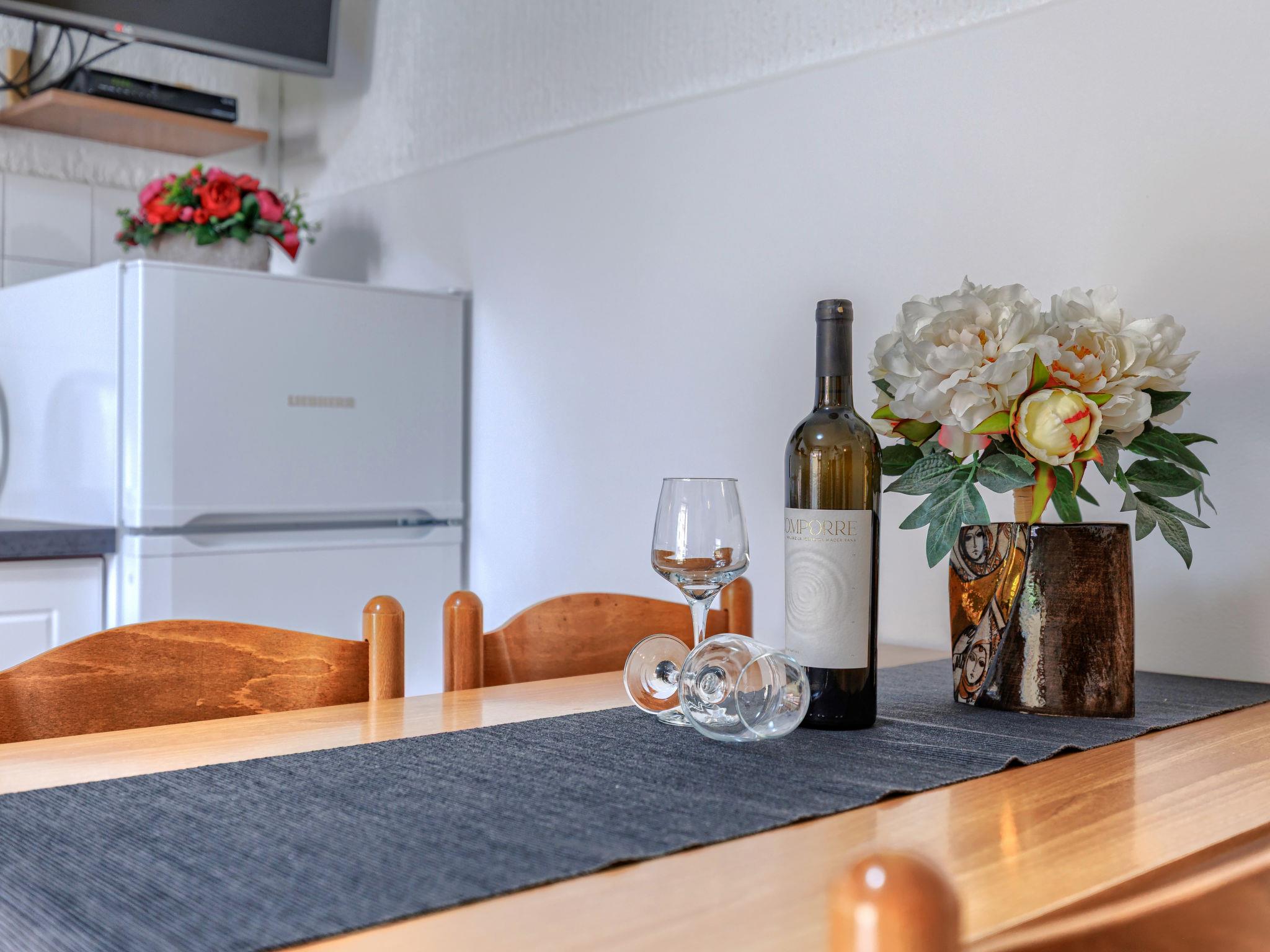2-room apartment 43 m2, on the ground floor. Practical furnishings: 1 room with 1 french bed (1 x 160 cm, length 200 cm). 1 room with 1 double bed (2 x 80 cm, length 200 cm). Dining room with satellite TV (flat screen), air conditioning. Exit to the garden, to the terrace. Open kitchen (dishwasher, 4 ceramic glass hob hotplates, microwave, freezer). Shower/WC. Heating. Terrace 6 m2, roofed. Terrace furniture. Facilities: Internet (WiFi, free). 1 small pet/ dog allowed.